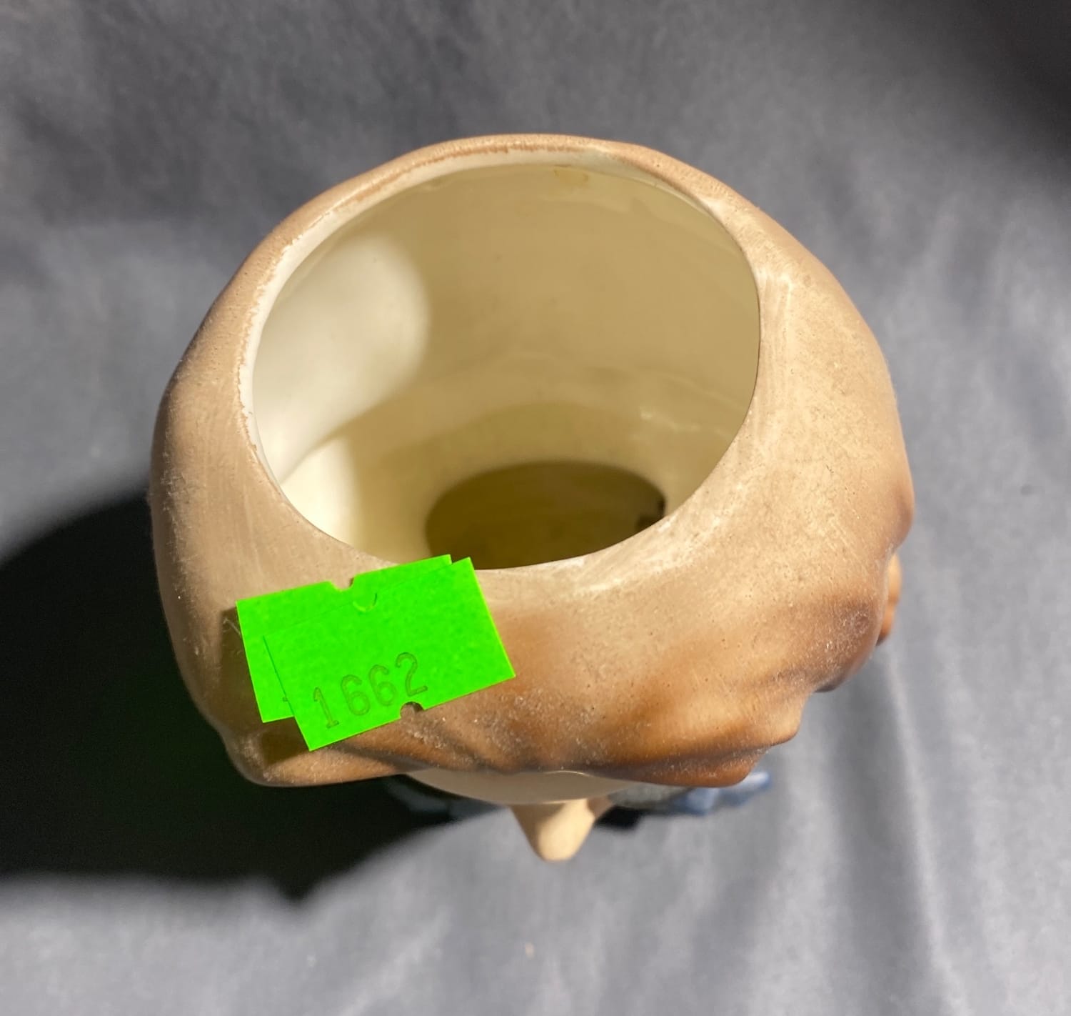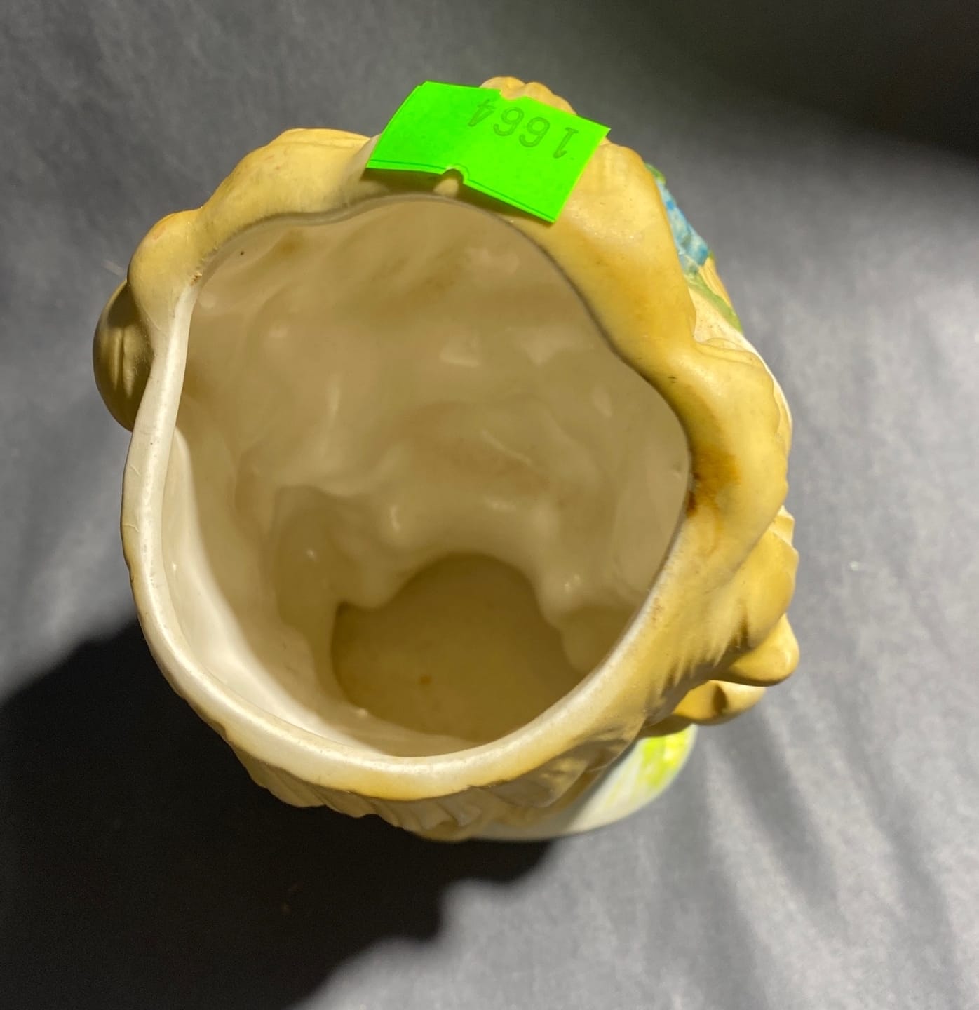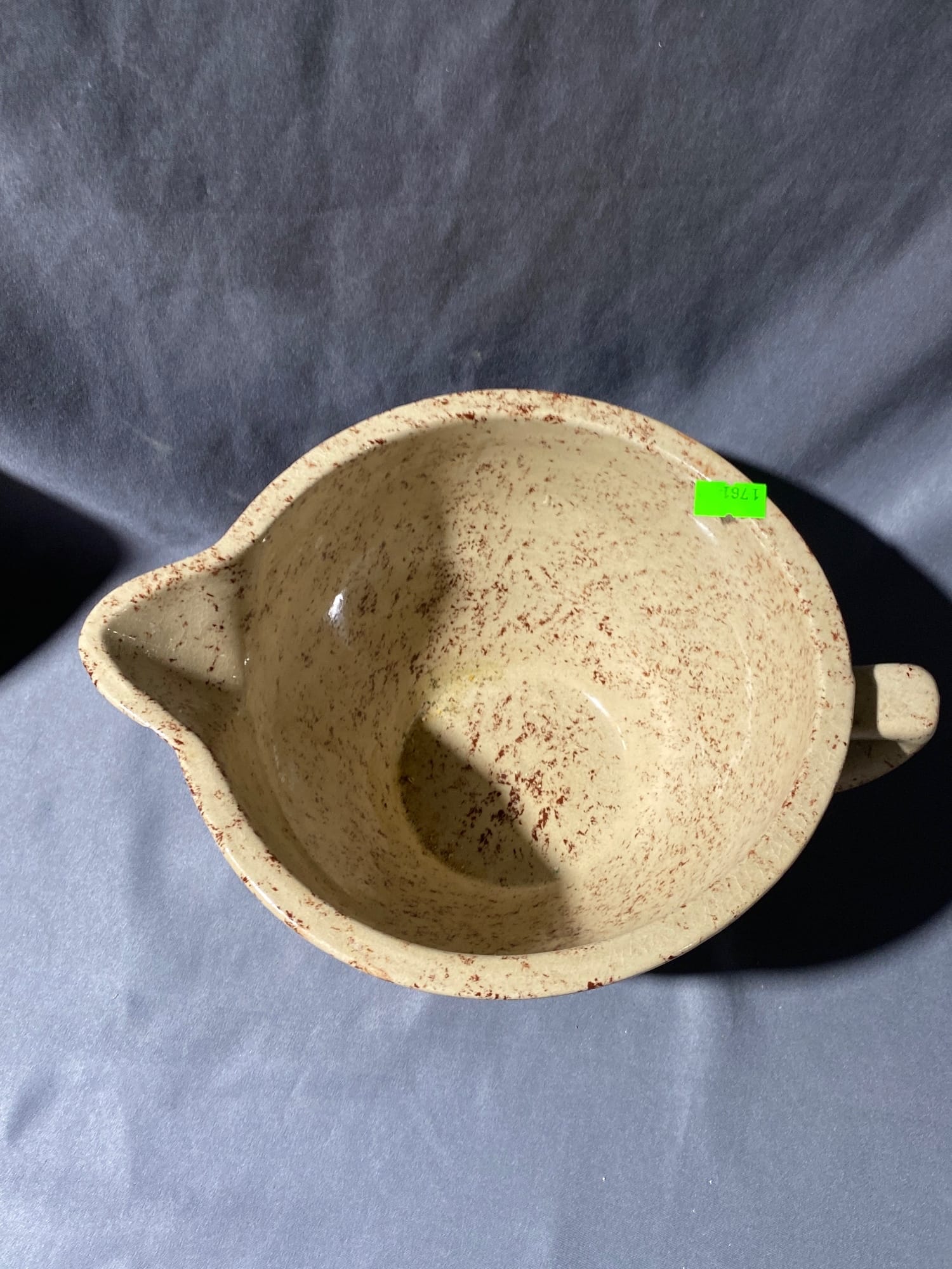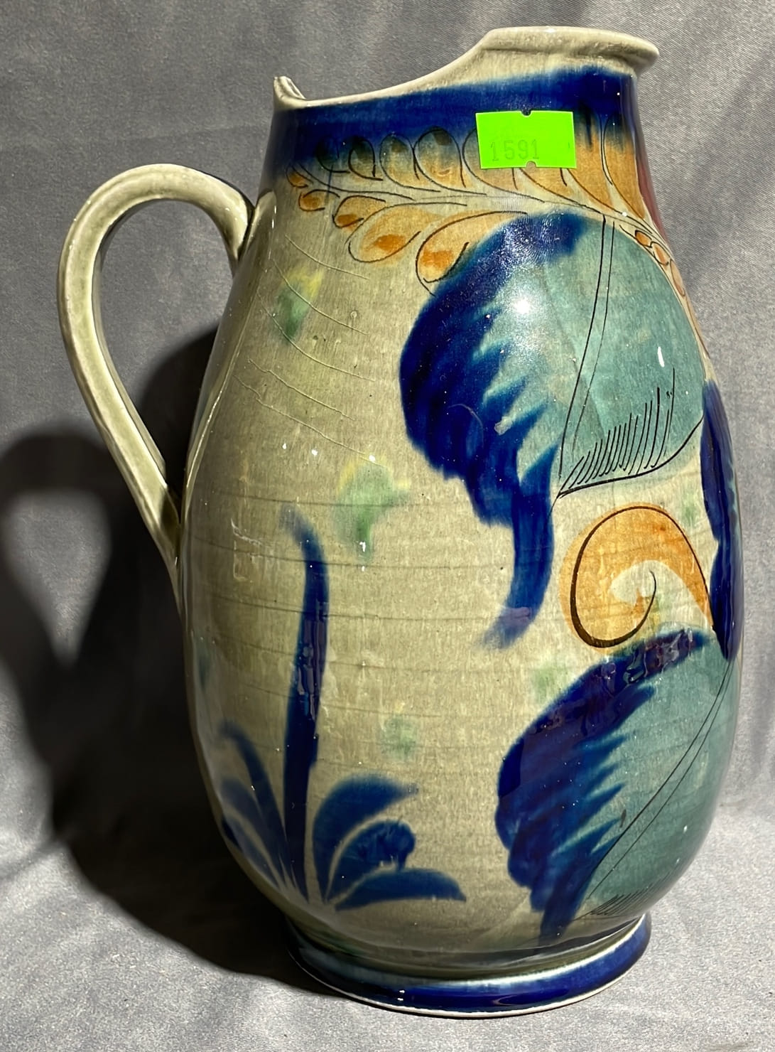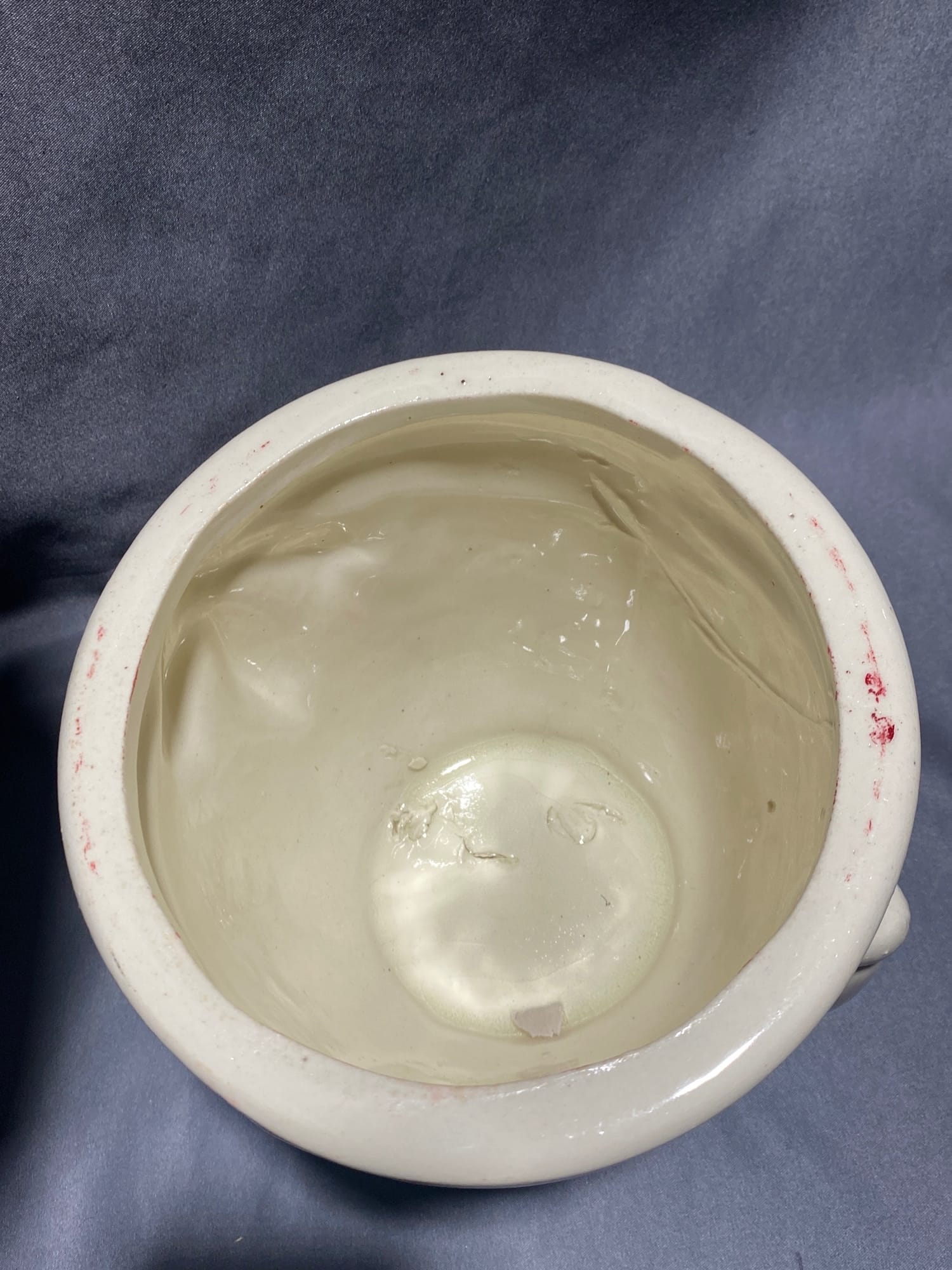 1253 Stoneware jug, handle is broken and top is damaged 7"x13"