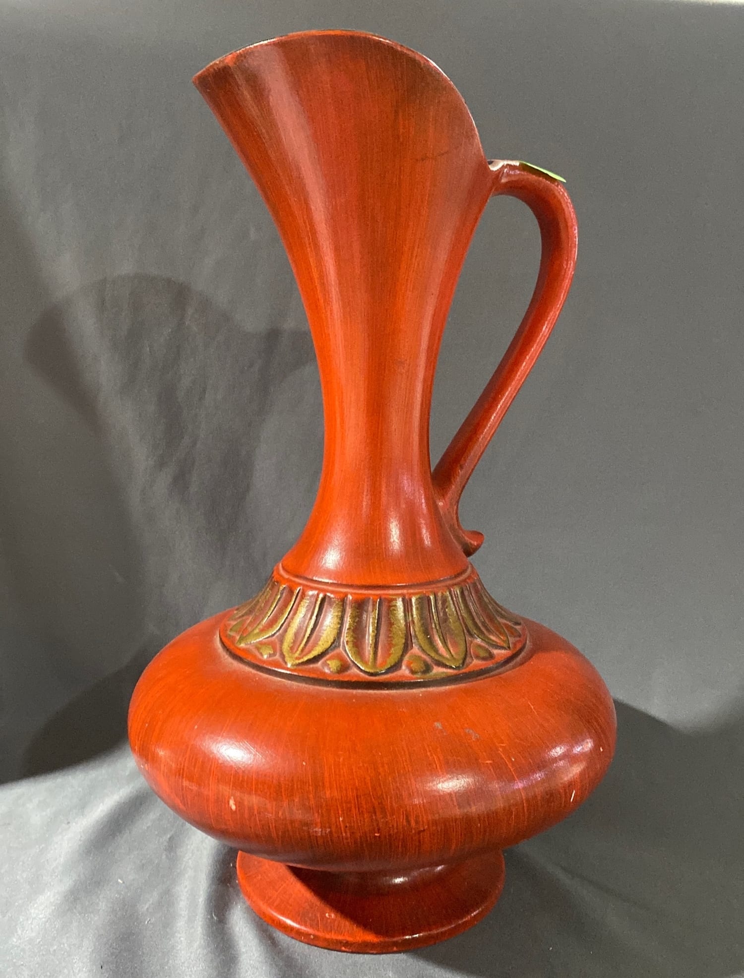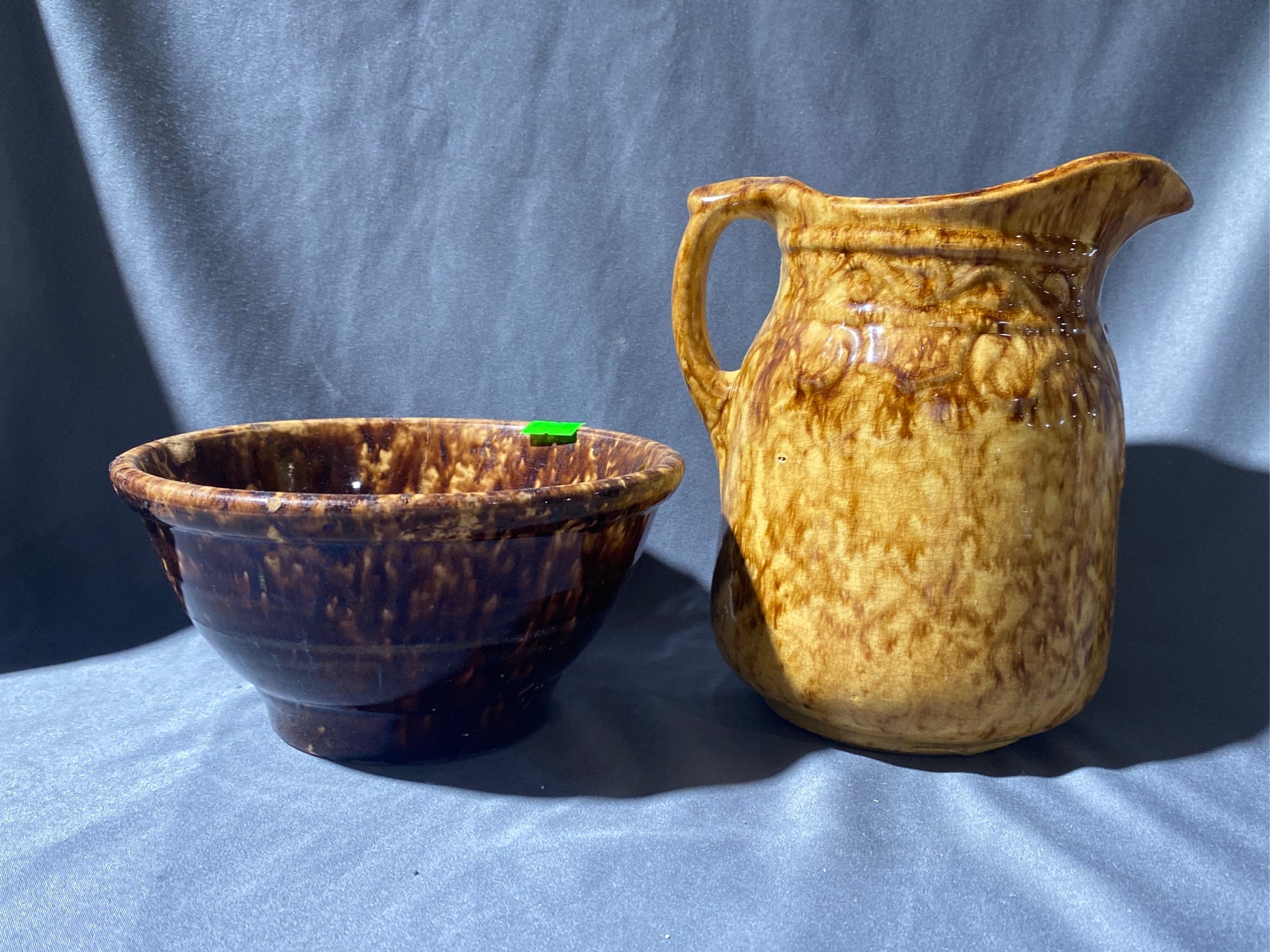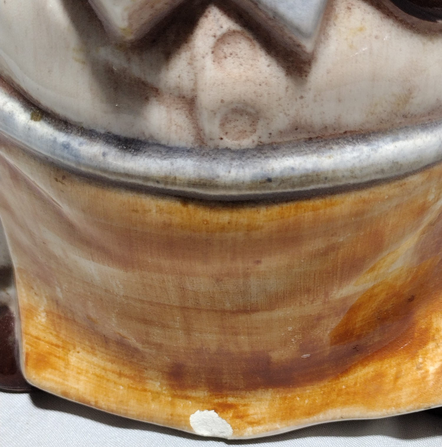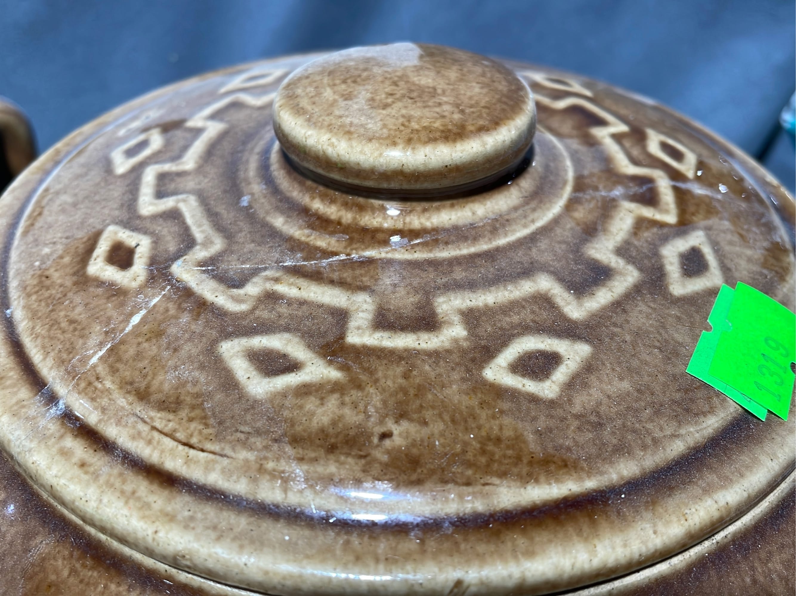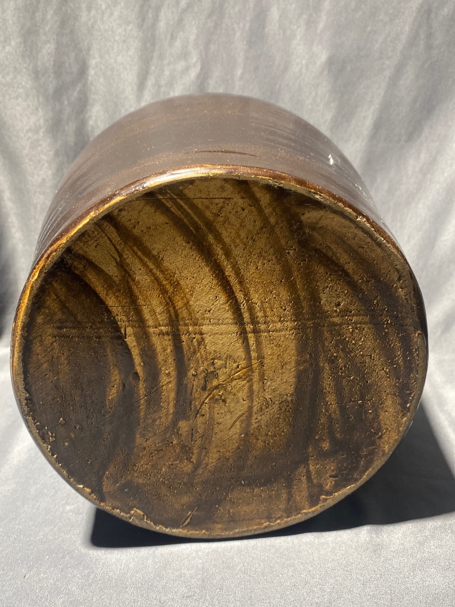 1253 Stoneware jug, handle is broken and top is damaged 7"x13"