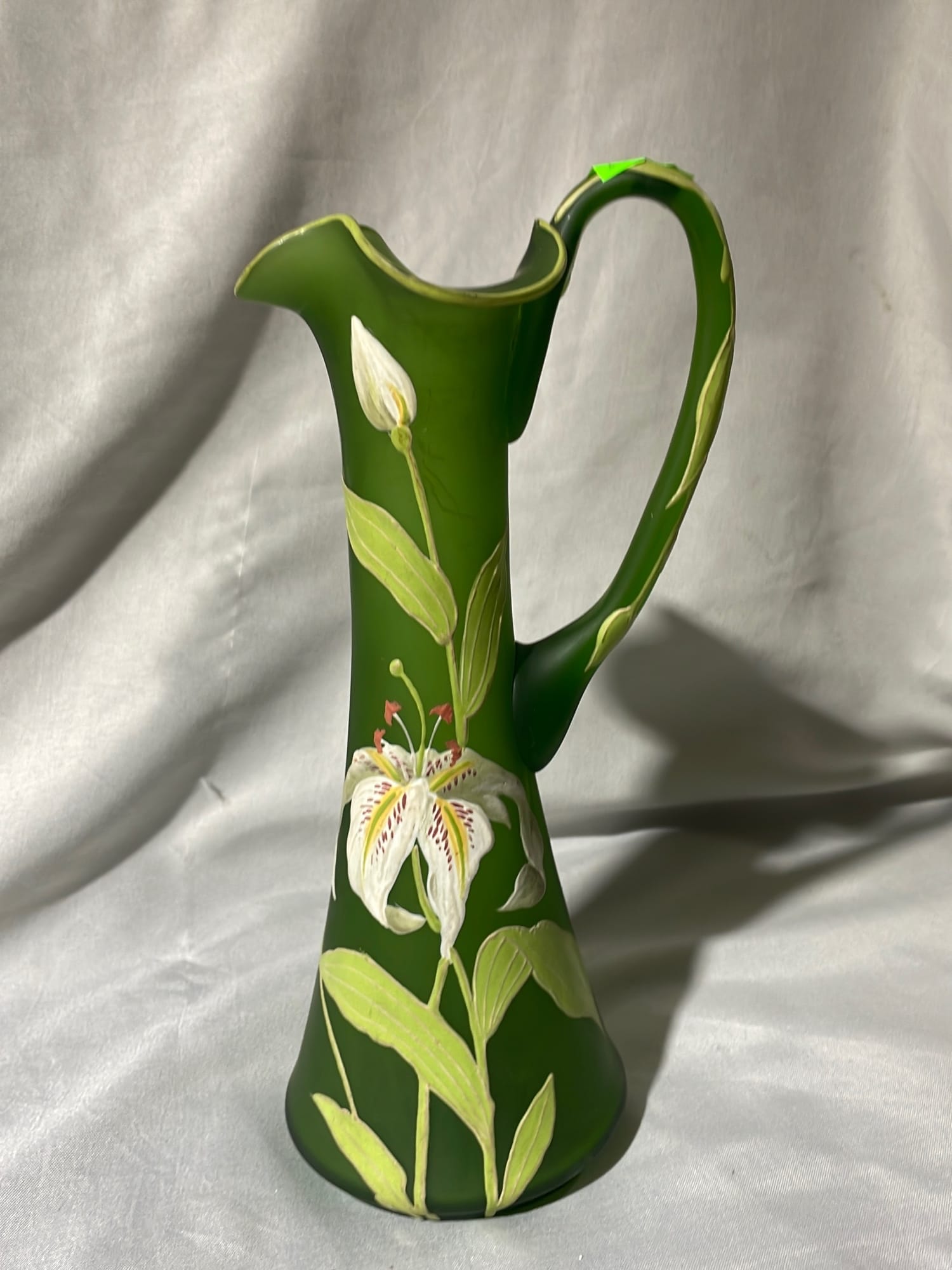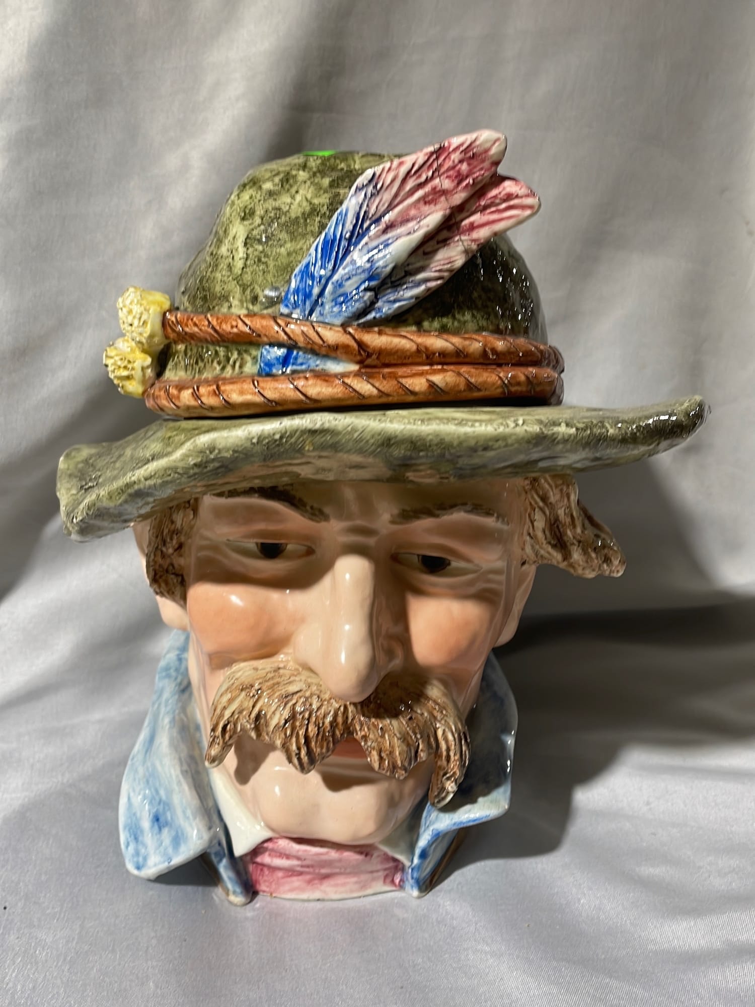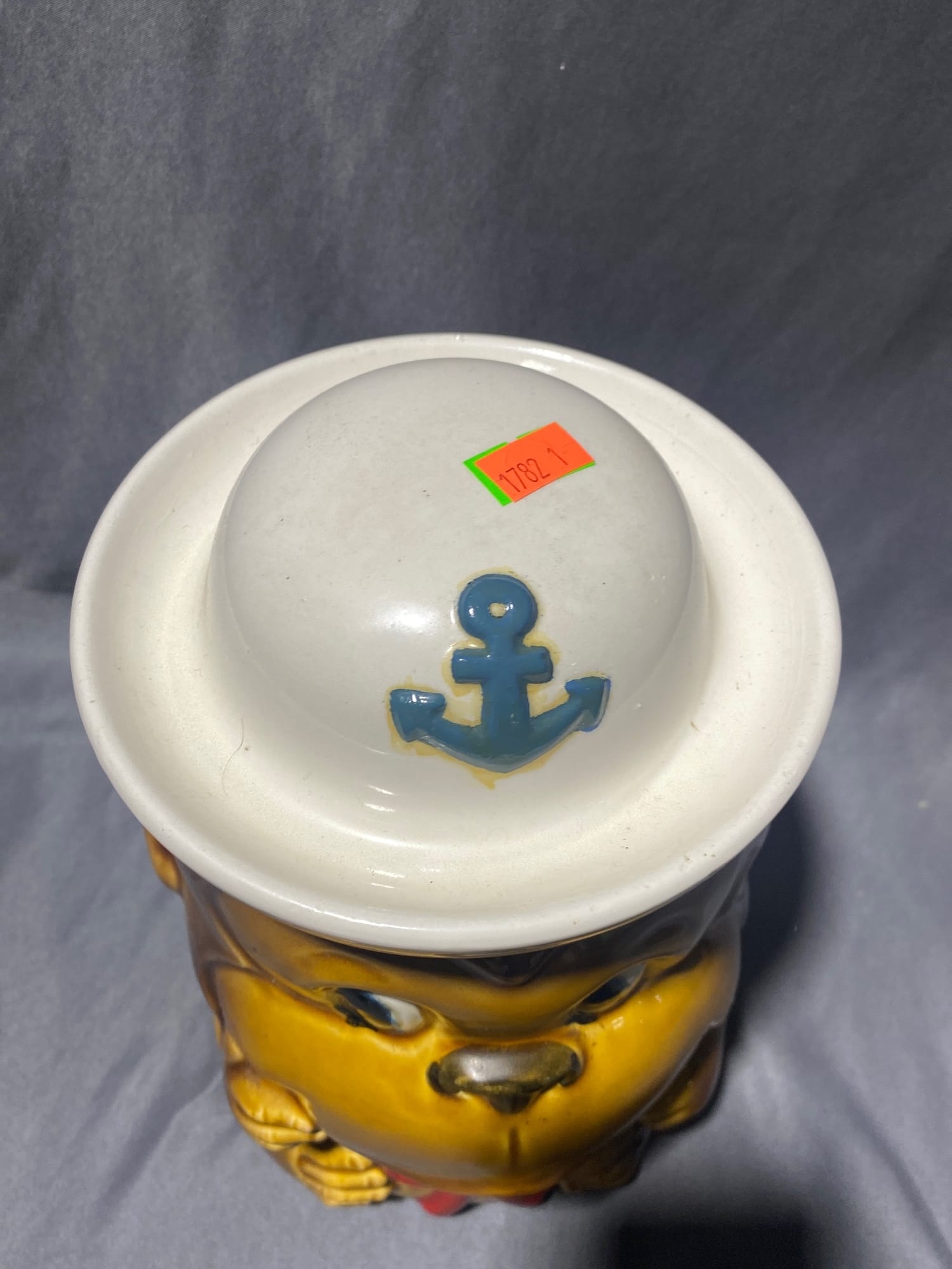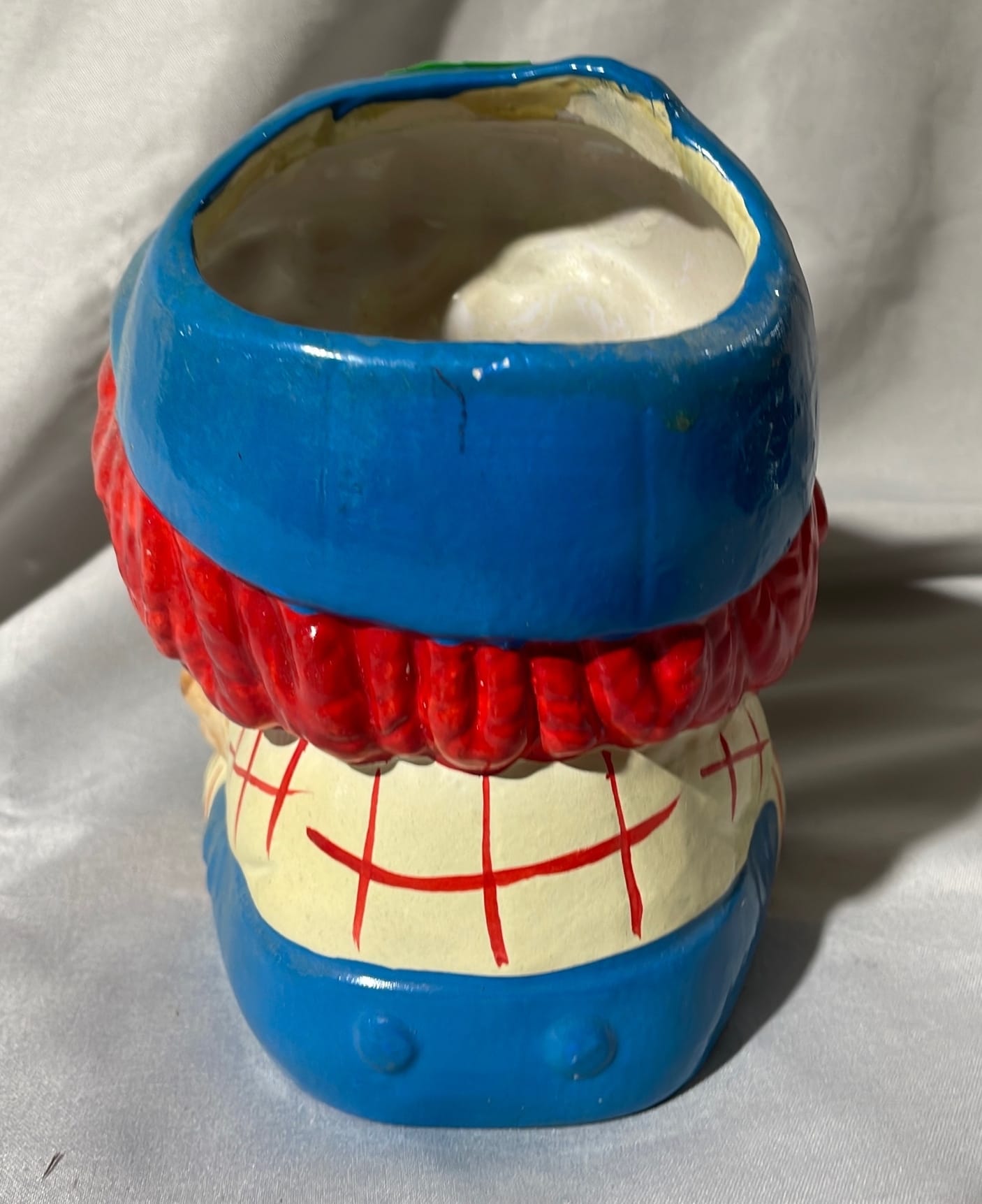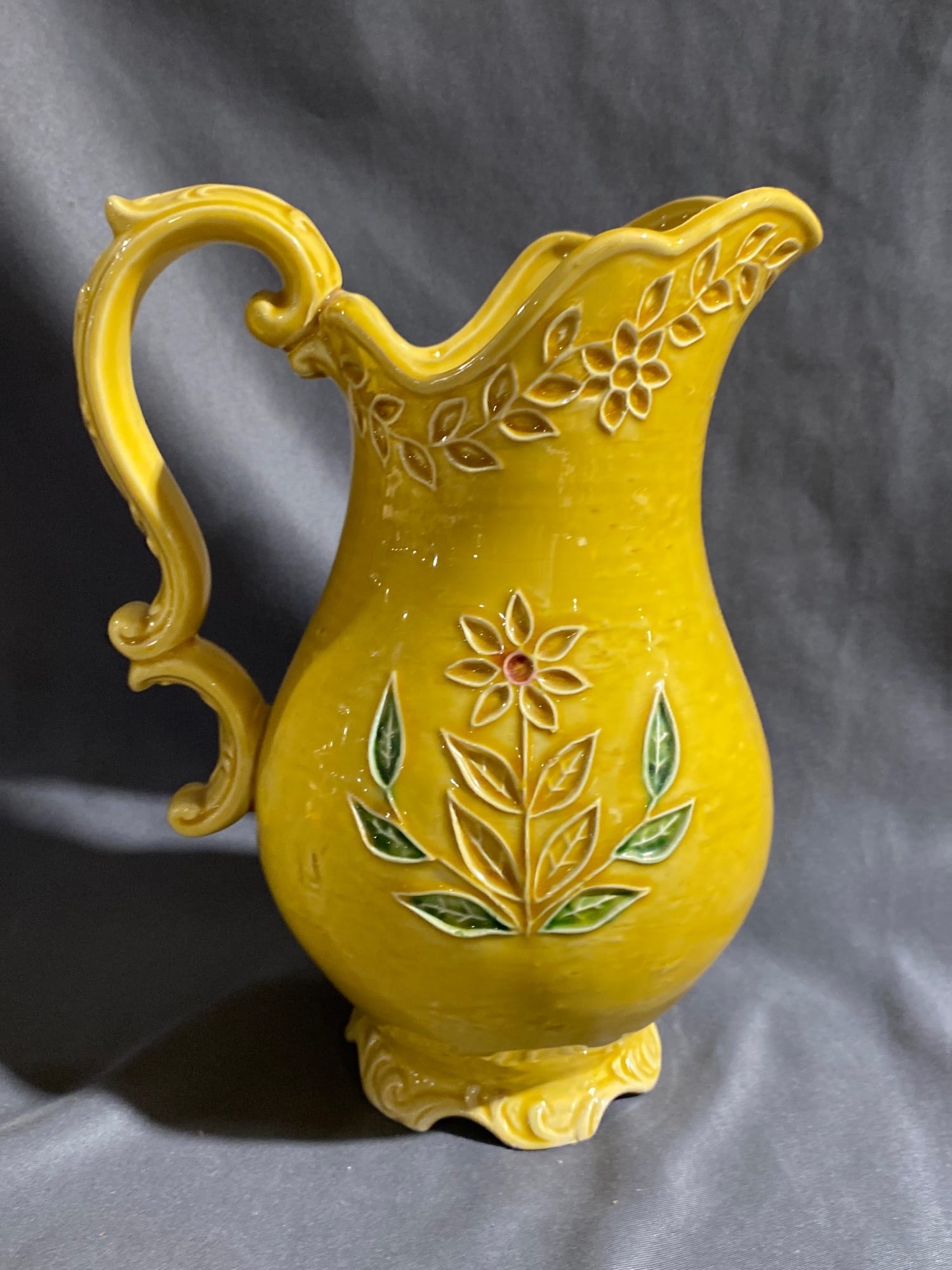 1253 Stoneware jug, handle is broken and top is damaged 7"x13"