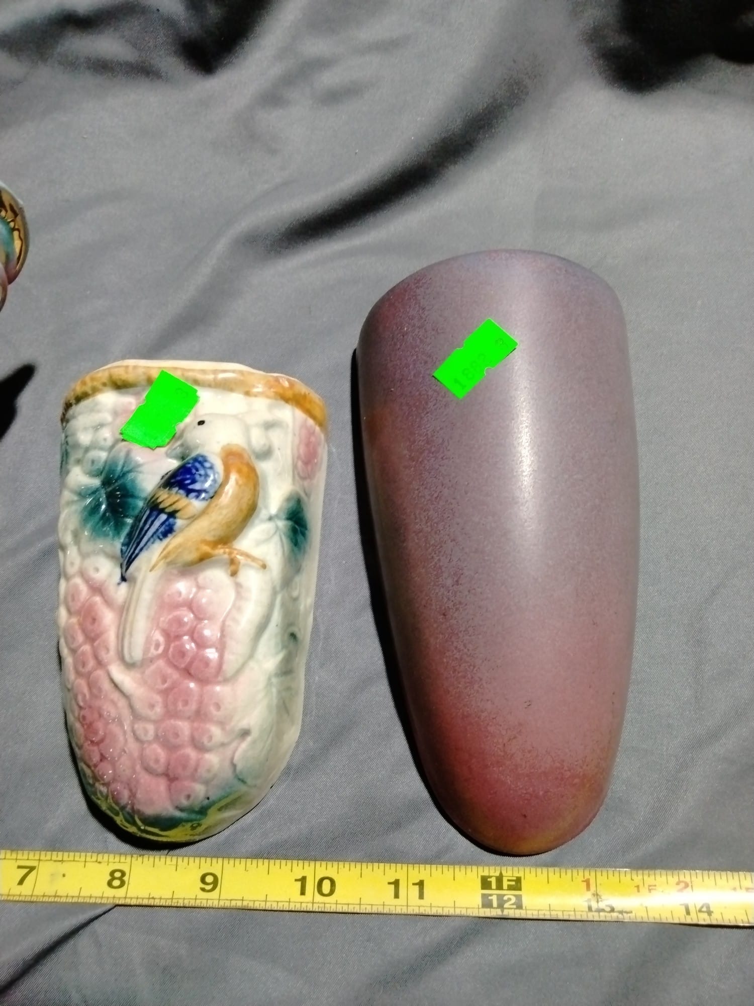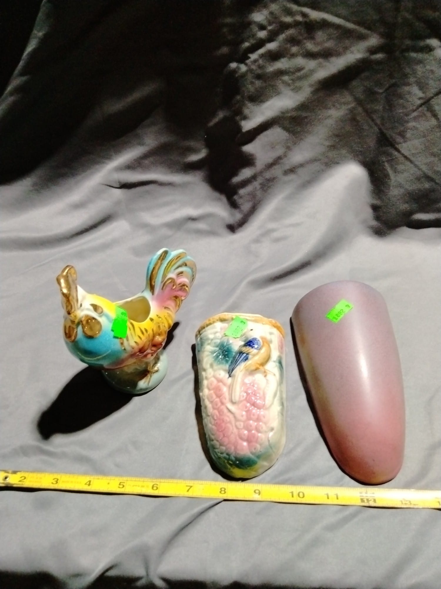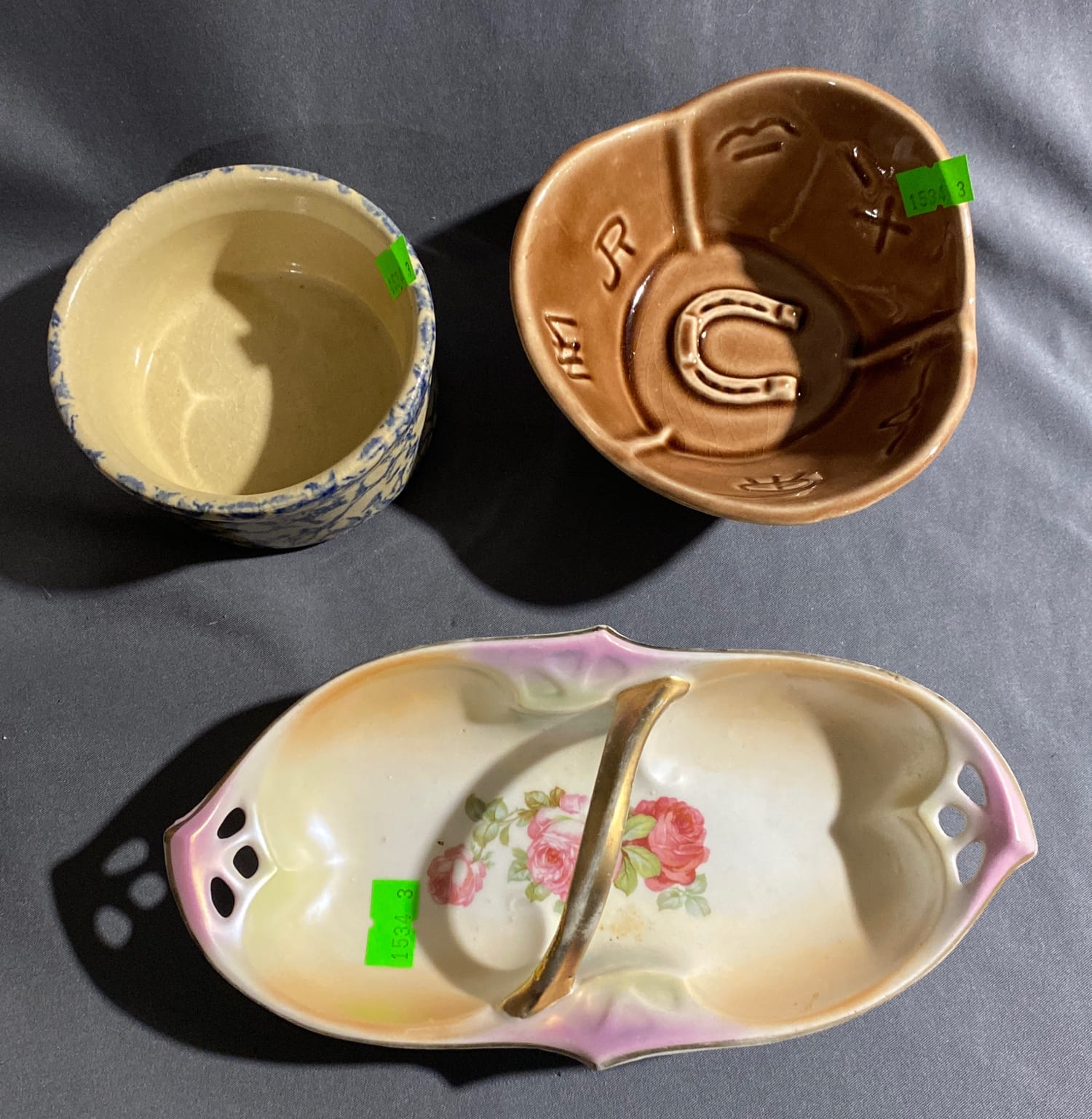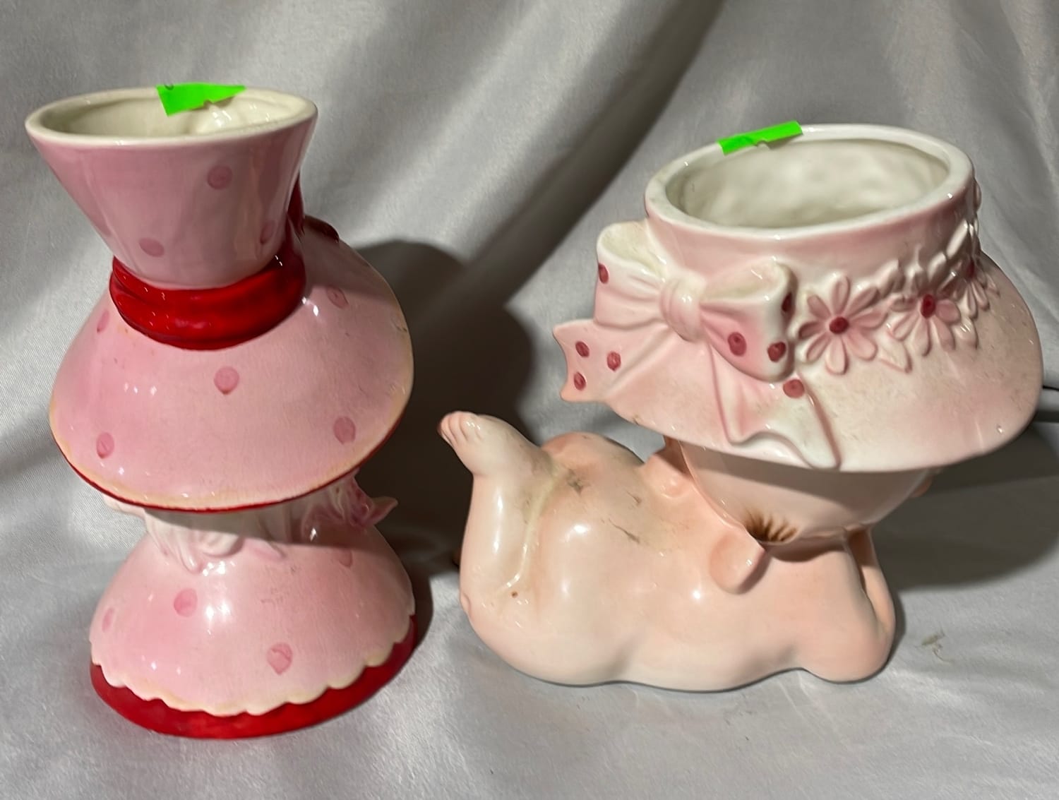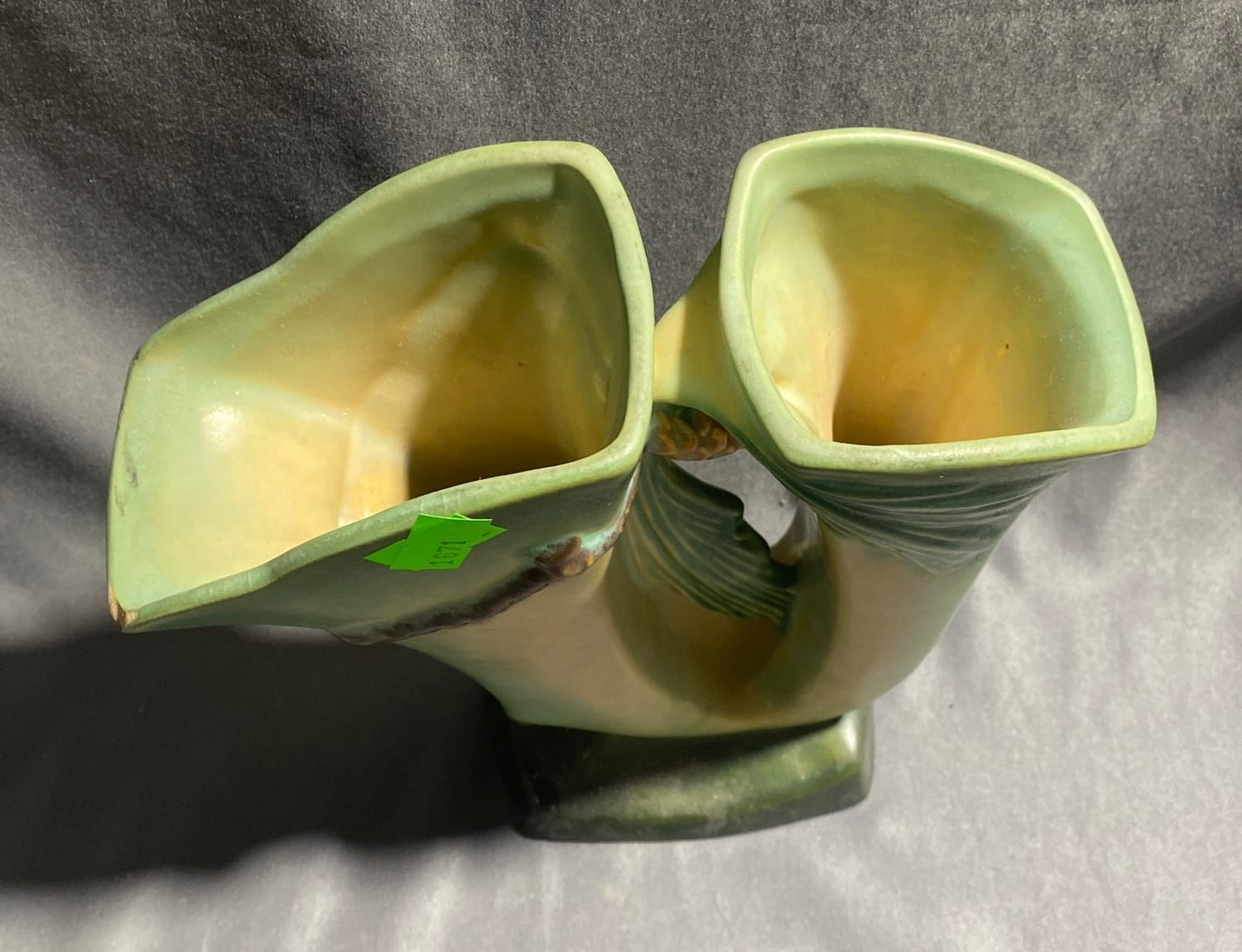 1256 Roseville ceramic candlestick holders 2"x4", Roseville planter 2"x9"