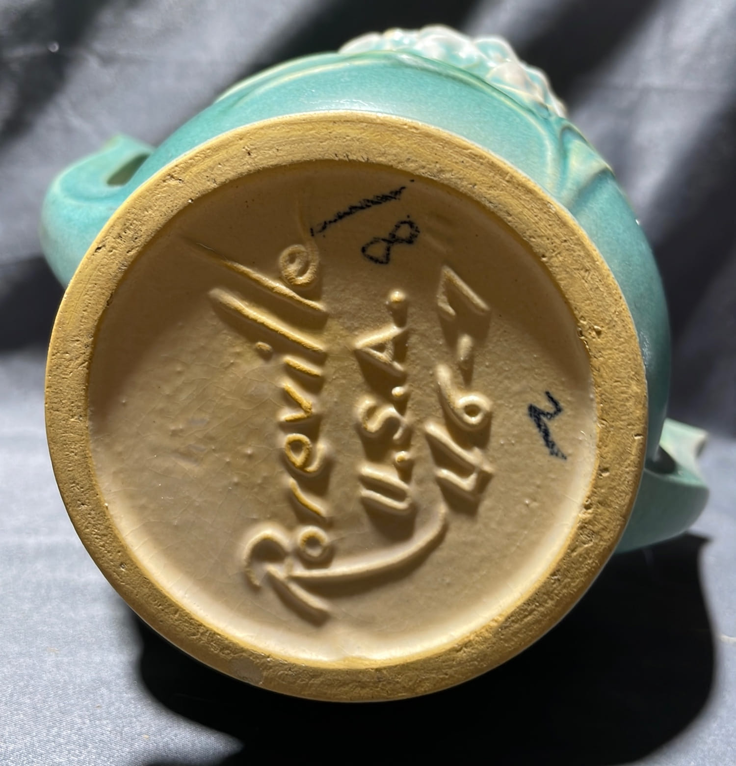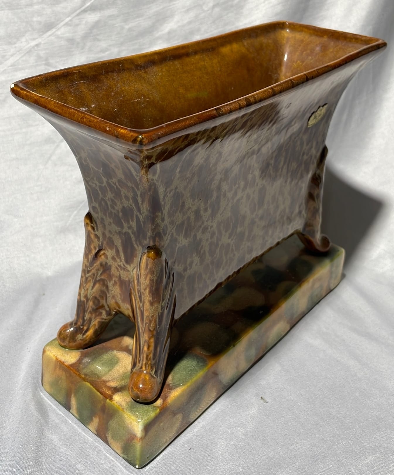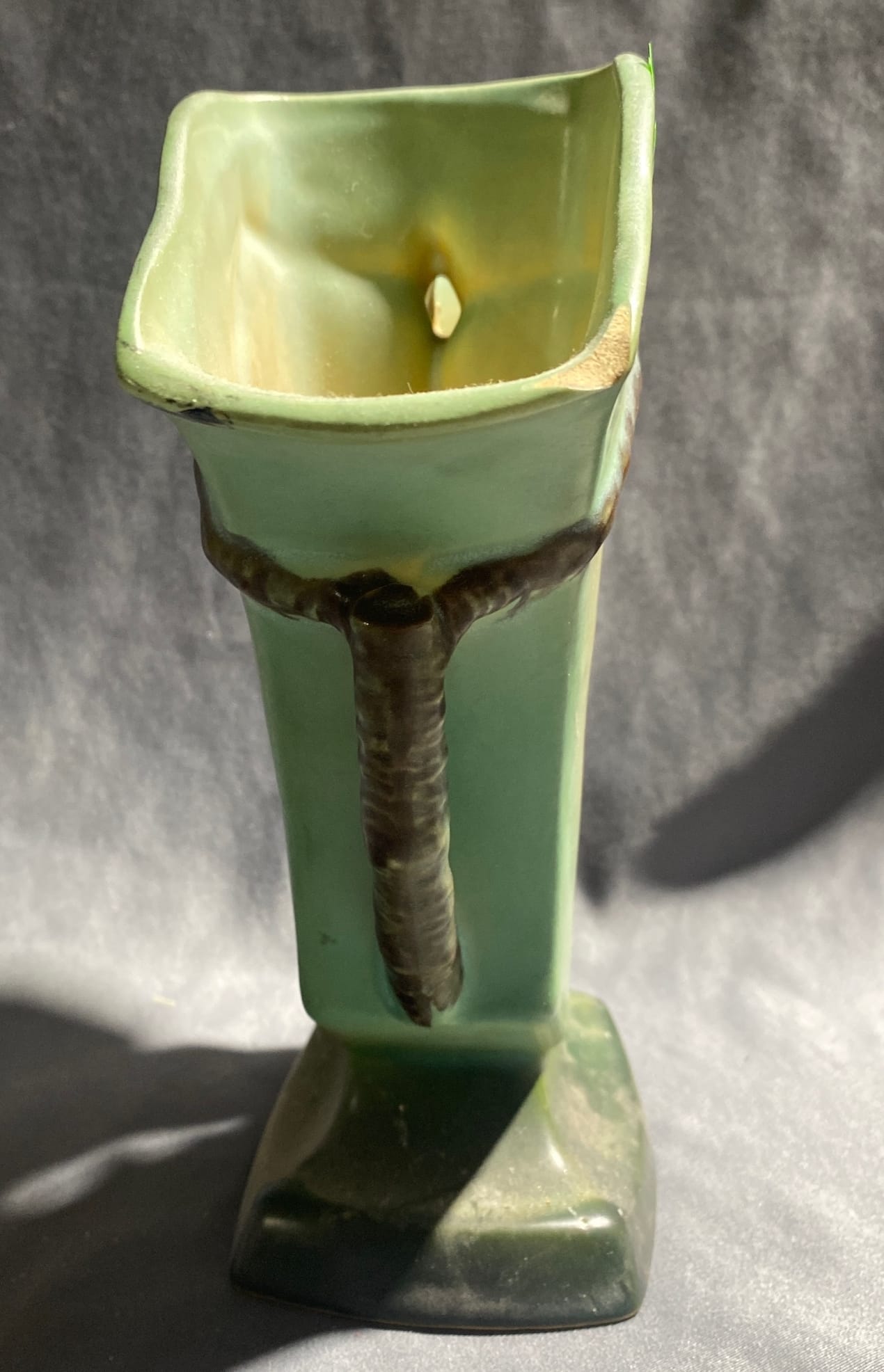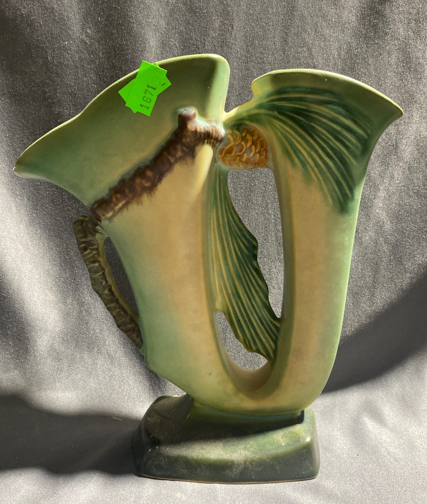 1256 Roseville ceramic candlestick holders 2"x4", Roseville planter 2"x9"