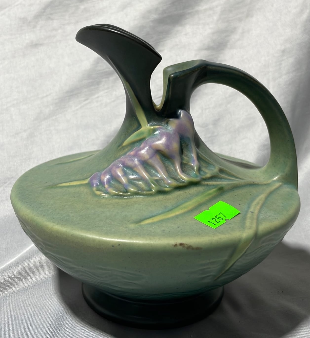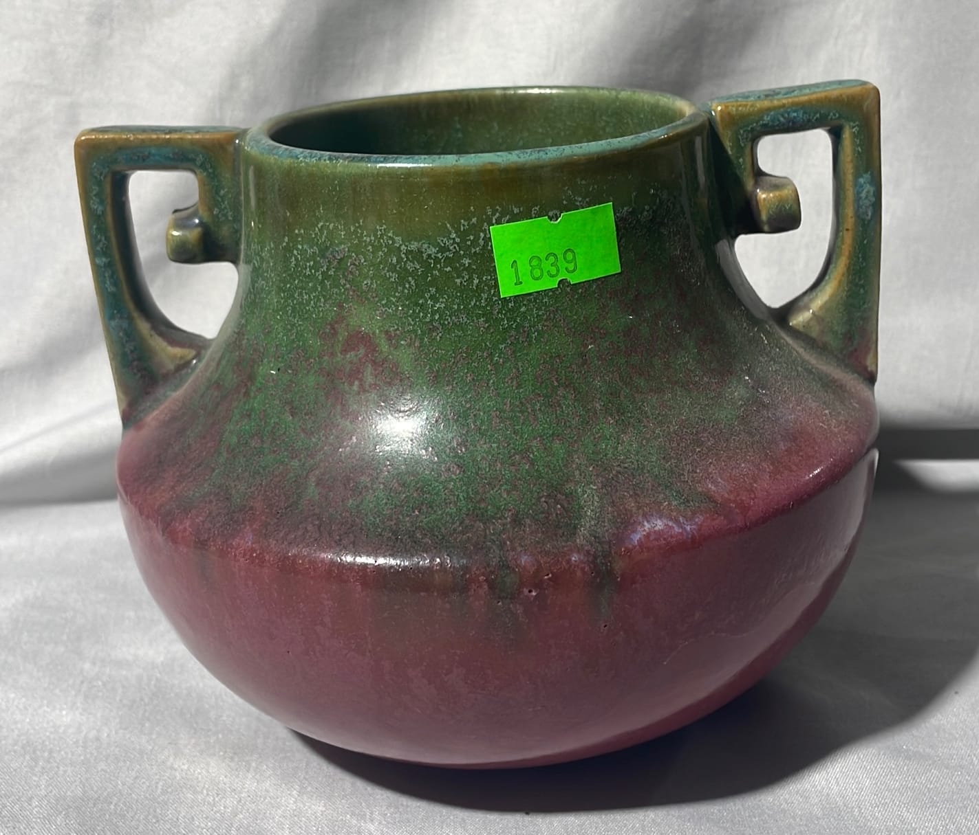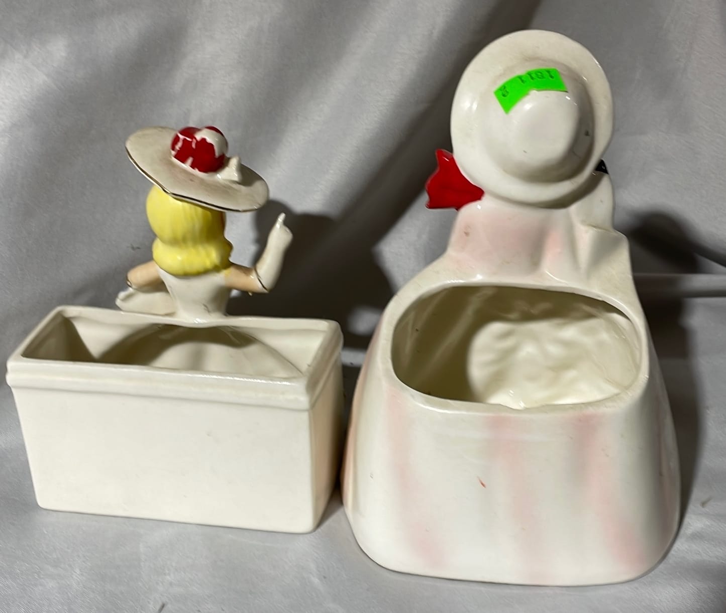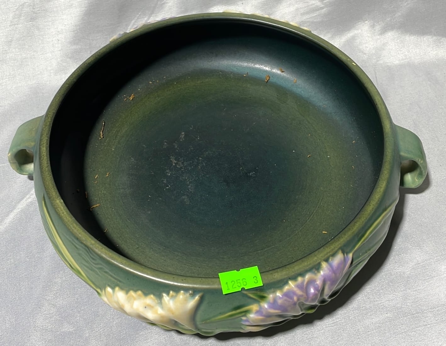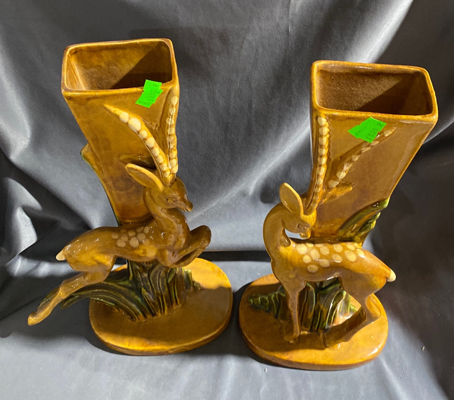 1256 Roseville ceramic candlestick holders 2"x4", Roseville planter 2"x9"
