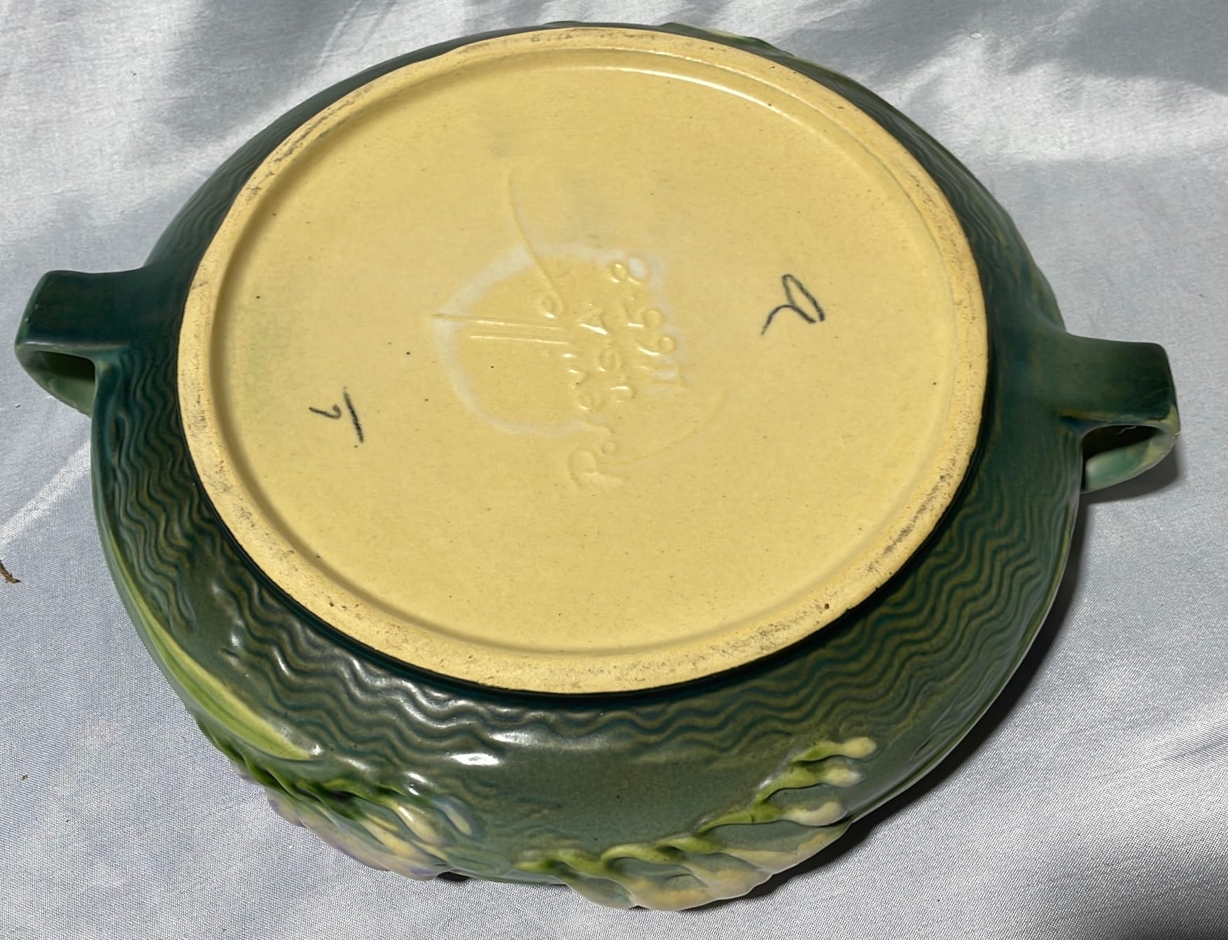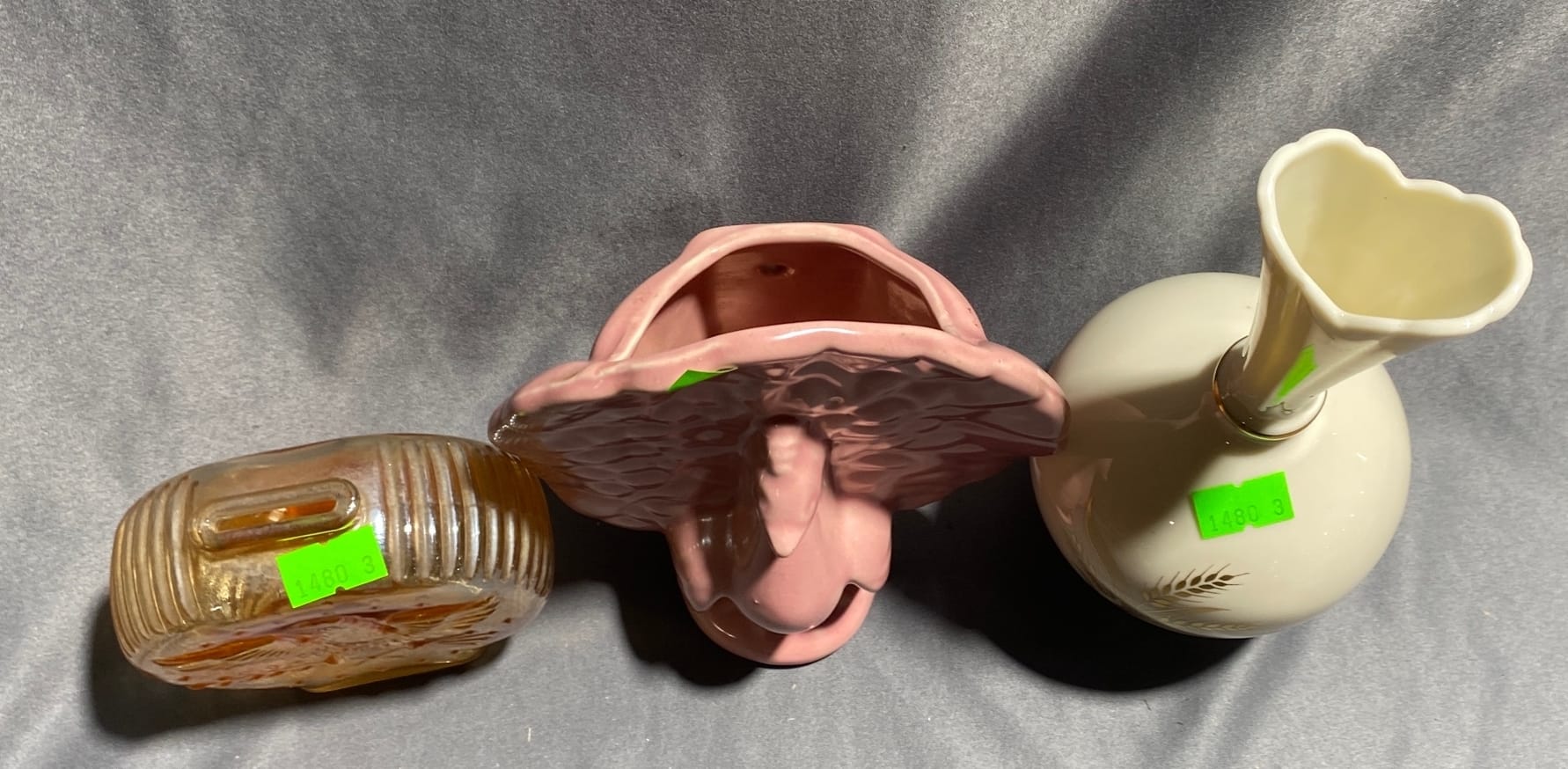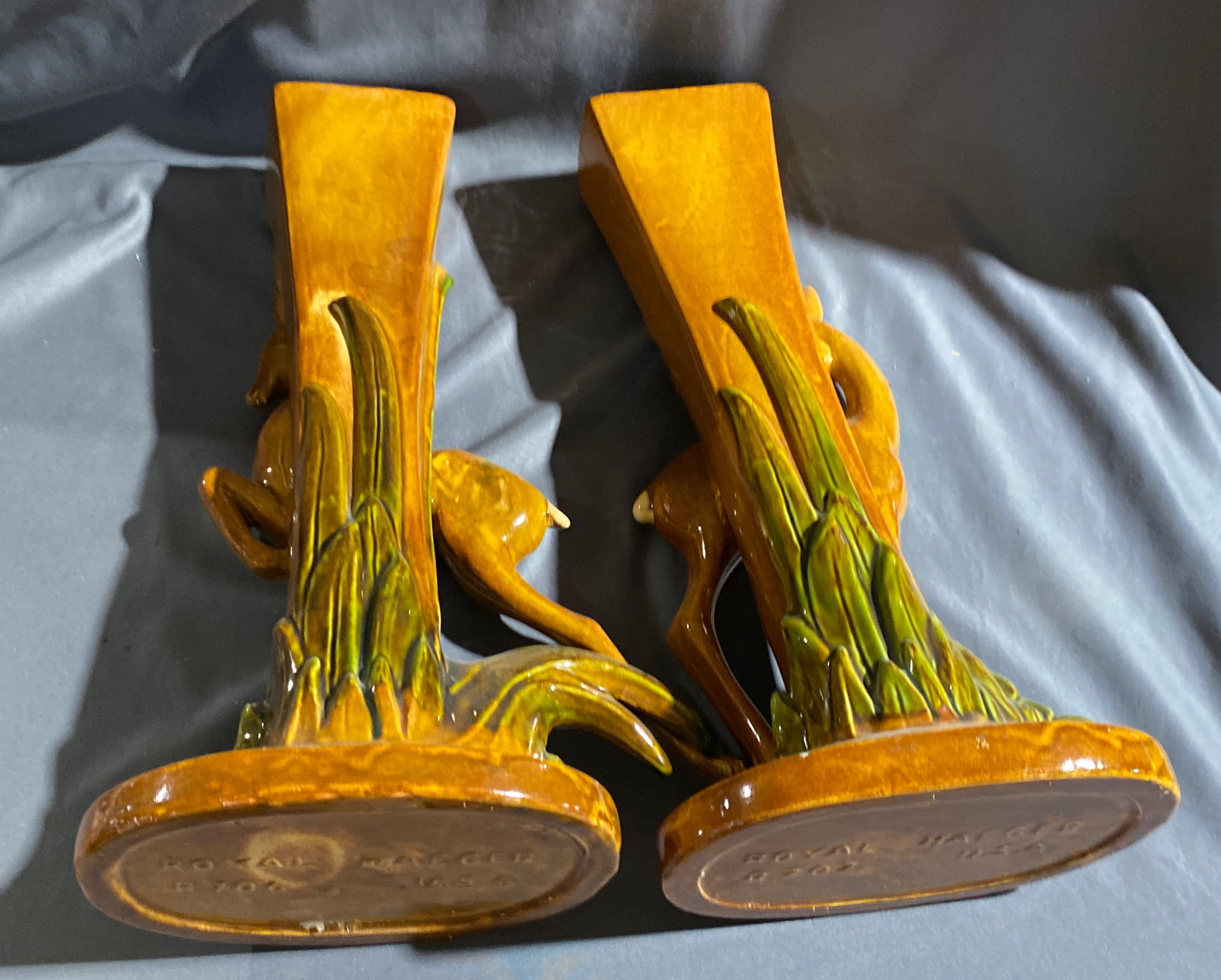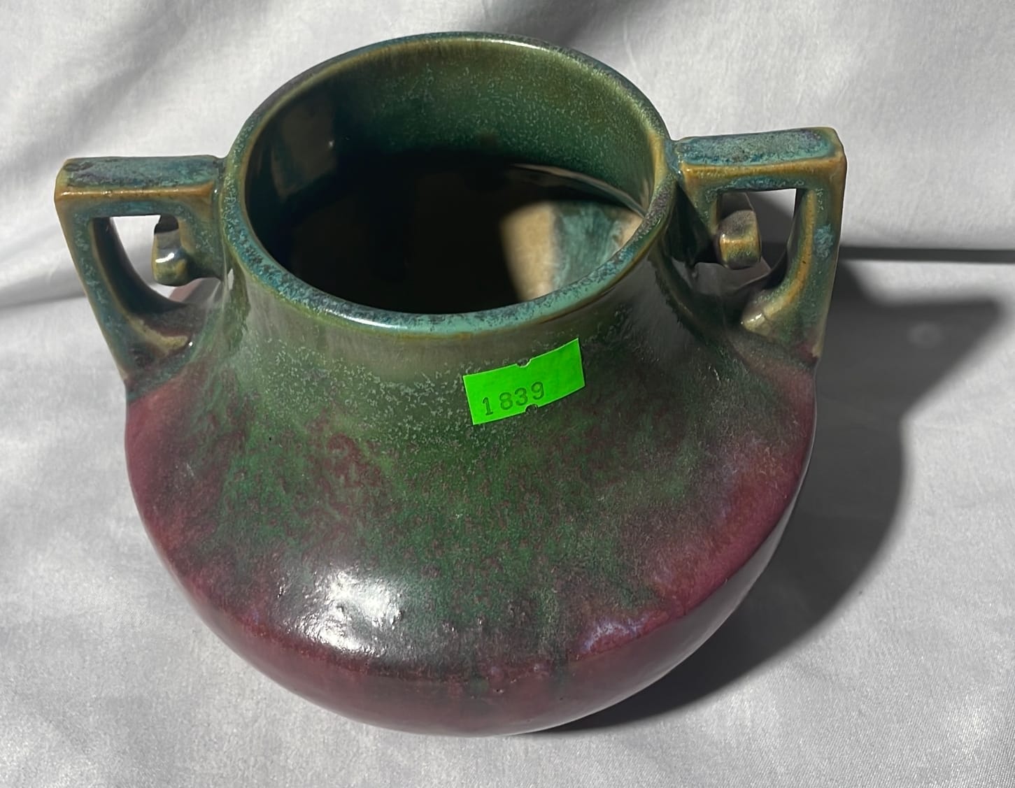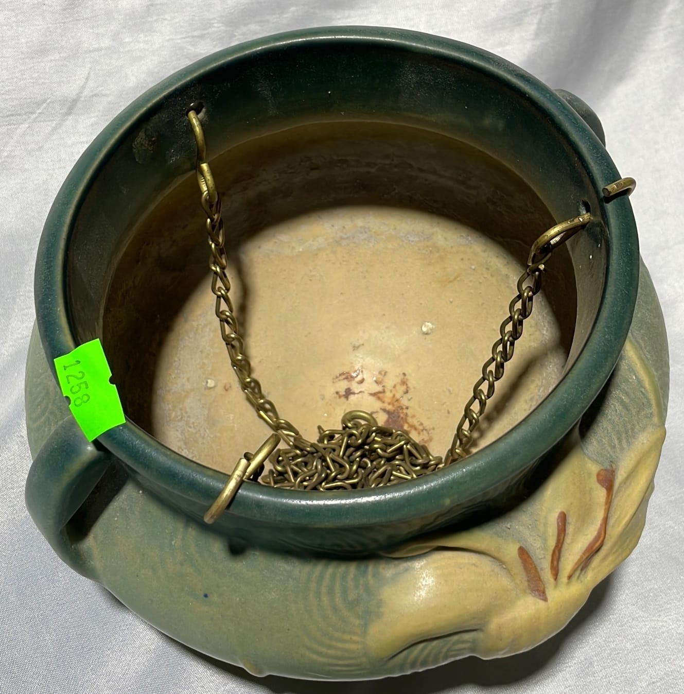 1256 Roseville ceramic candlestick holders 2"x4", Roseville planter 2"x9"
