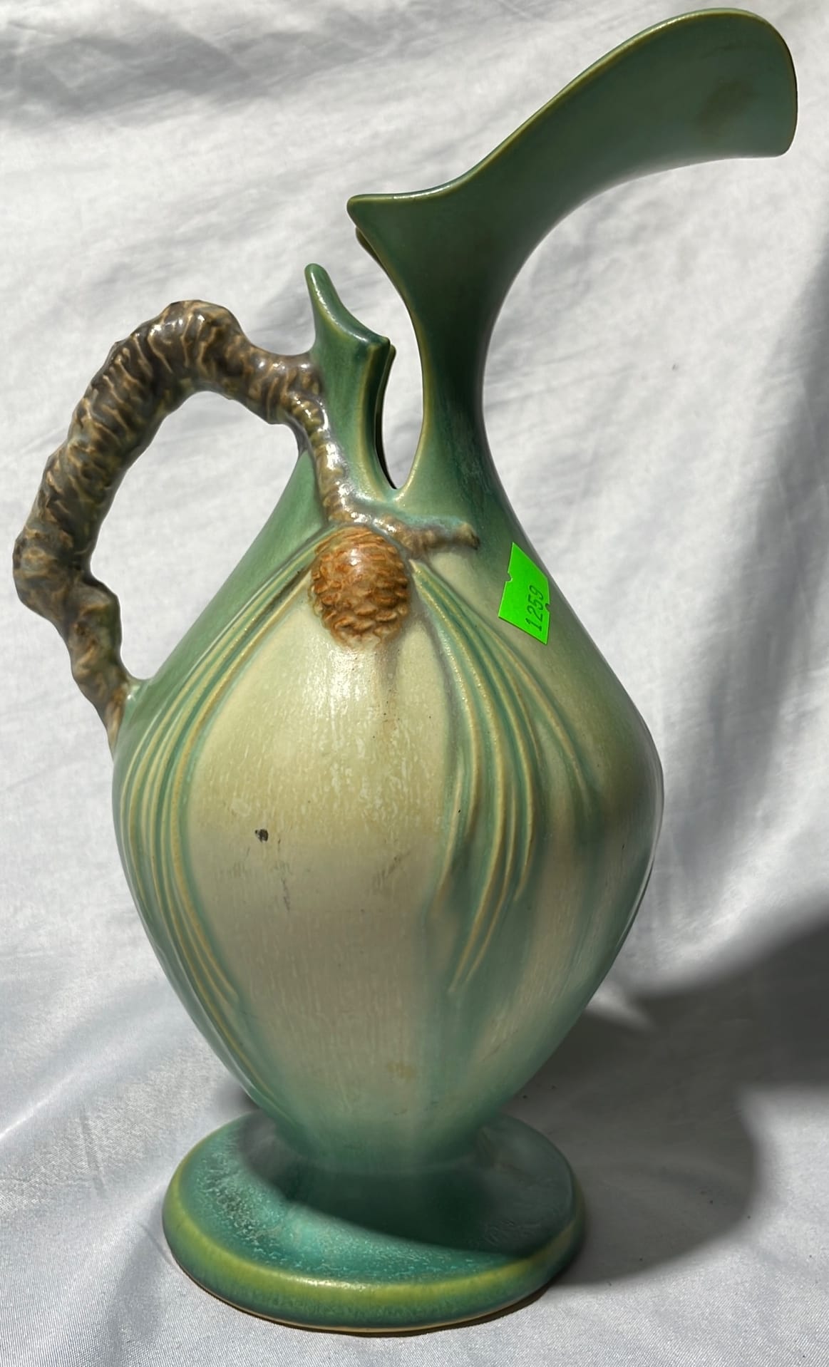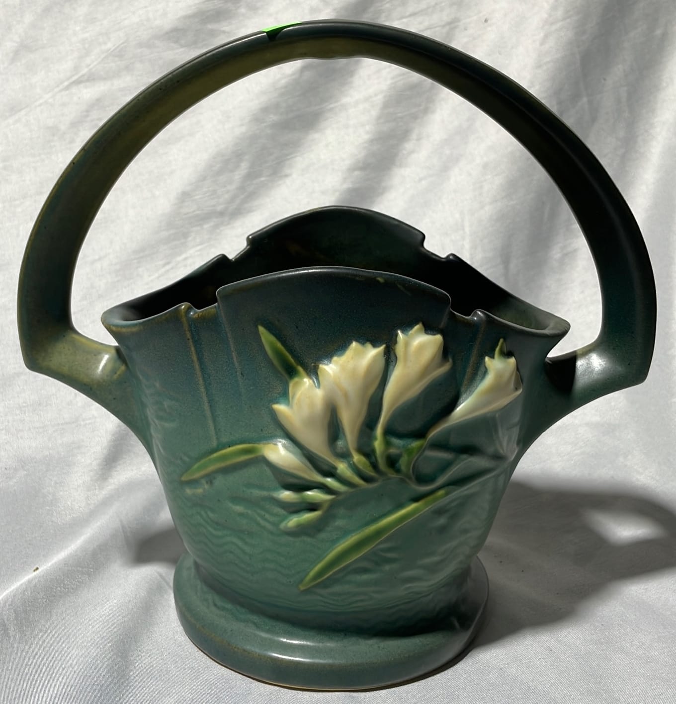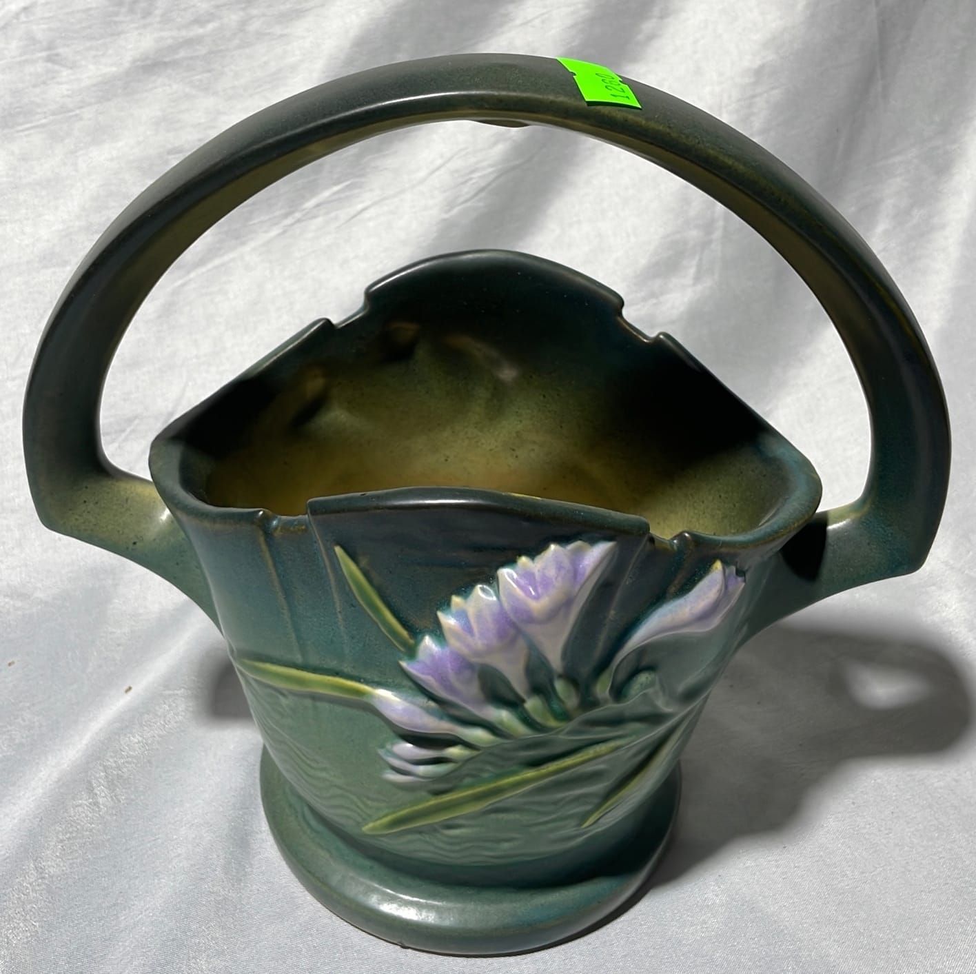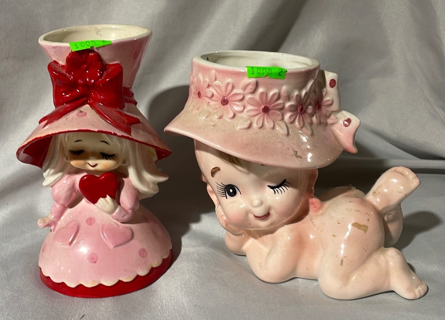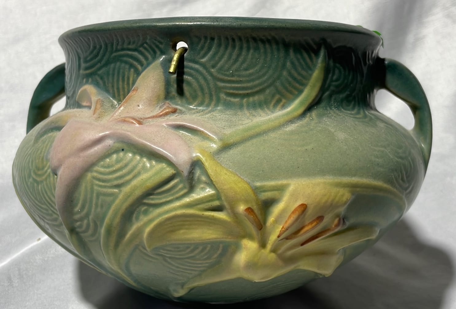 1256 Roseville ceramic candlestick holders 2"x4", Roseville planter 2"x9"