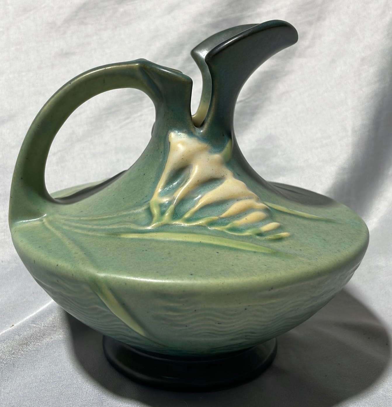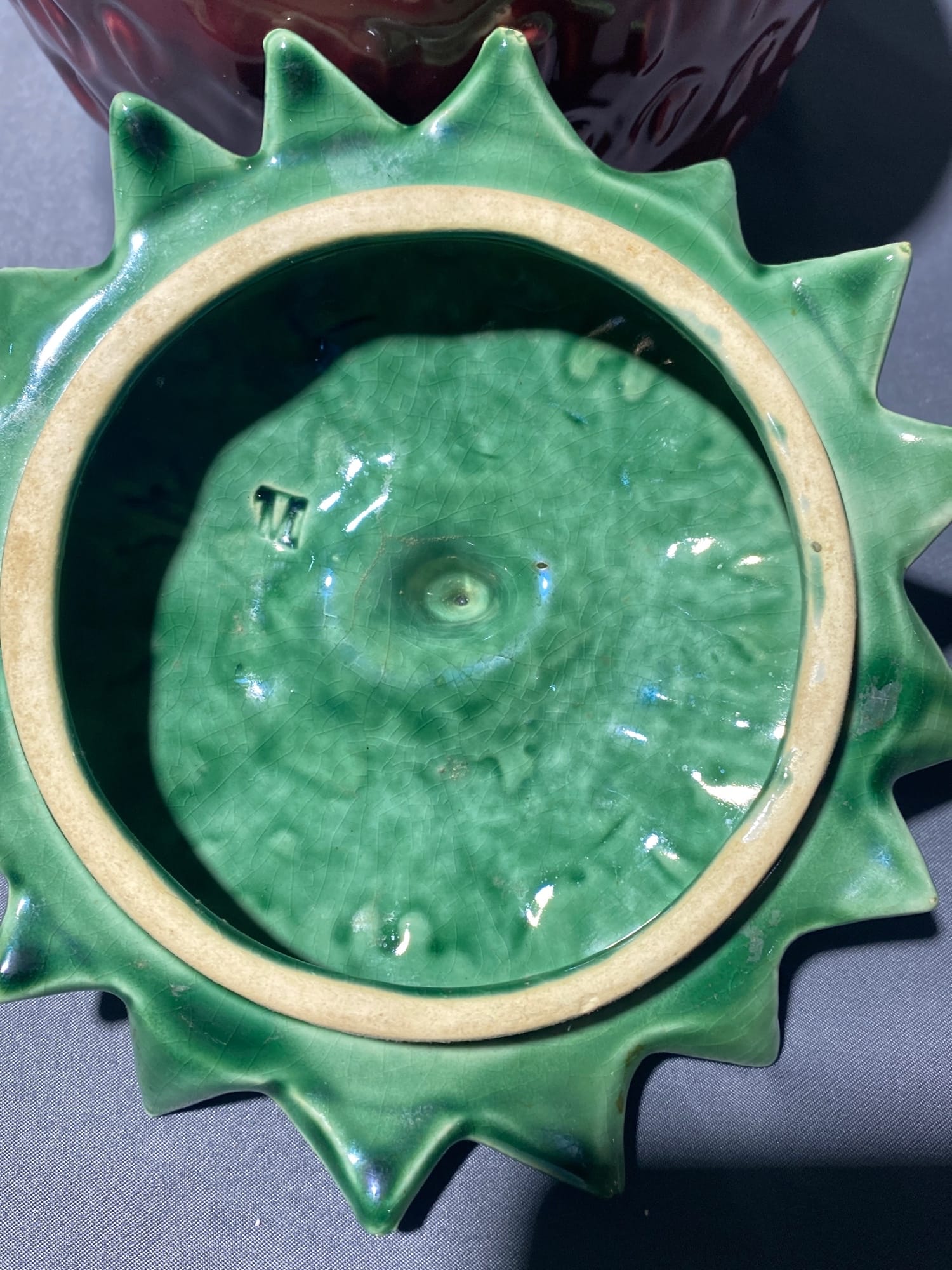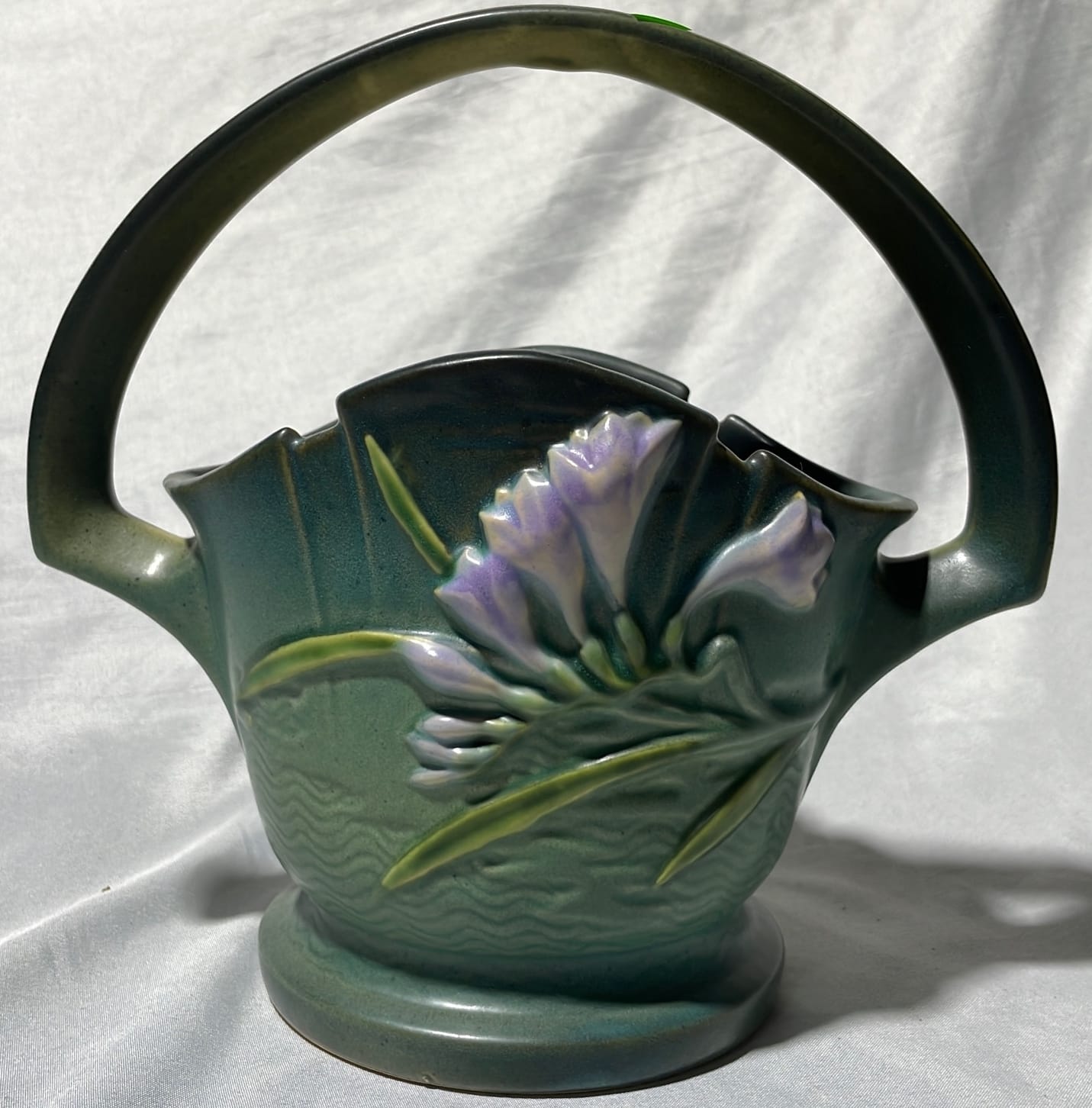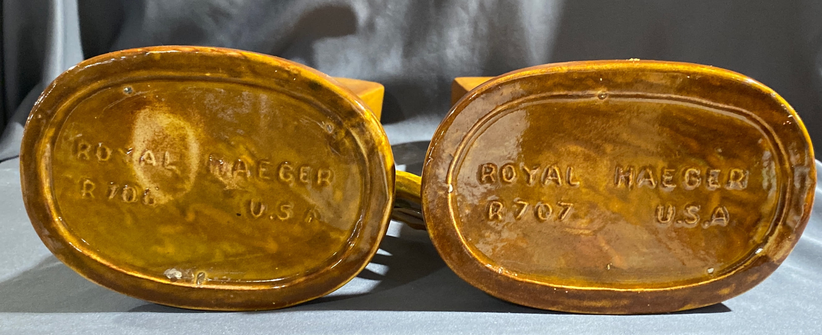 1256 Roseville ceramic candlestick holders 2"x4", Roseville planter 2"x9"