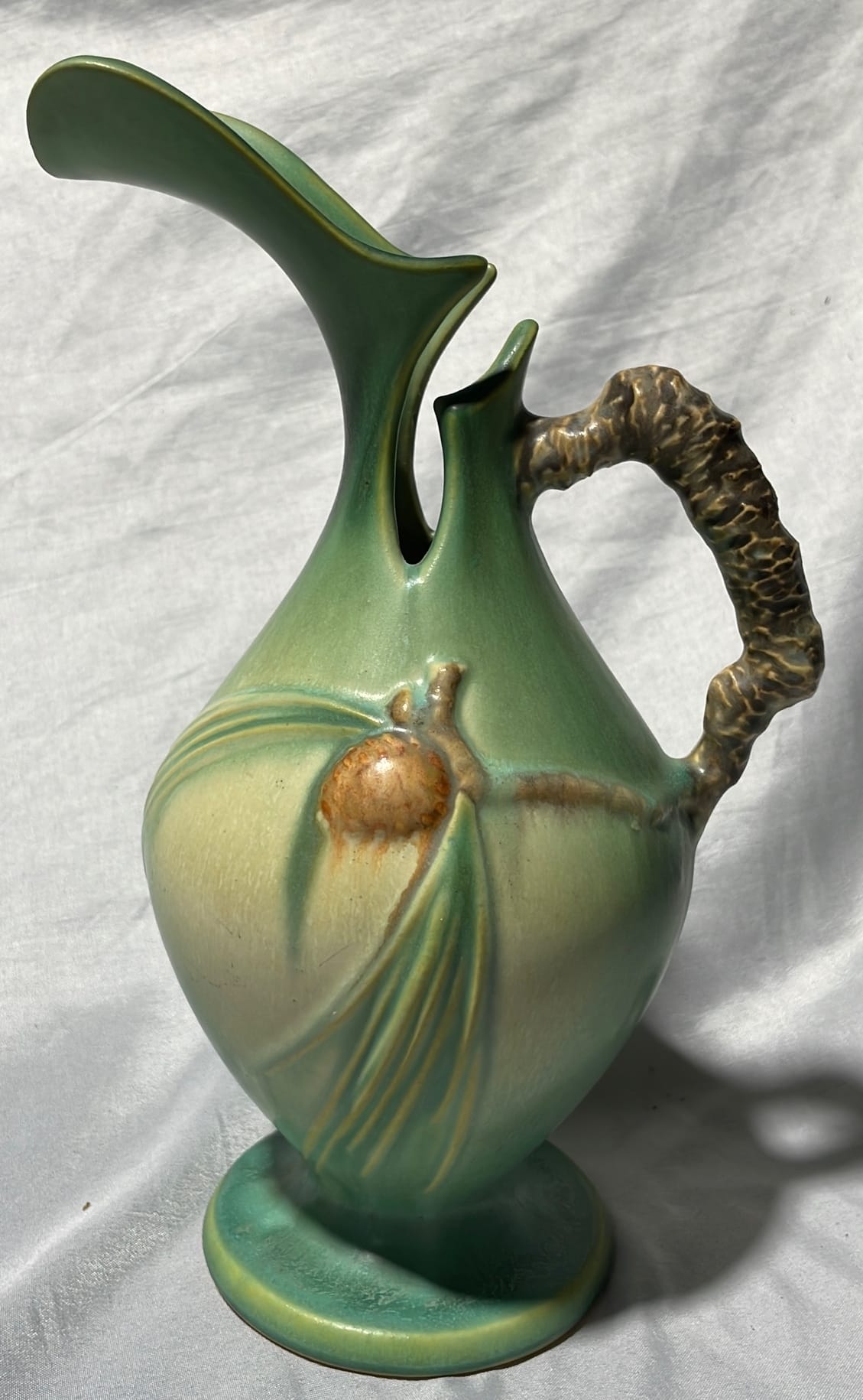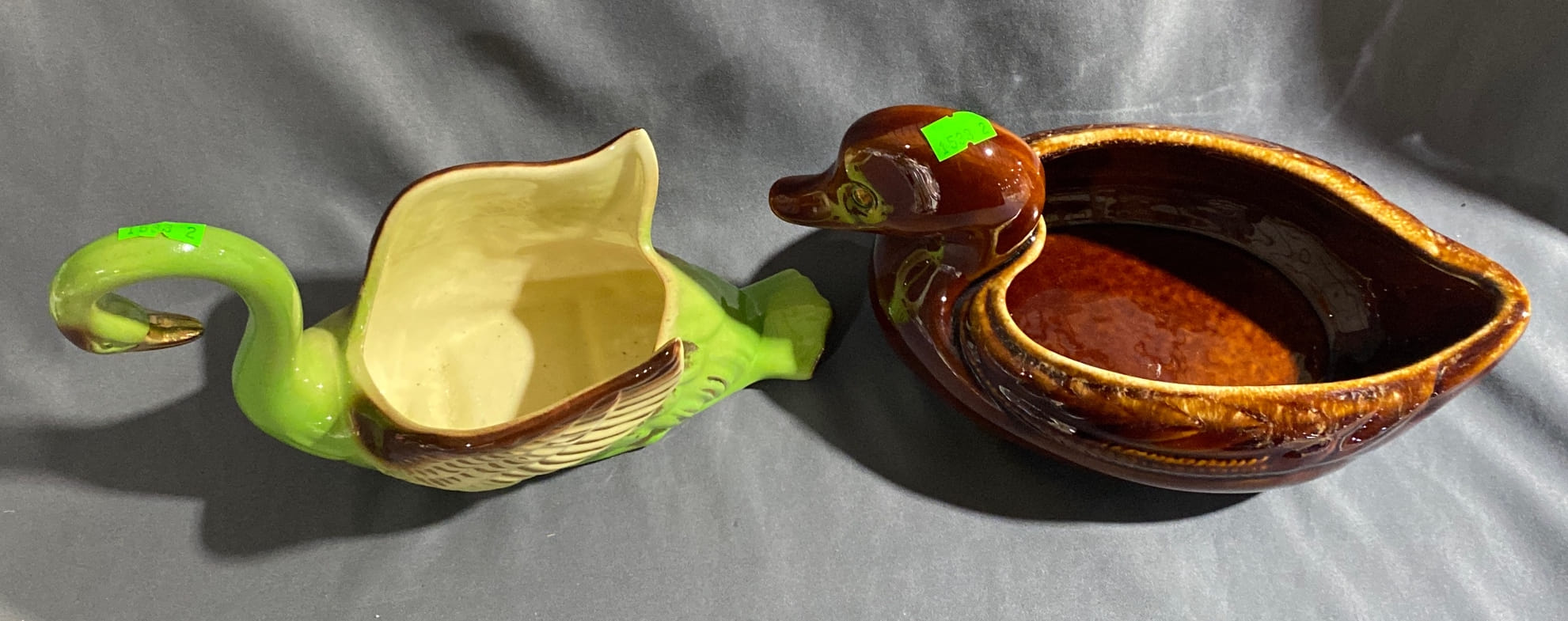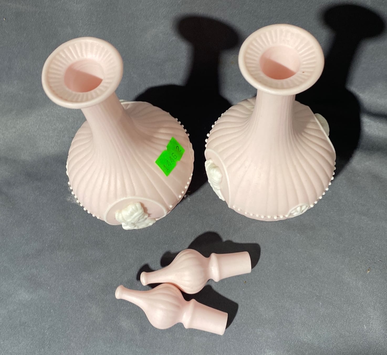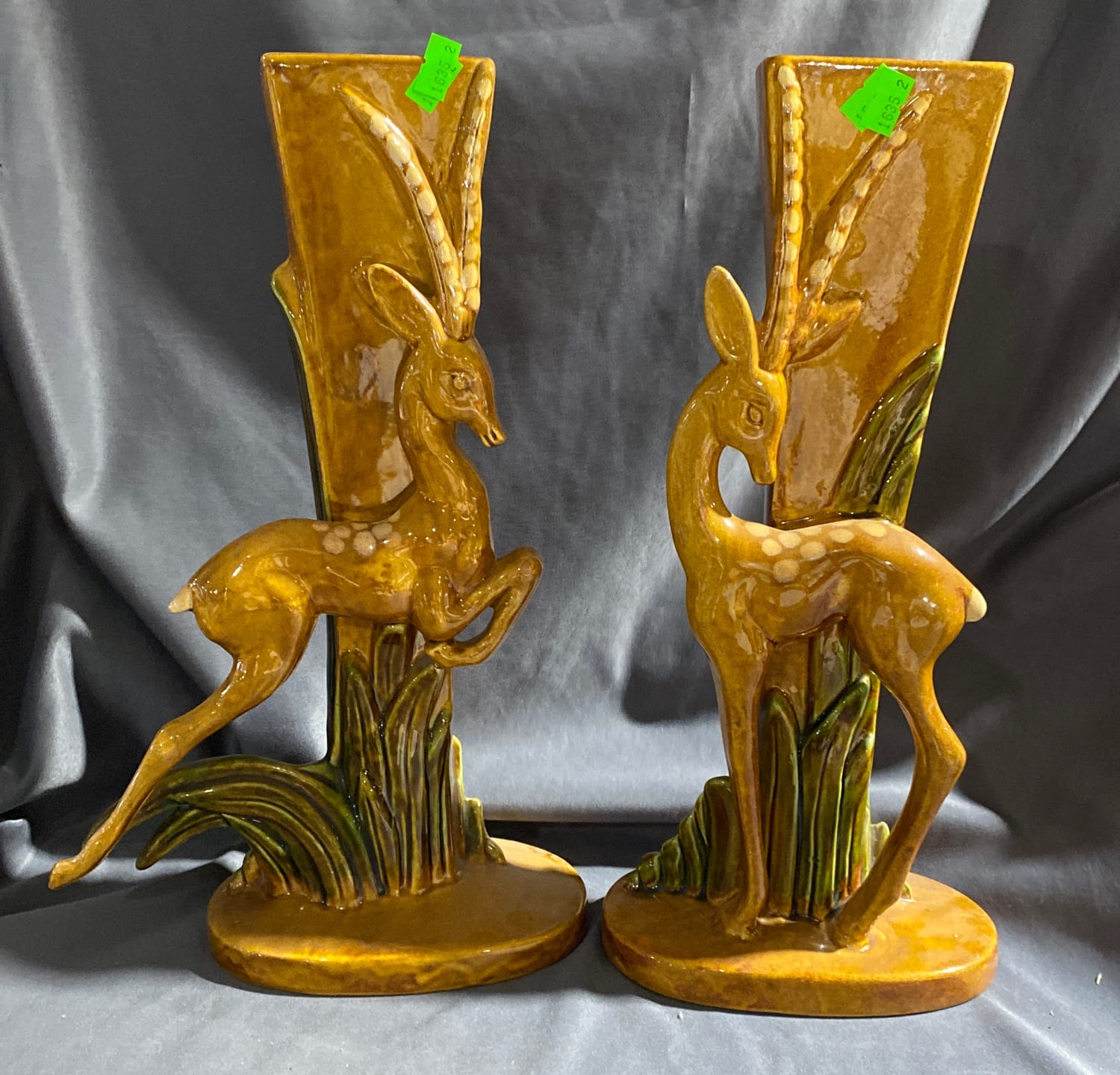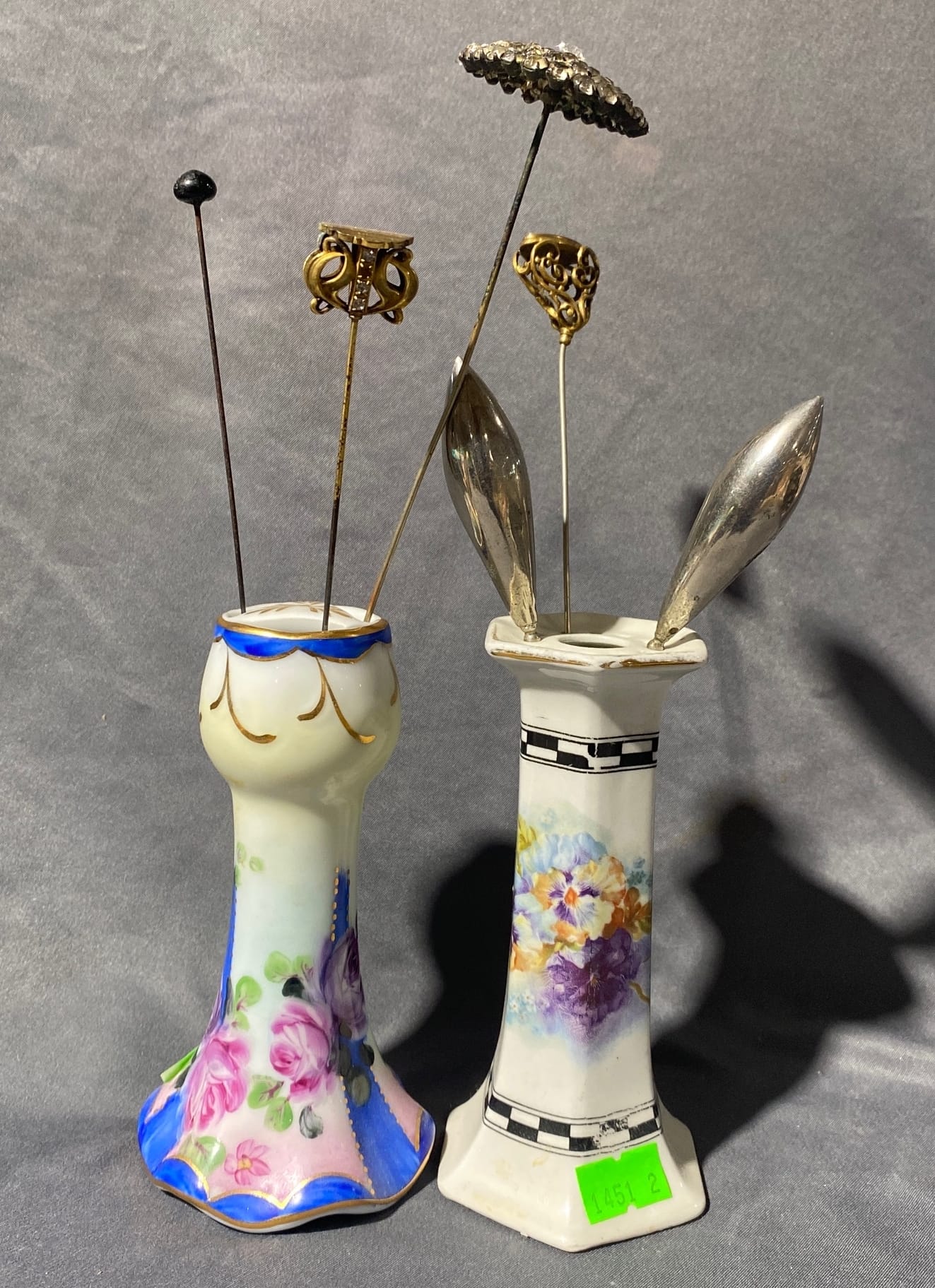 1256 Roseville ceramic candlestick holders 2"x4", Roseville planter 2"x9"