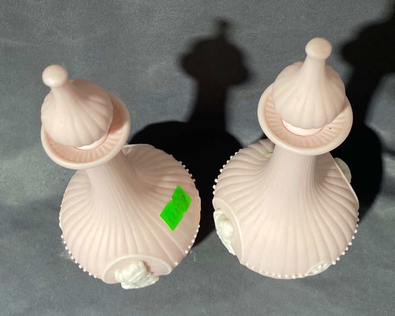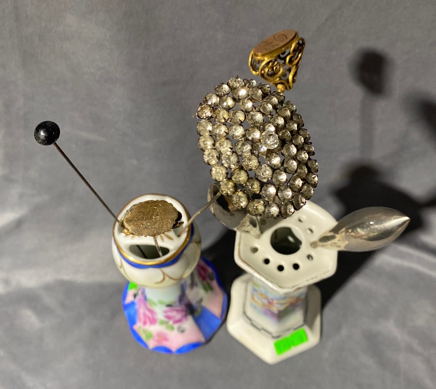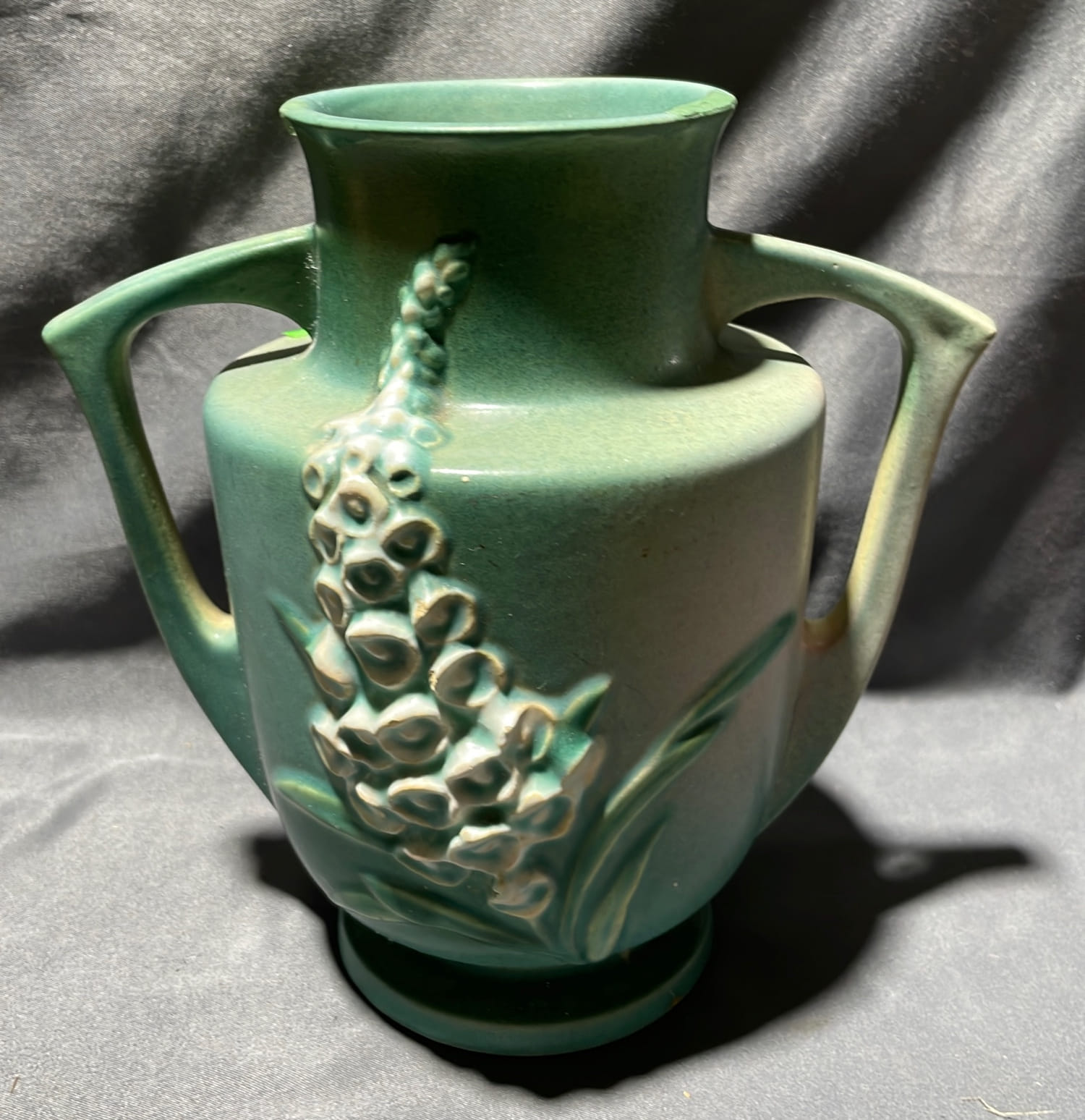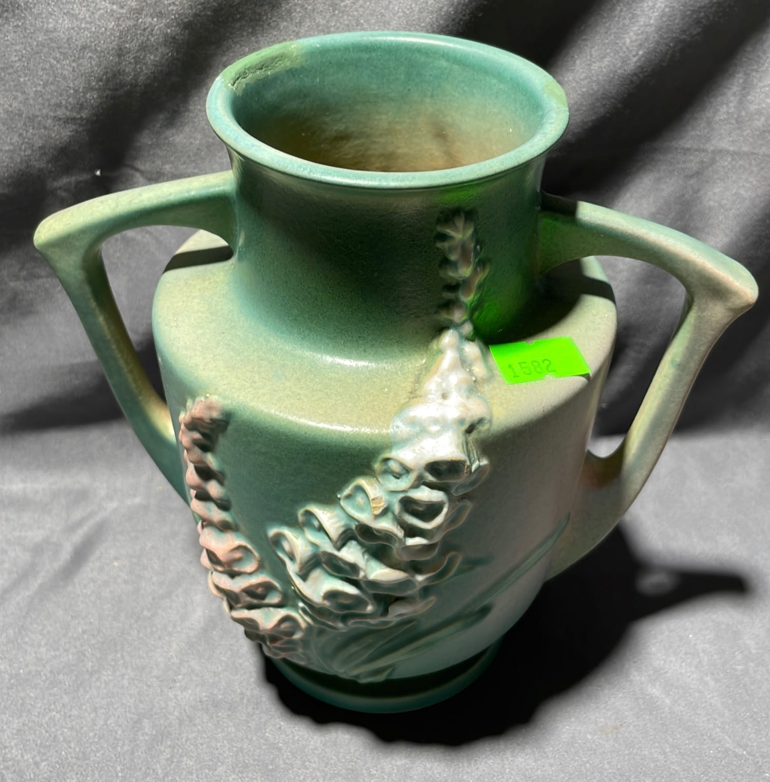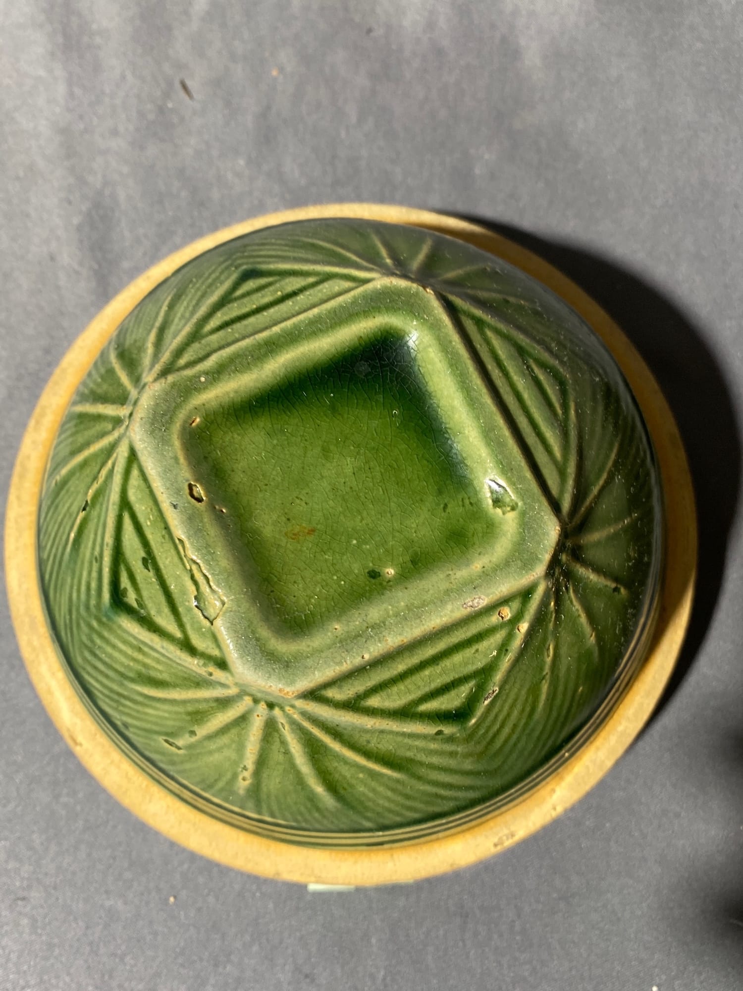 1256 Roseville ceramic candlestick holders 2"x4", Roseville planter 2"x9"