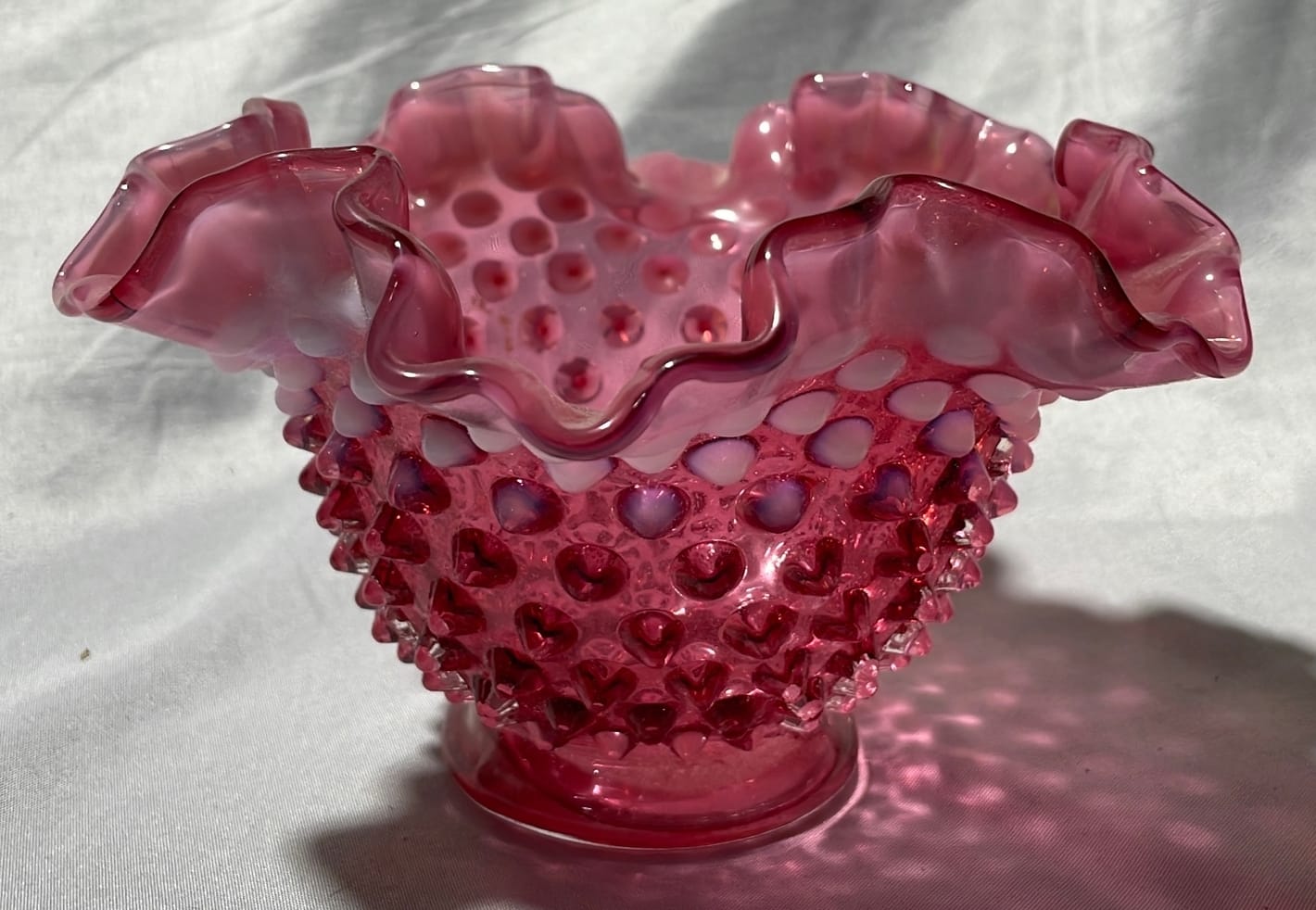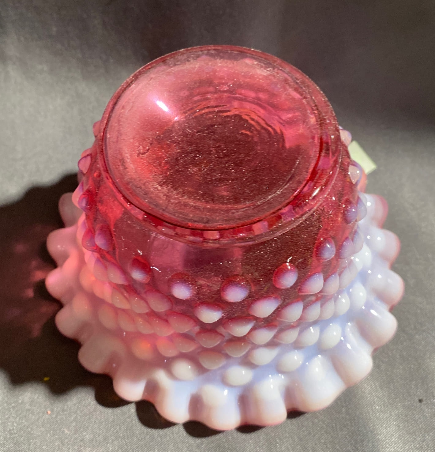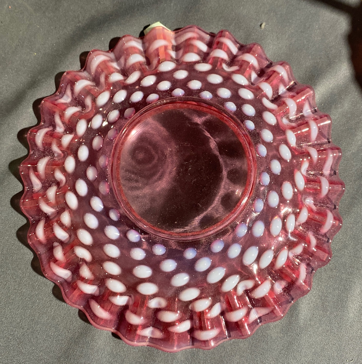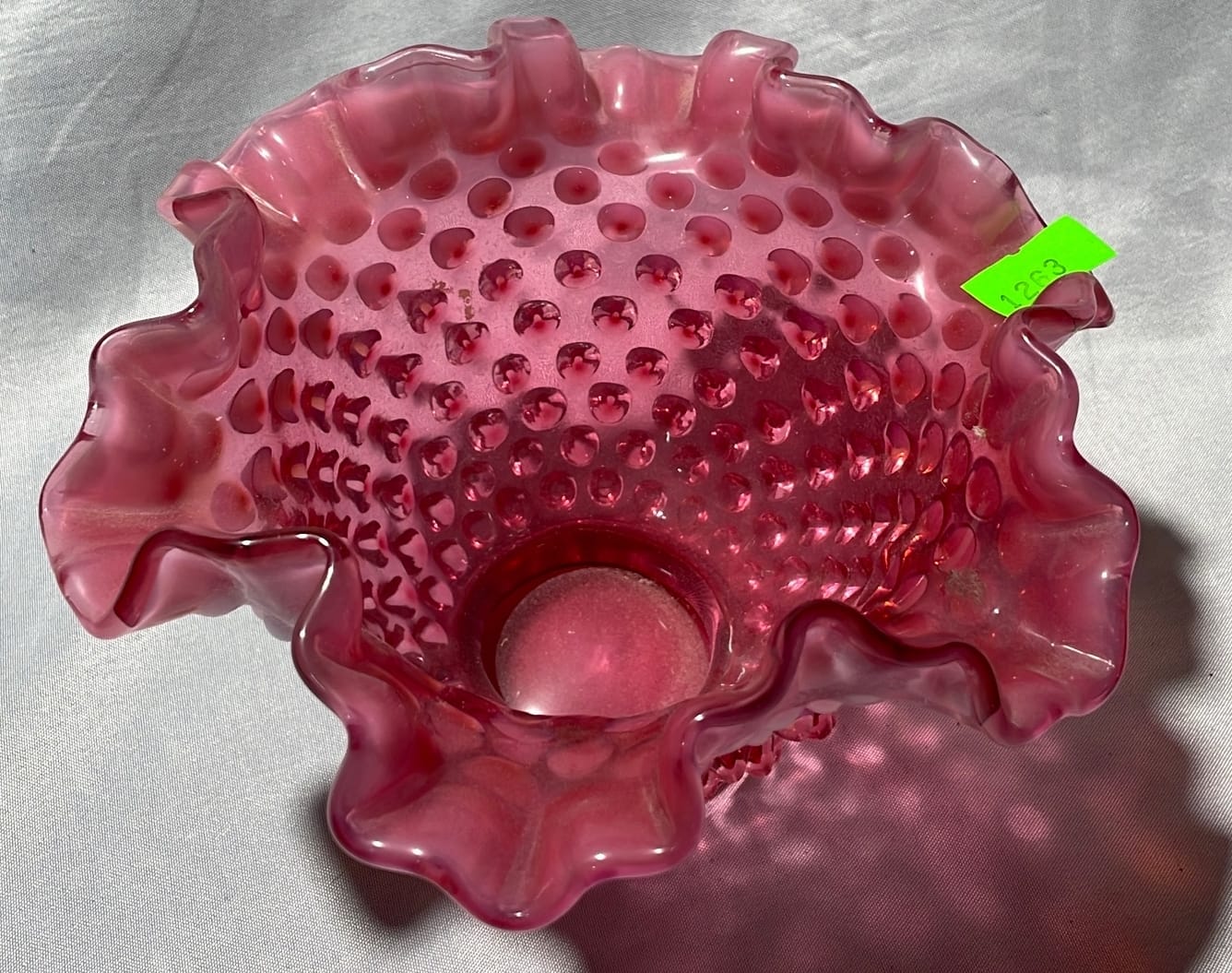 1263 Fenton cranberry hobnail bowl 4"x5"