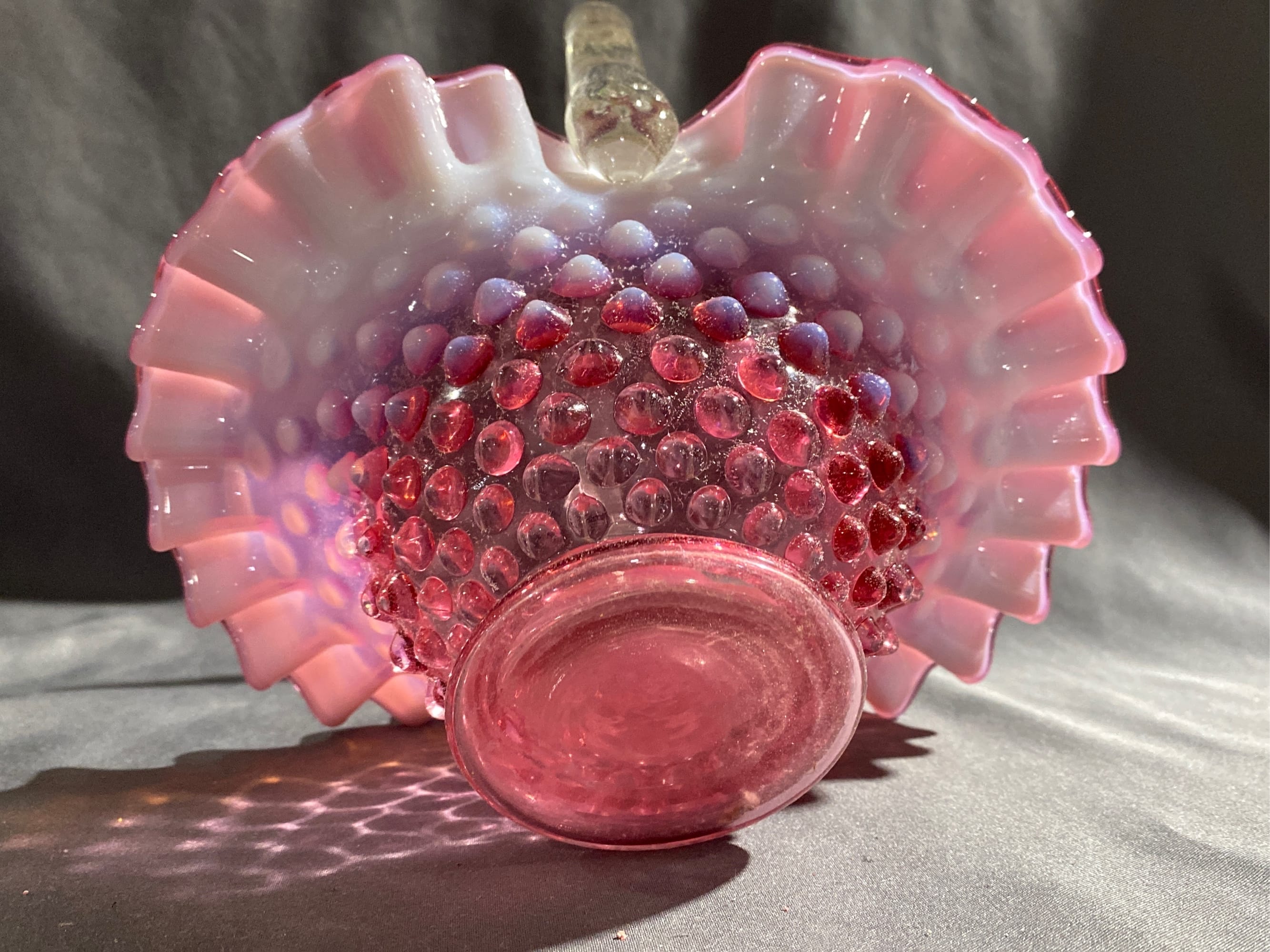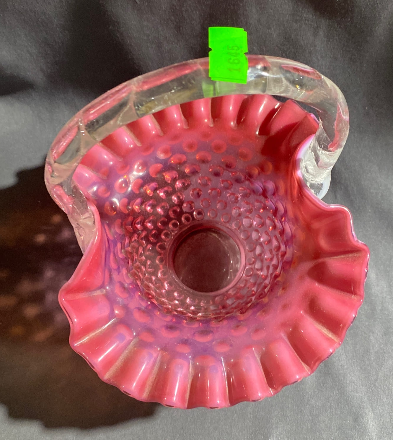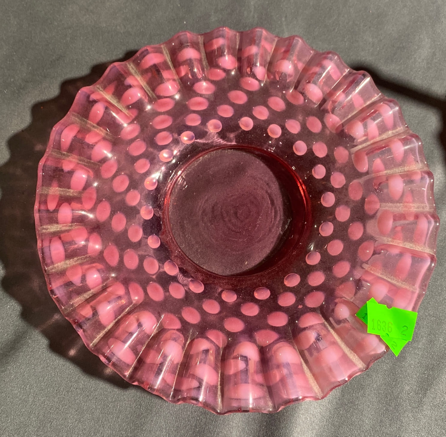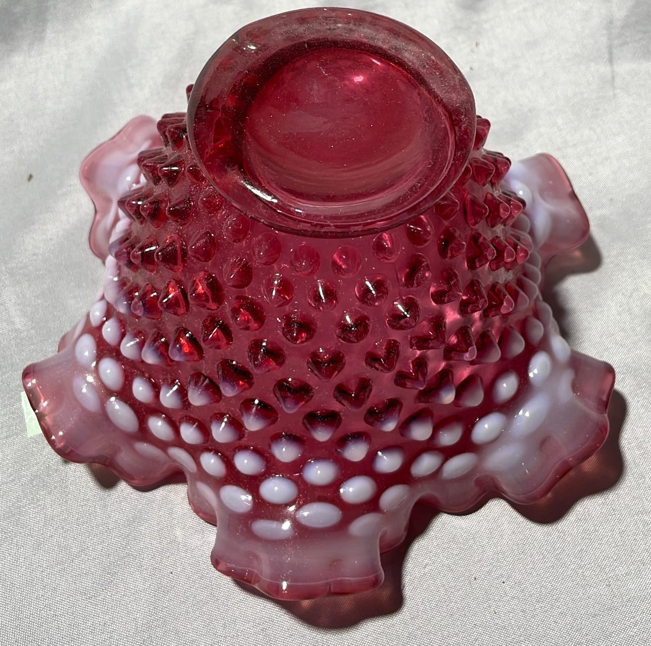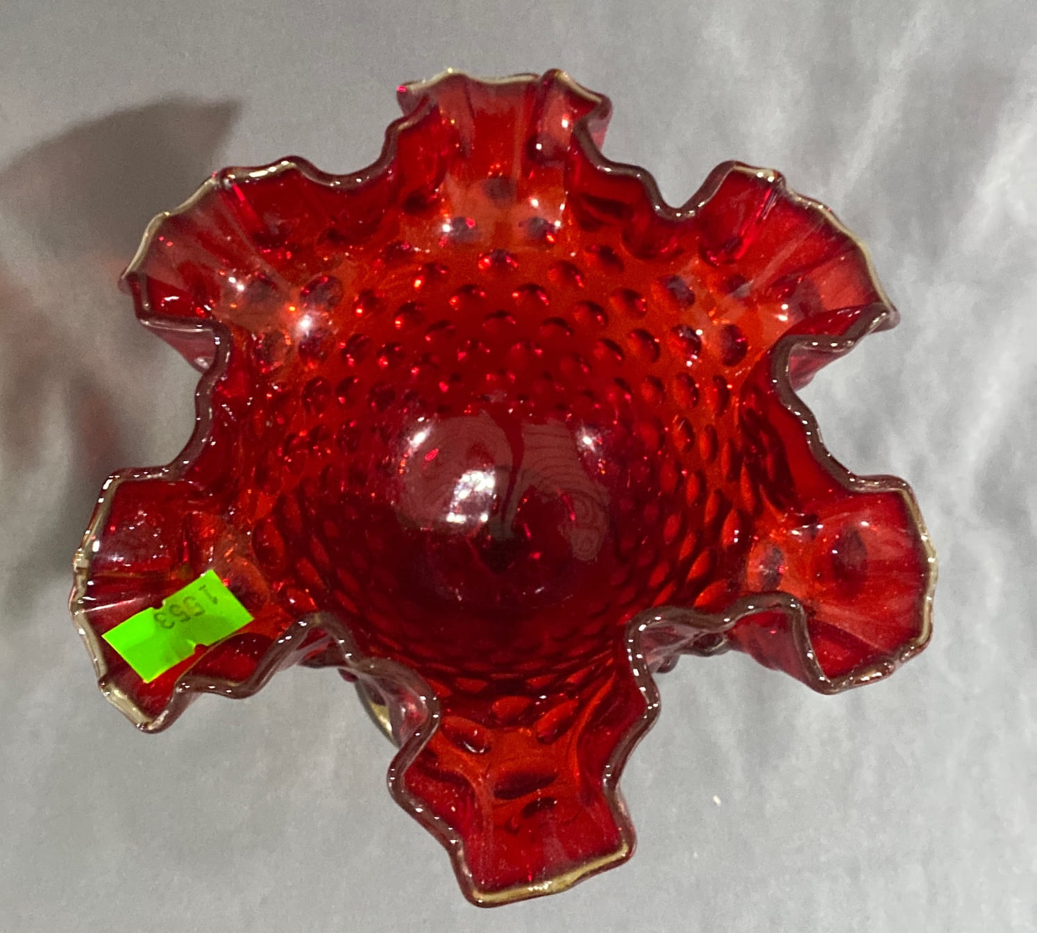 1263 Fenton cranberry hobnail bowl 4"x5"