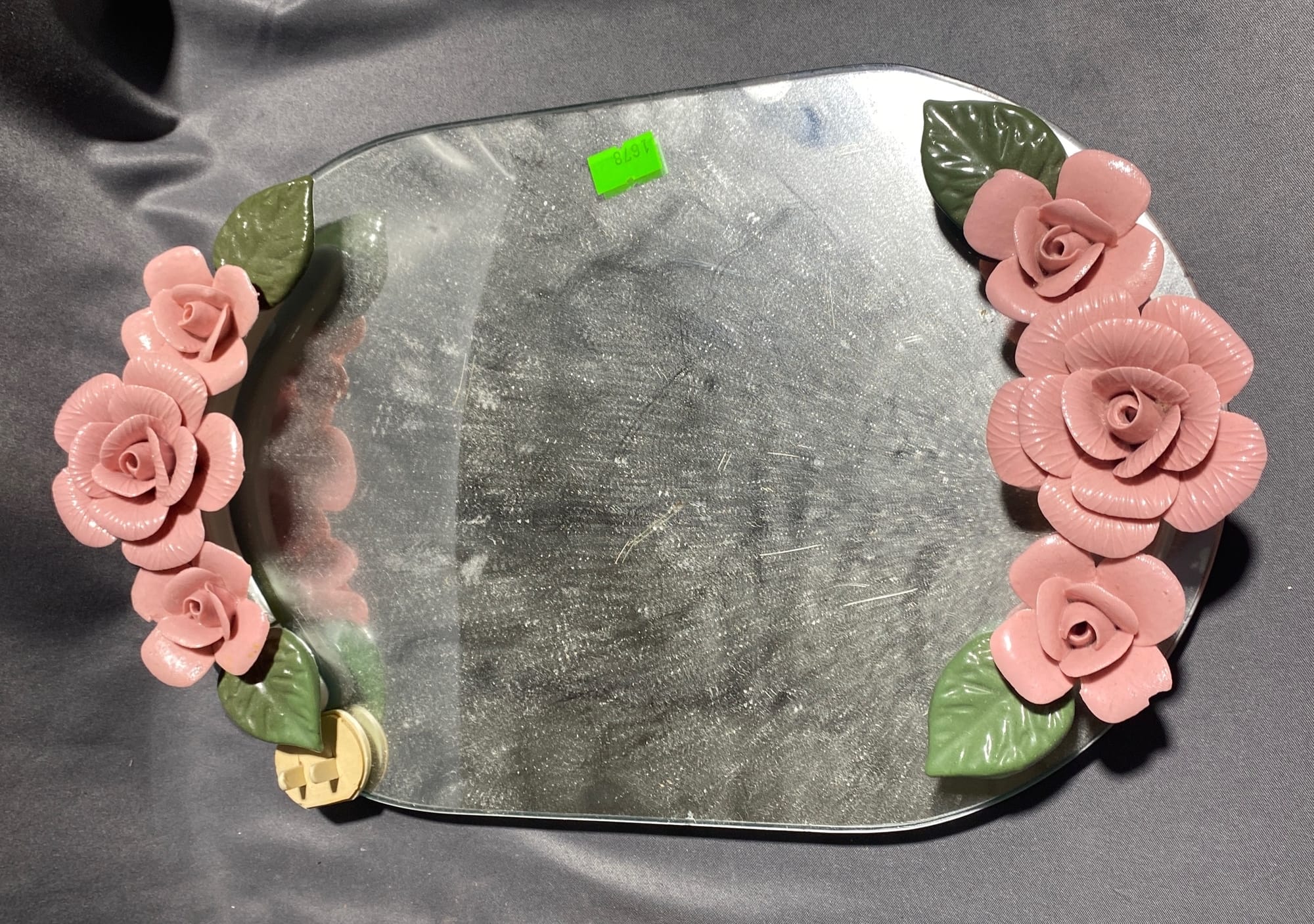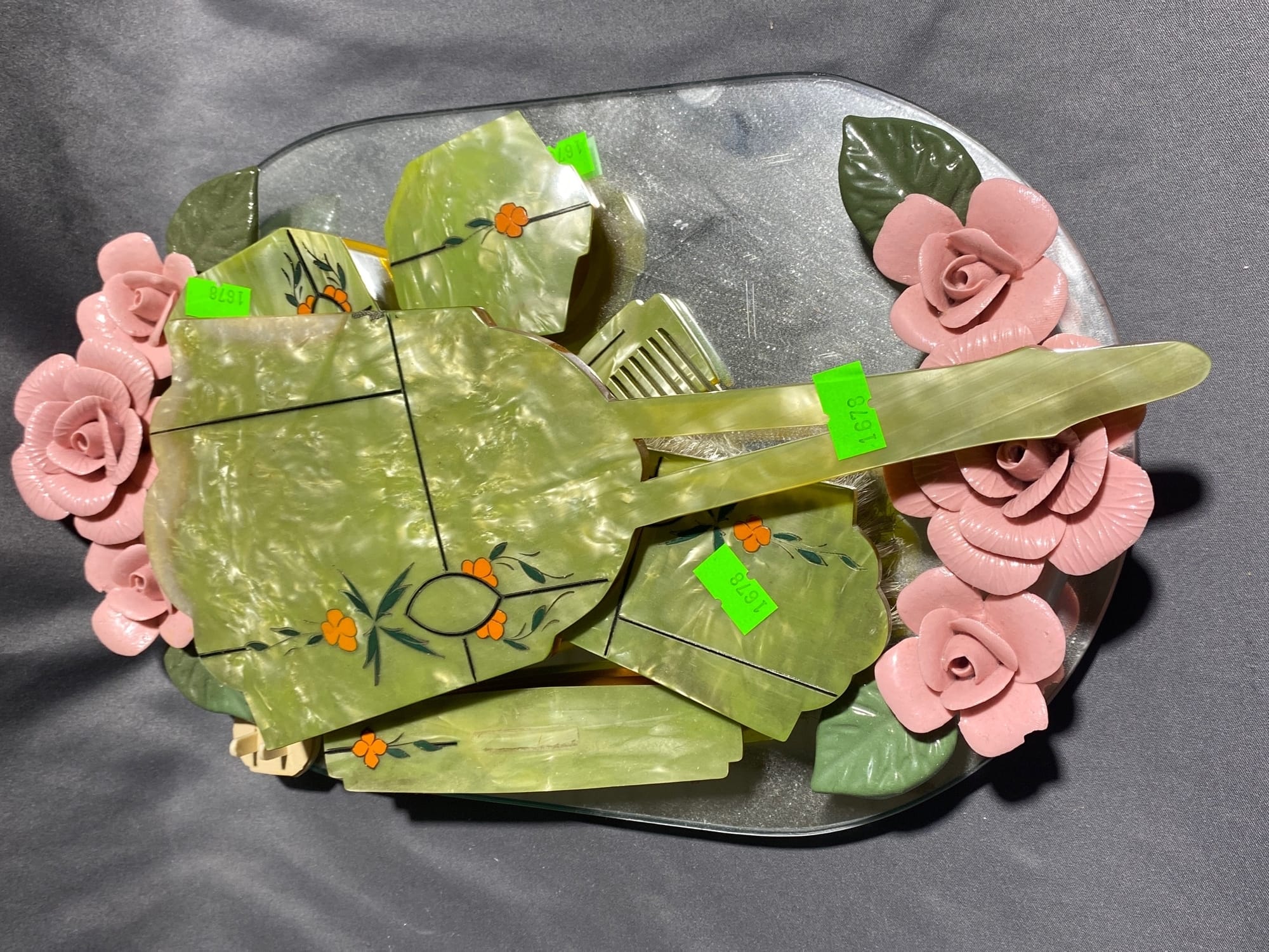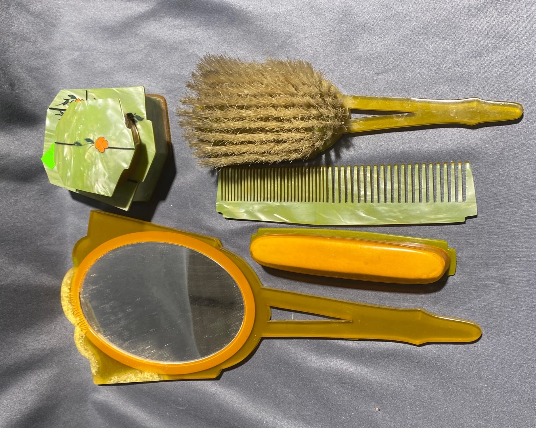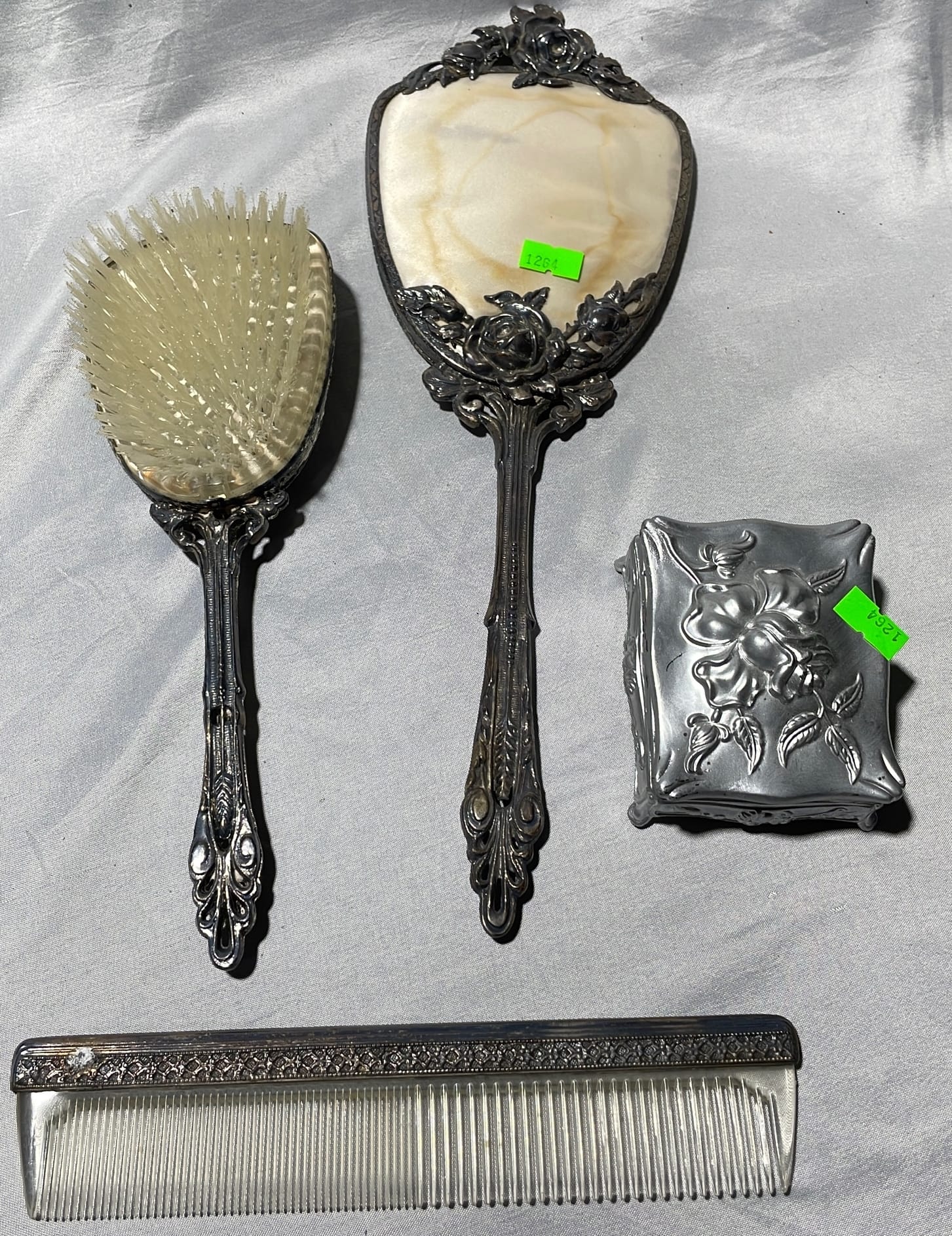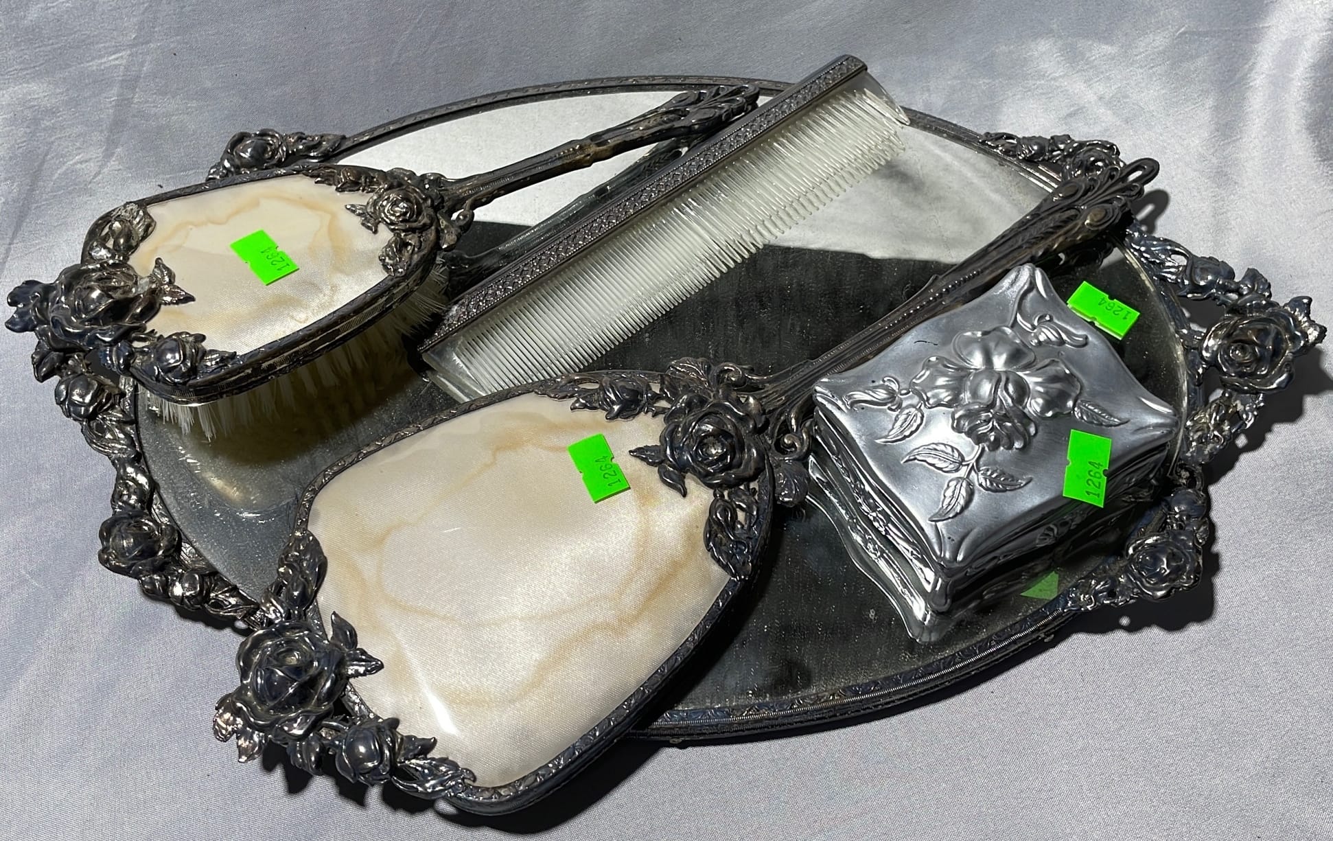 1264 Ladies vanity set with hand mirror, tray, brush, and comb