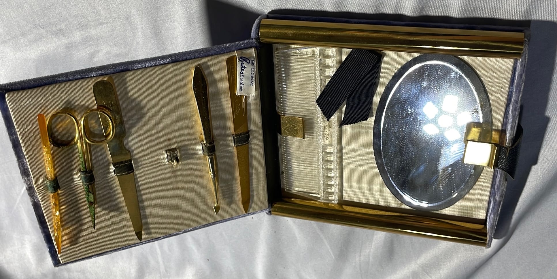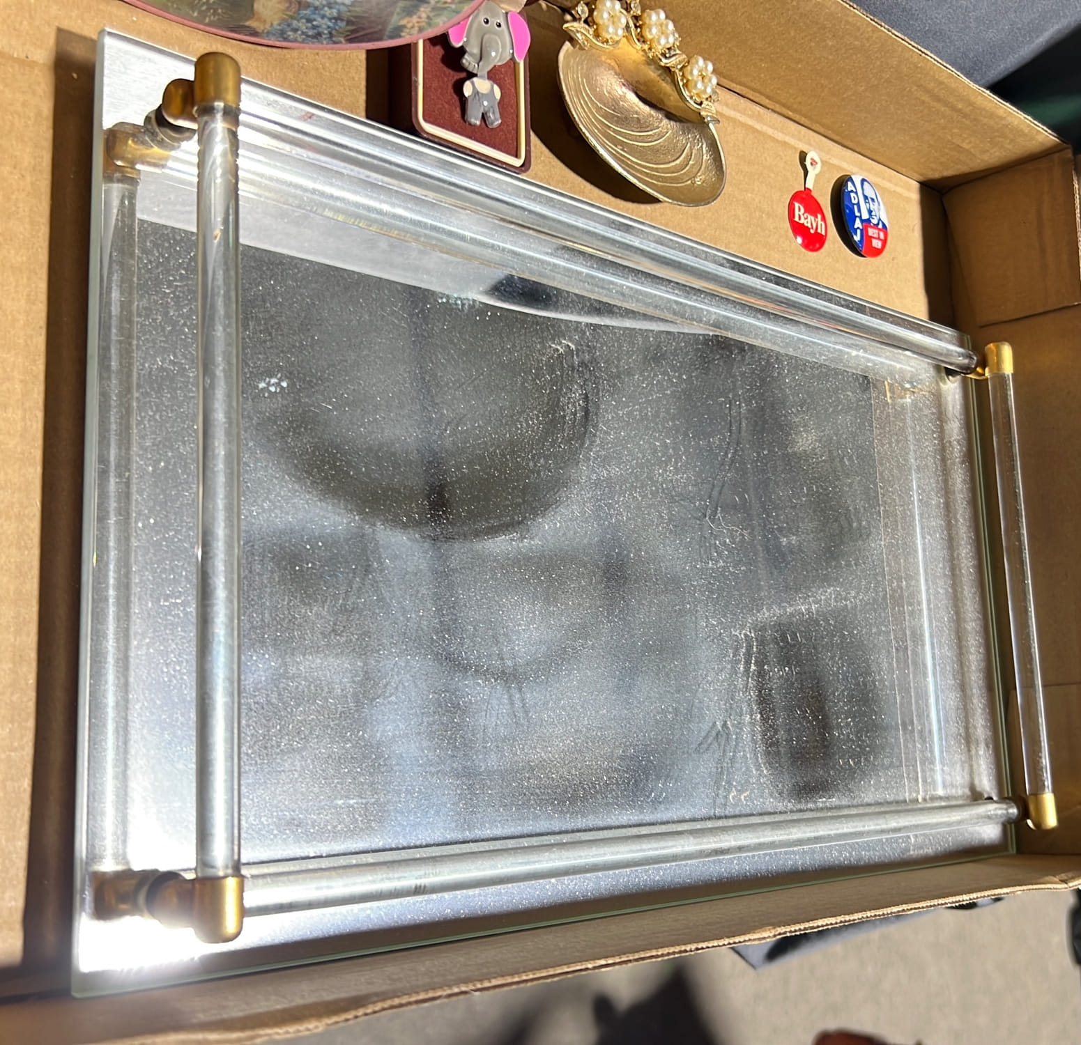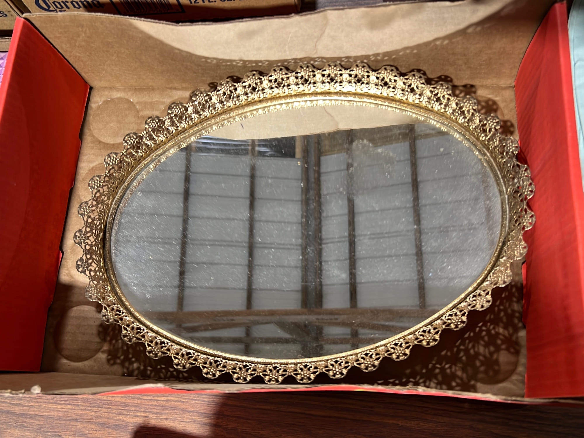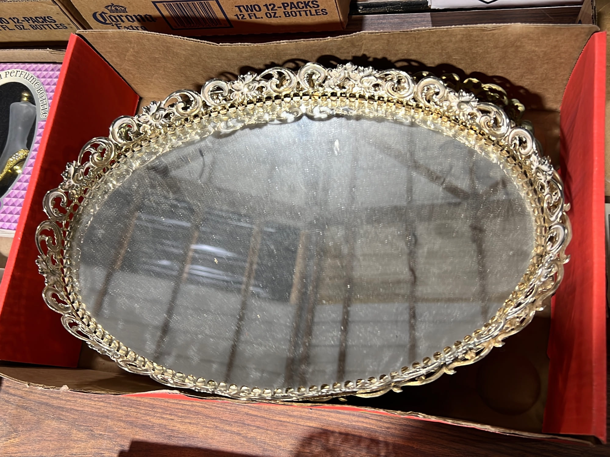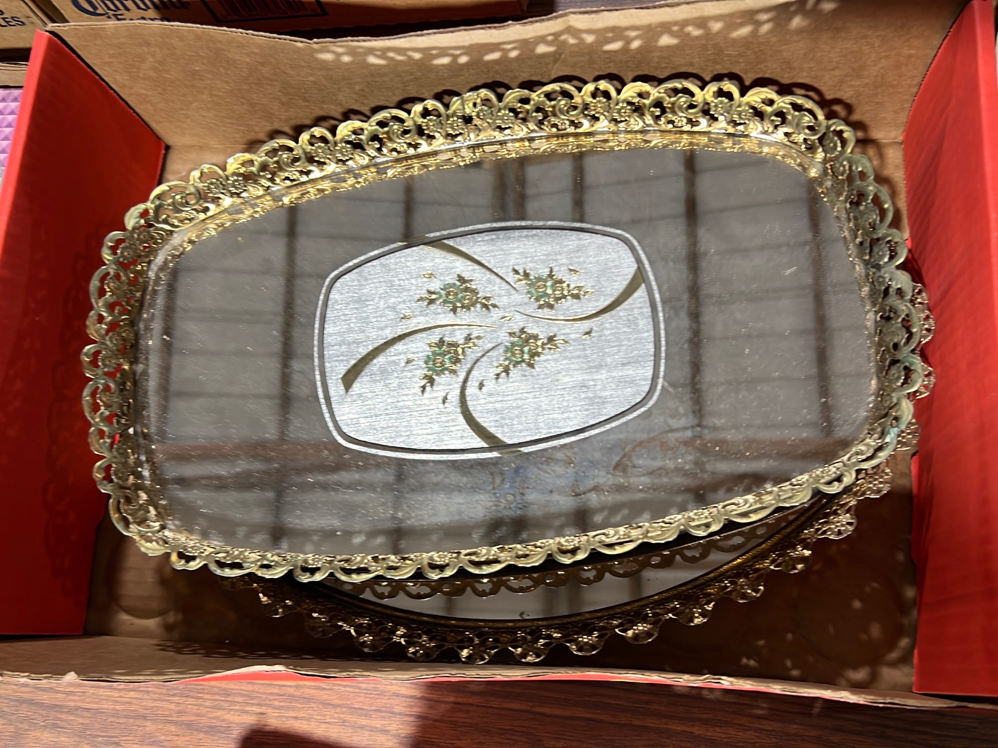 1264 Ladies vanity set with hand mirror, tray, brush, and comb
