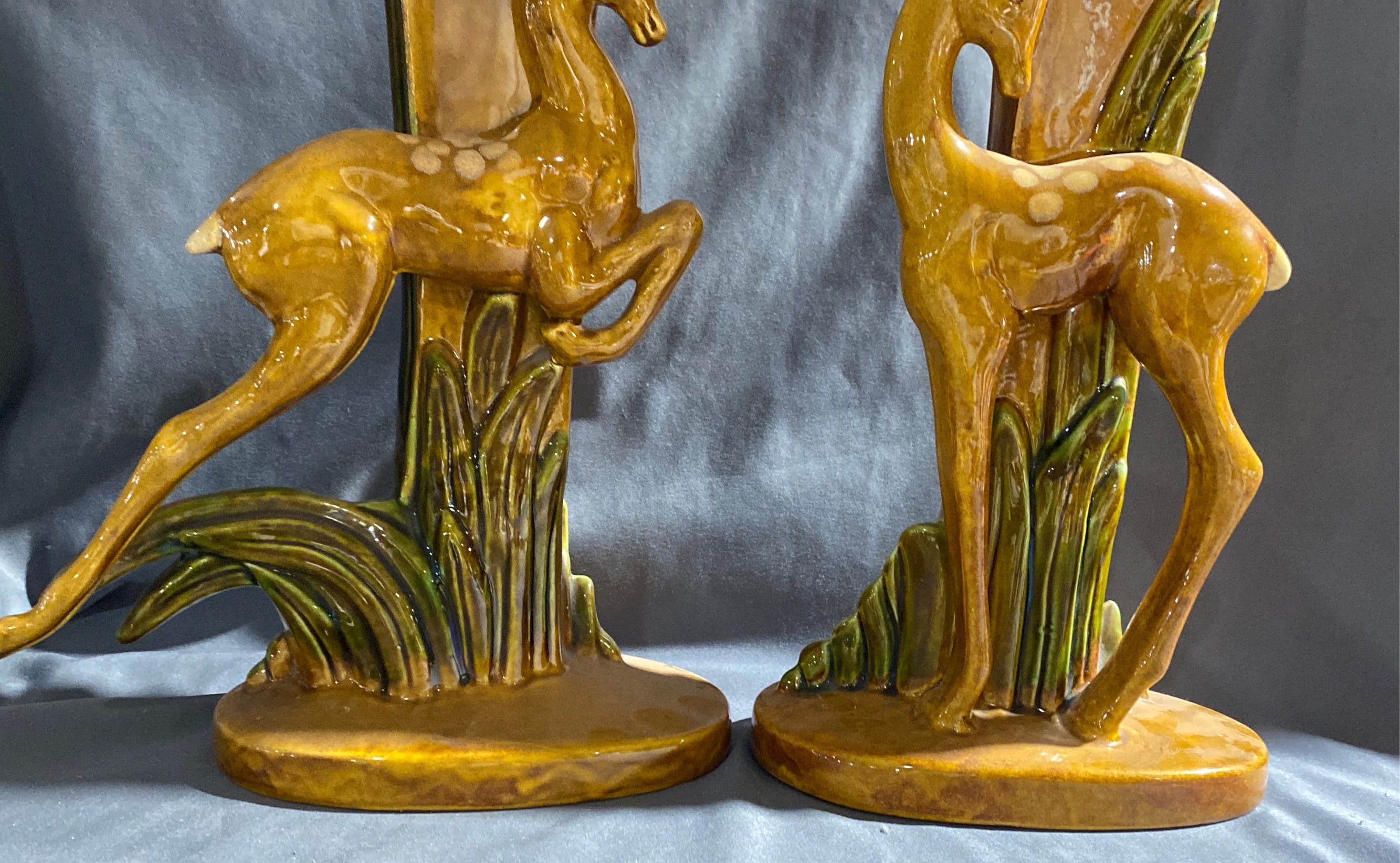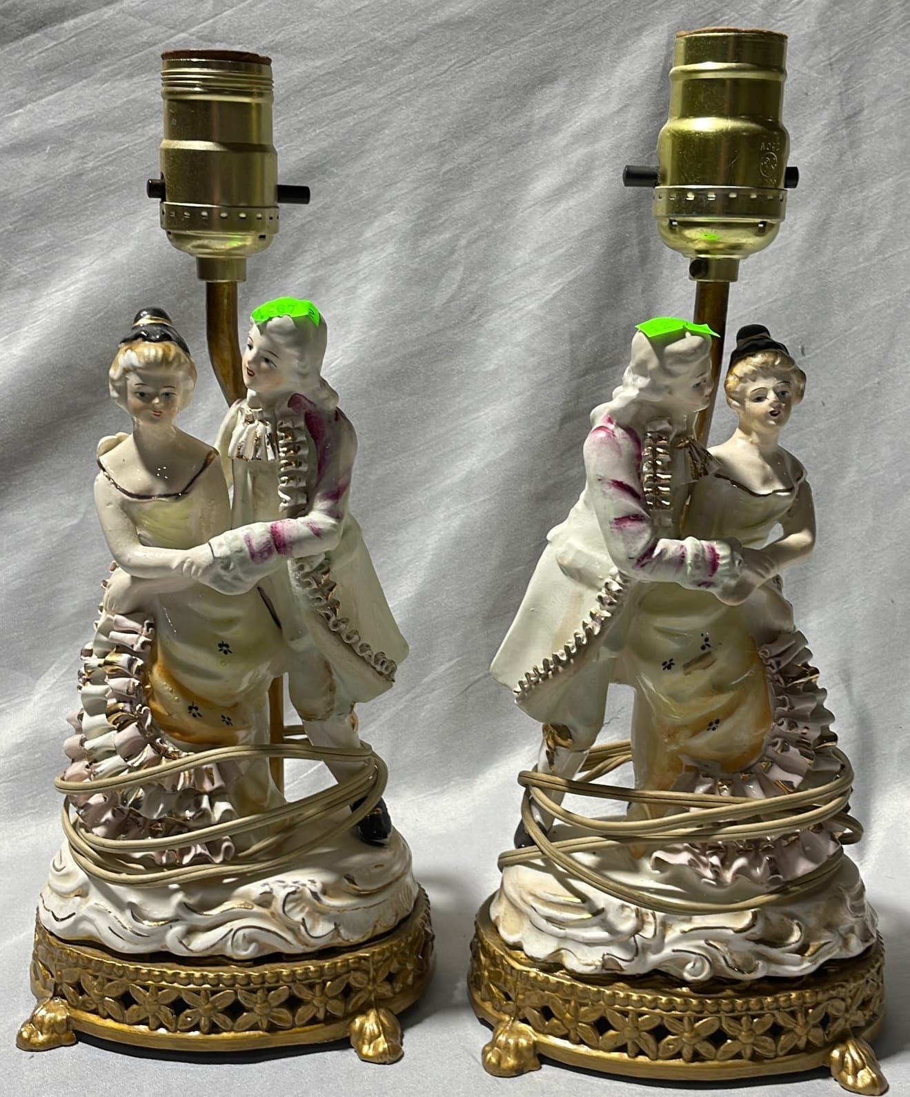 1267 2- Colonial style ceramic lamps, no shades 12"