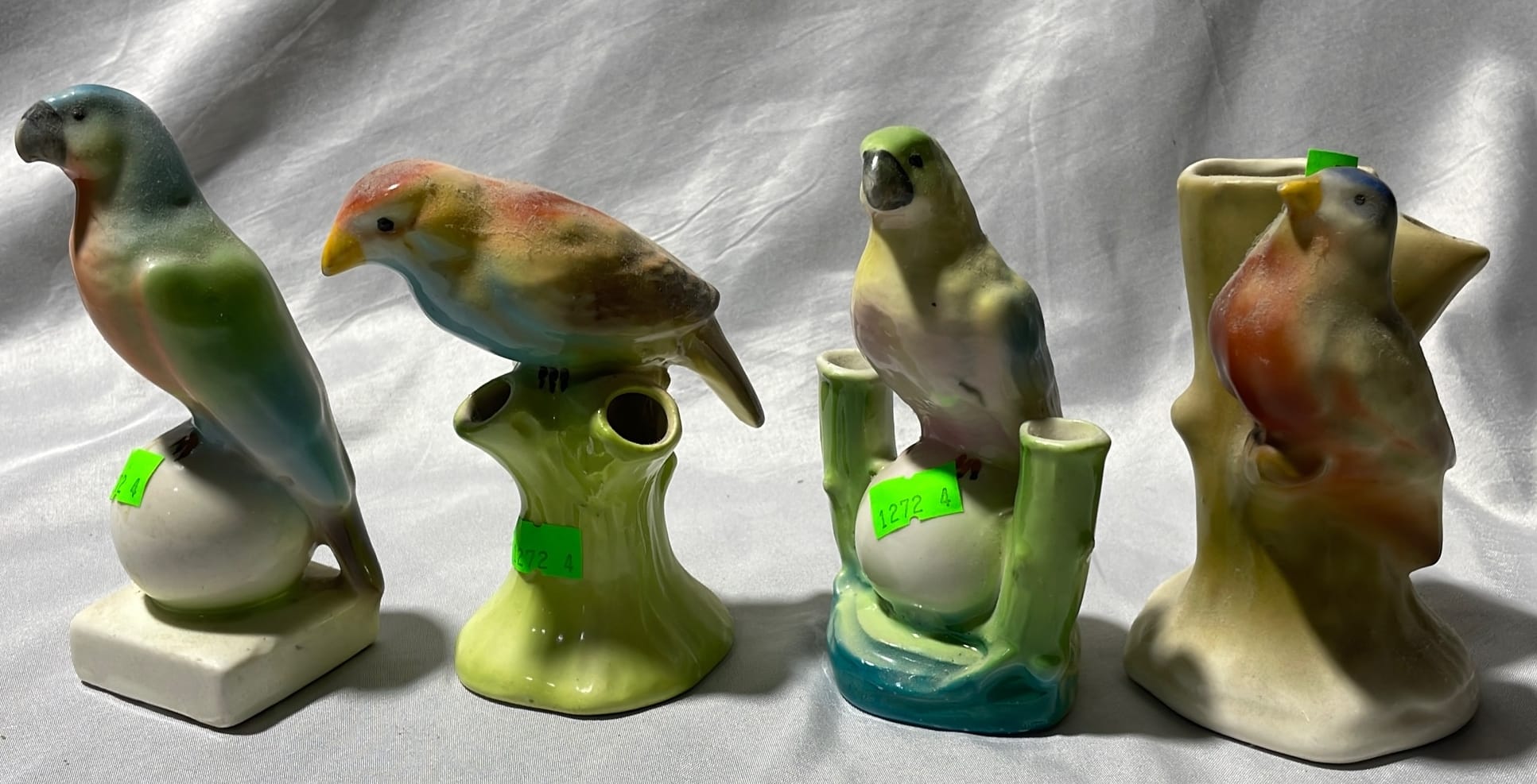 1272 4- Ceramic bird figurines, made in Czechoslovakia 5"