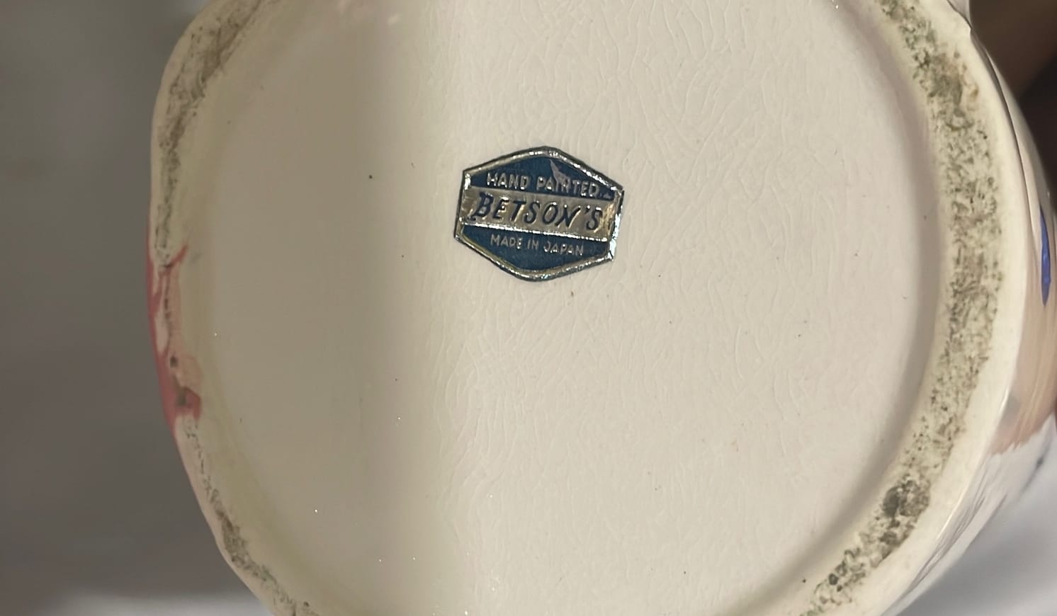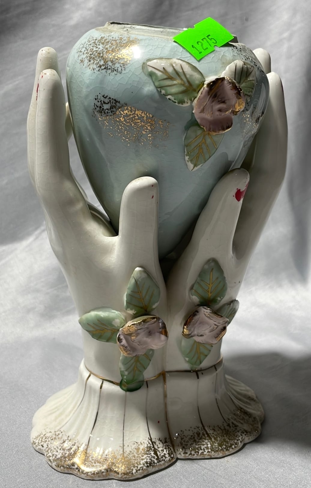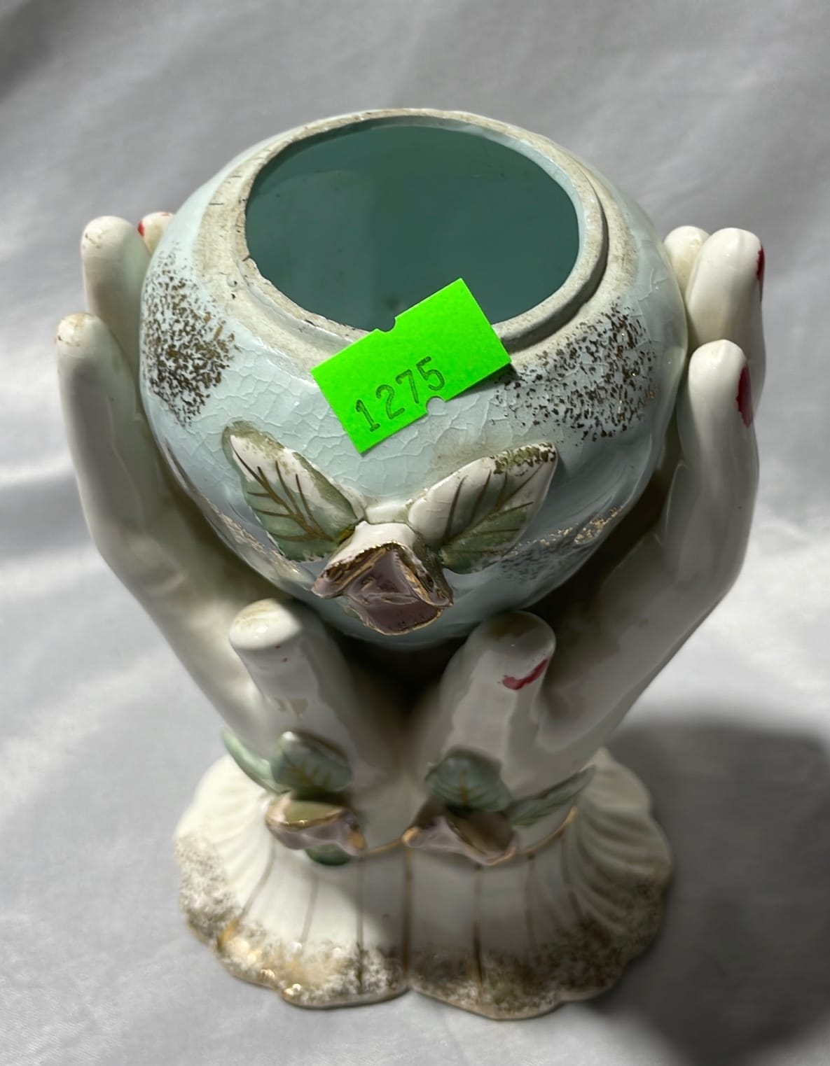 1275 Betson's hand painted planter, chips are top edge 4"x7"