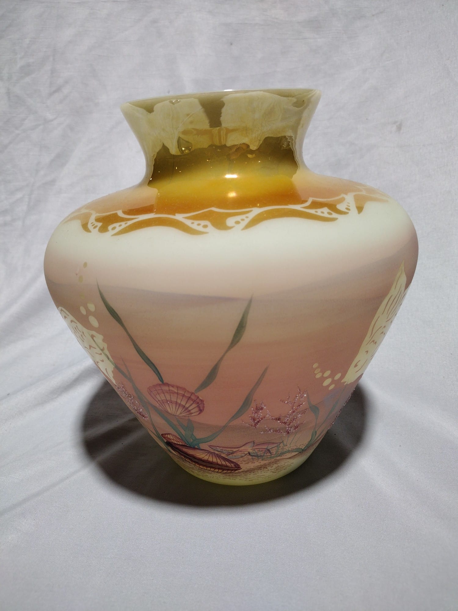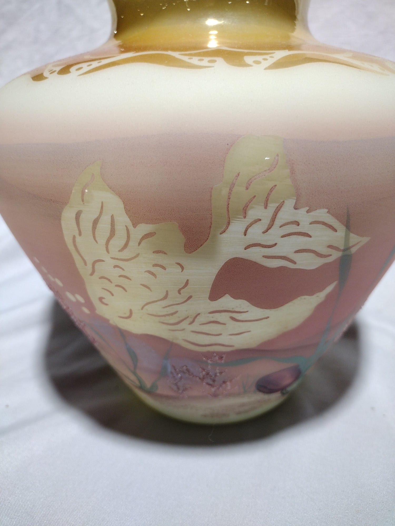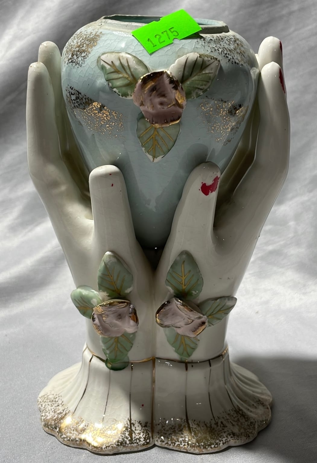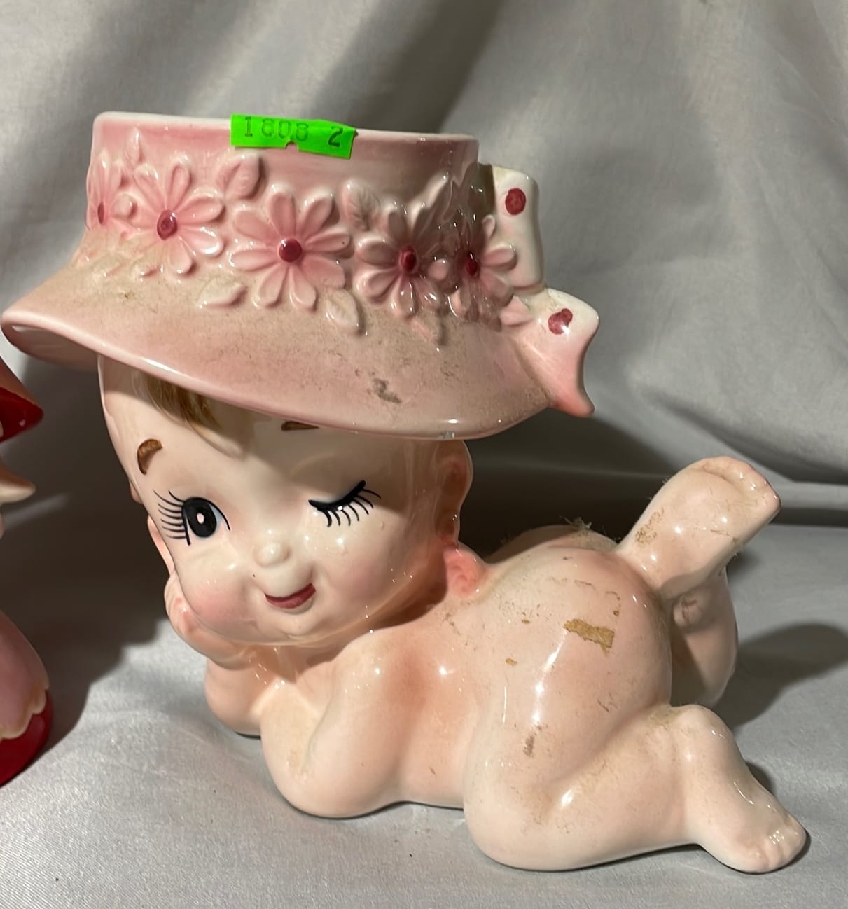 1275 Betson's hand painted planter, chips are top edge 4"x7"
