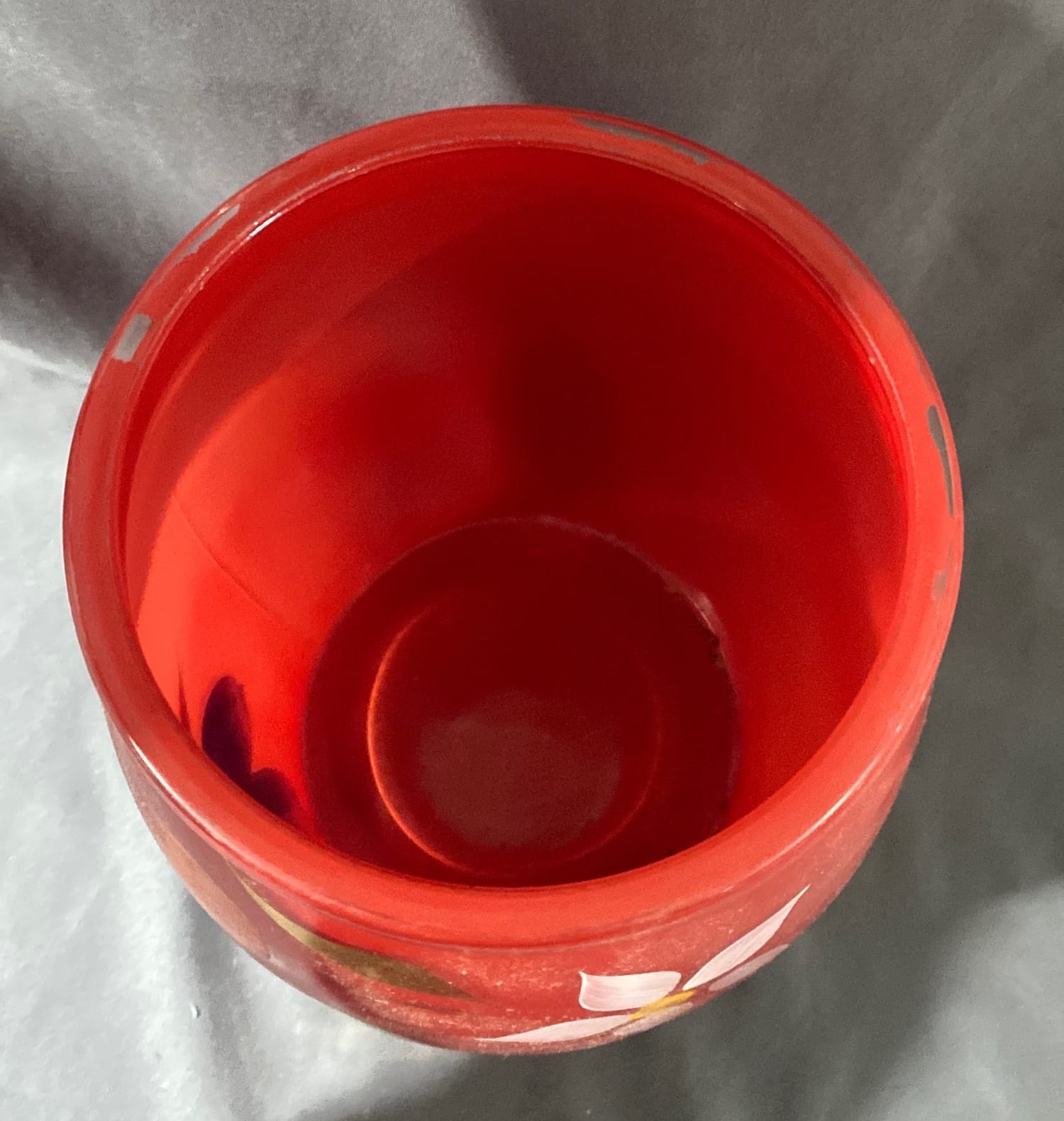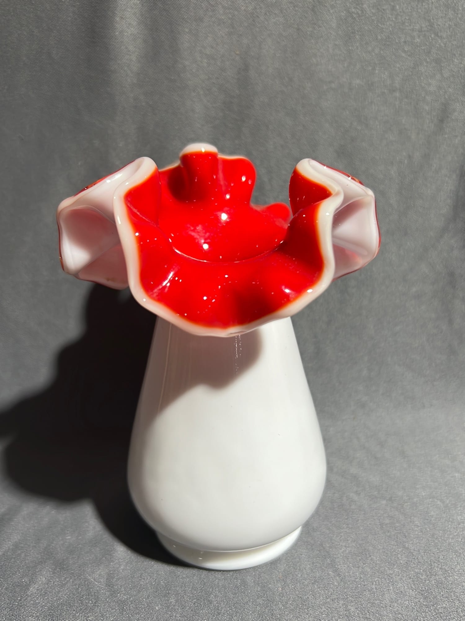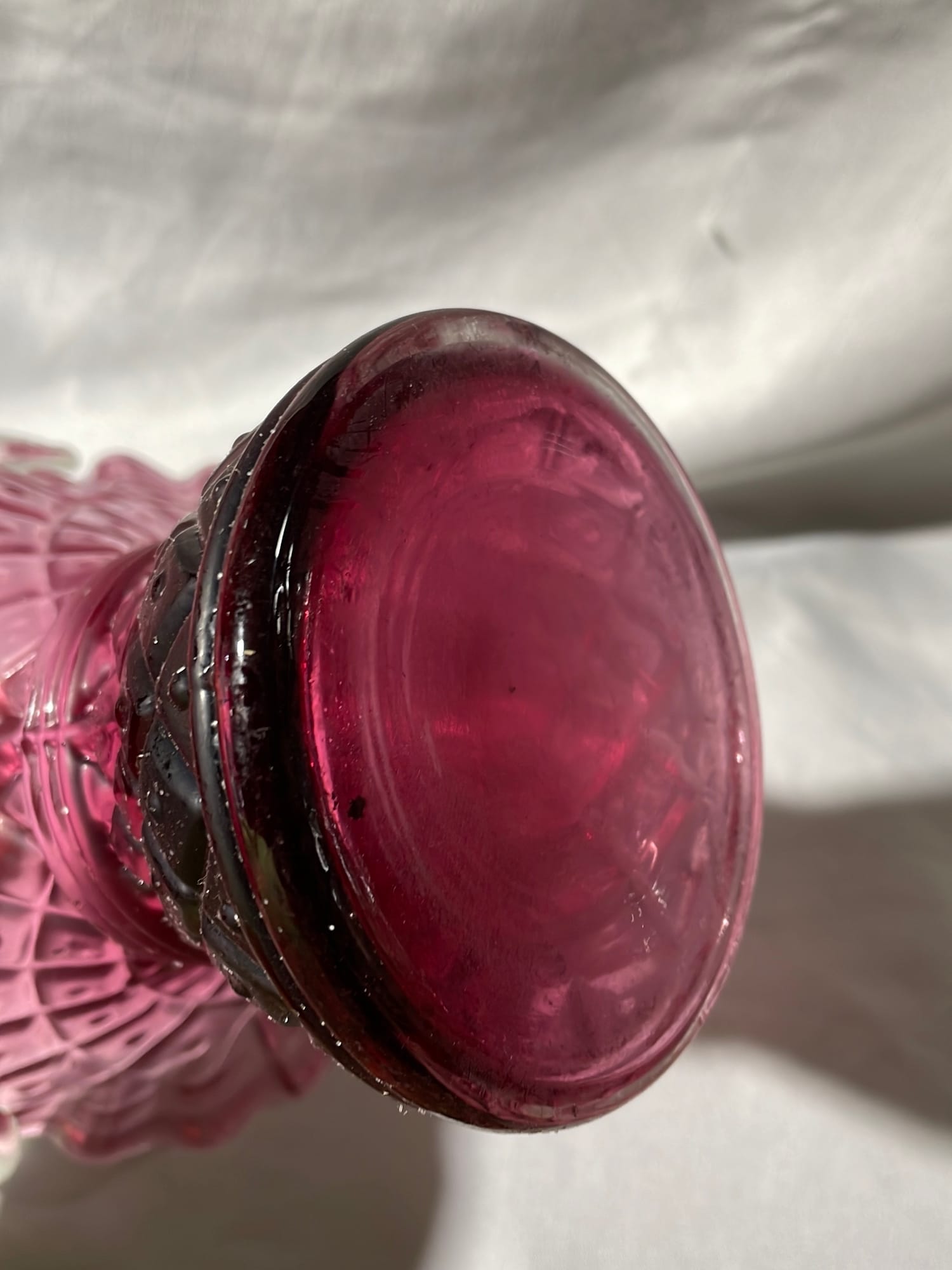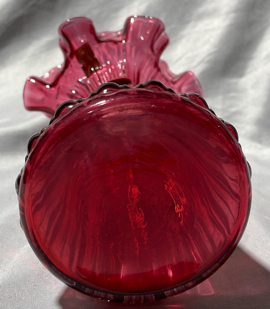 1278 Fenton cranberry glass wheat vase 4"x7"