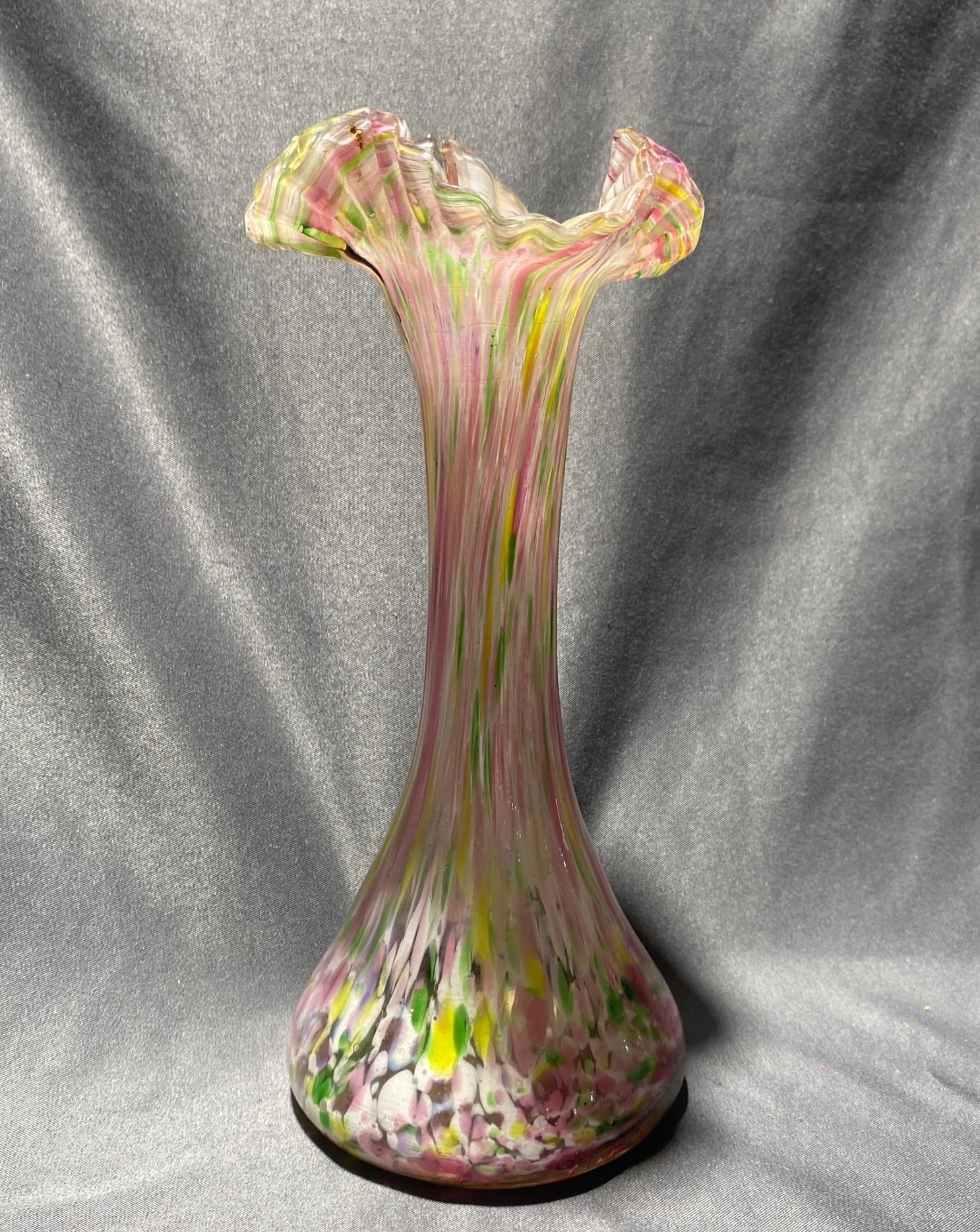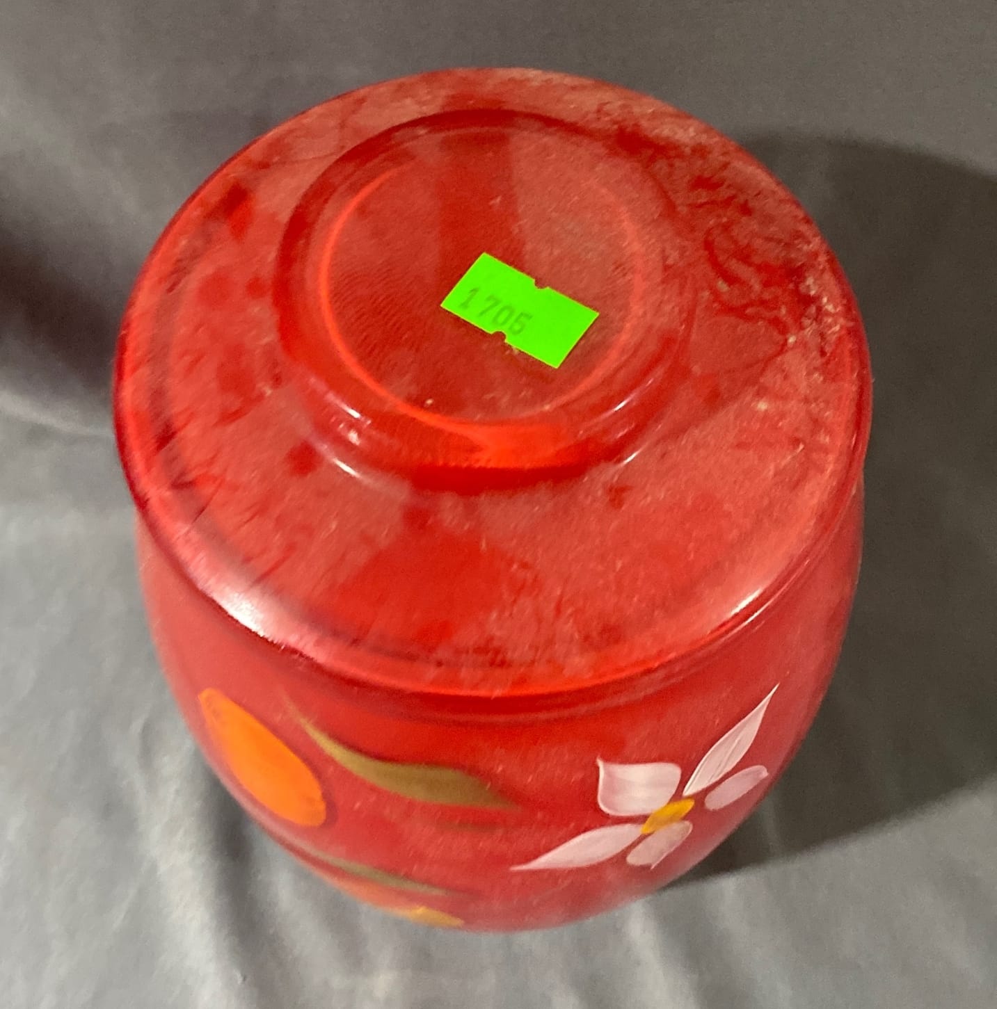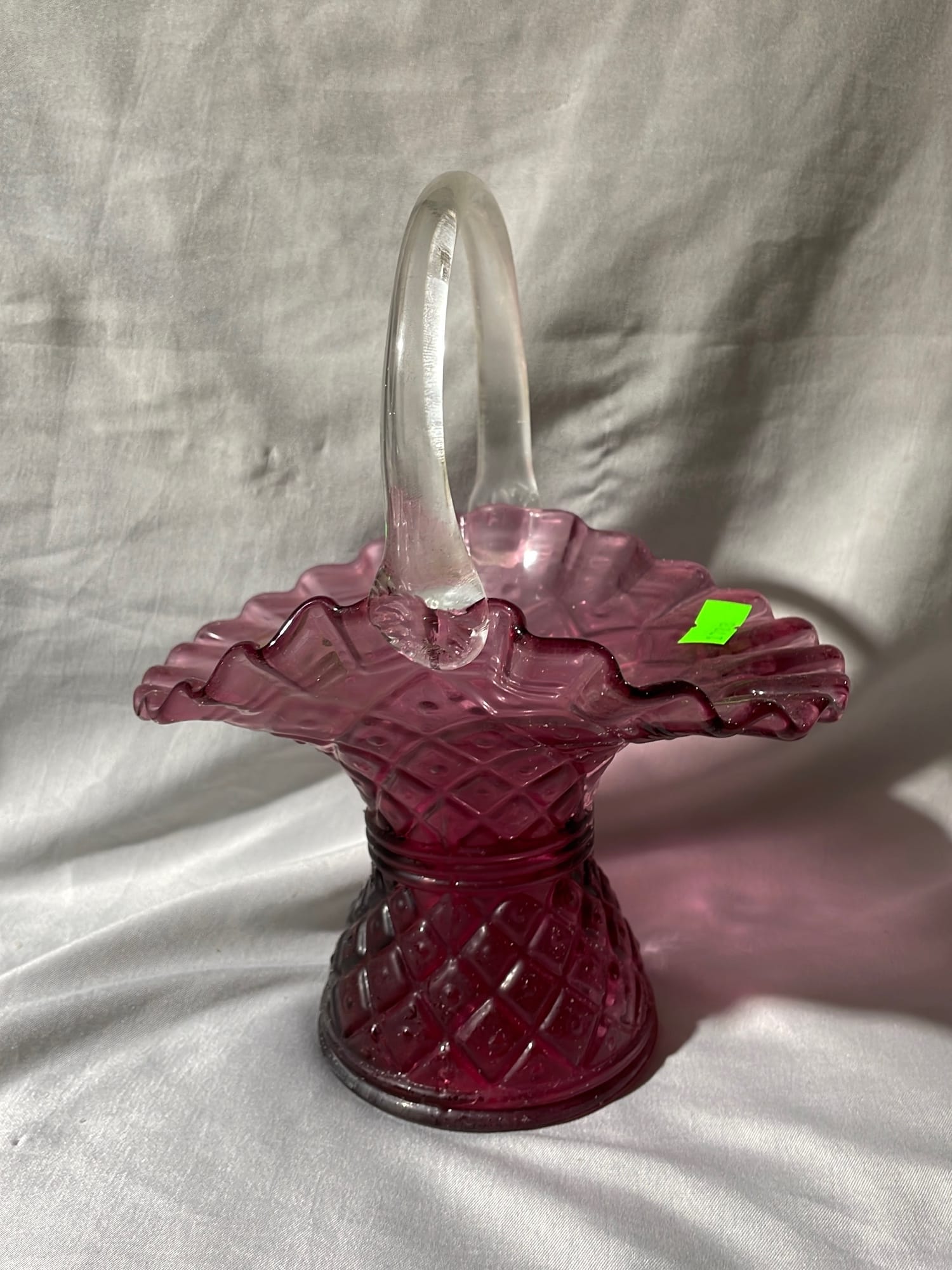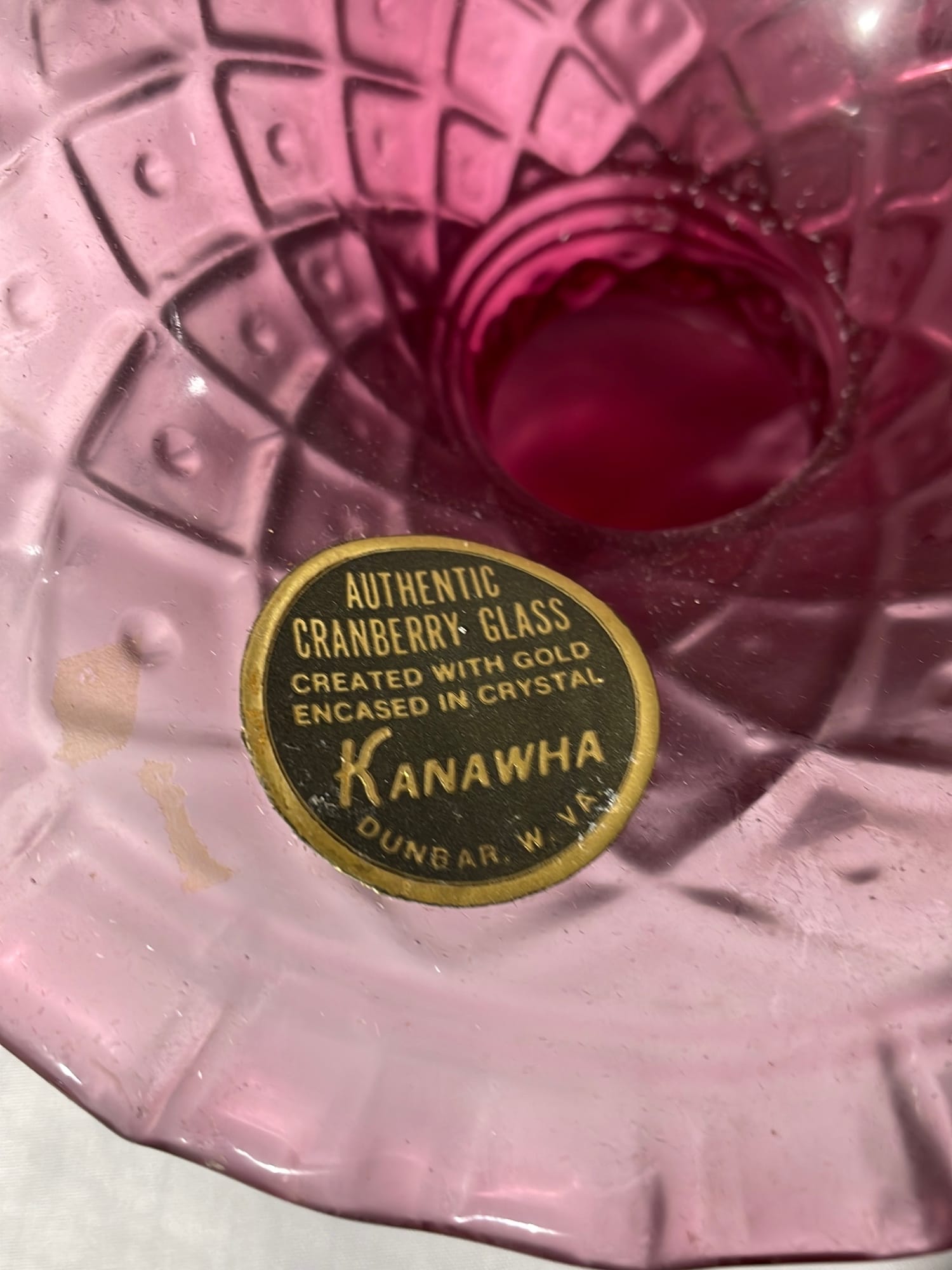 1278 Fenton cranberry glass wheat vase 4"x7"
