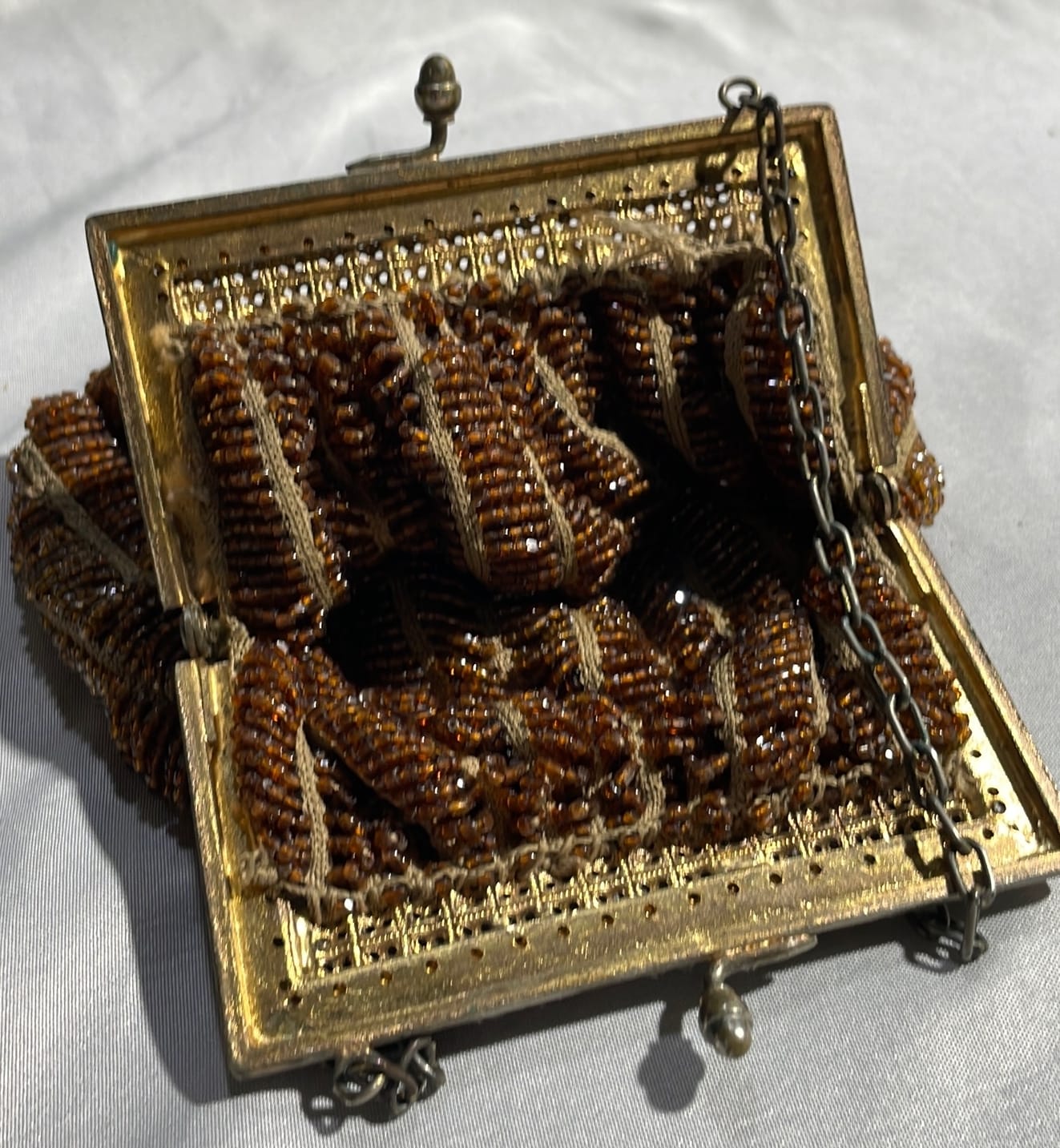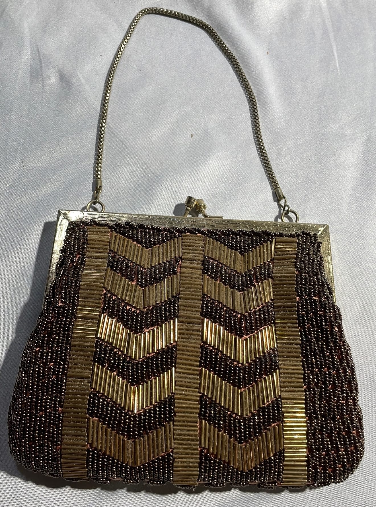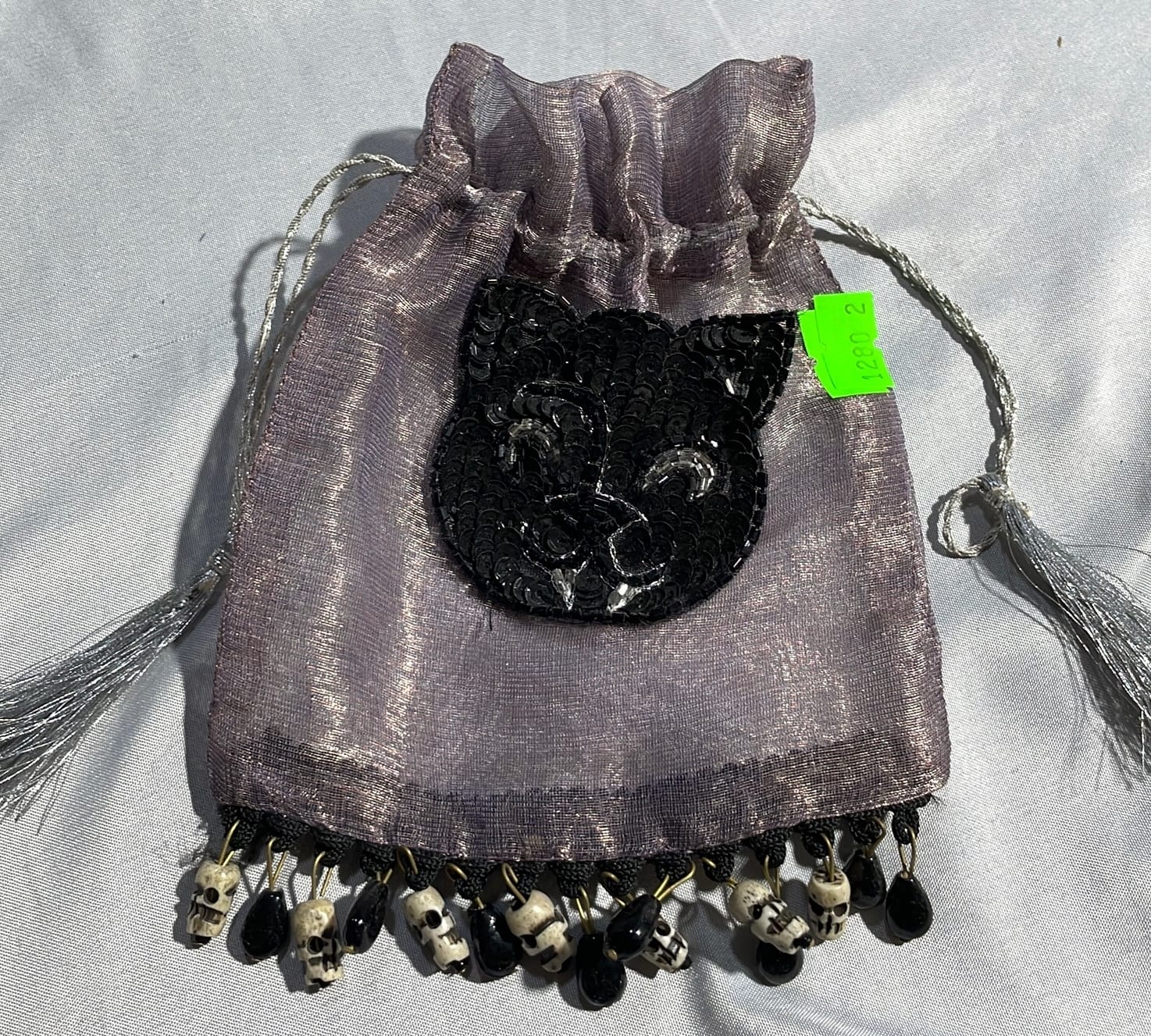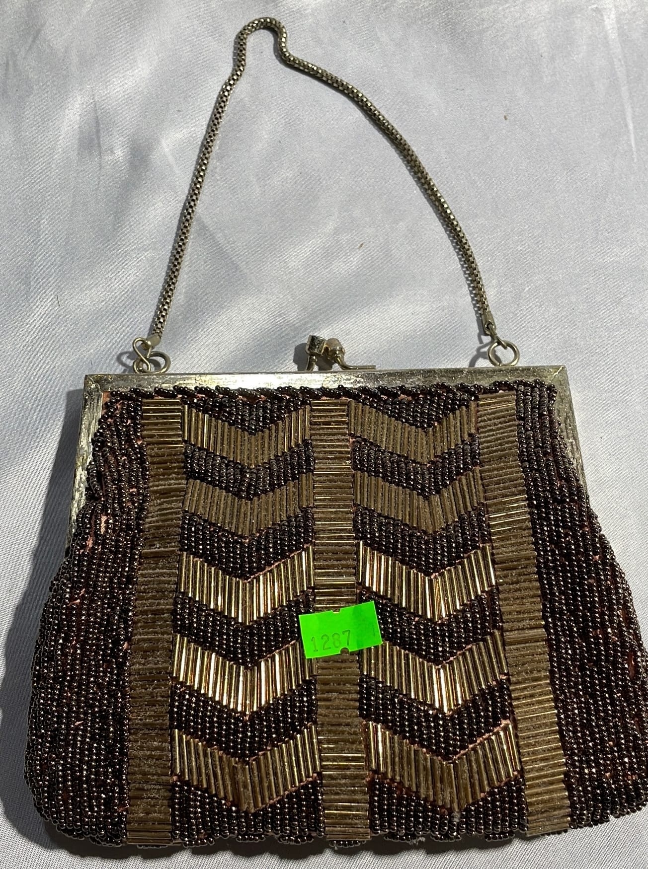 1280 Metal beaded clutch 4"x5", cat bag 5"x6"