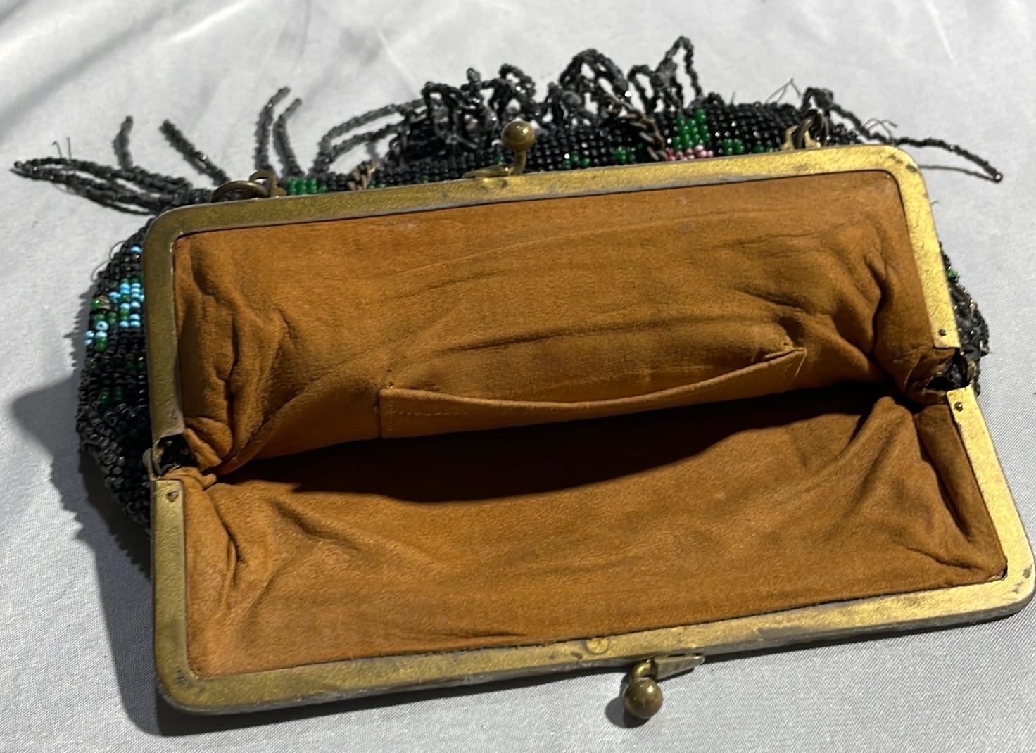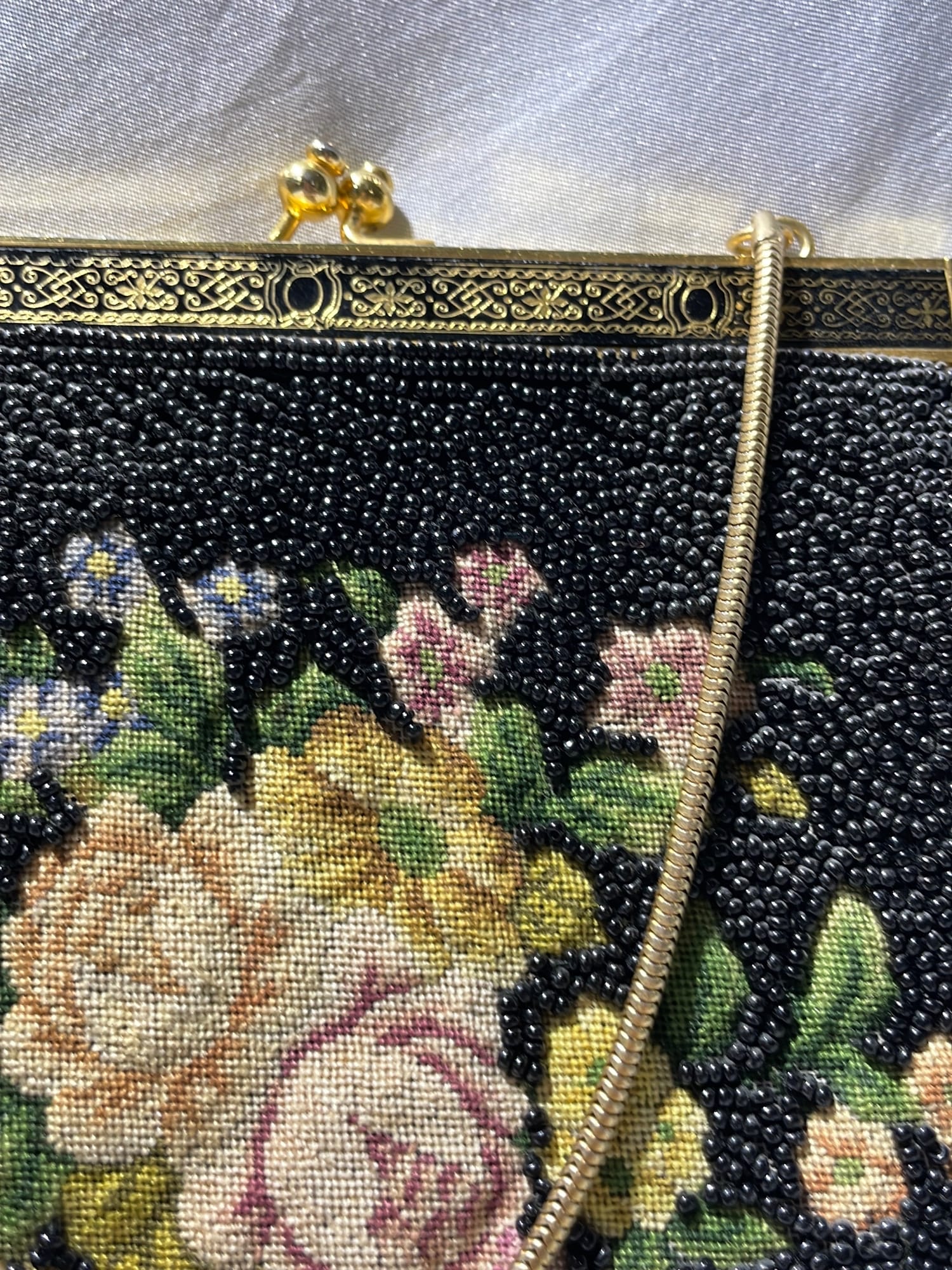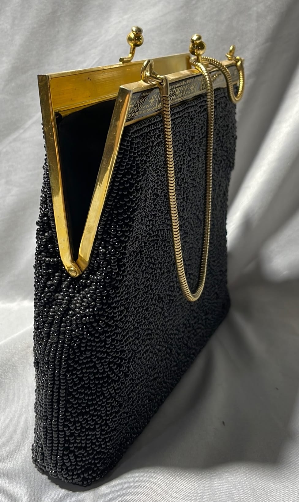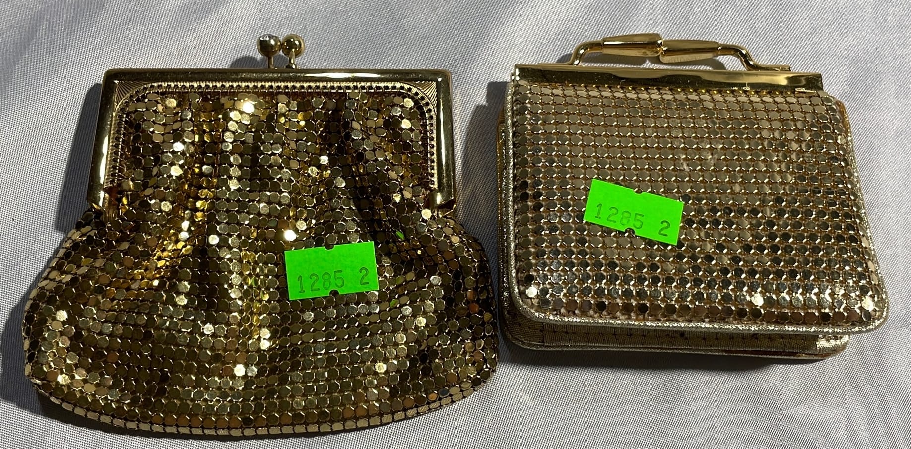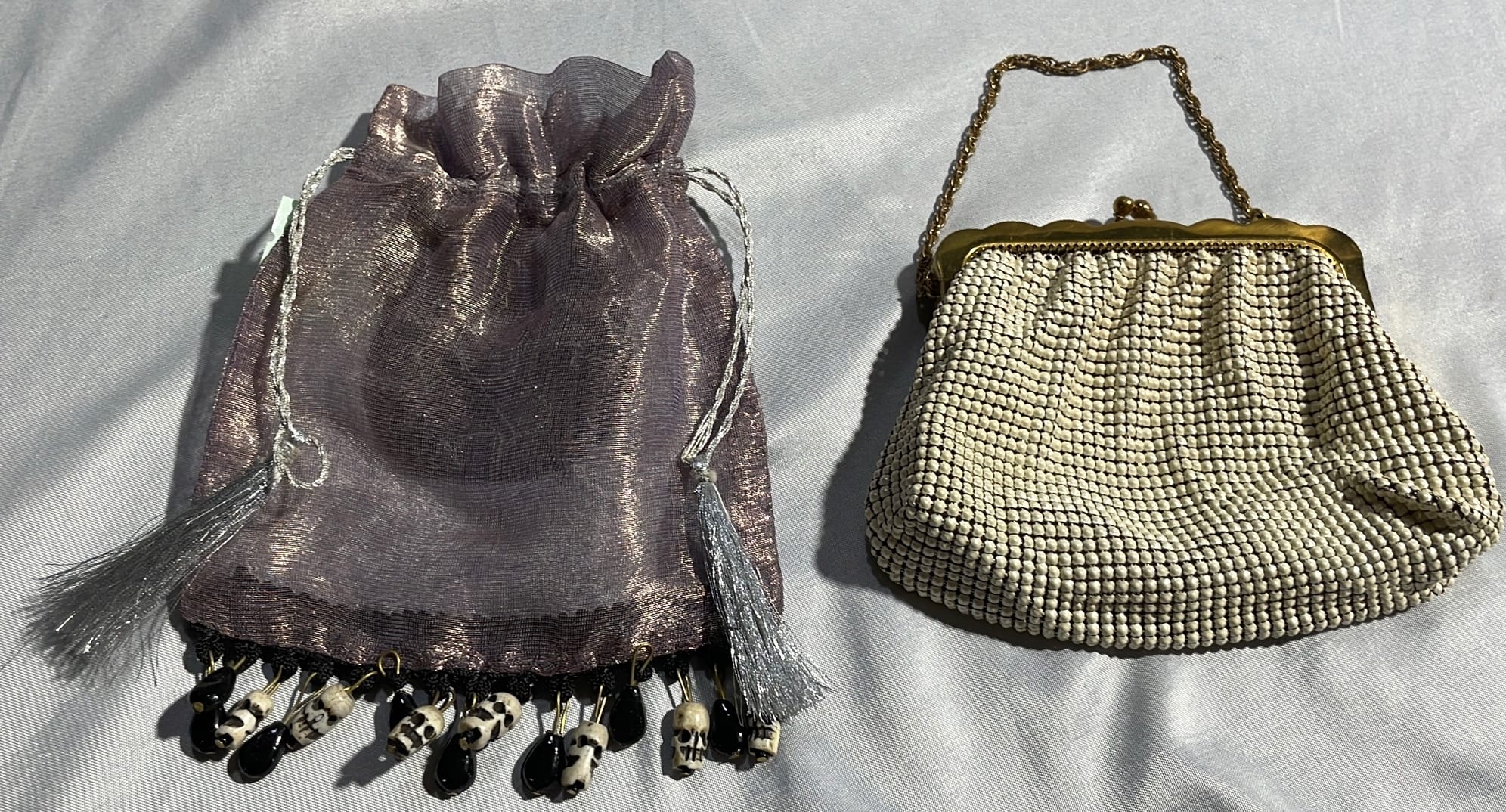 1280 Metal beaded clutch 4"x5", cat bag 5"x6"