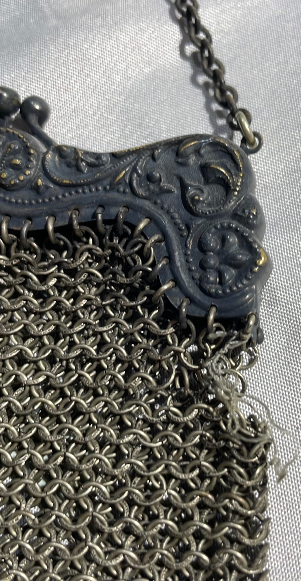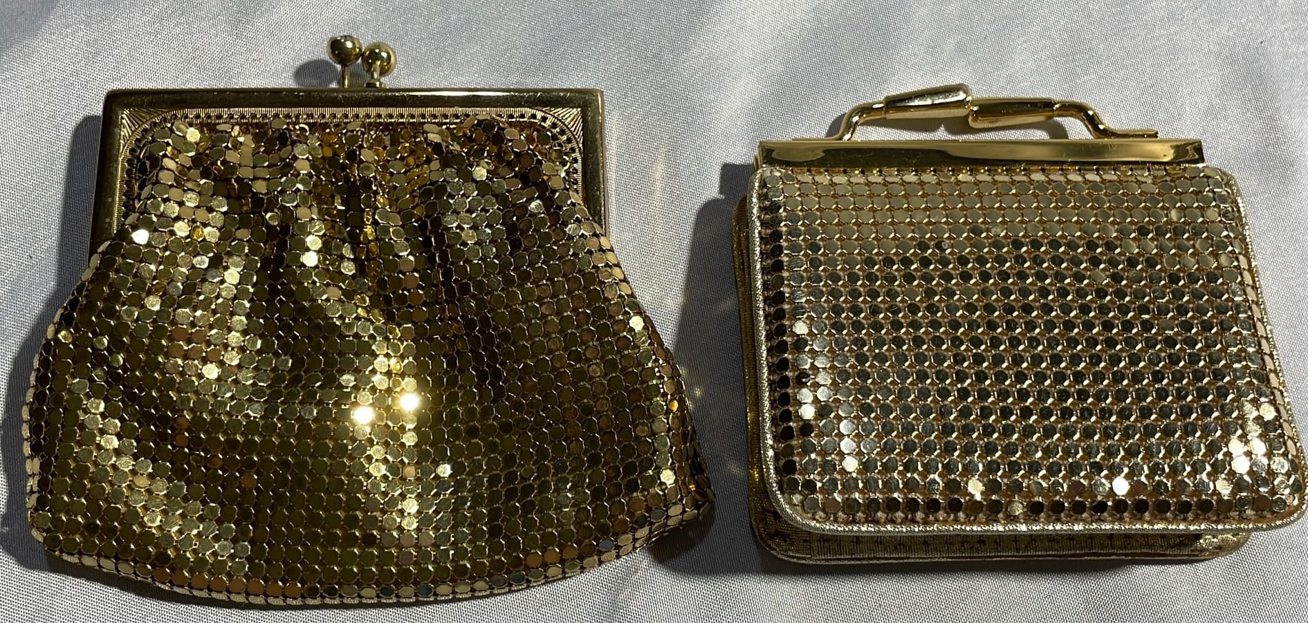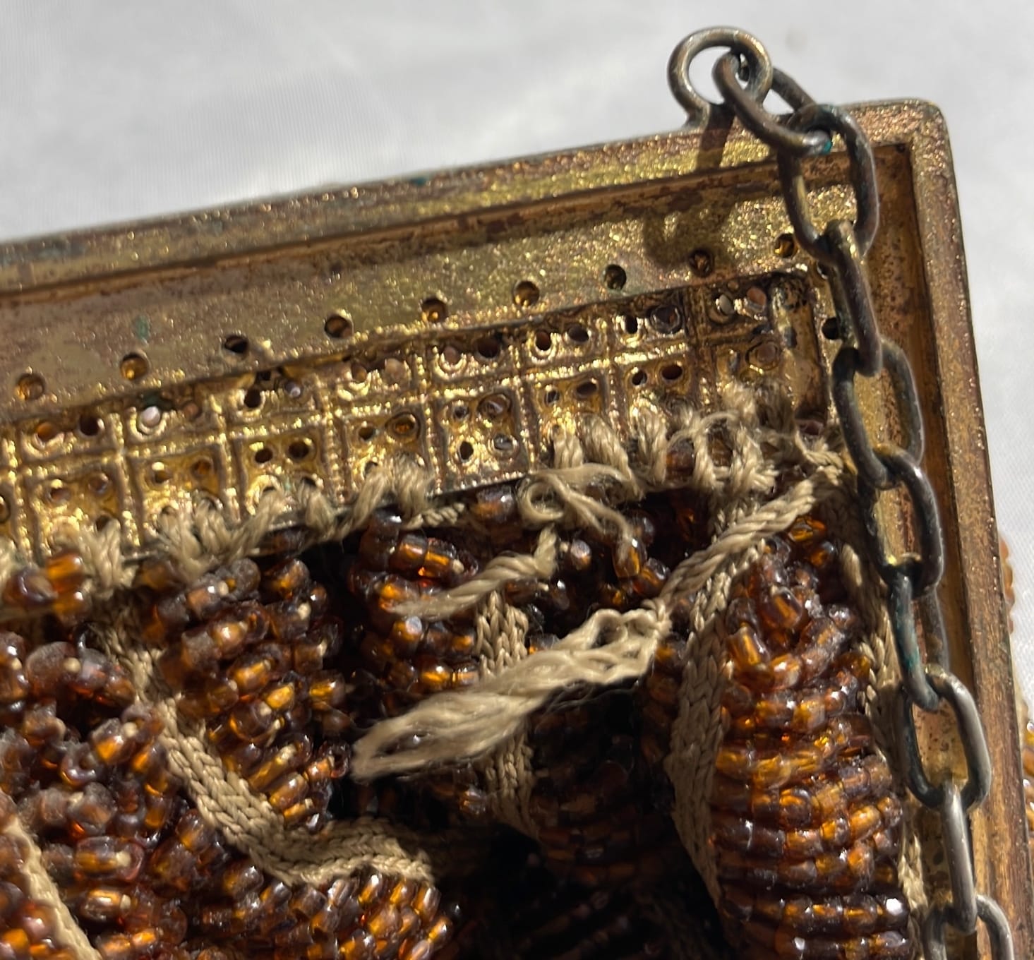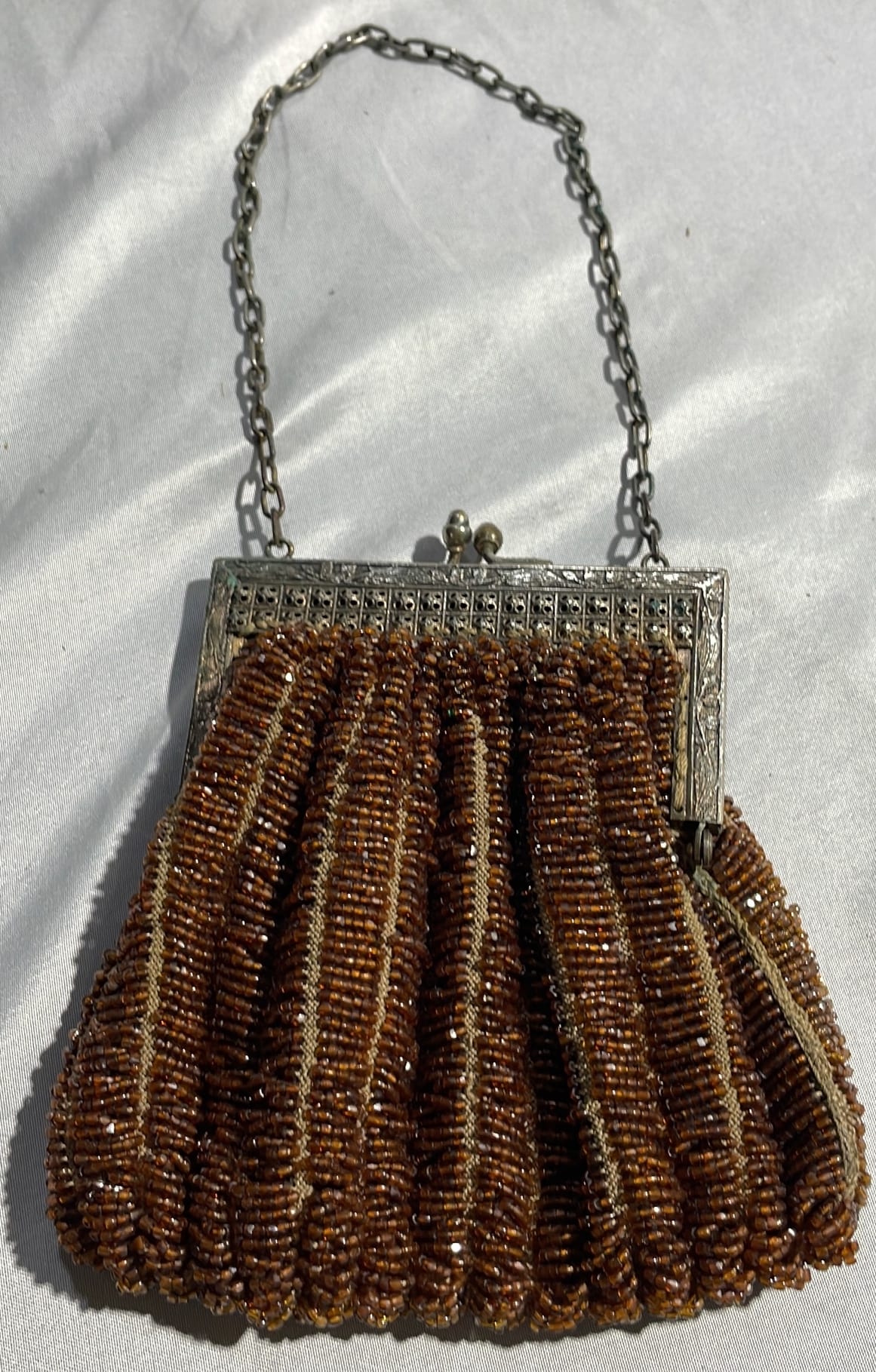 1280 Metal beaded clutch 4"x5", cat bag 5"x6"