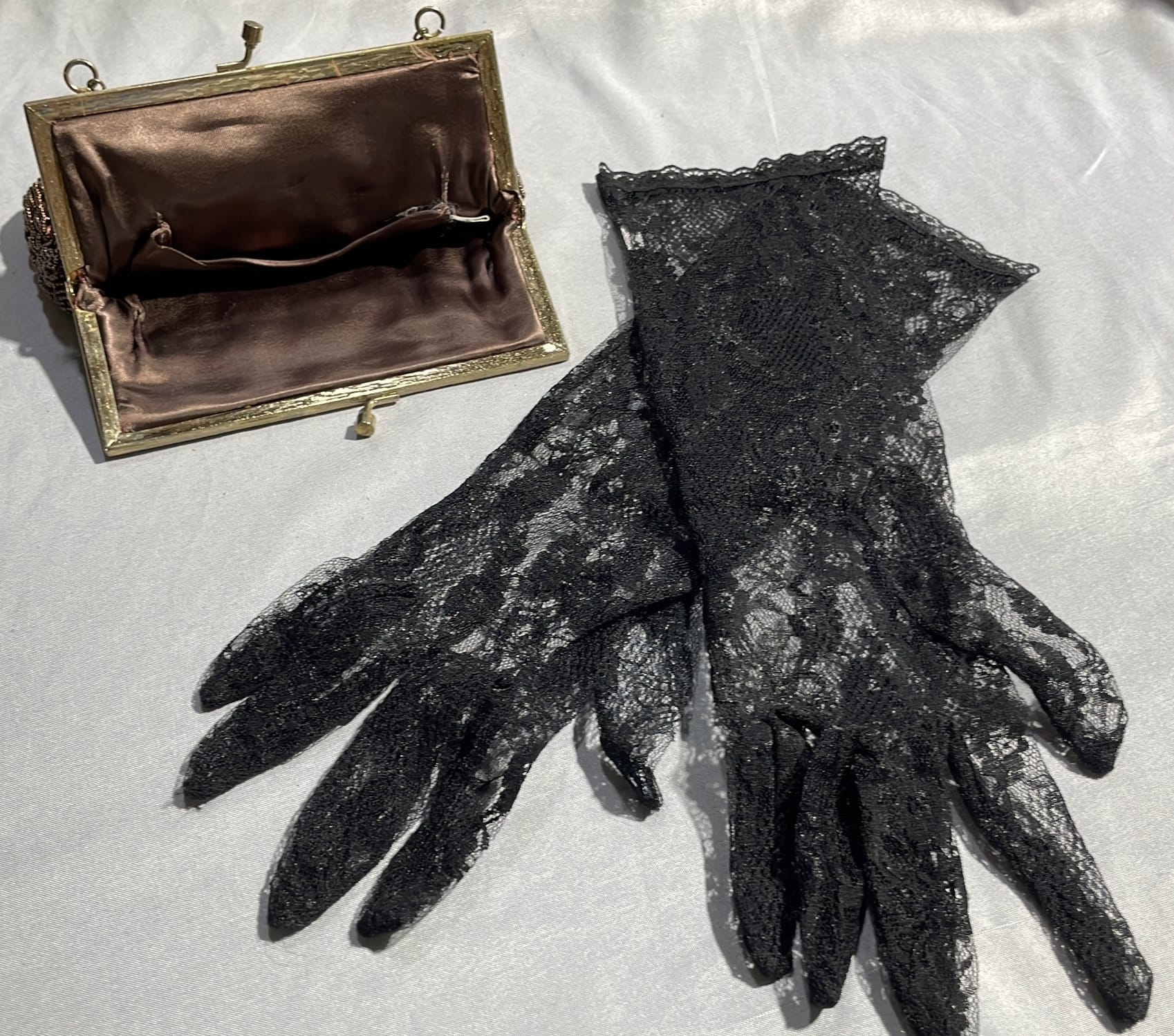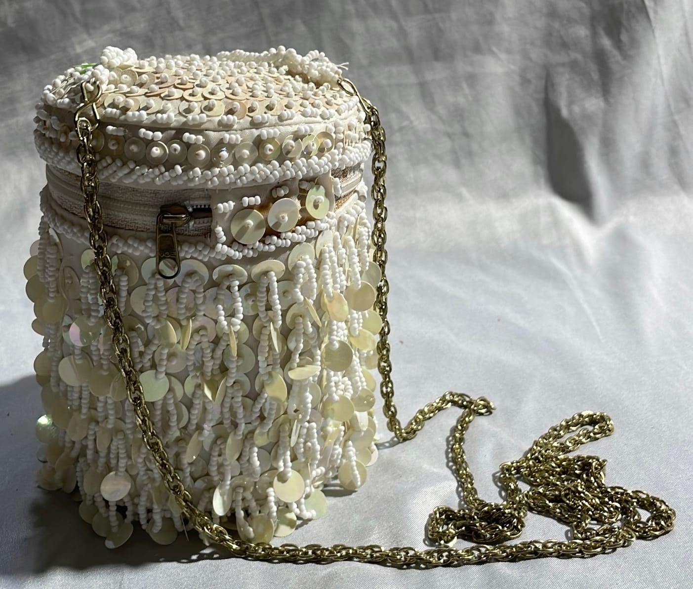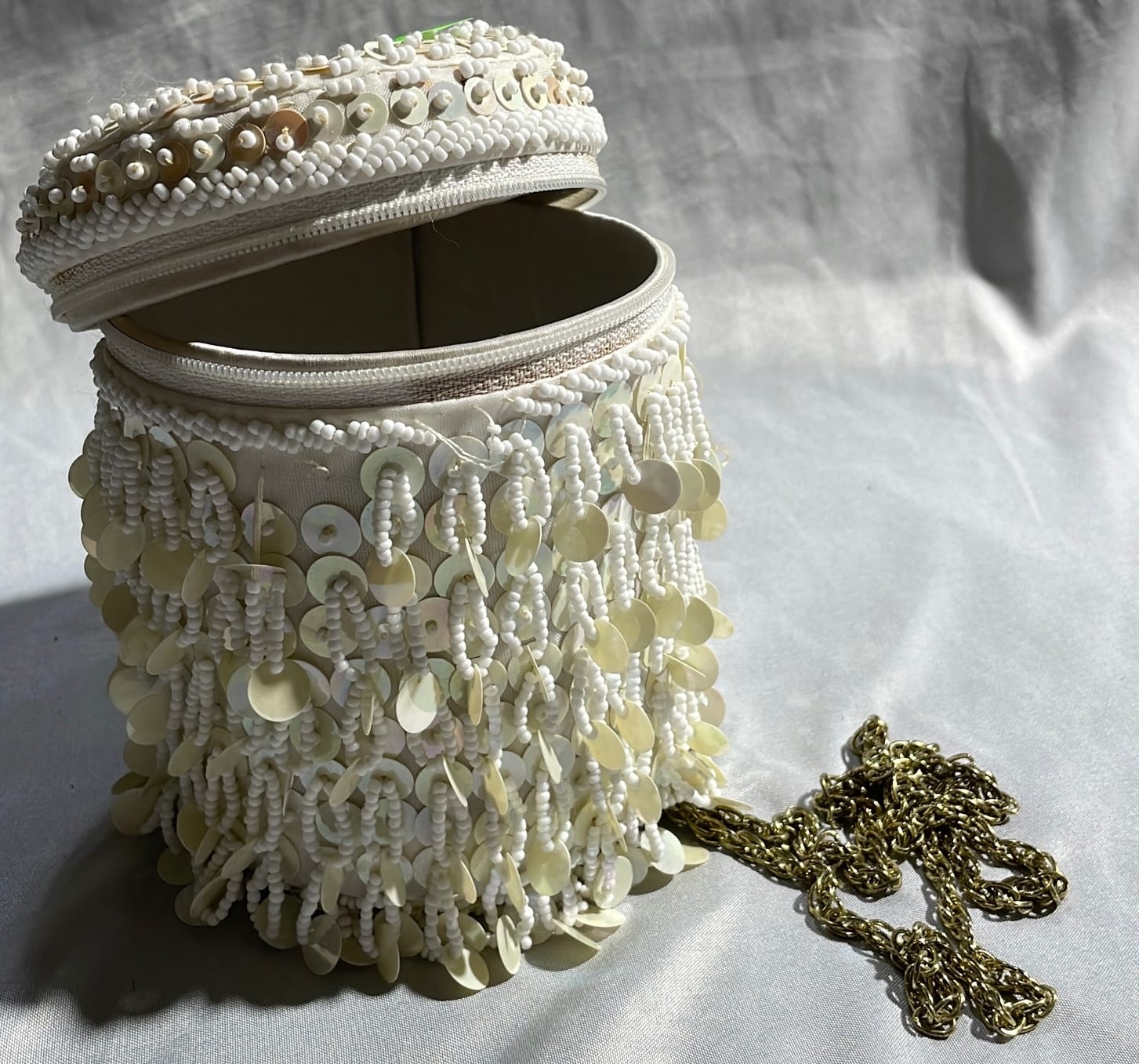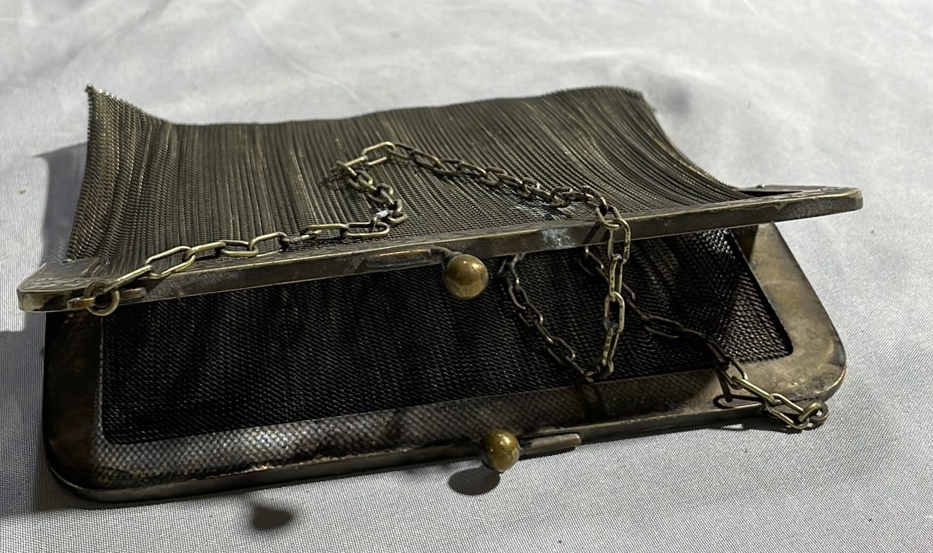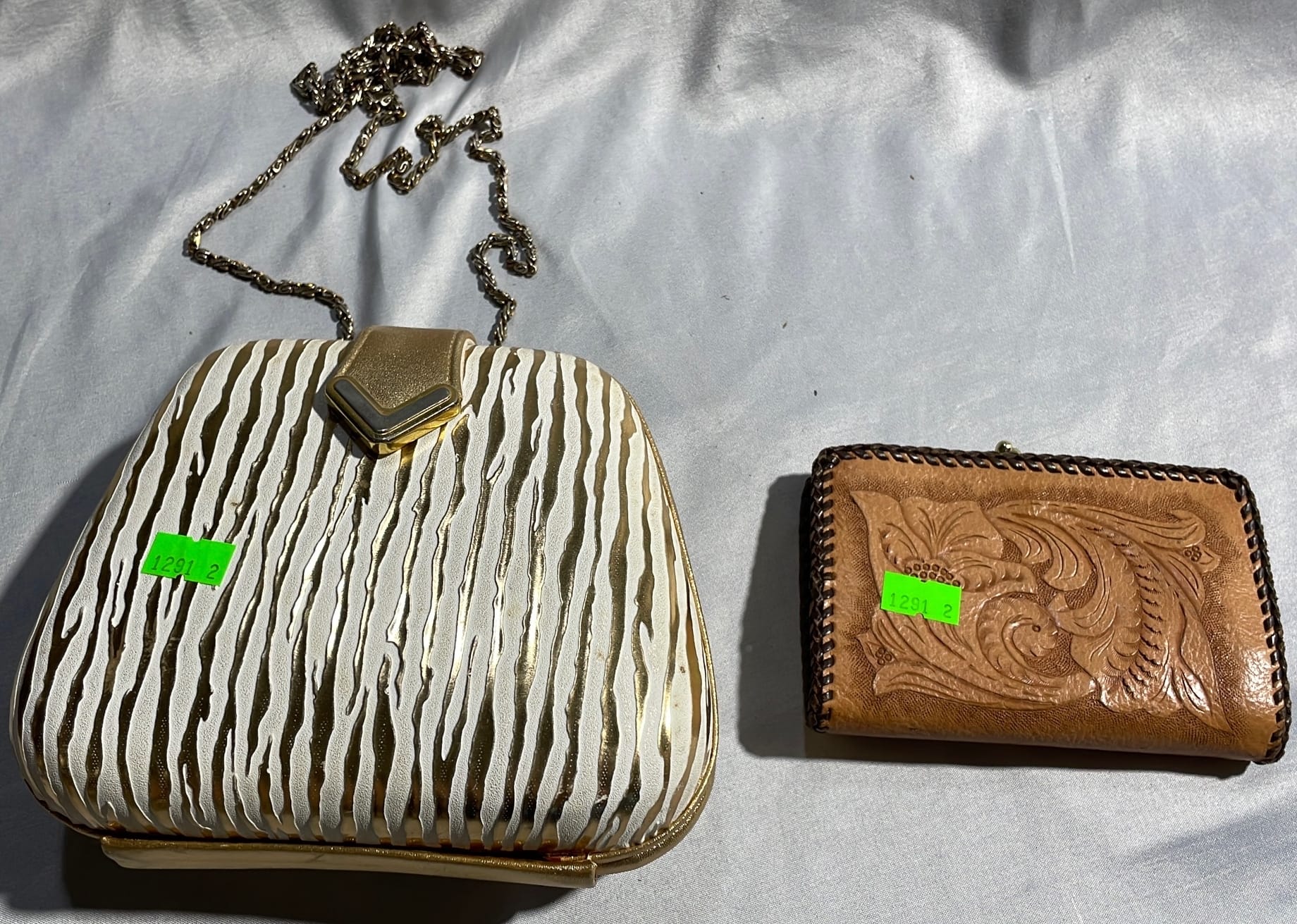 1280 Metal beaded clutch 4"x5", cat bag 5"x6"