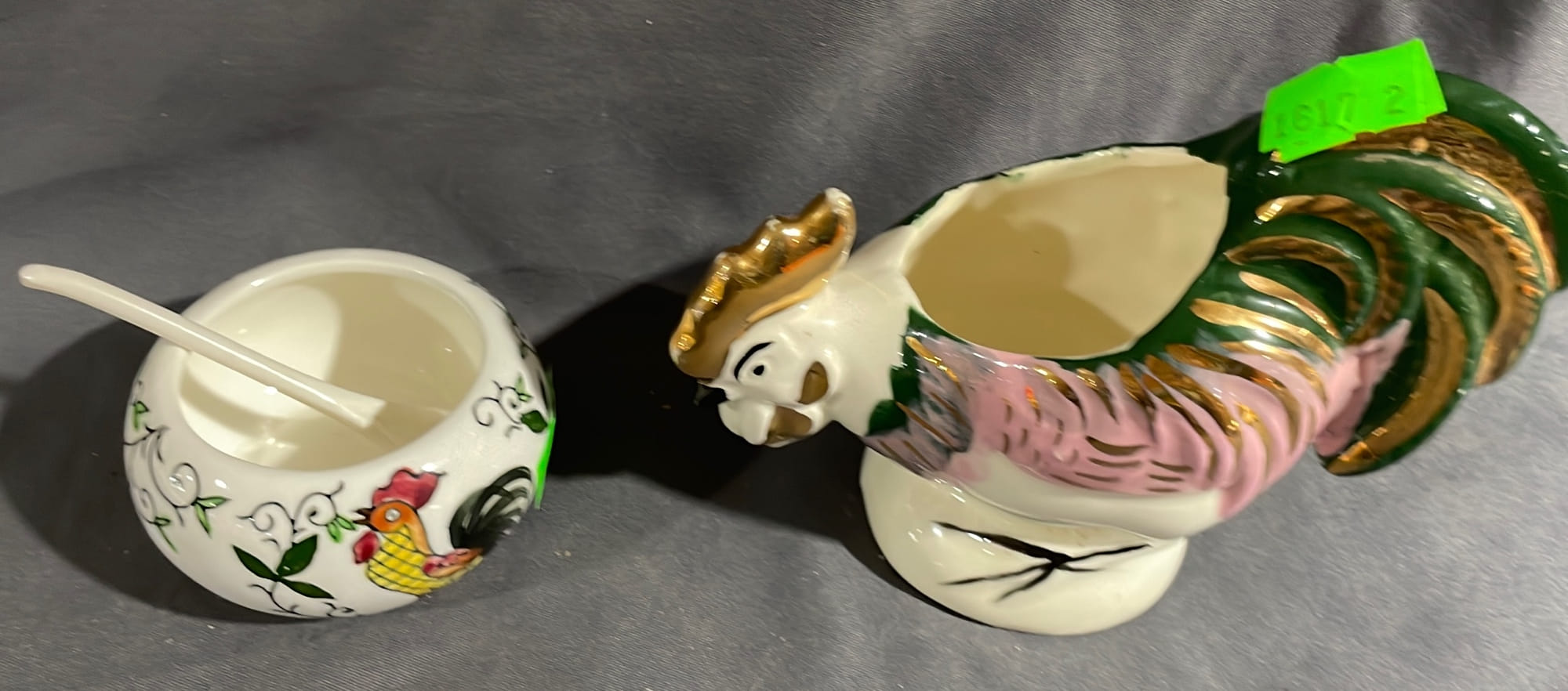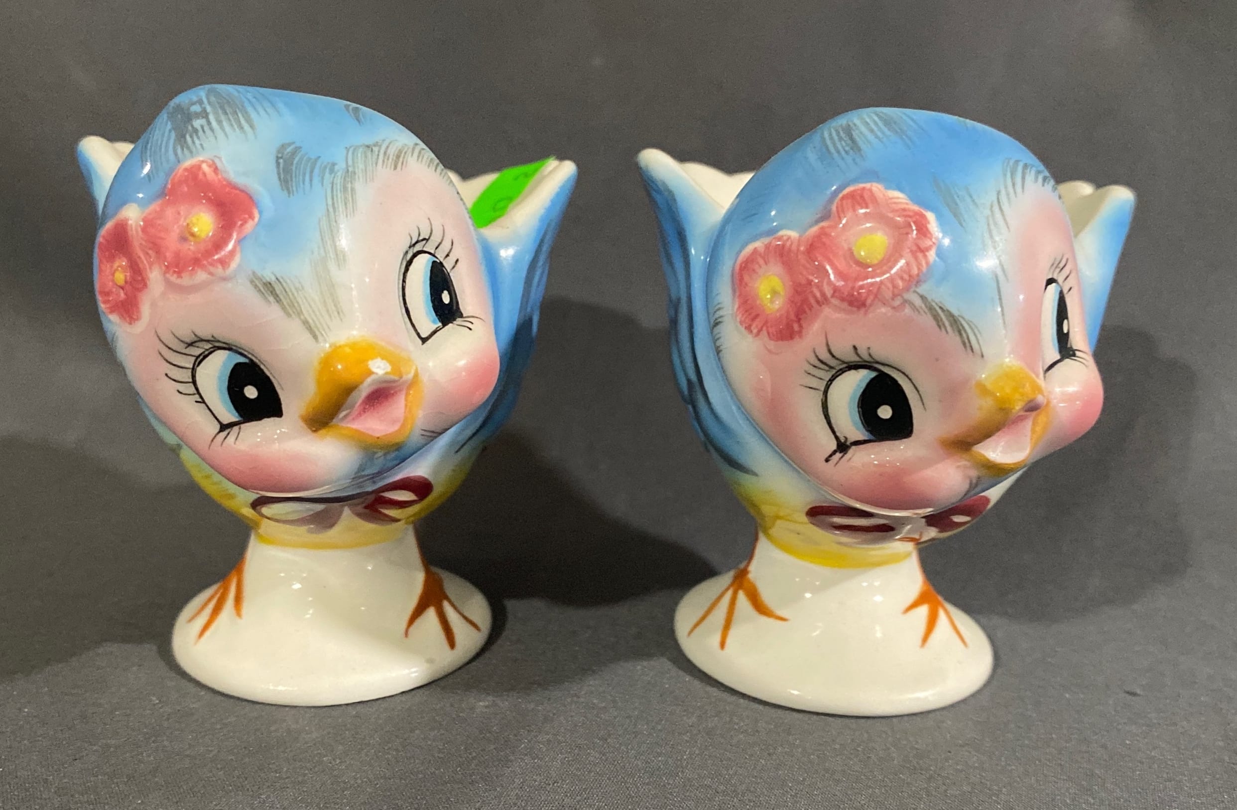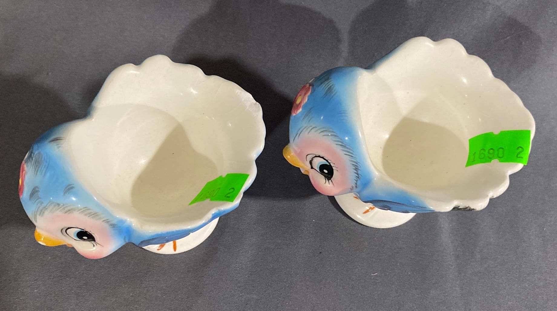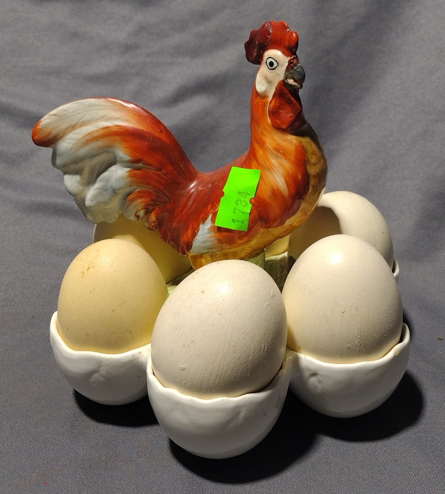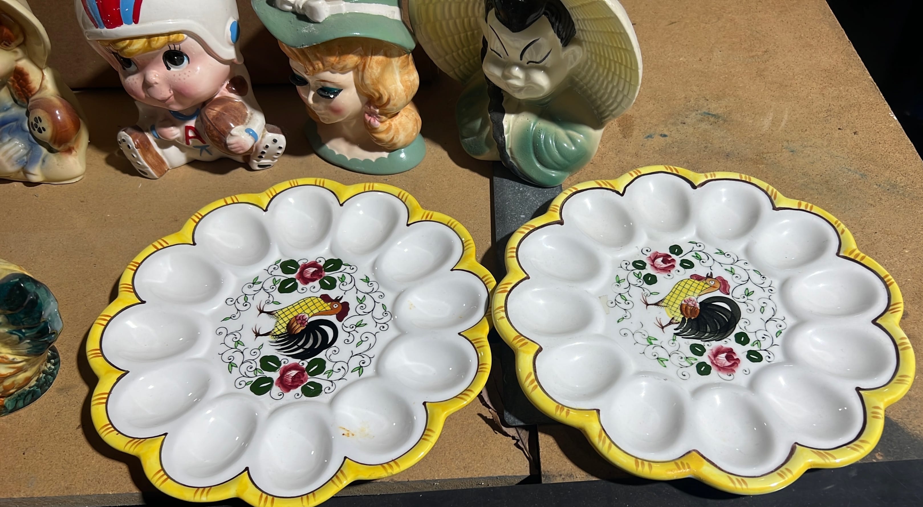 2020 Egg plates, porcelain head planter assortment, chicken cream and sugar