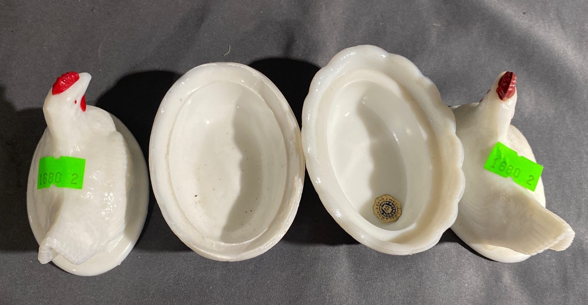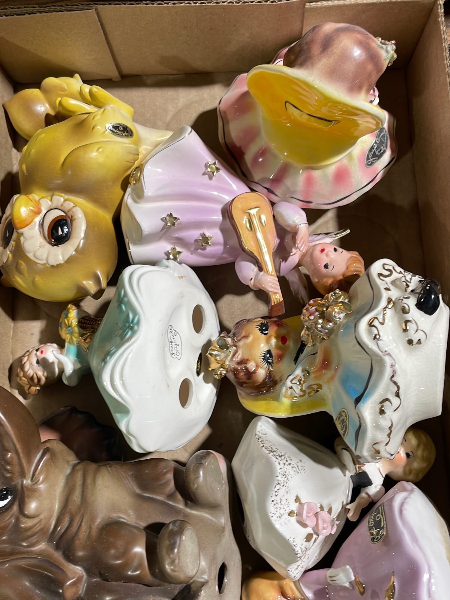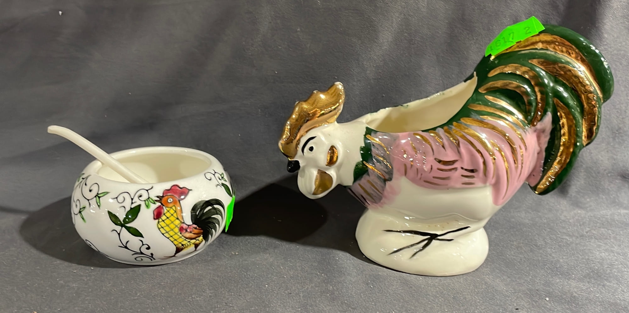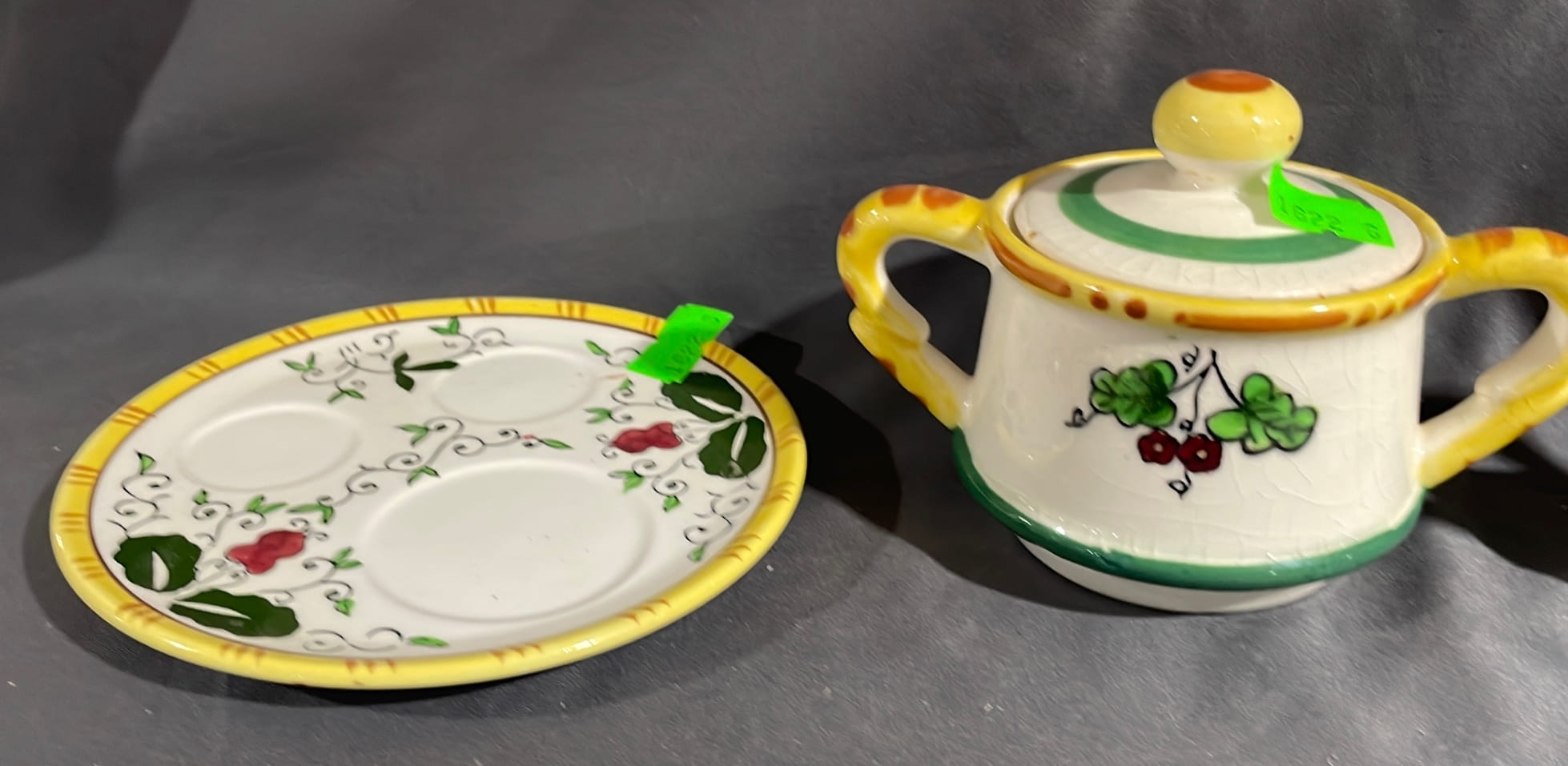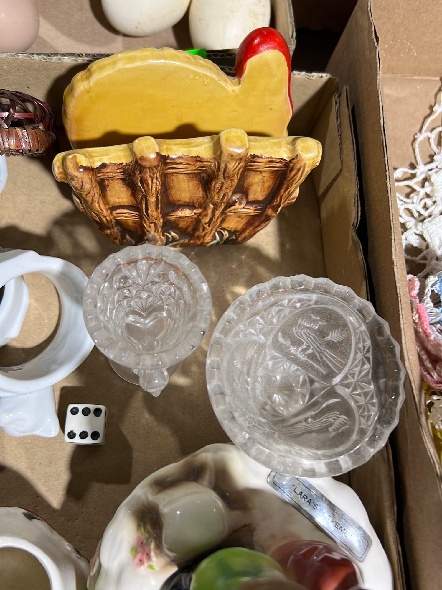 2020 Egg plates, porcelain head planter assortment, chicken cream and sugar