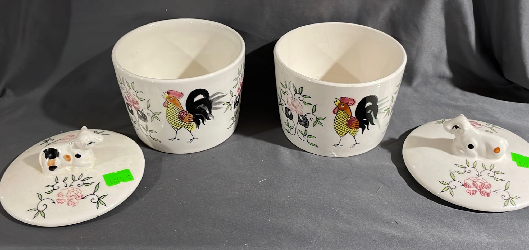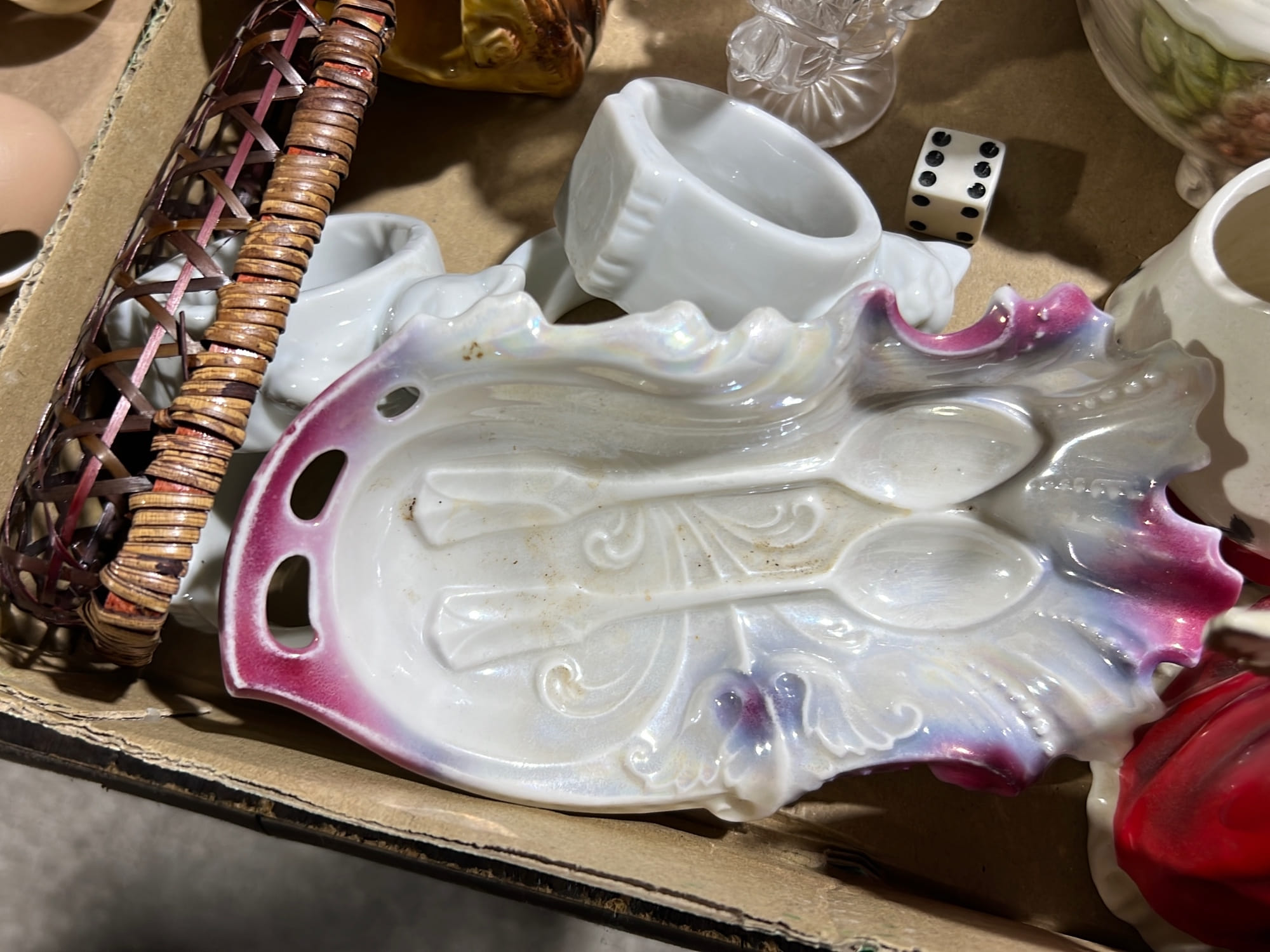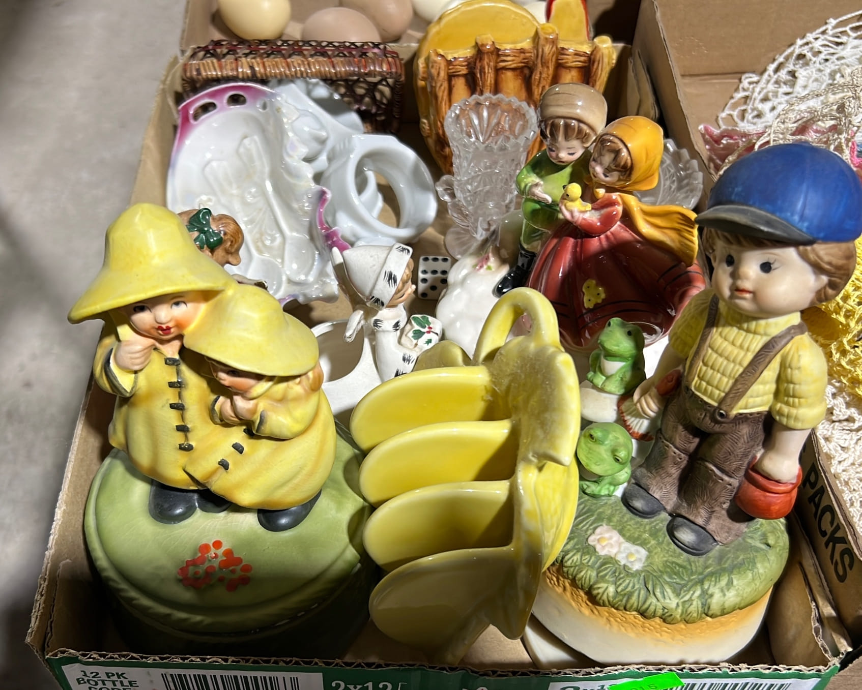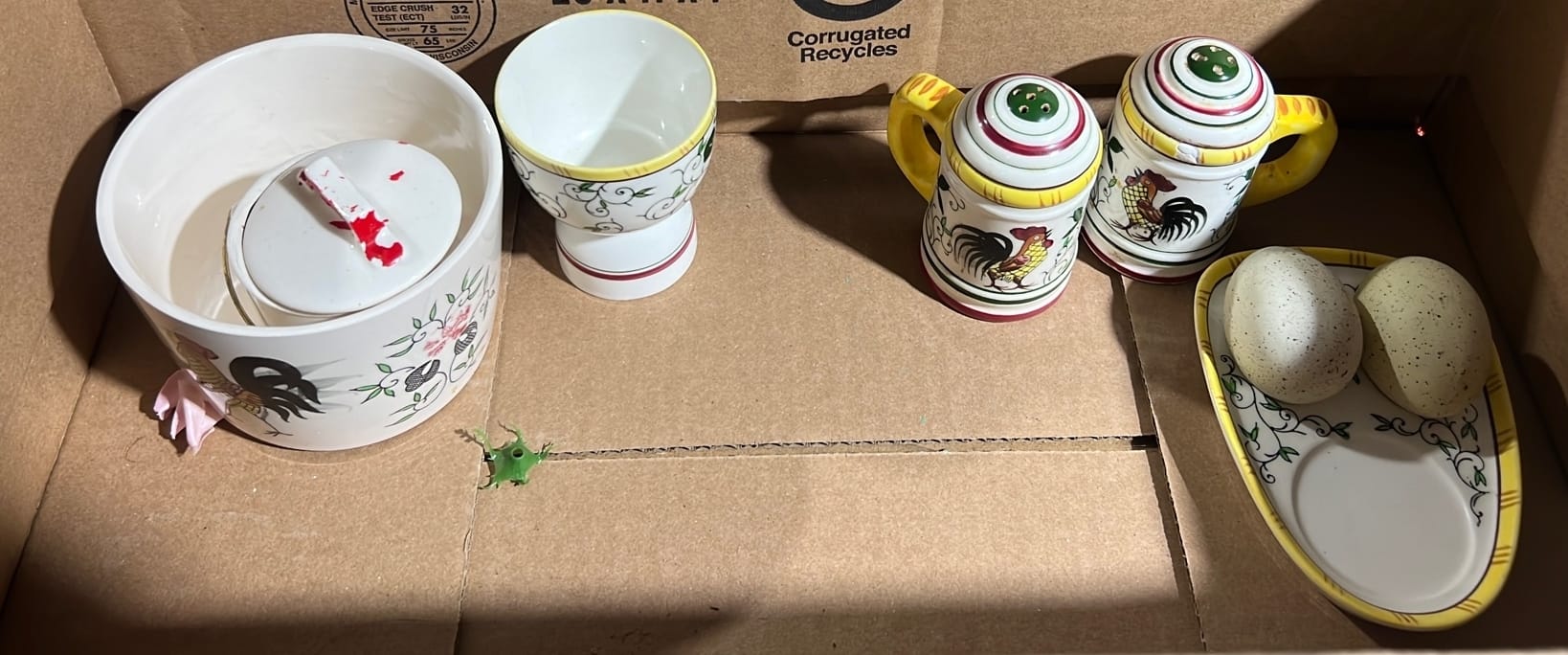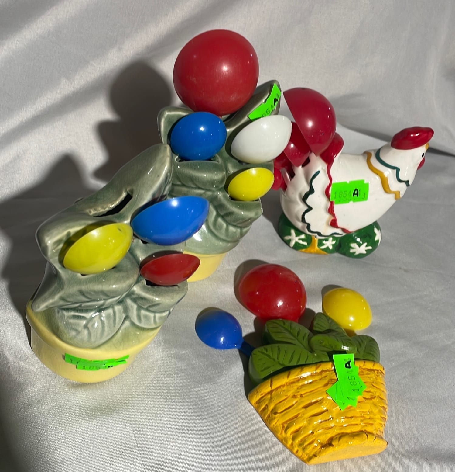 2020 Egg plates, porcelain head planter assortment, chicken cream and sugar