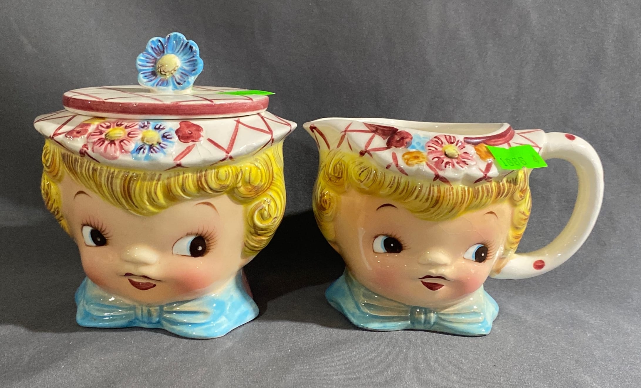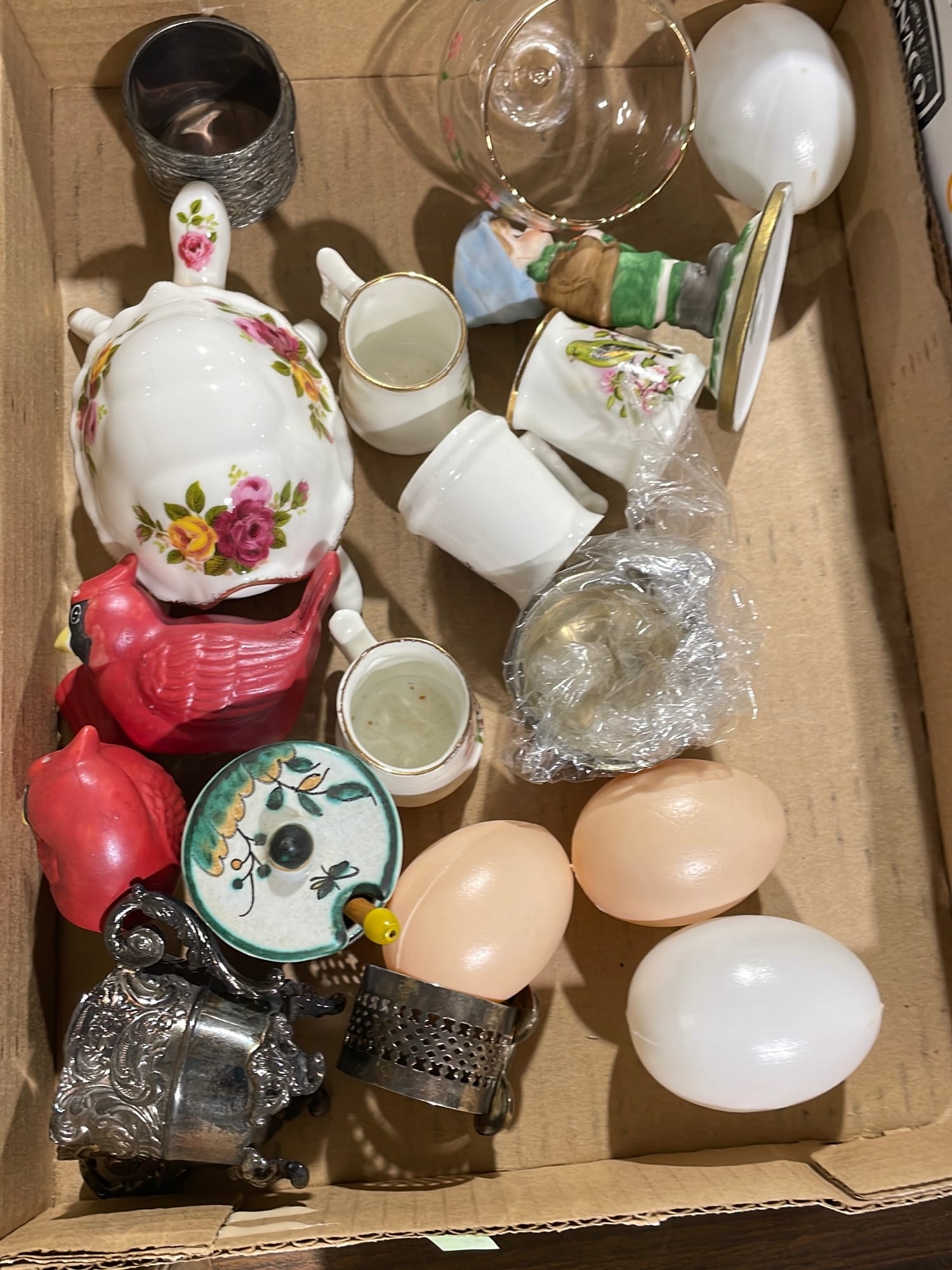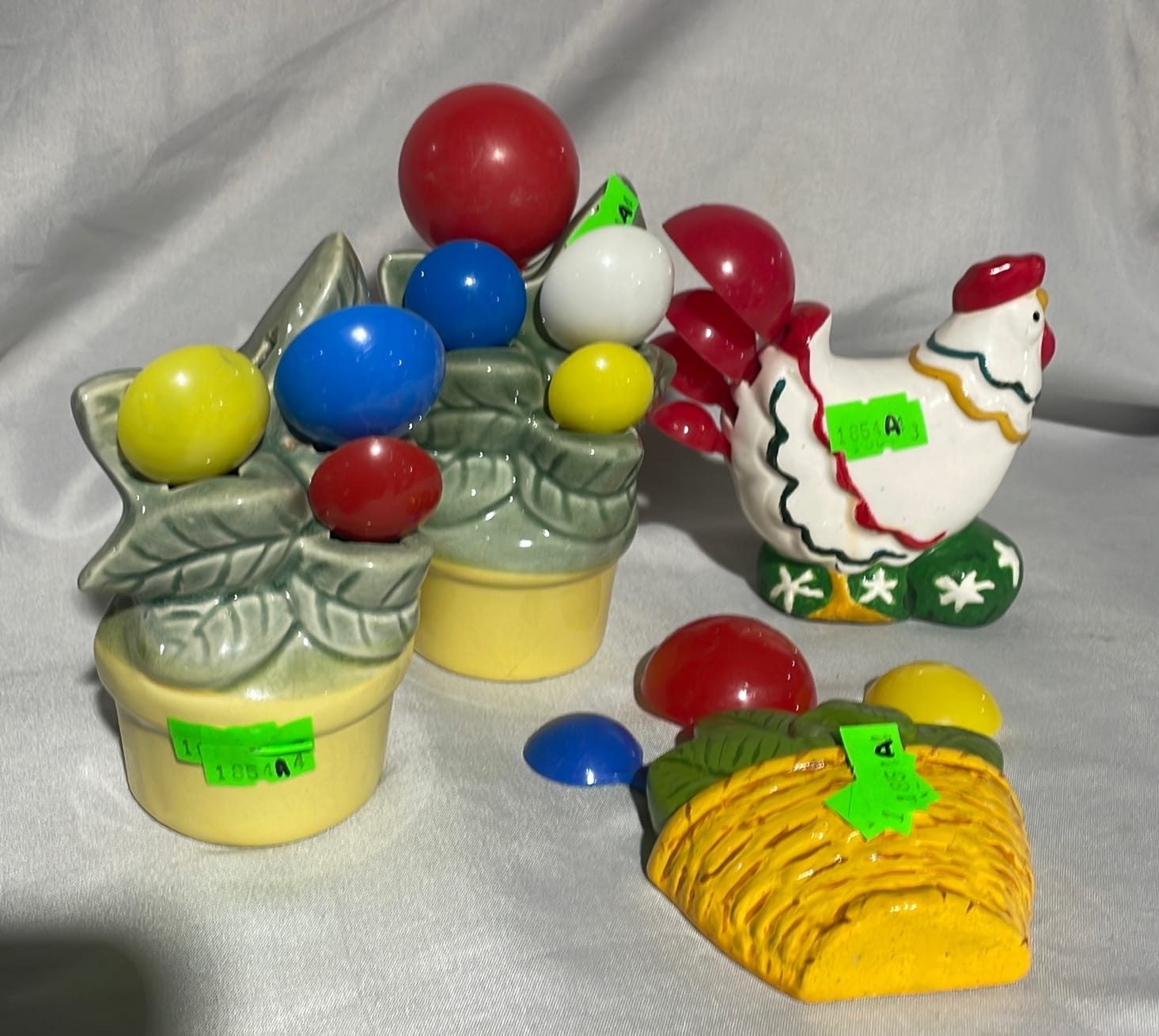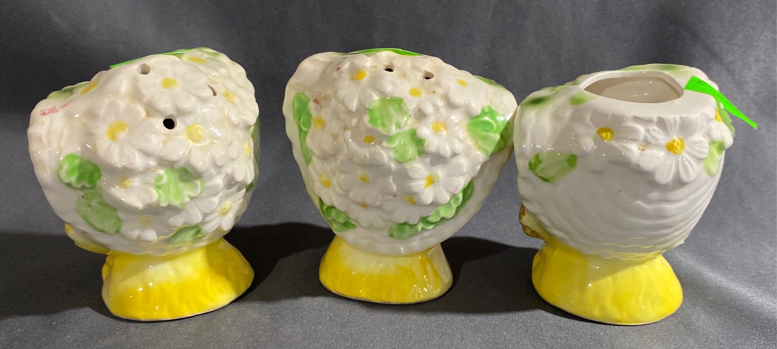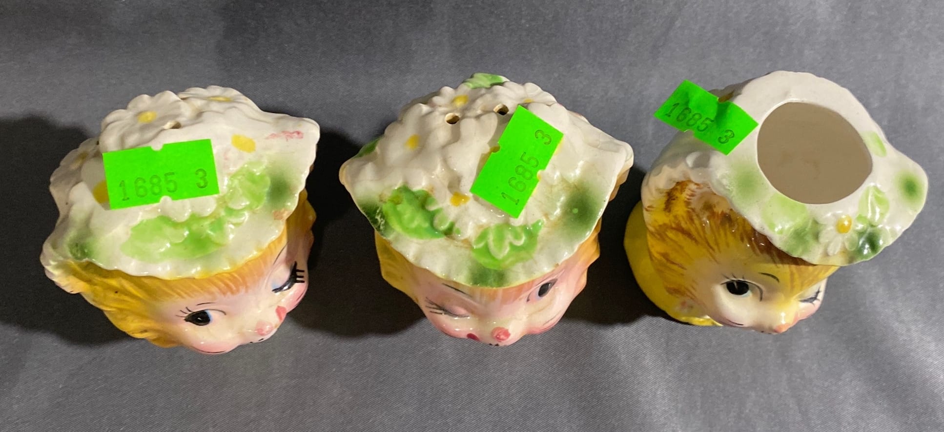 2020 Egg plates, porcelain head planter assortment, chicken cream and sugar
