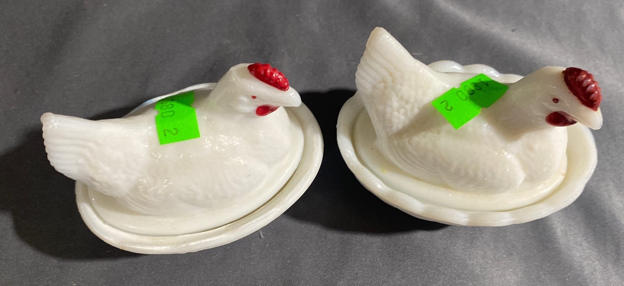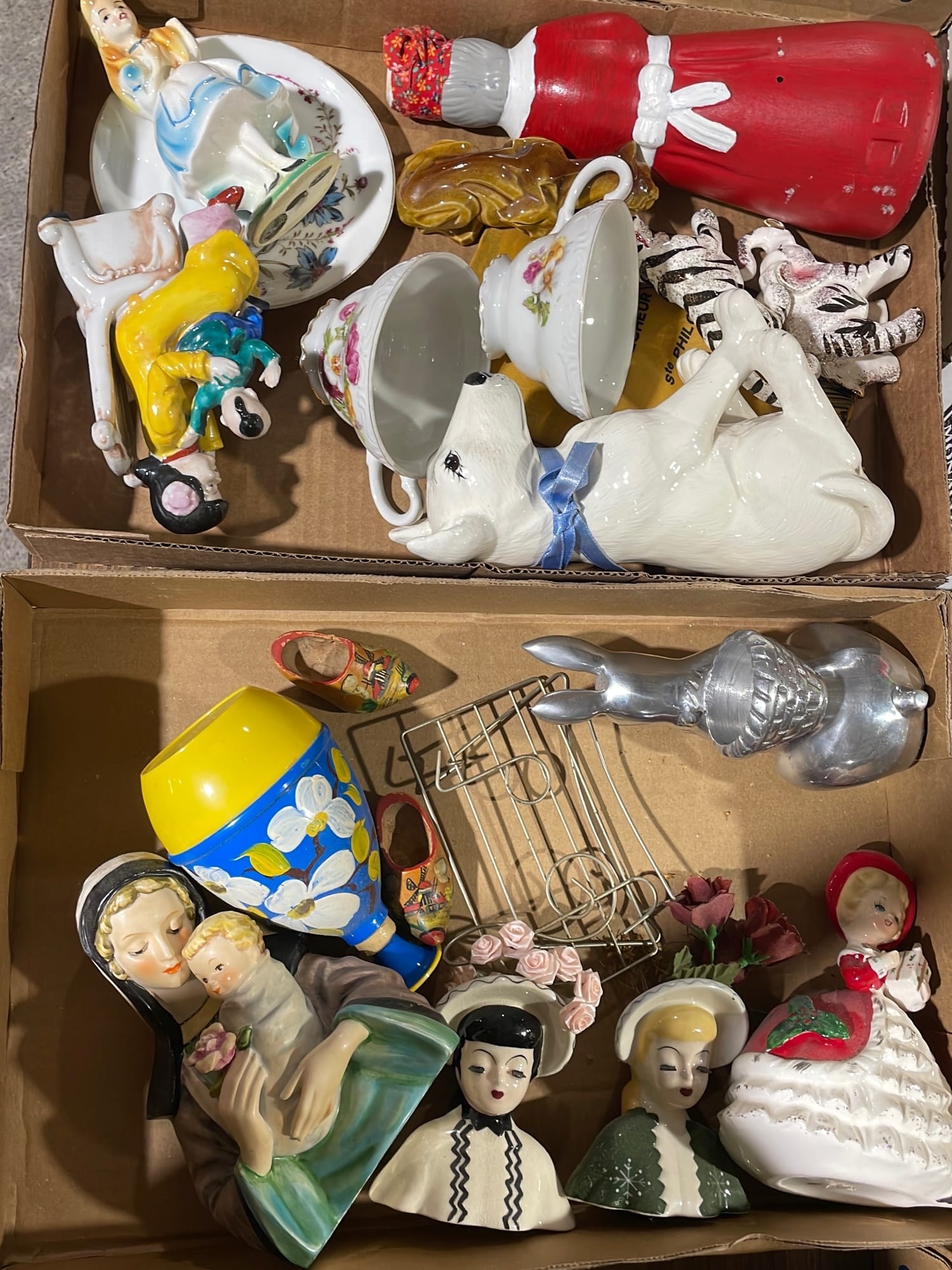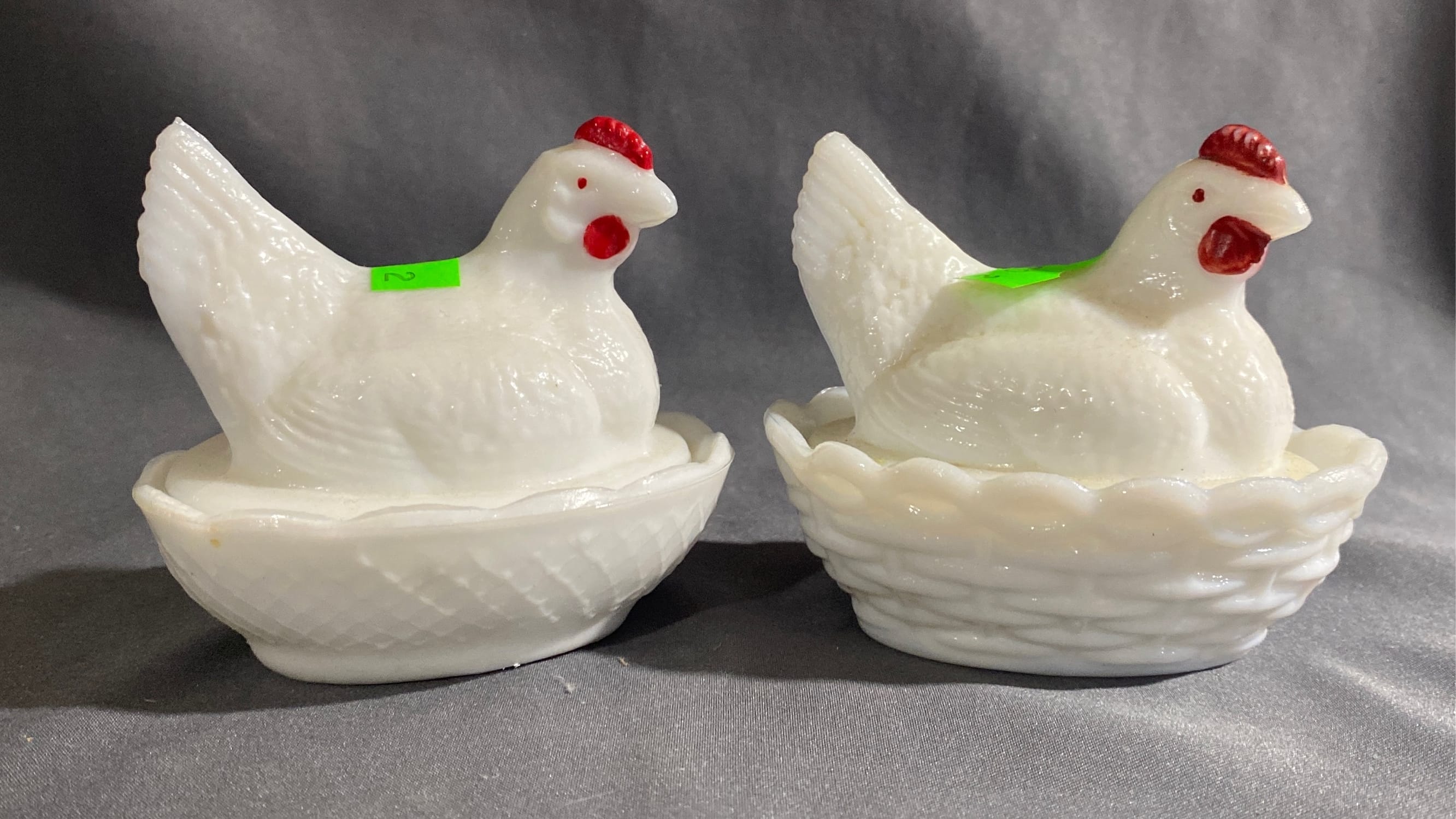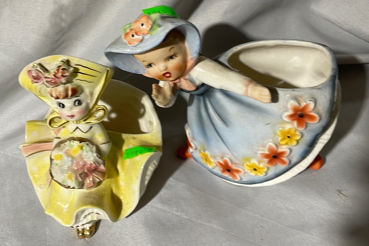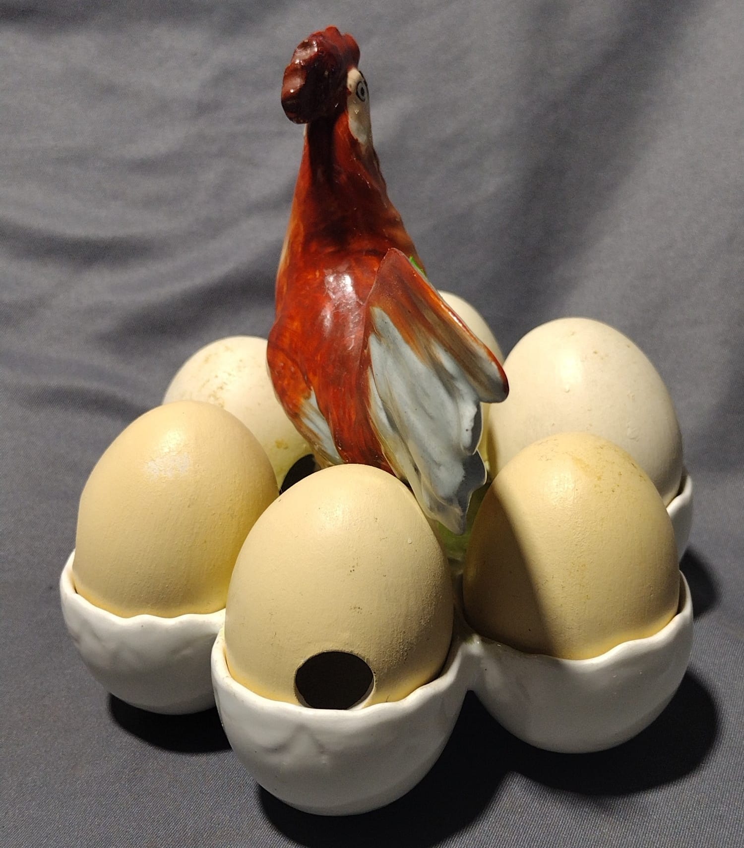 2020 Egg plates, porcelain head planter assortment, chicken cream and sugar