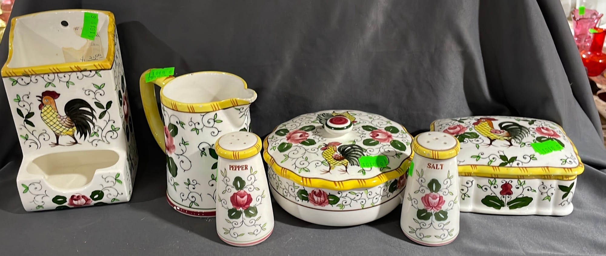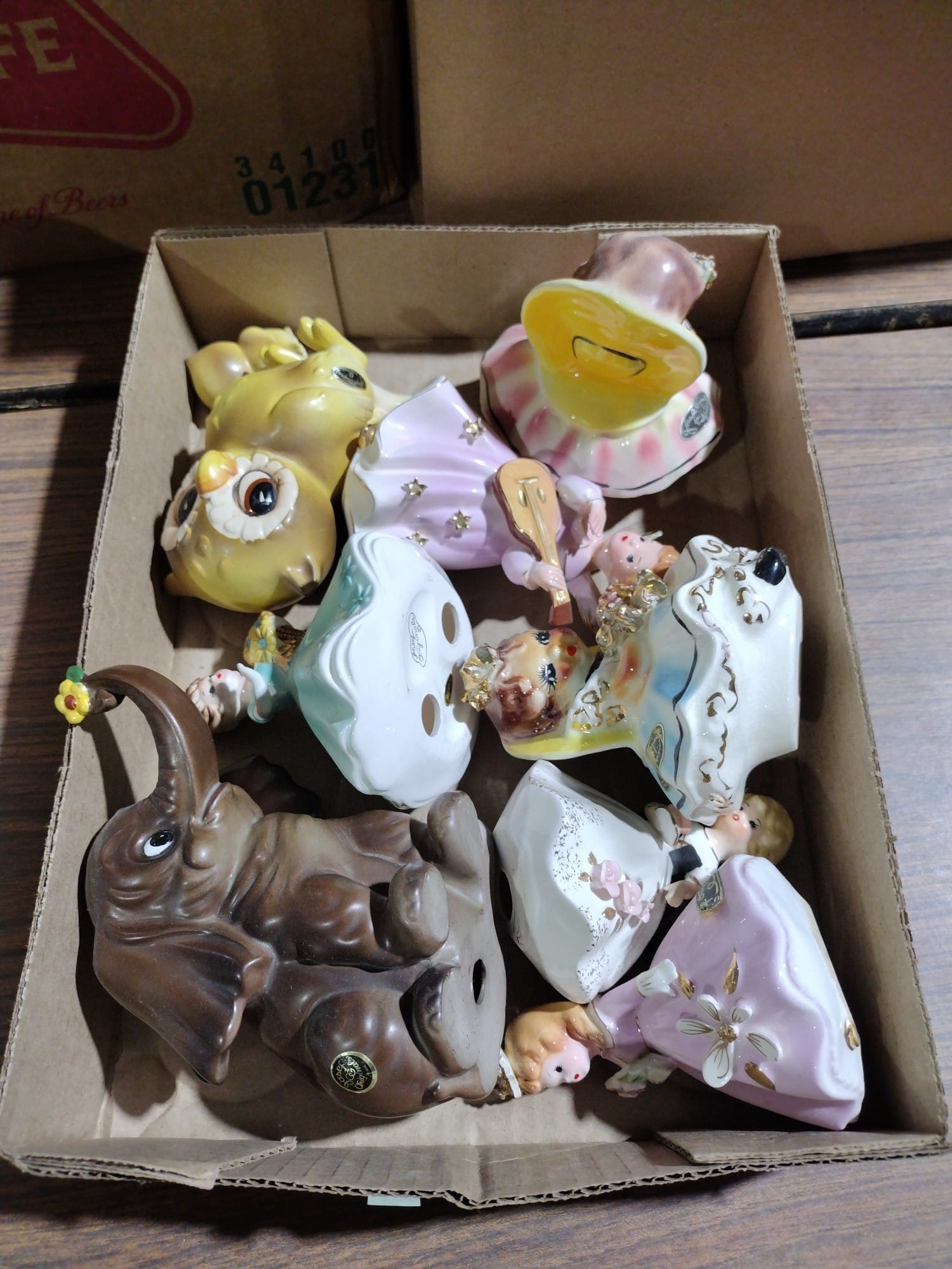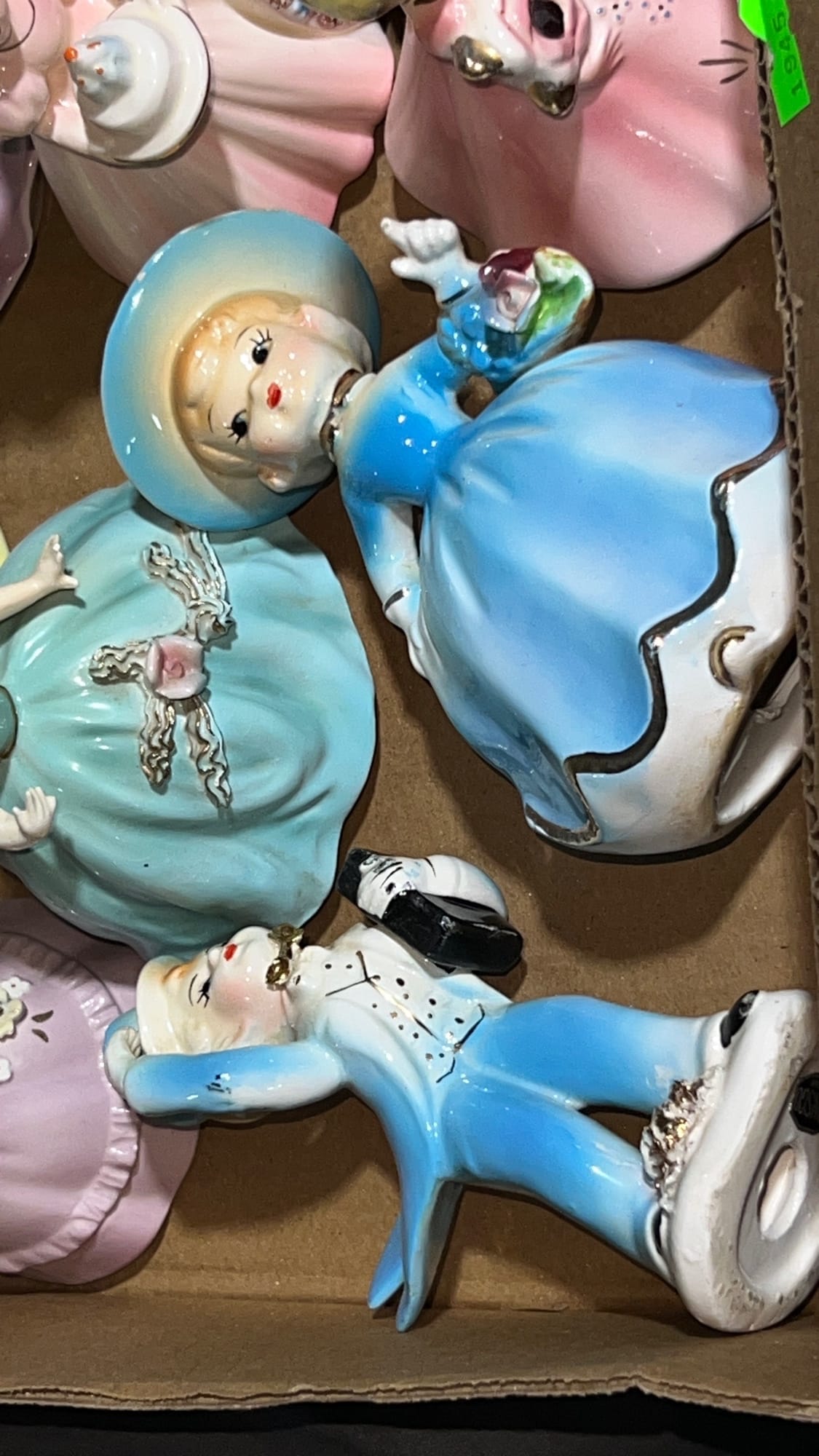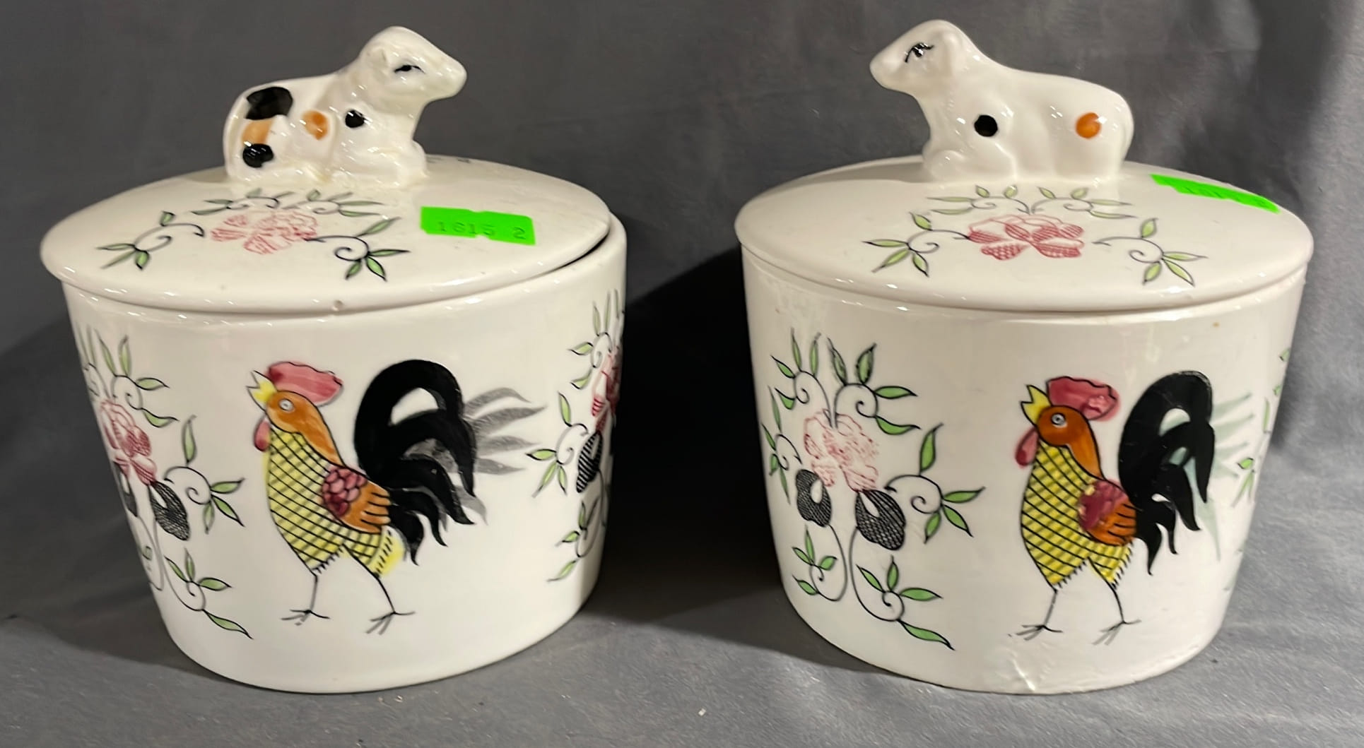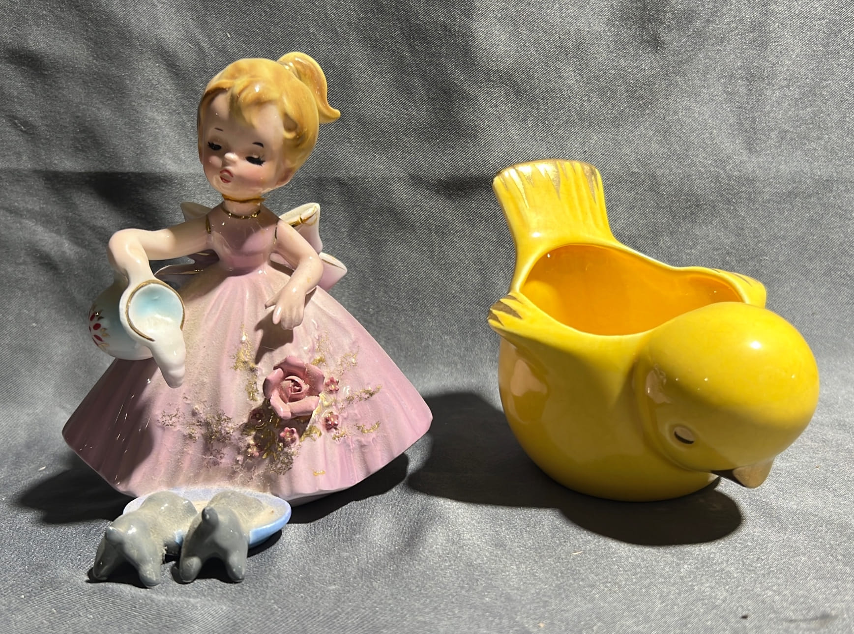 2020 Egg plates, porcelain head planter assortment, chicken cream and sugar