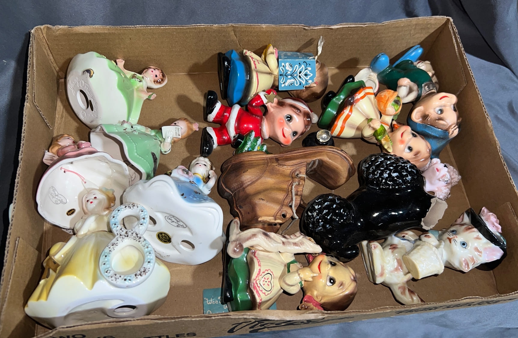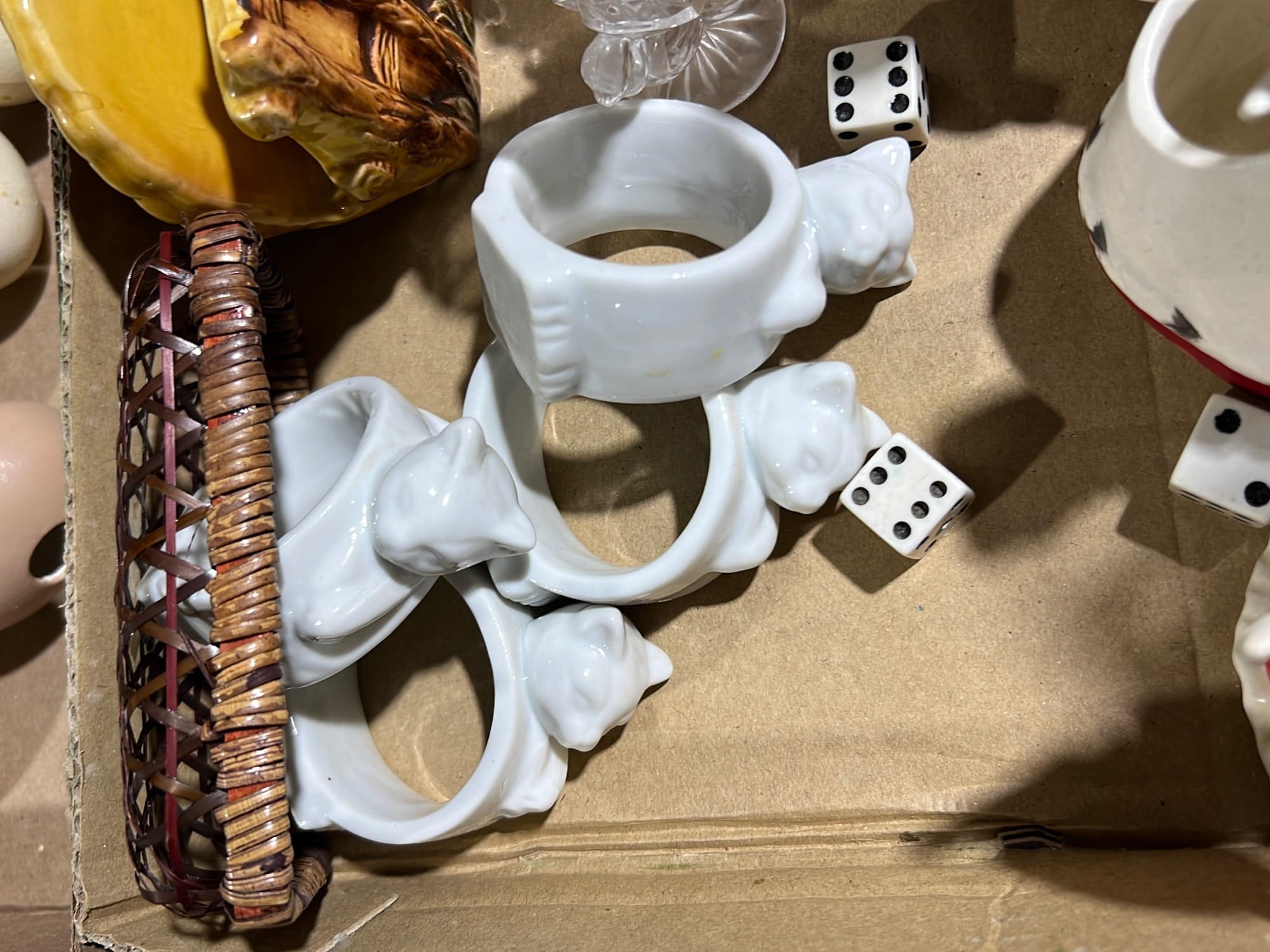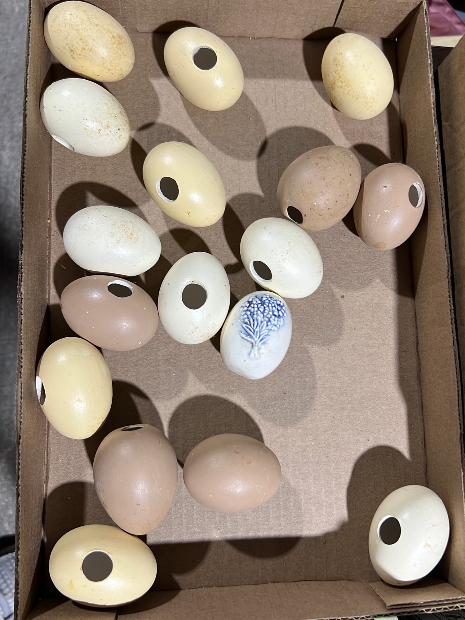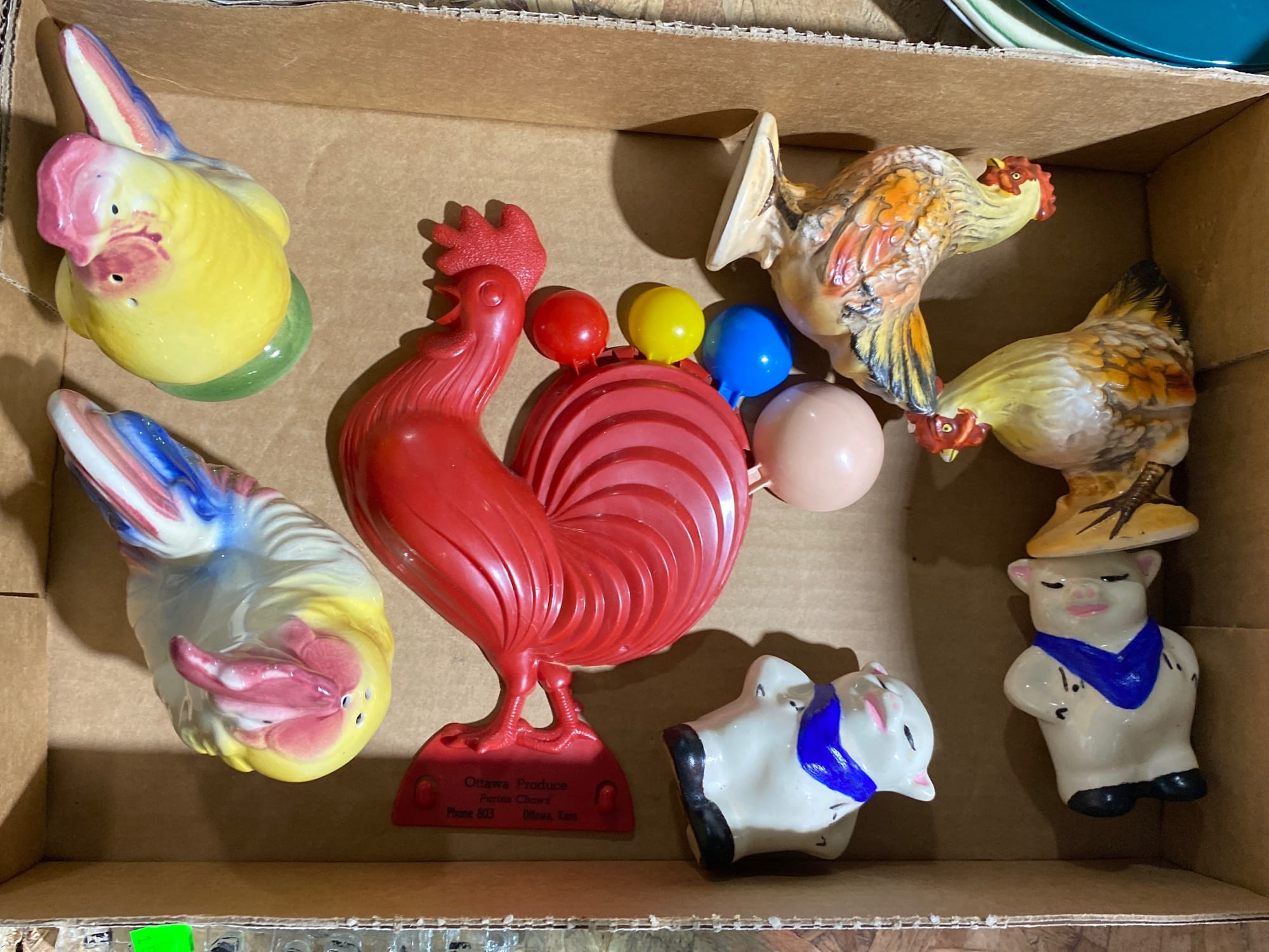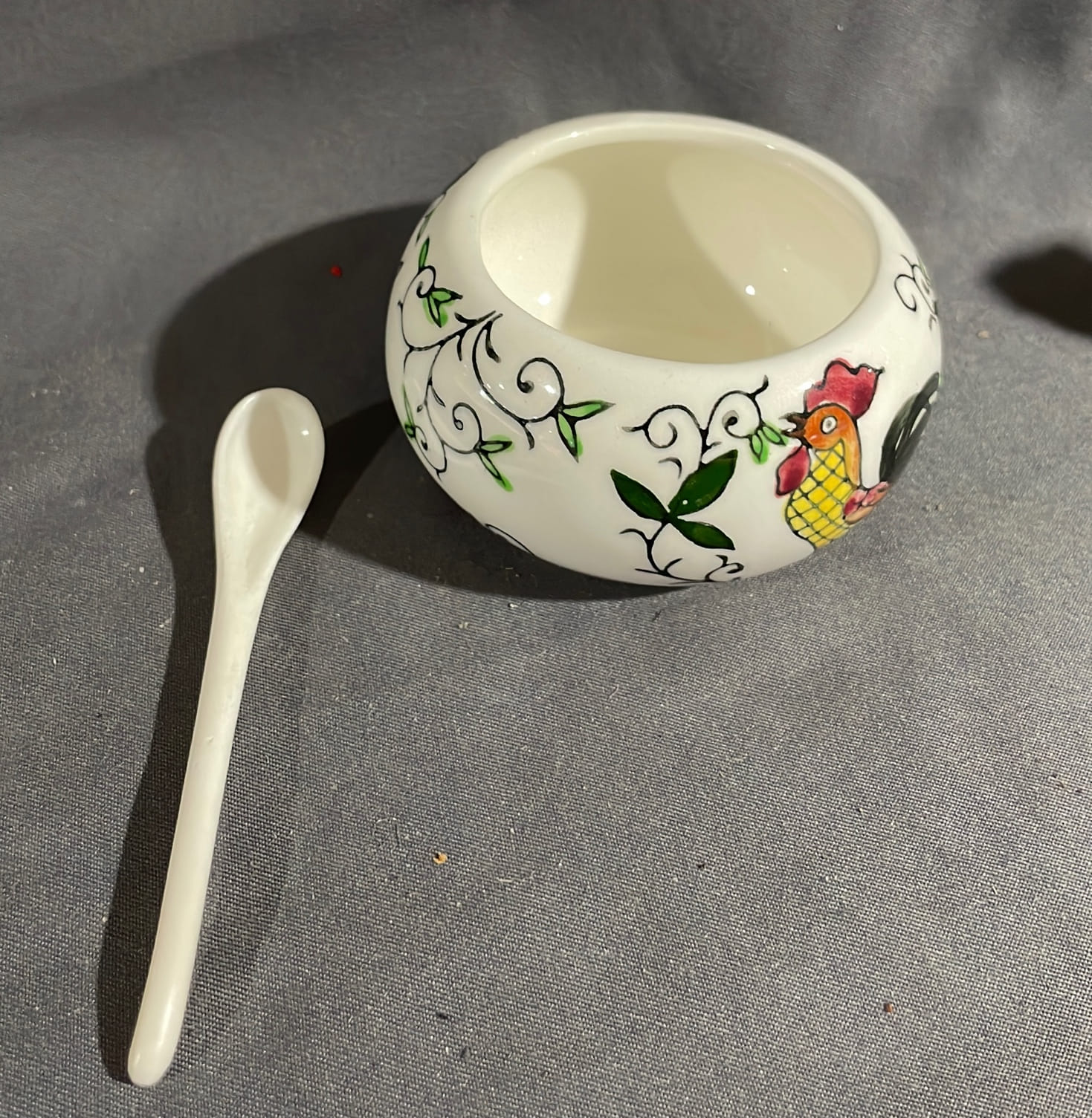 2020 Egg plates, porcelain head planter assortment, chicken cream and sugar