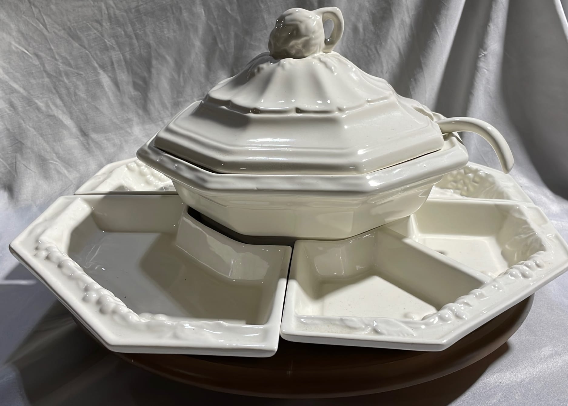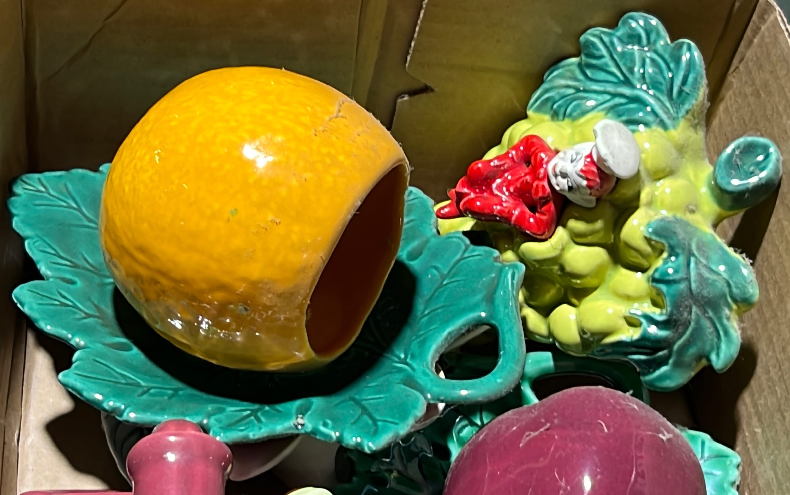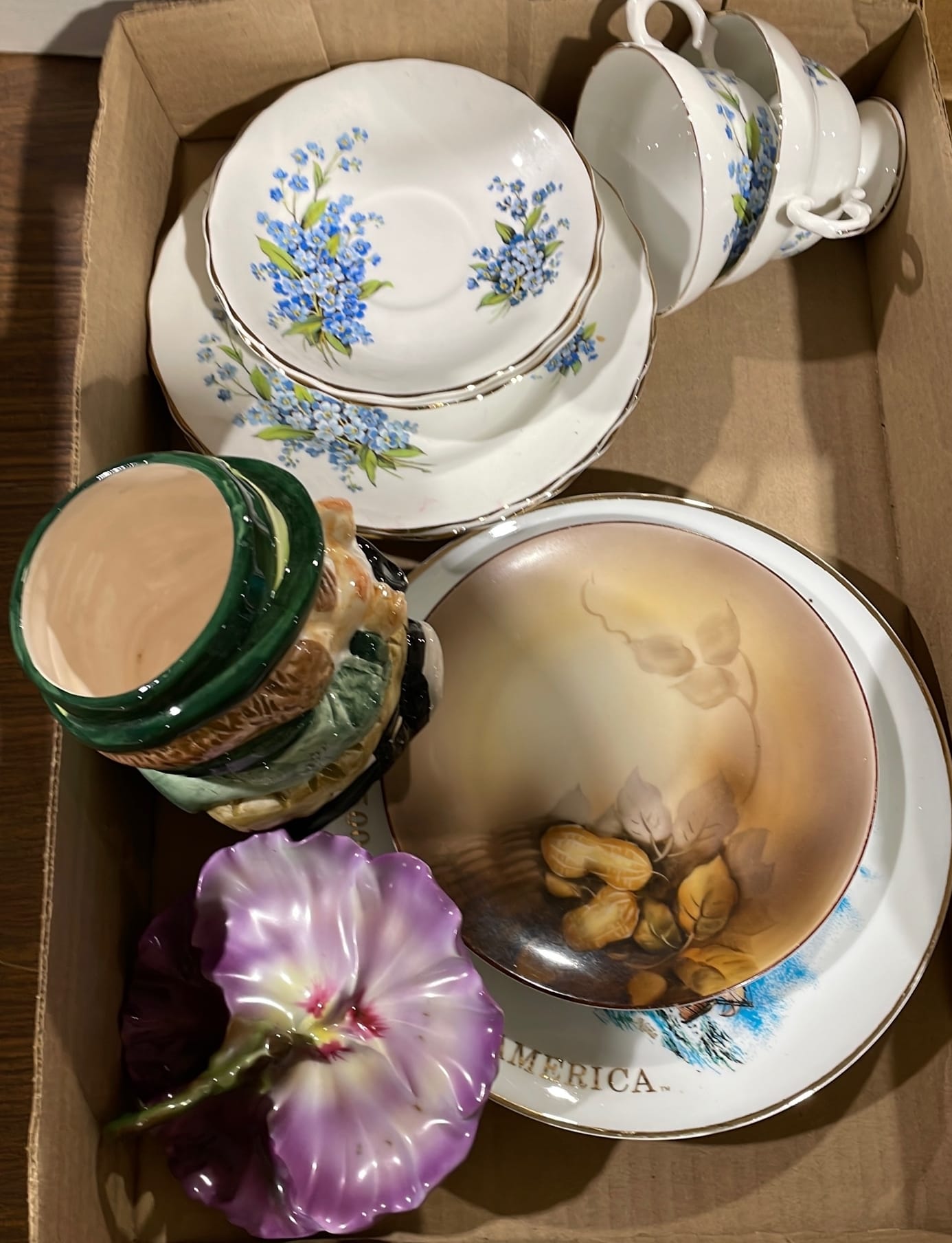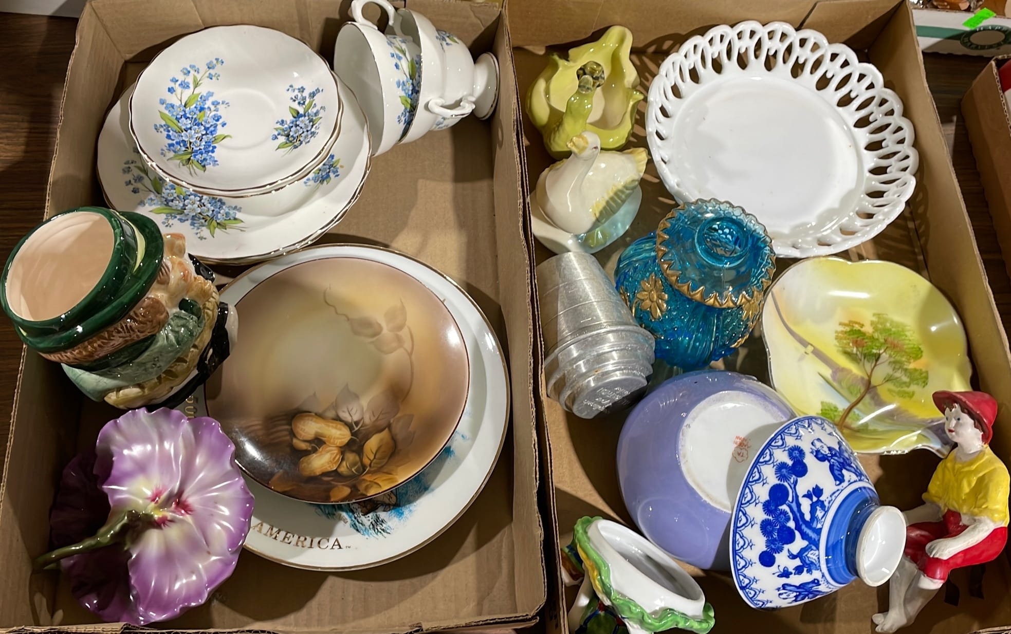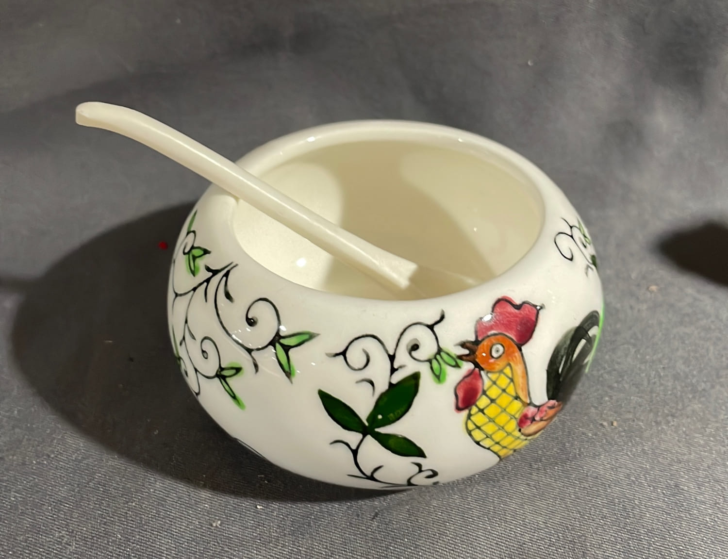 2020 Egg plates, porcelain head planter assortment, chicken cream and sugar