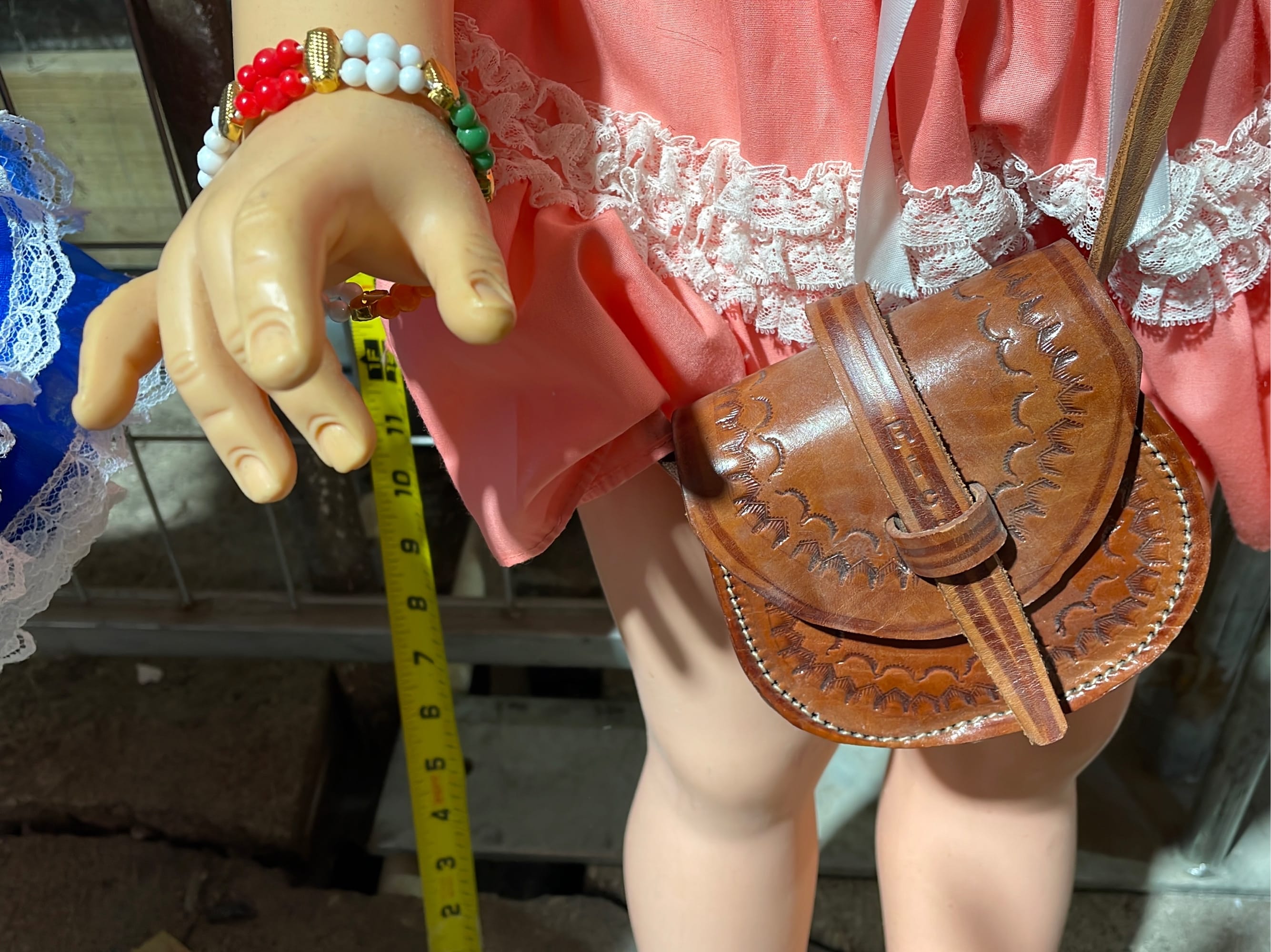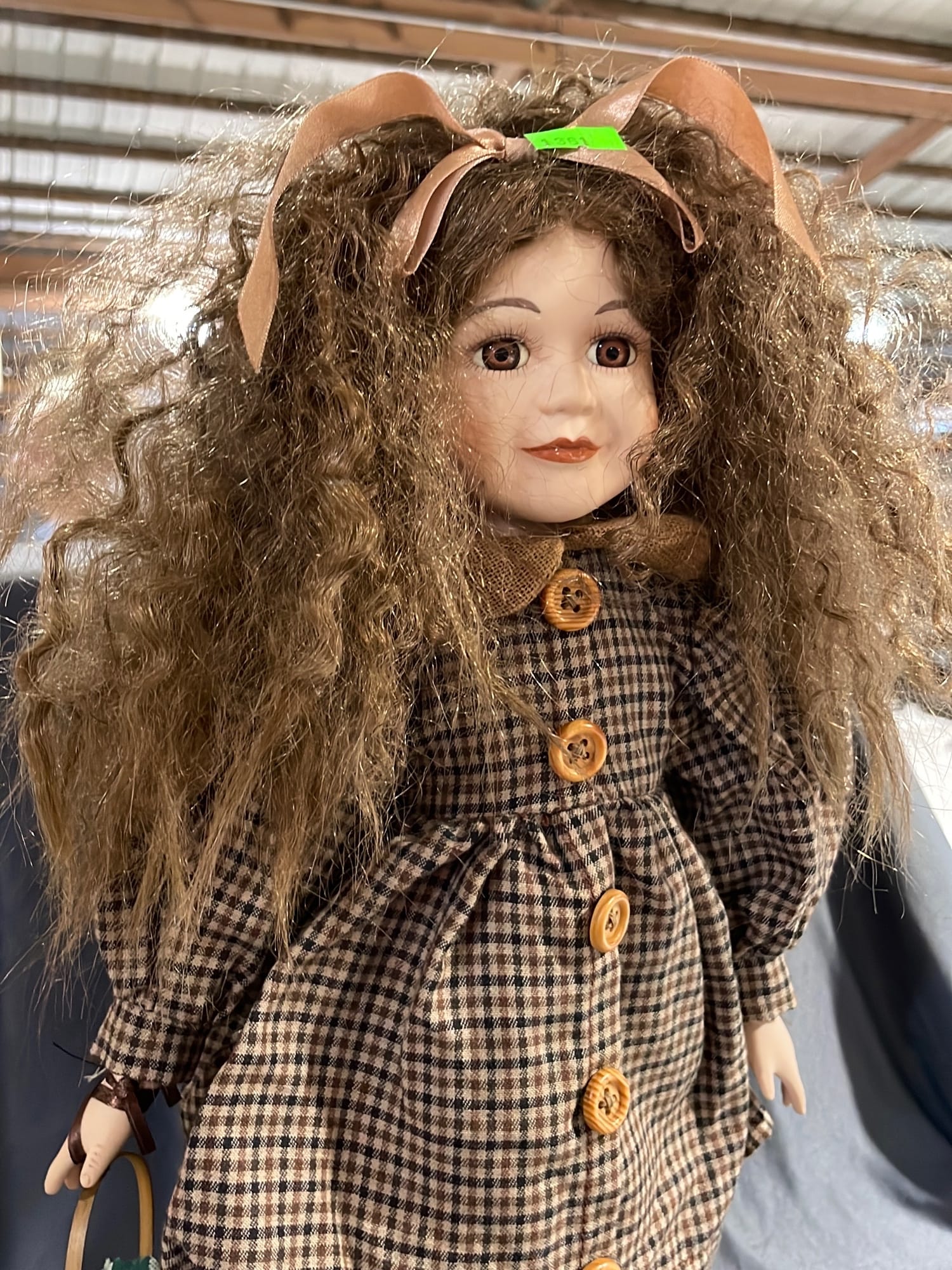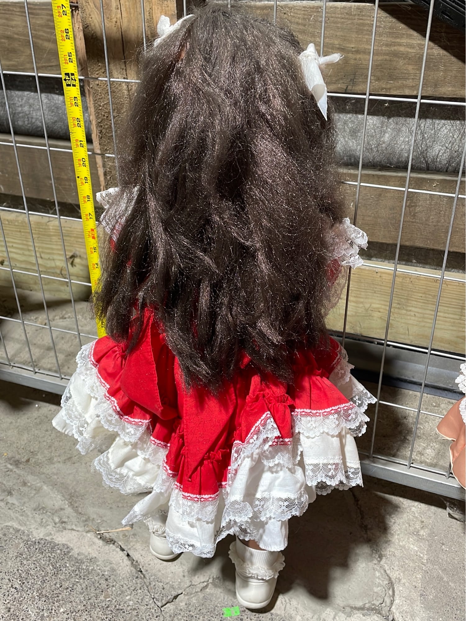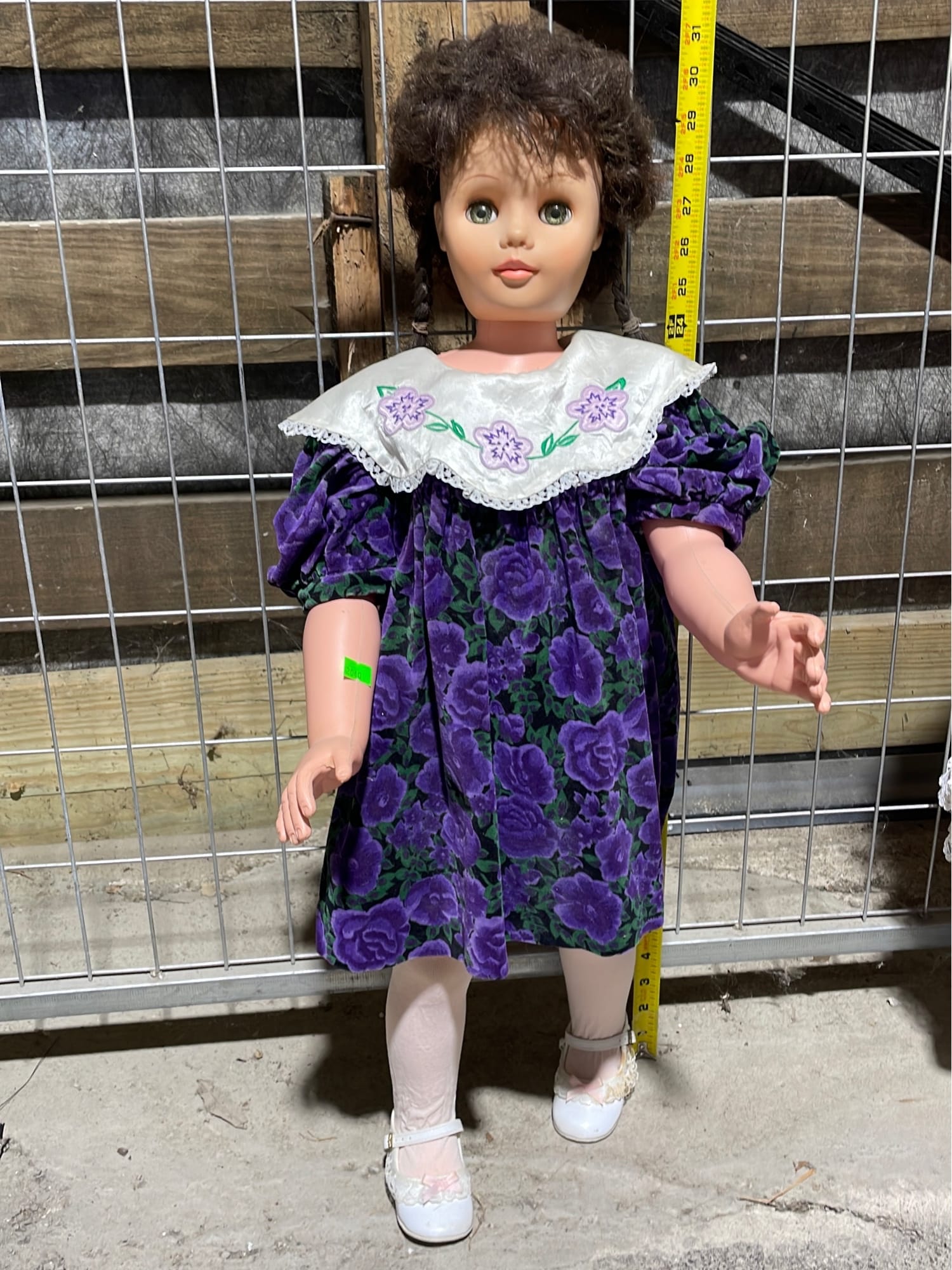 2036 Life Sized Doll with Wig, Bracelet, and Leather Purse