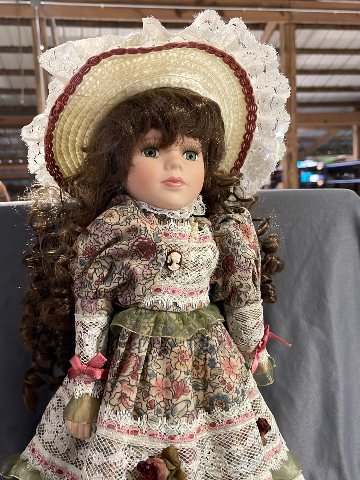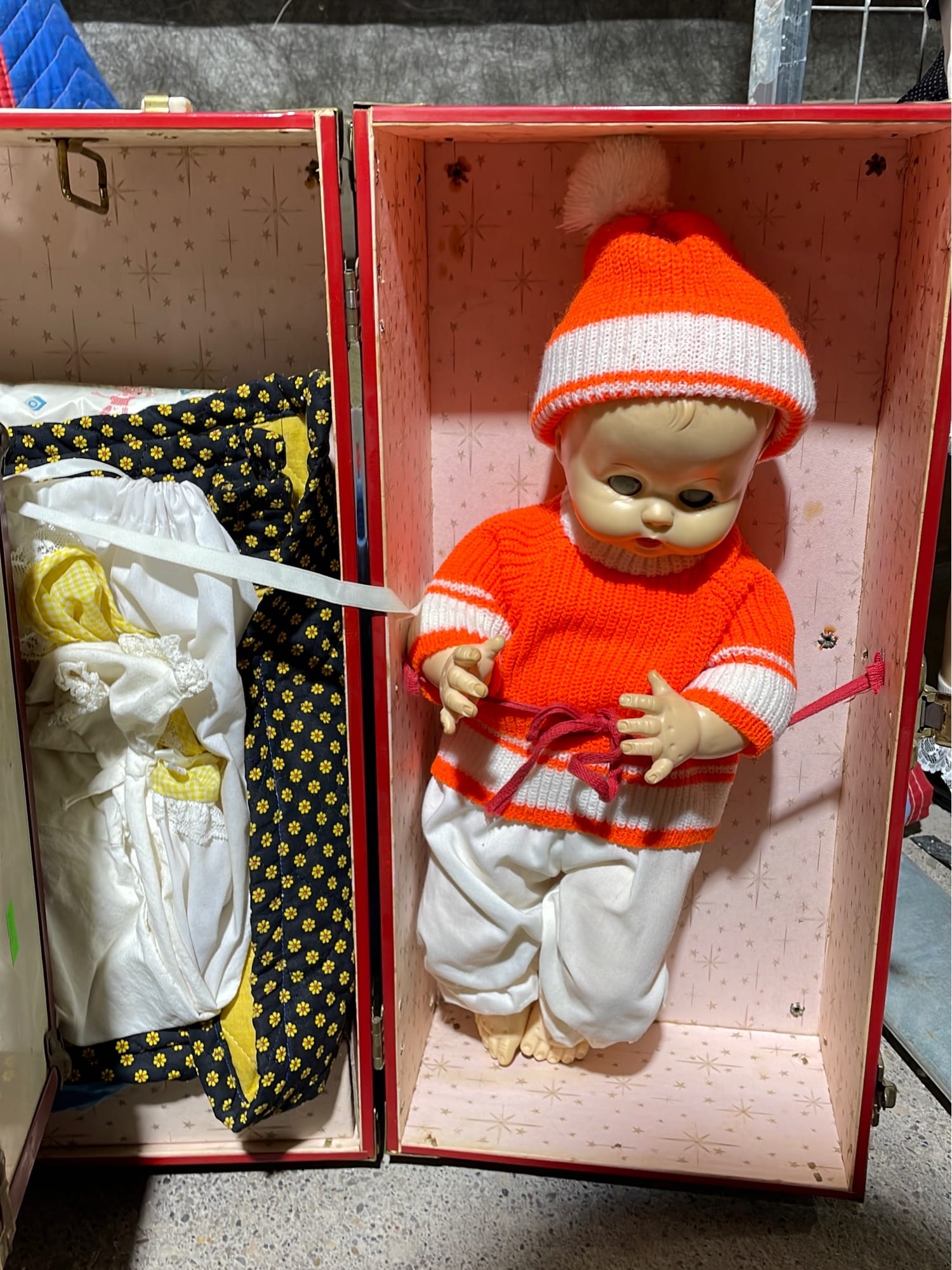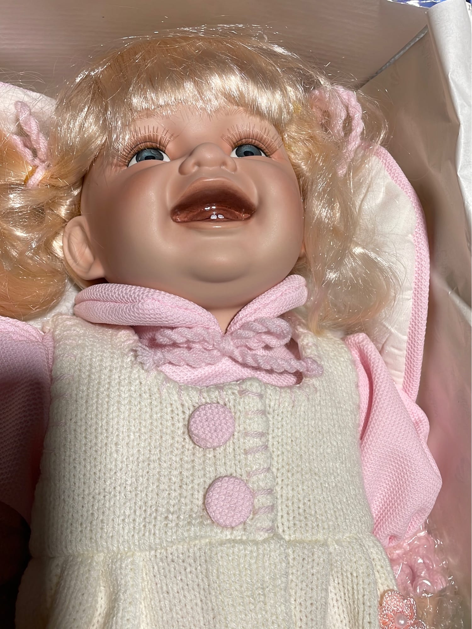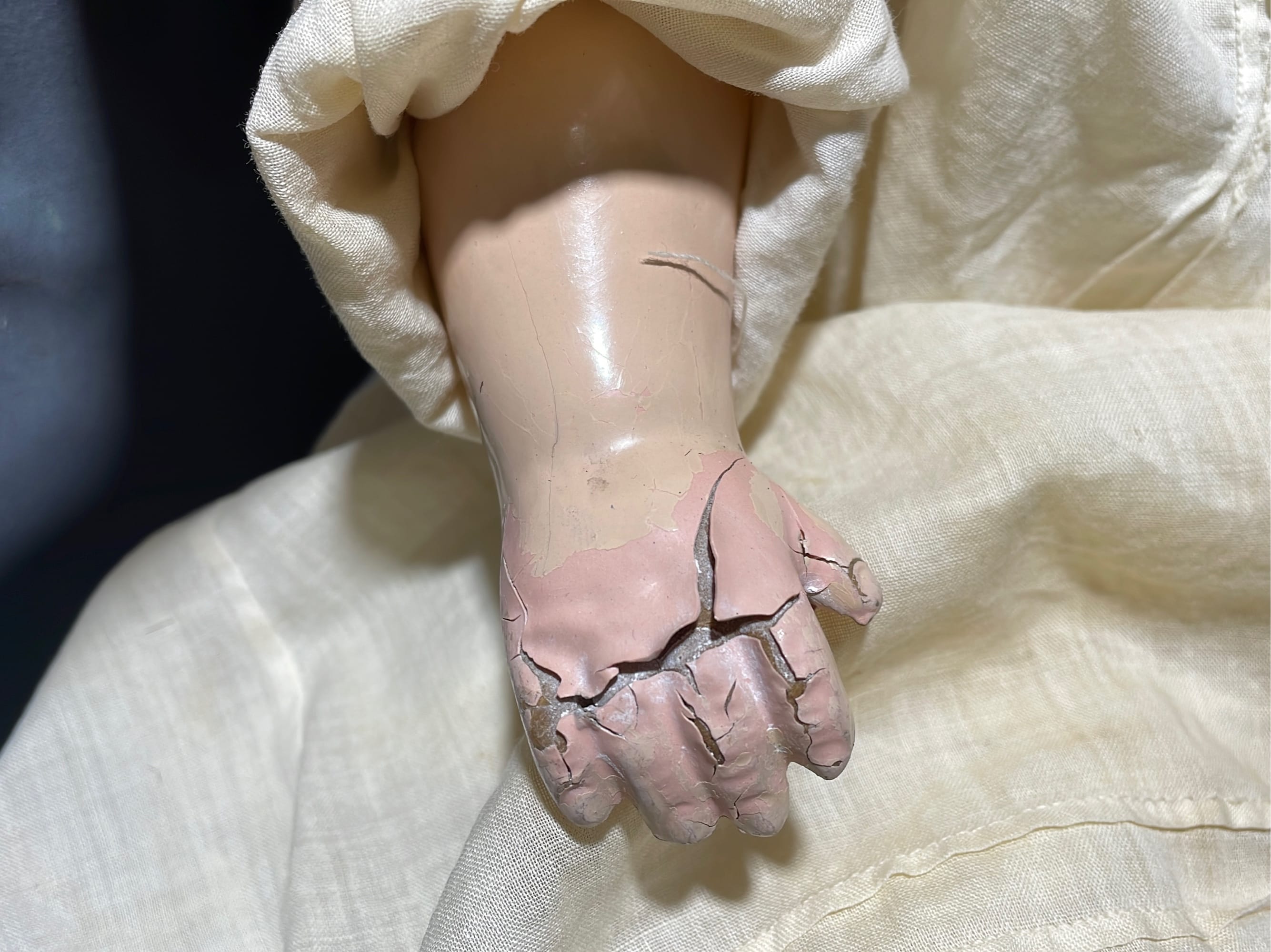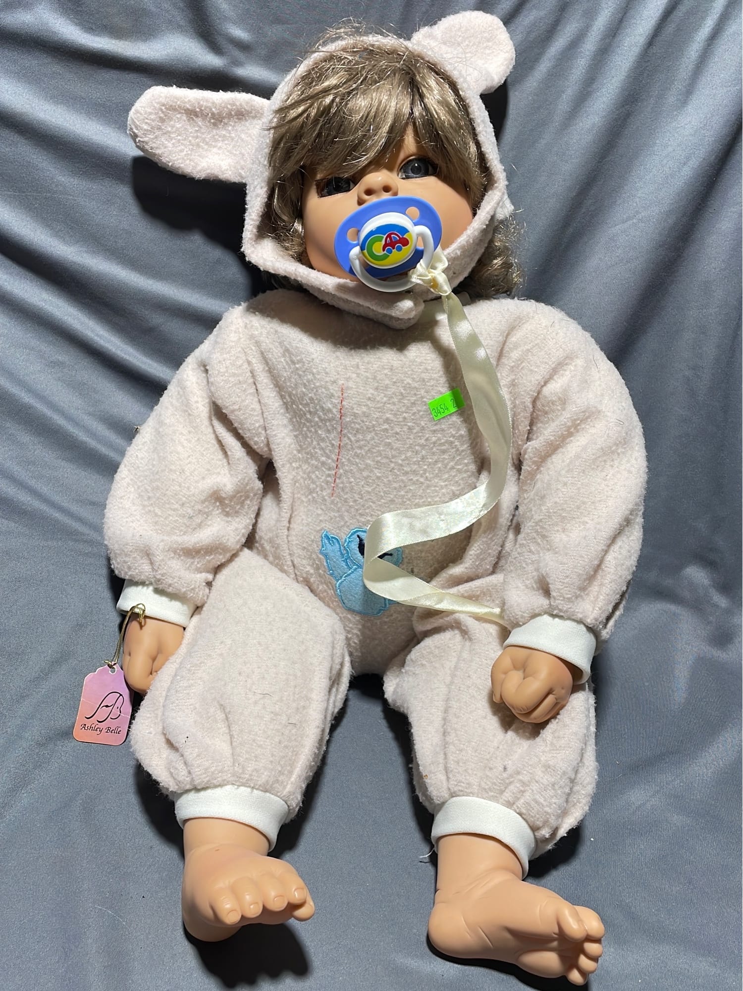 2036 Life Sized Doll with Wig, Bracelet, and Leather Purse