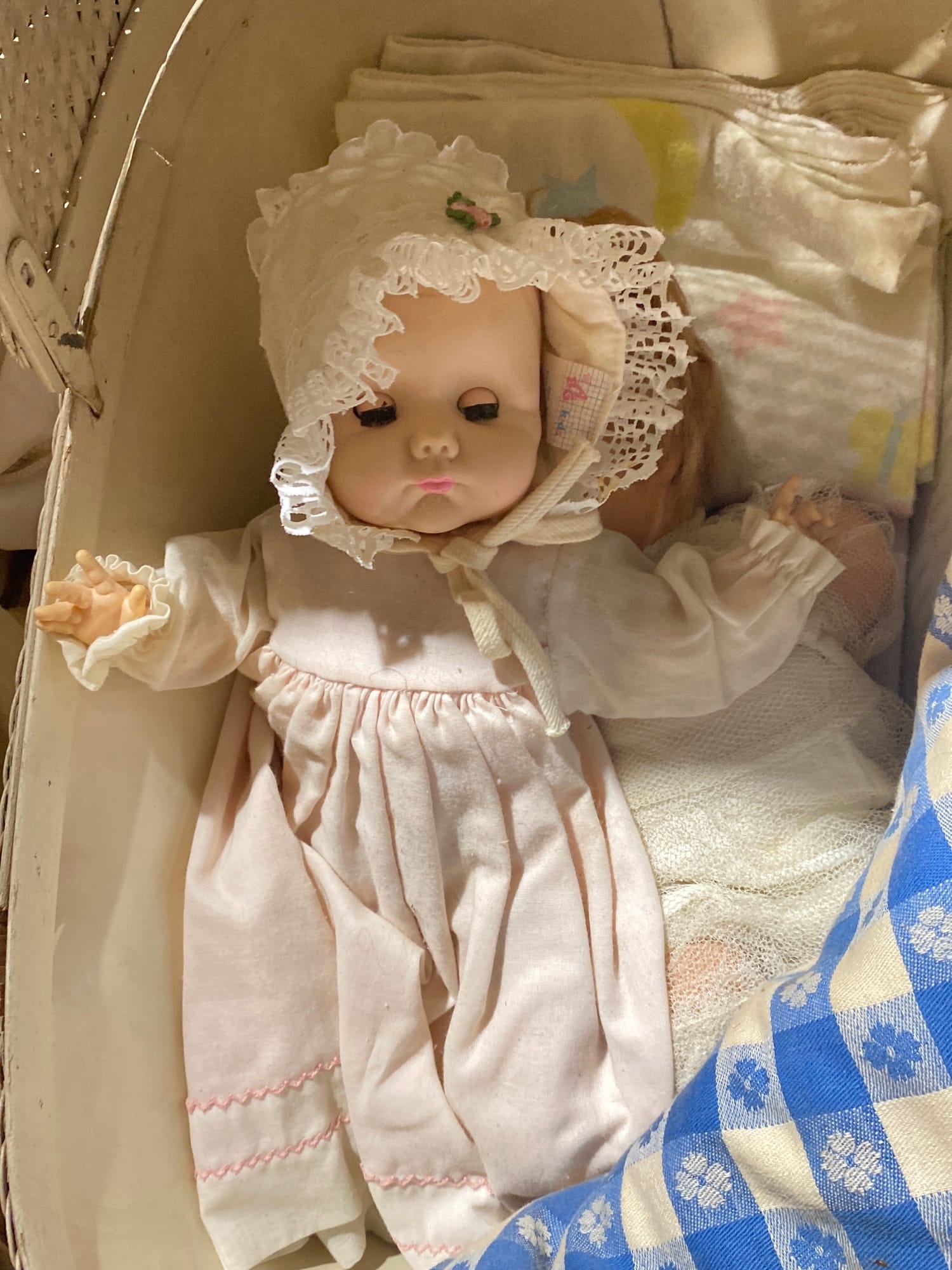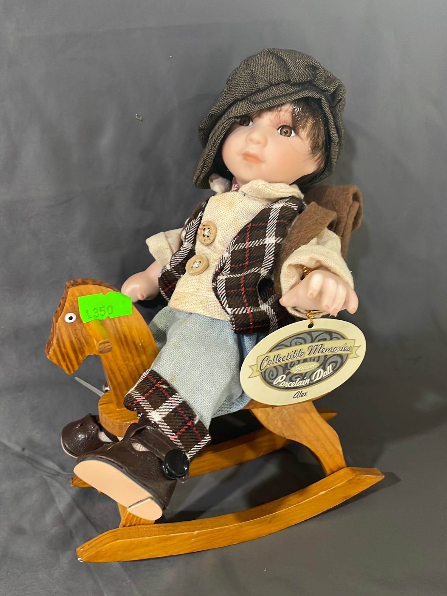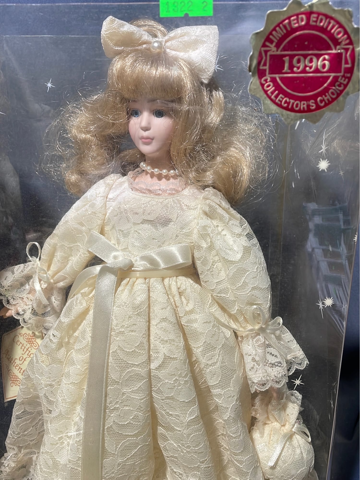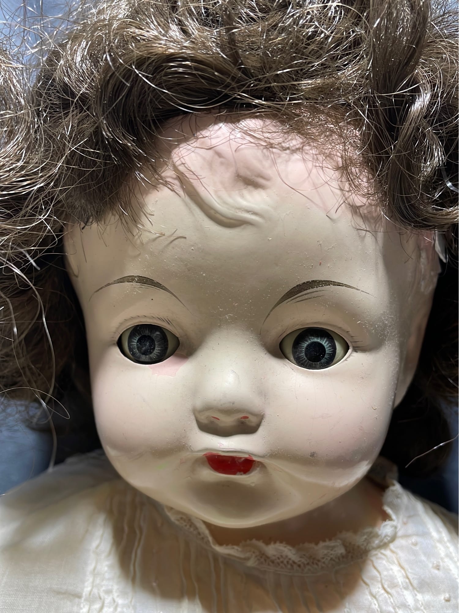 2036 Life Sized Doll with Wig, Bracelet, and Leather Purse