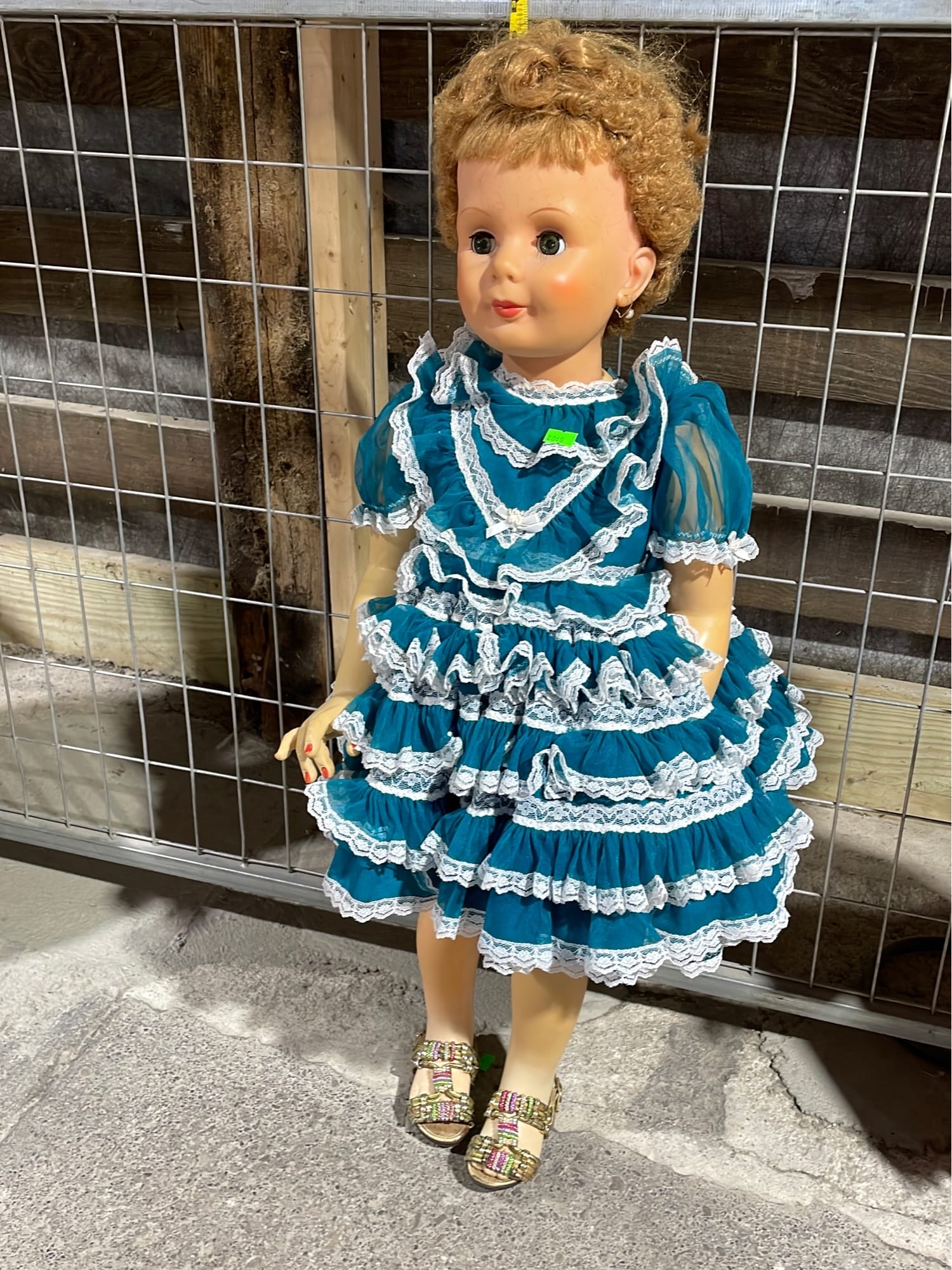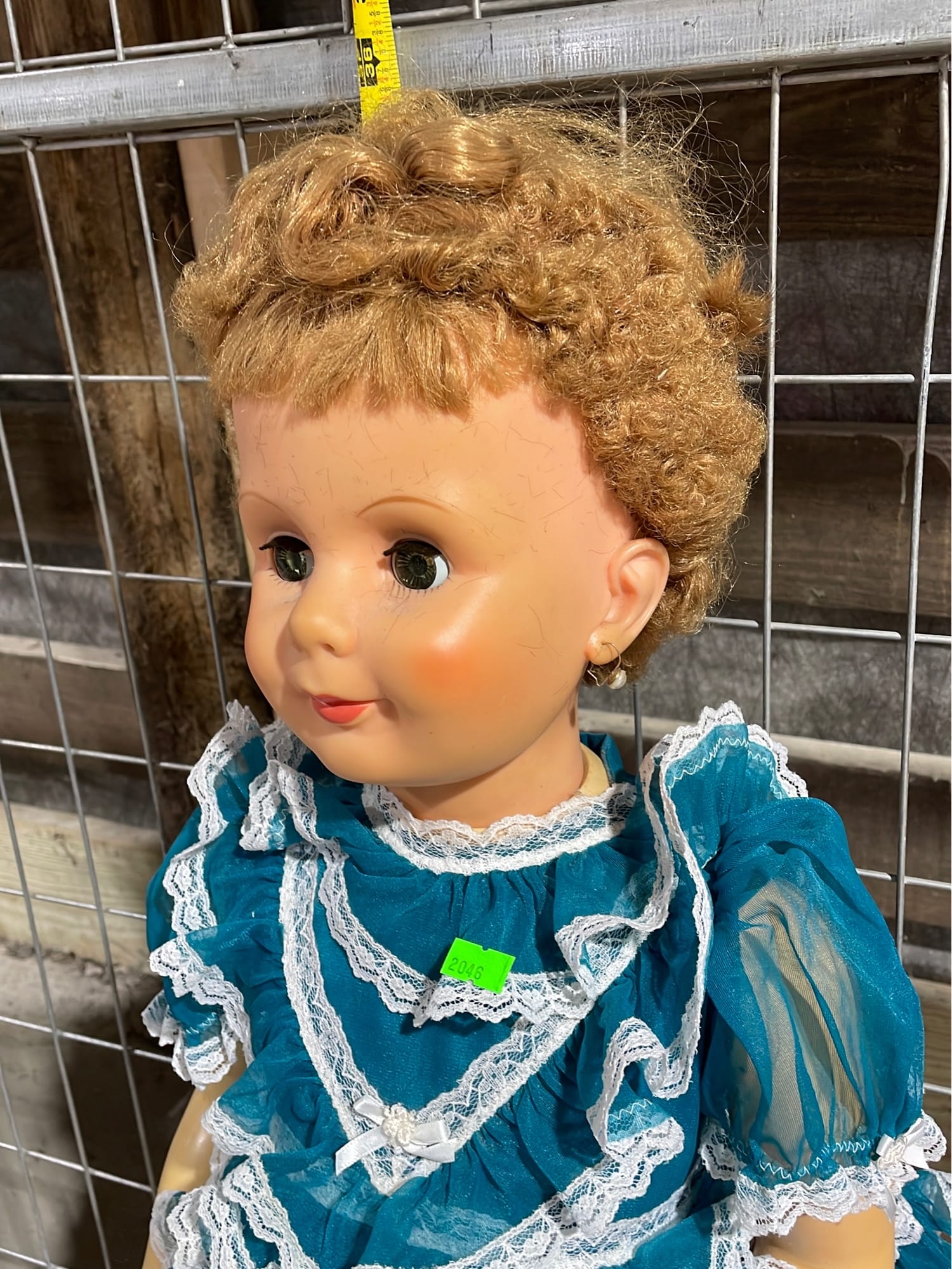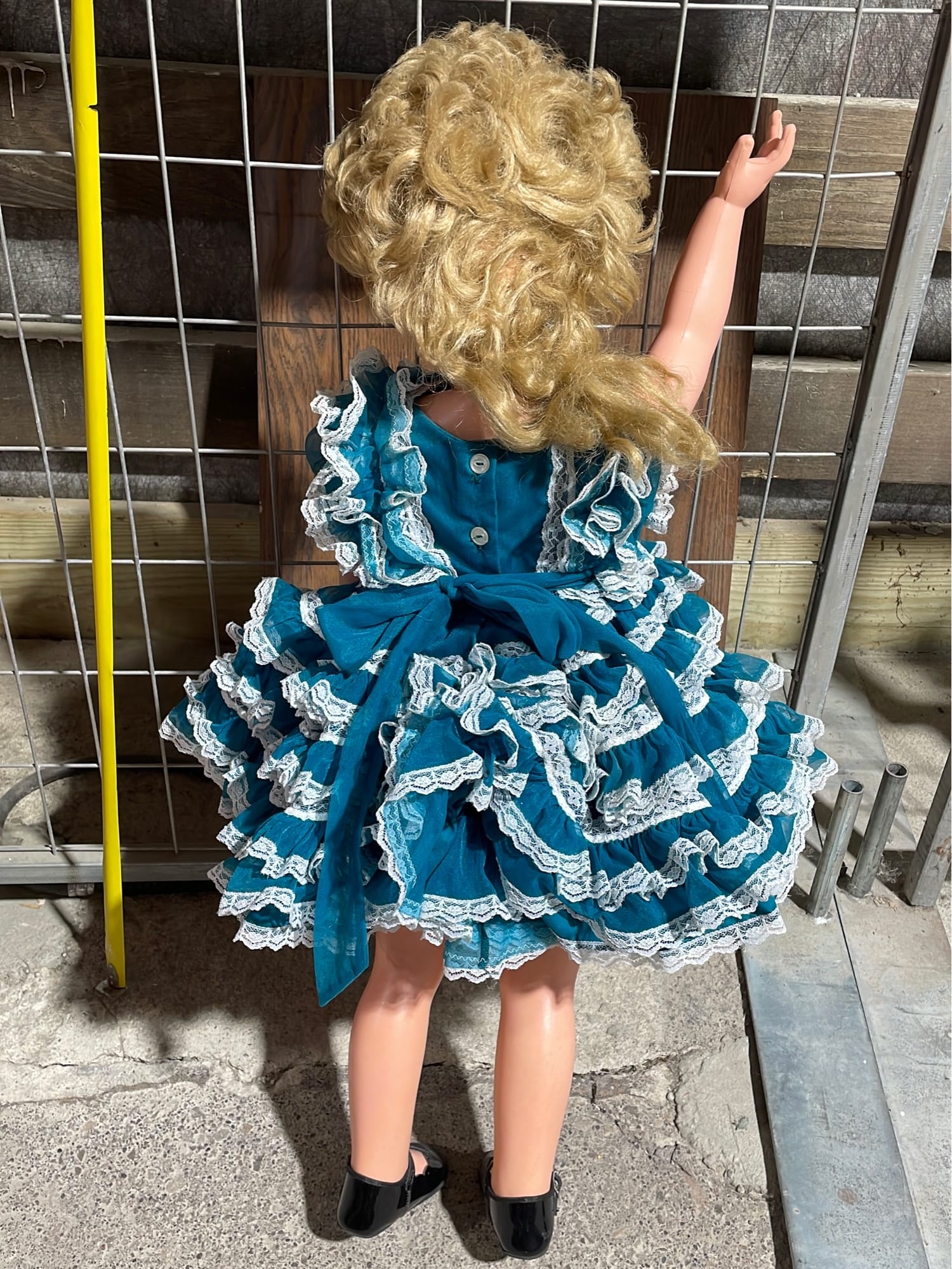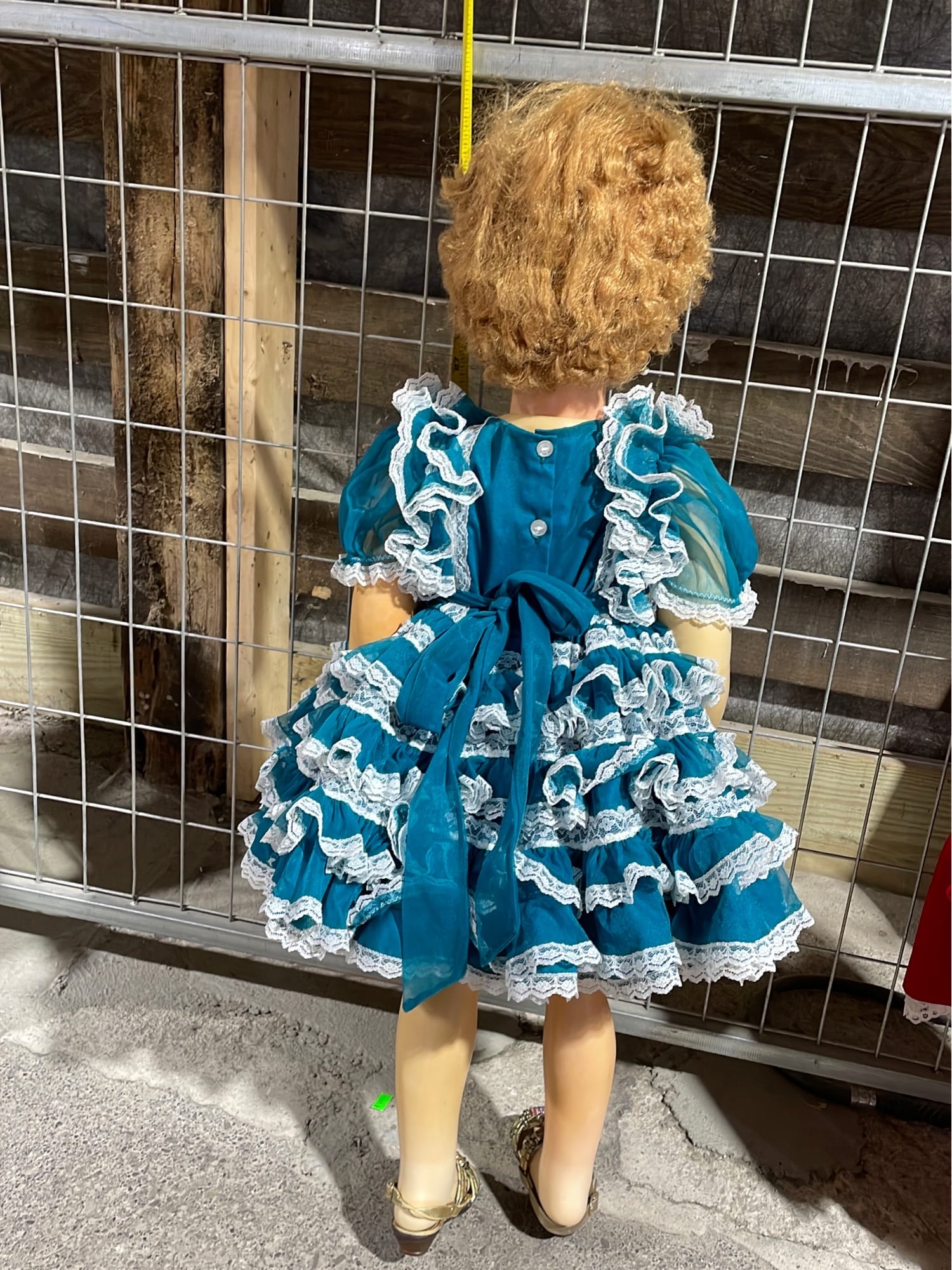 2046 Large Doll with Earrings and Fancy Shoes in Teal Lacy Dress