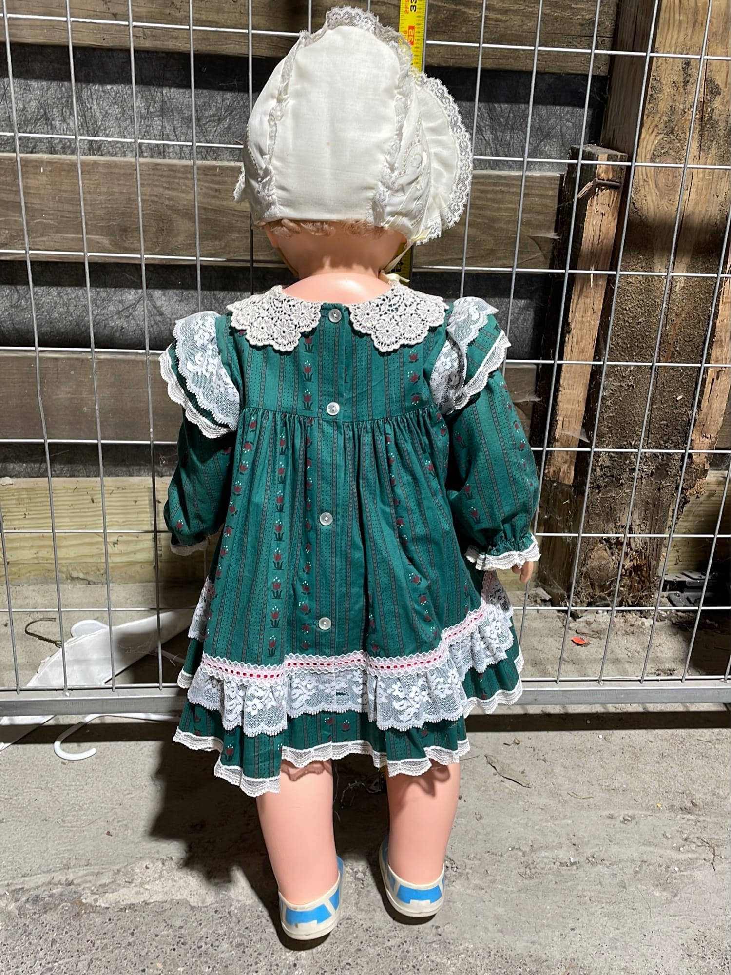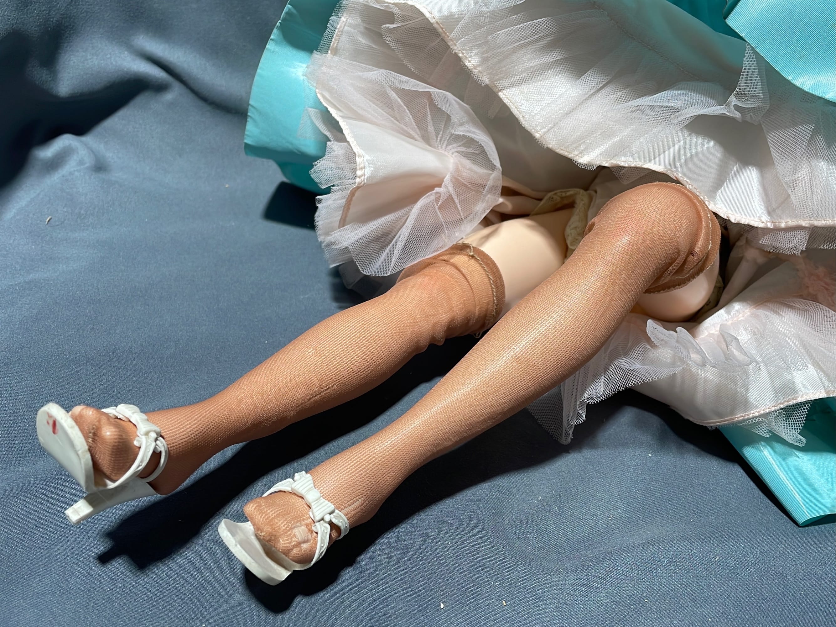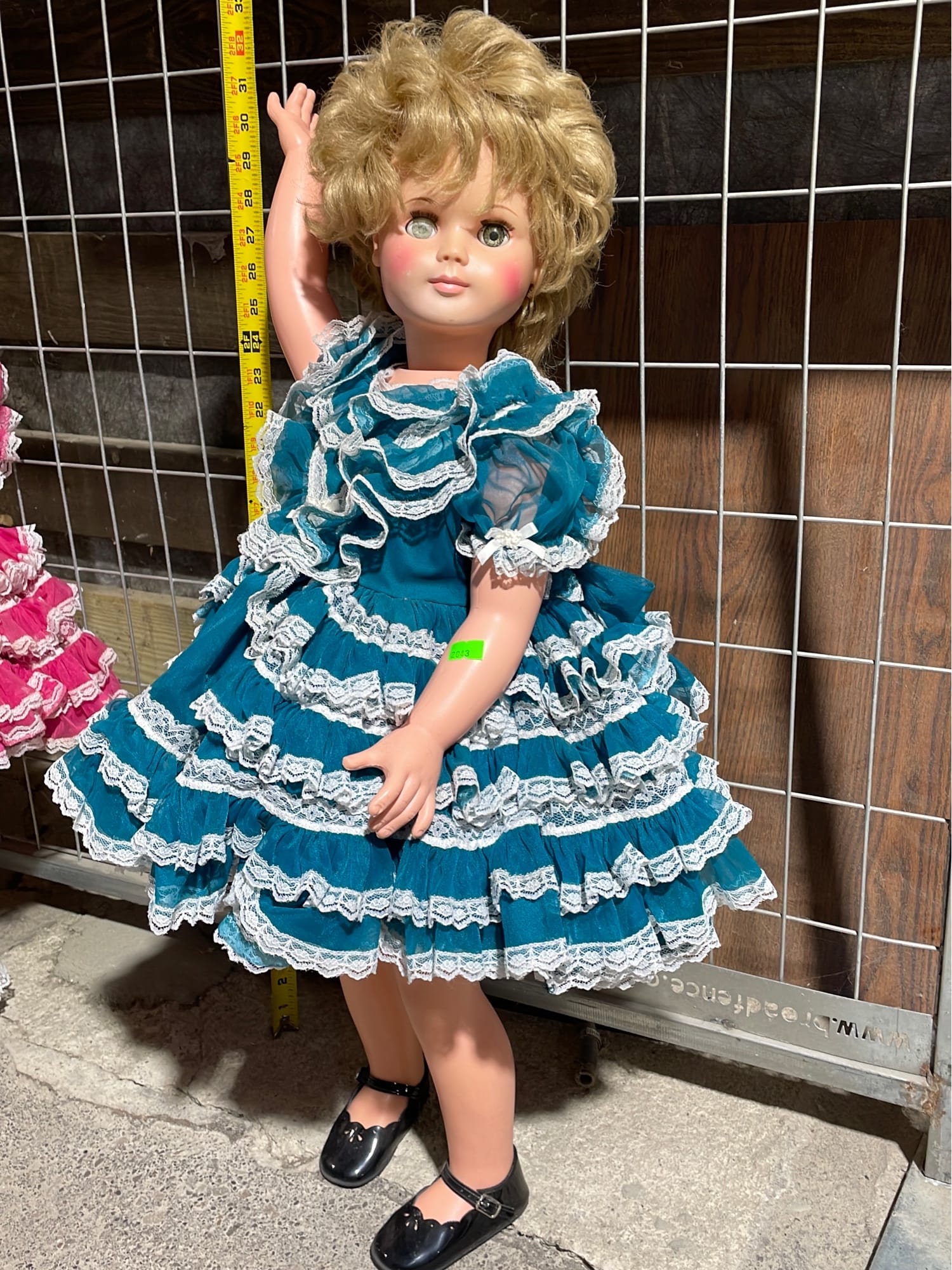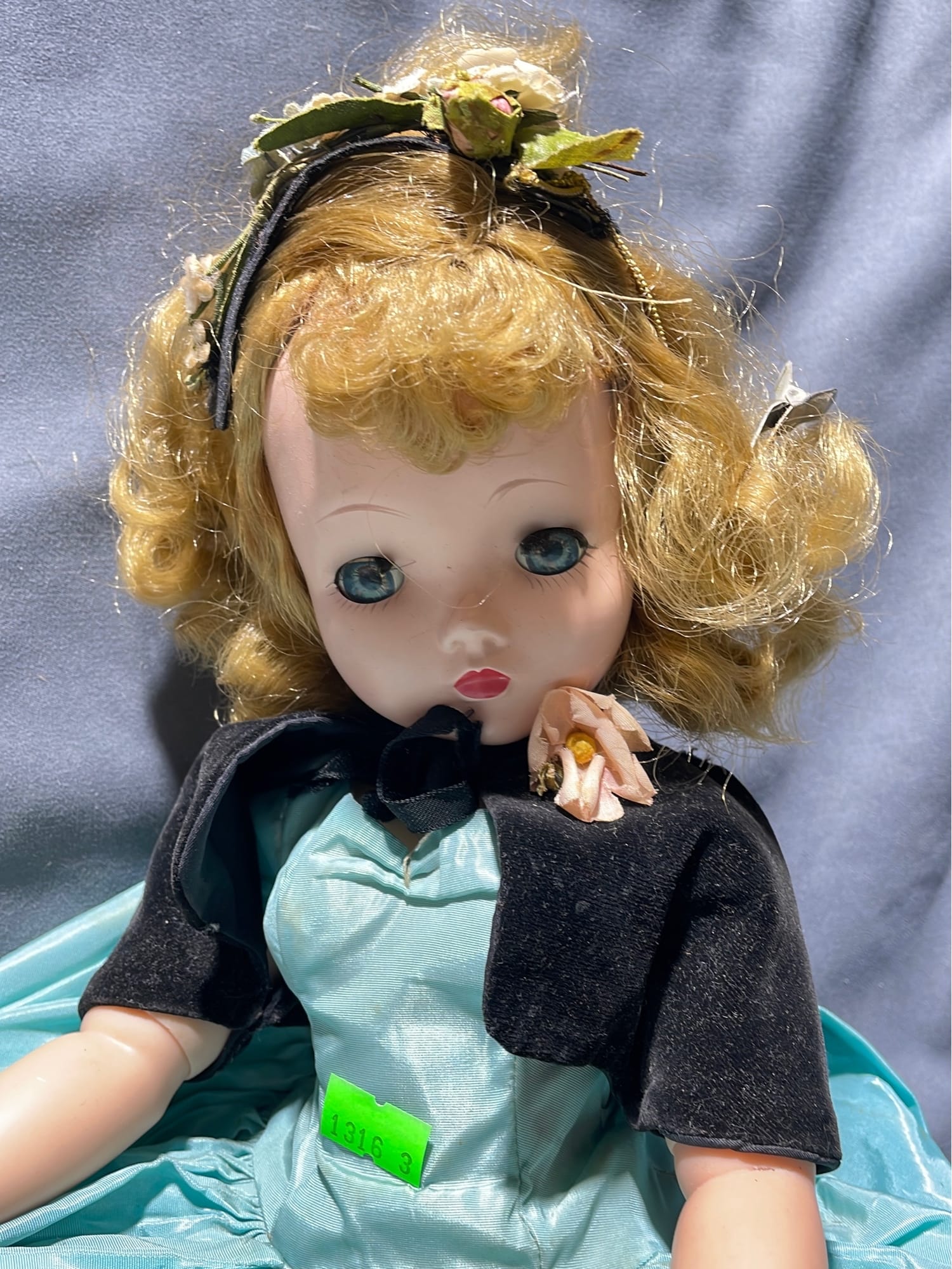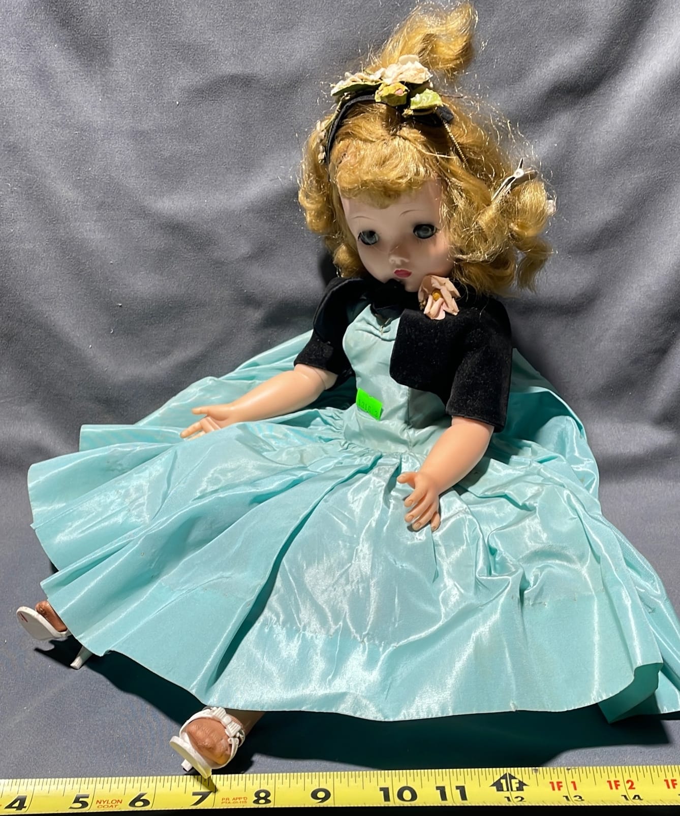 2046 Large Doll with Earrings and Fancy Shoes in Teal Lacy Dress