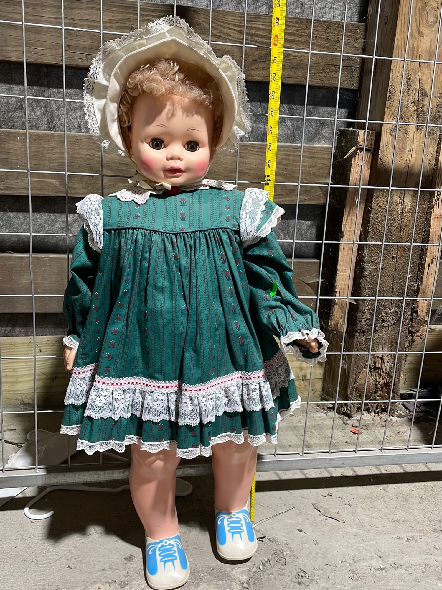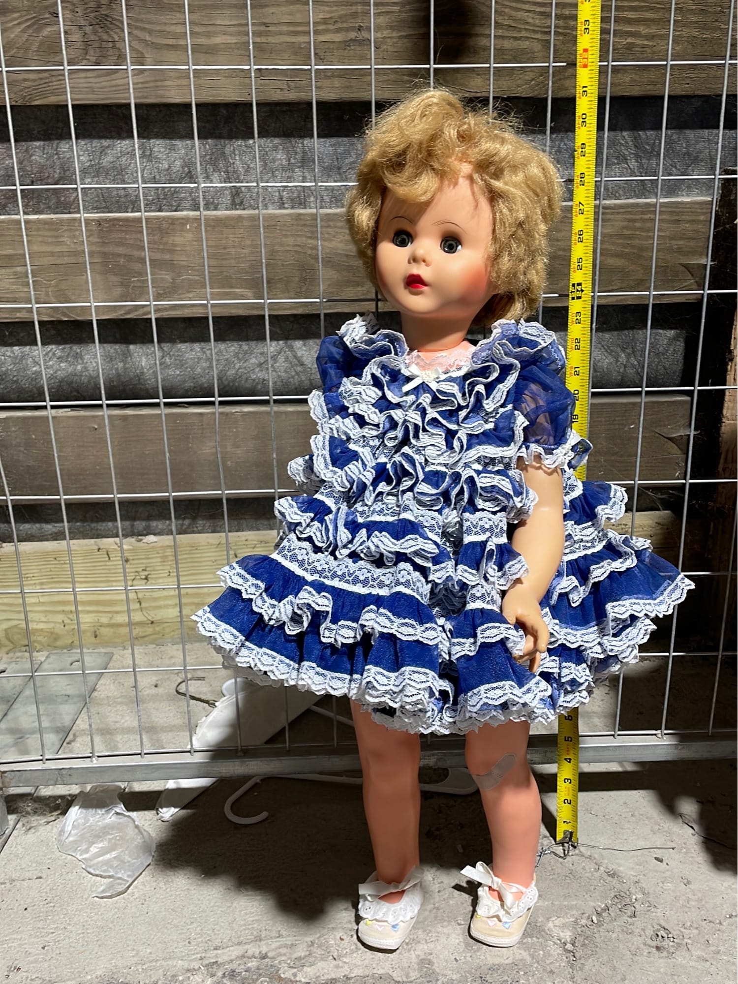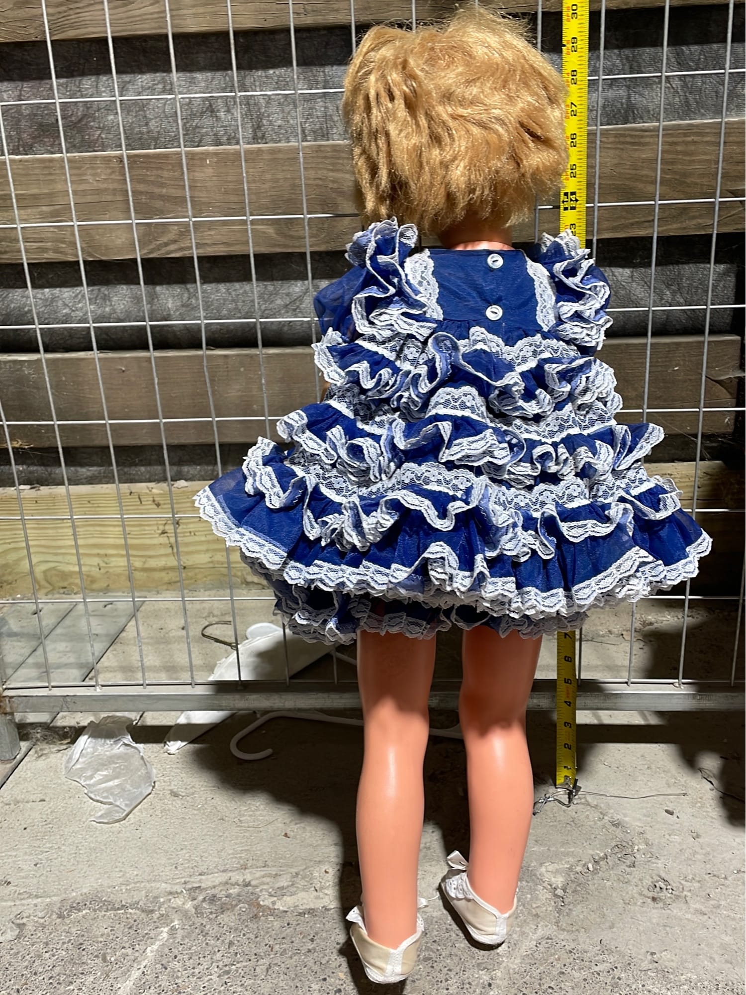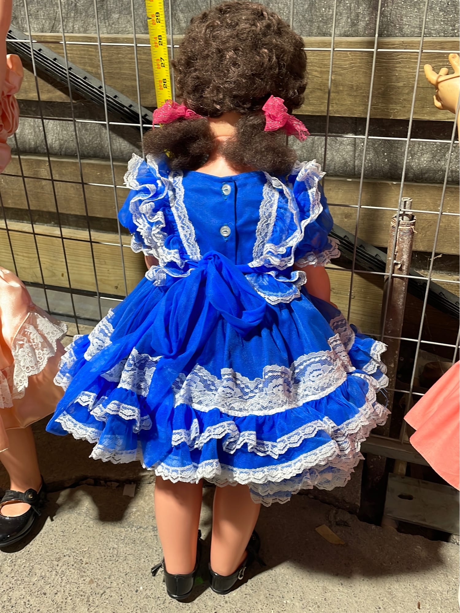 2046 Large Doll with Earrings and Fancy Shoes in Teal Lacy Dress