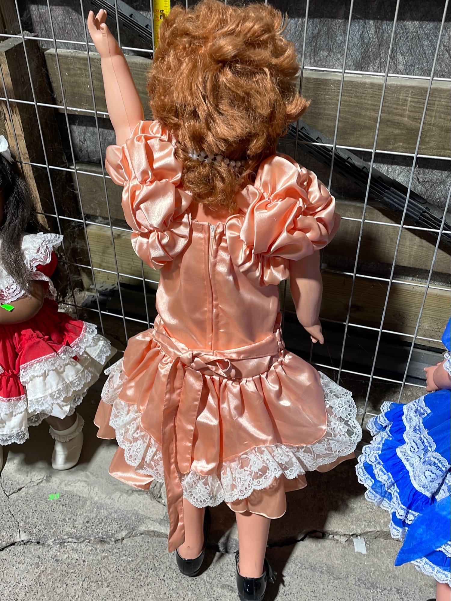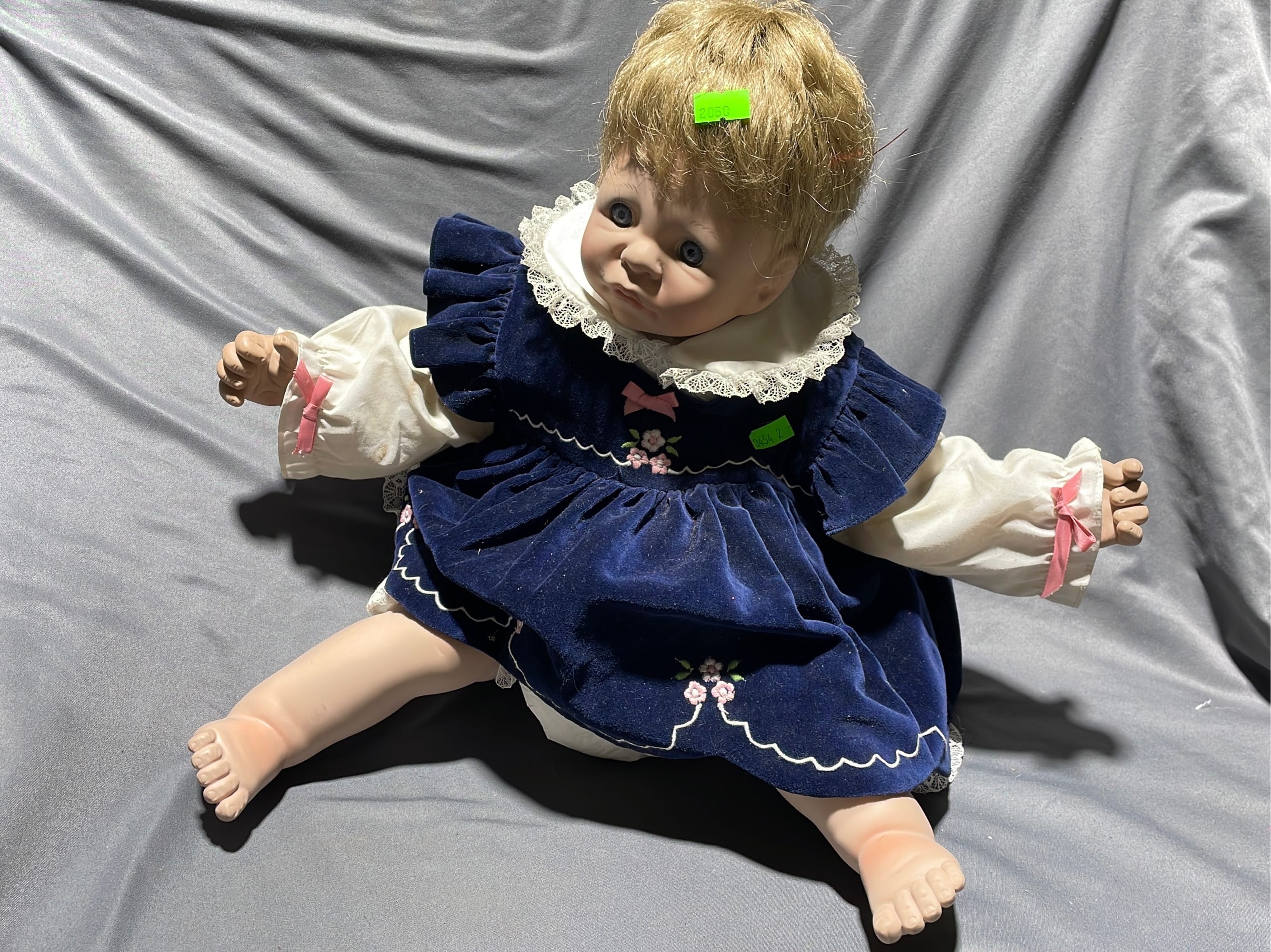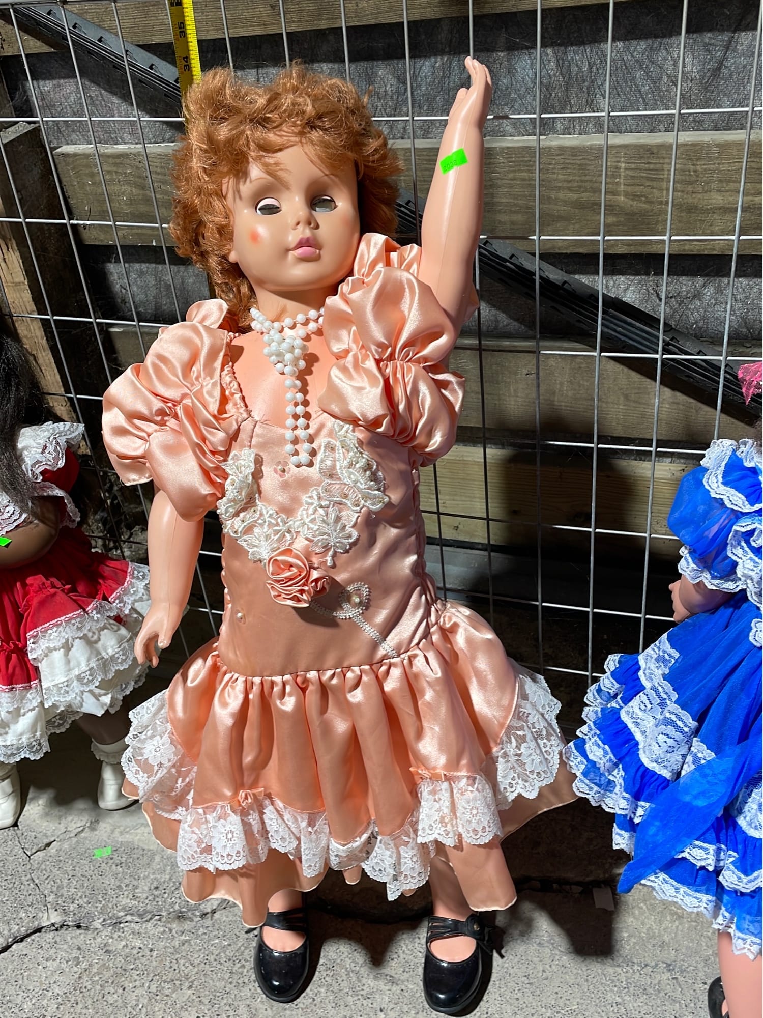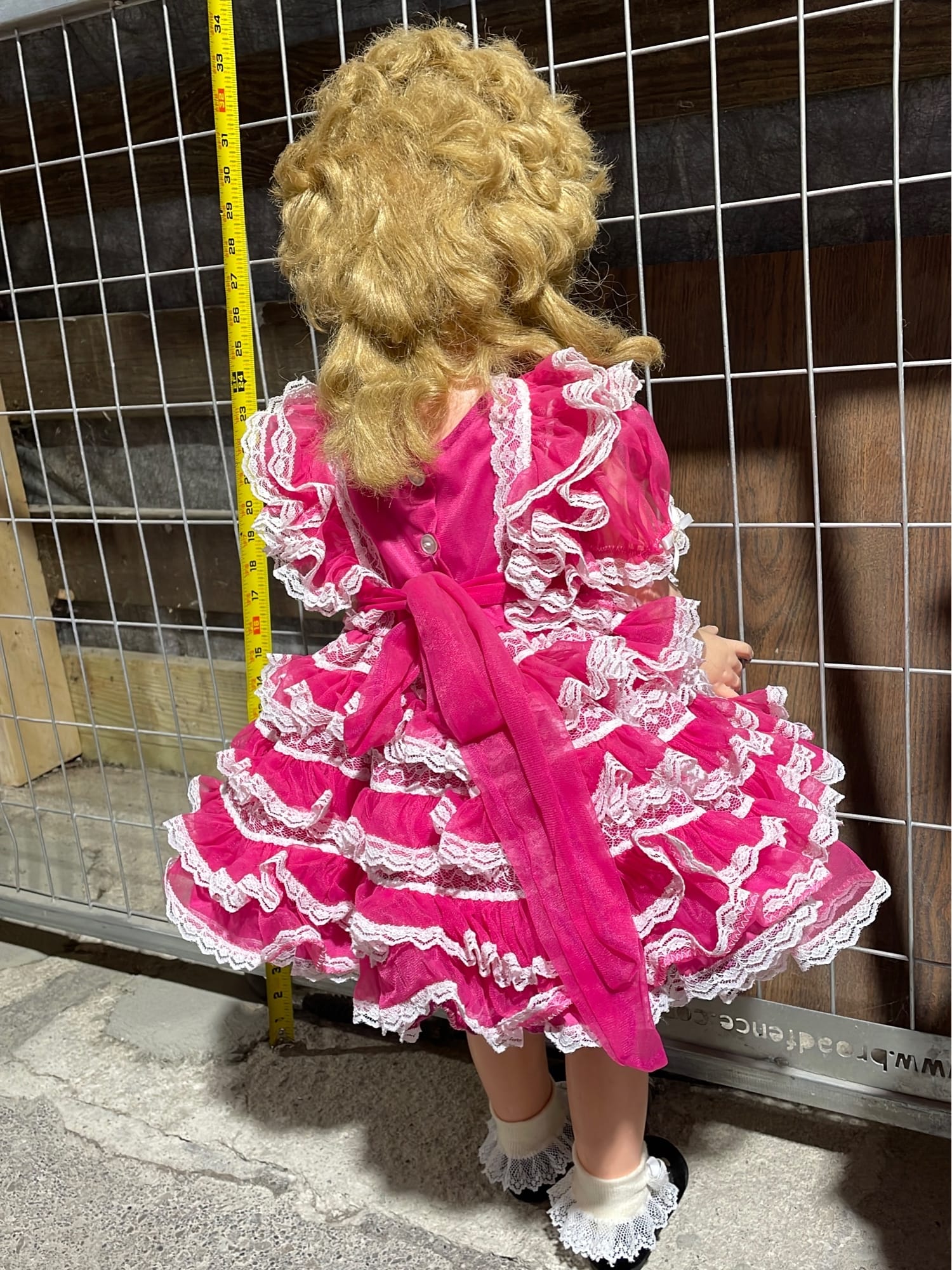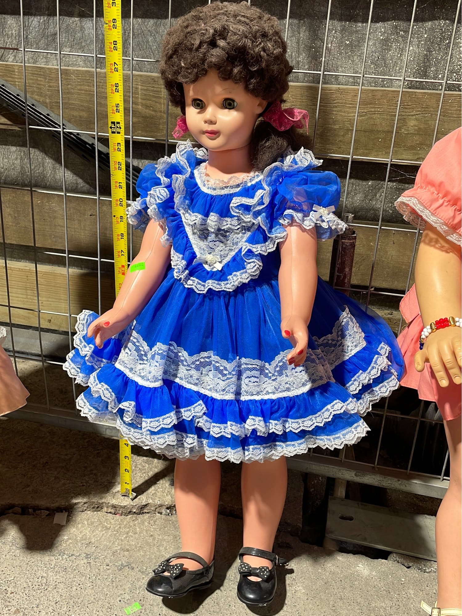 2046 Large Doll with Earrings and Fancy Shoes in Teal Lacy Dress