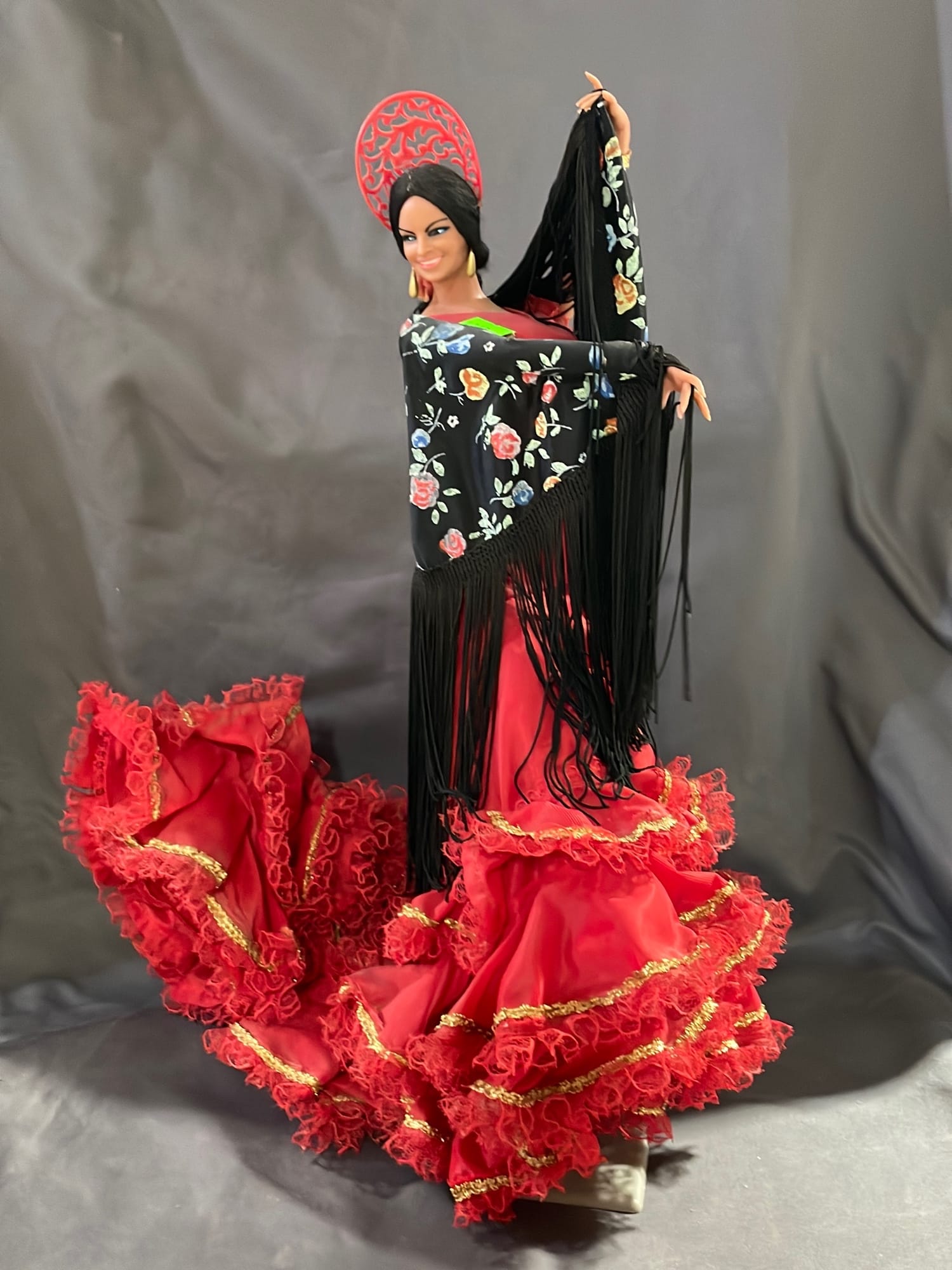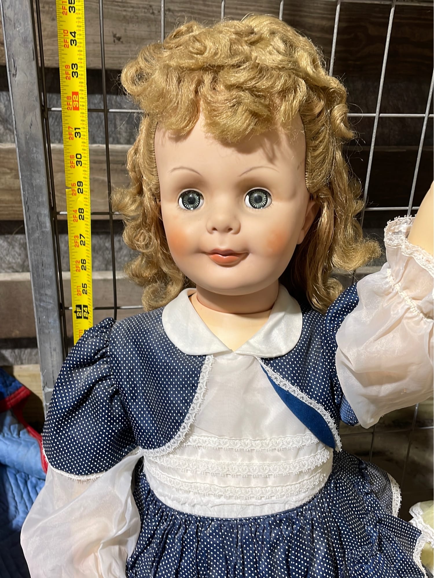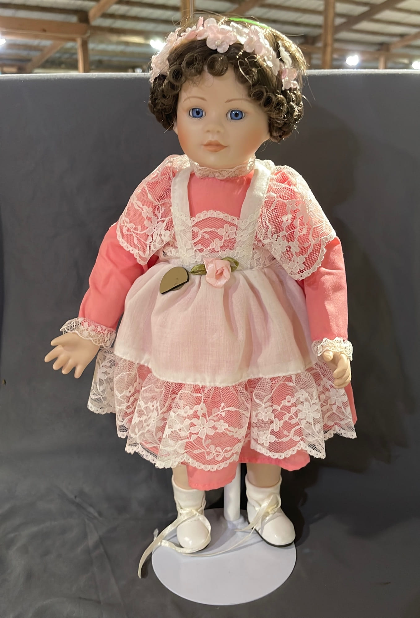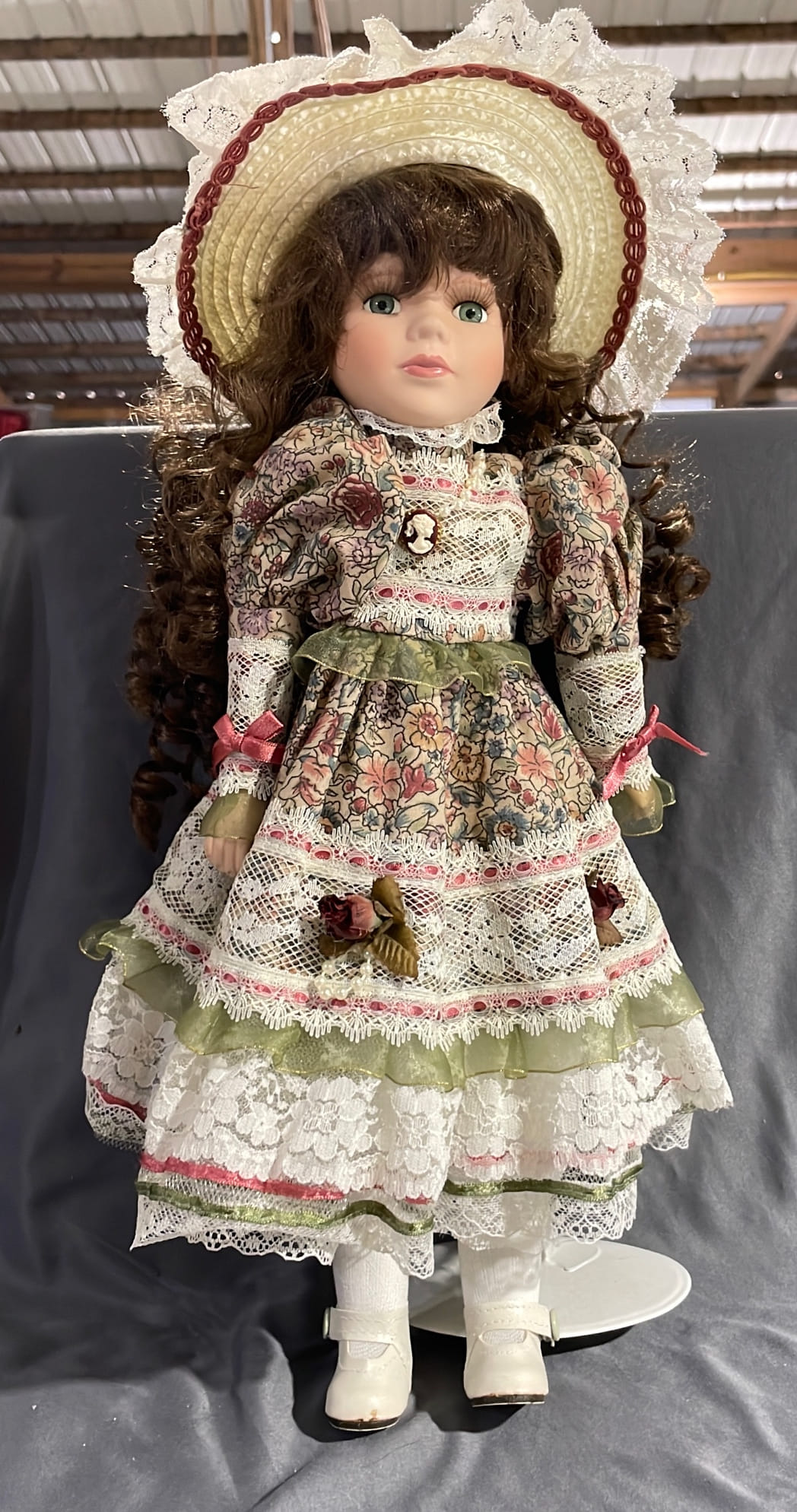2046 Large Doll with Earrings and Fancy Shoes in Teal Lacy Dress