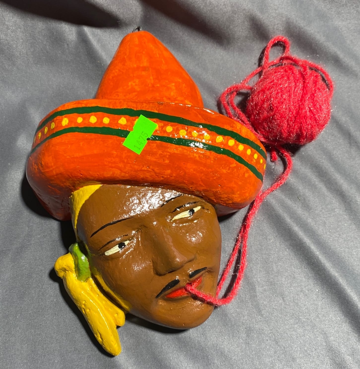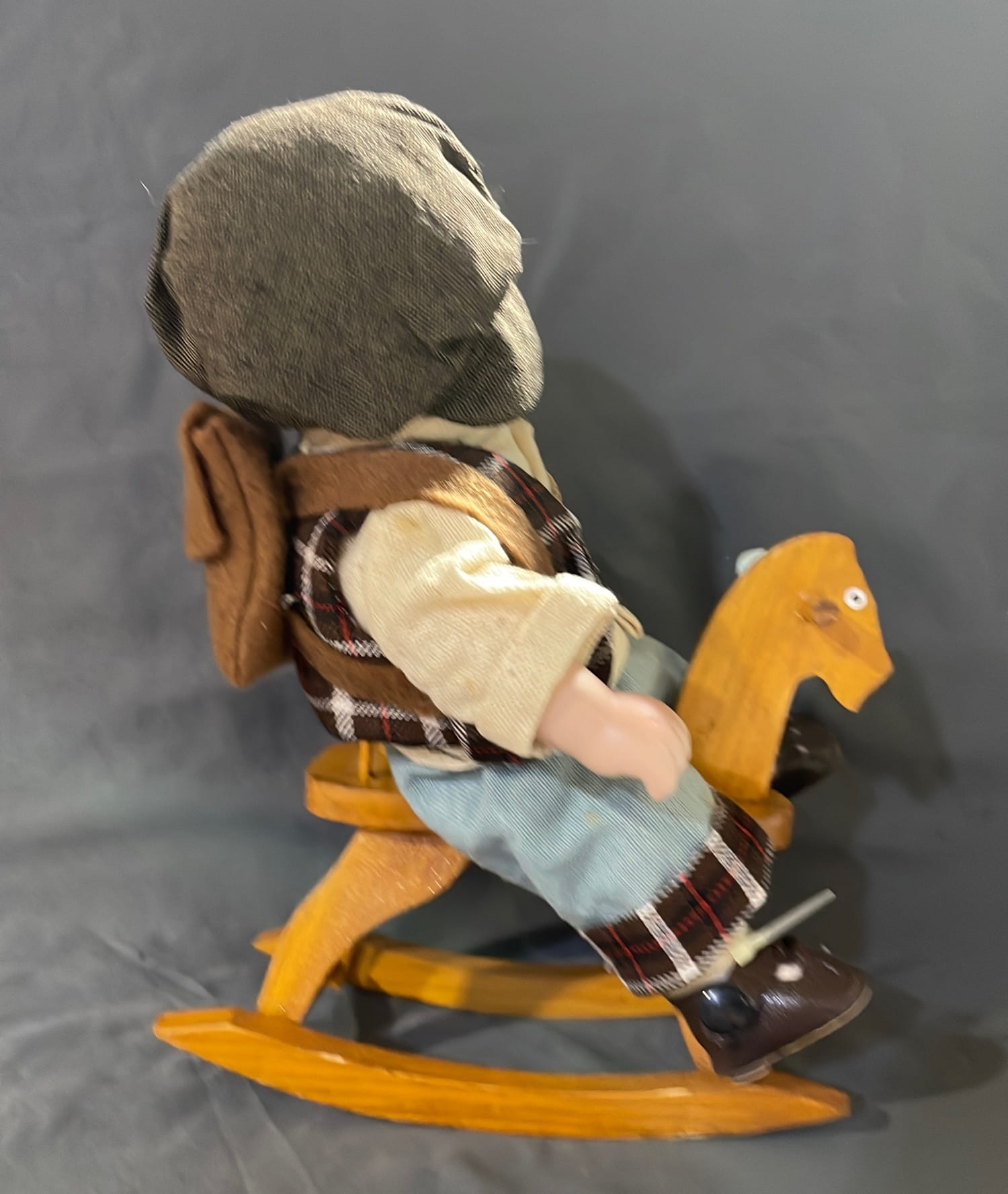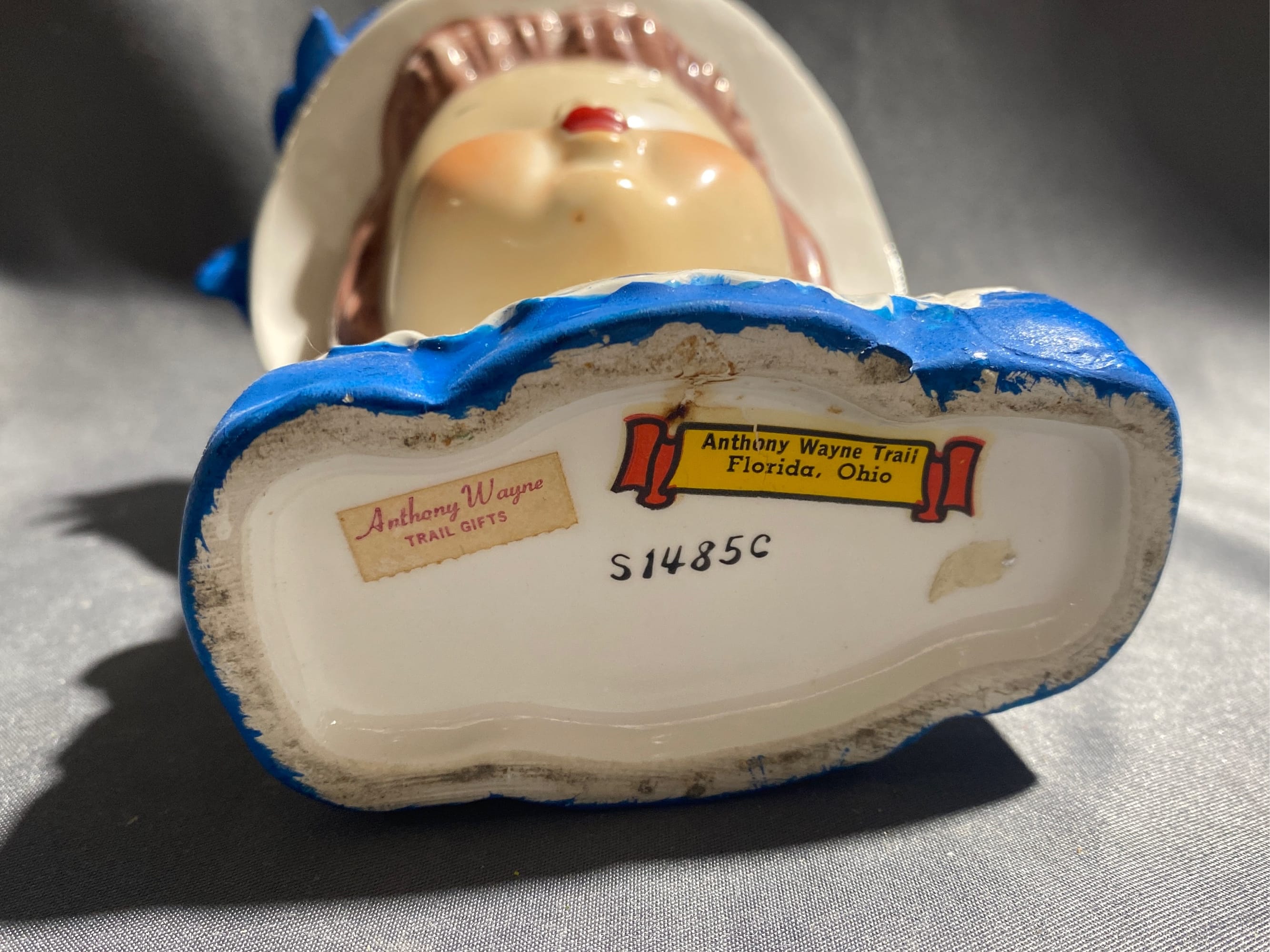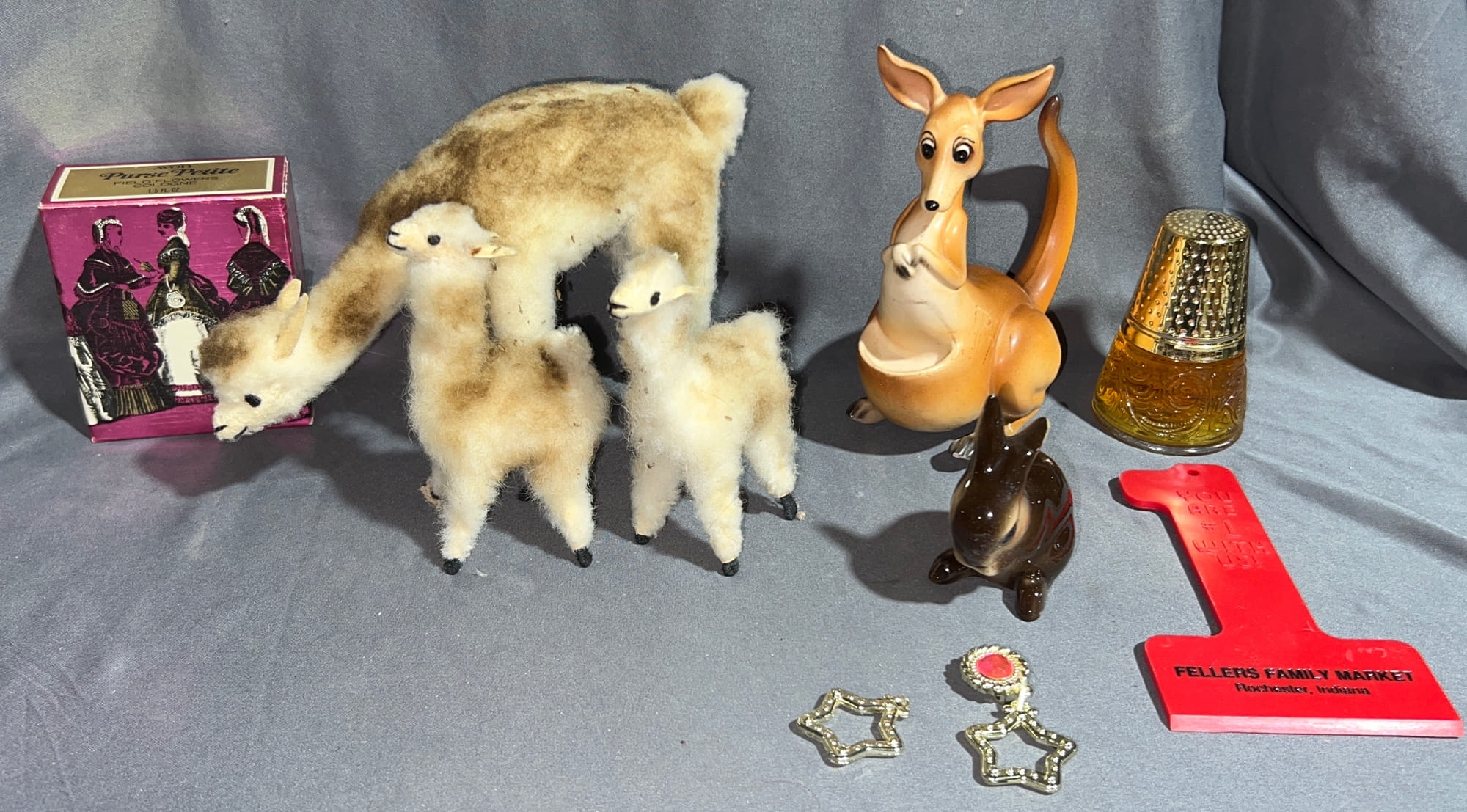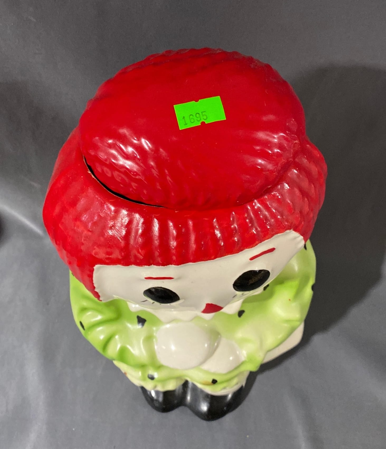 2019 Sking Santa, 17”, Indian doll on stand, 17”, bull decanter, novelty door