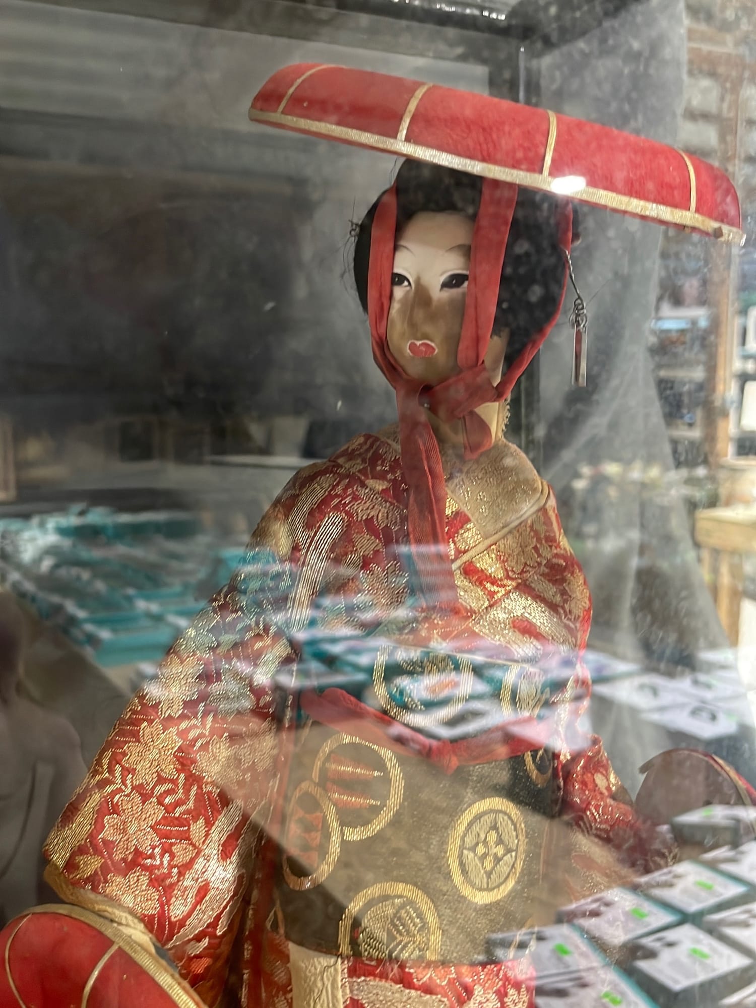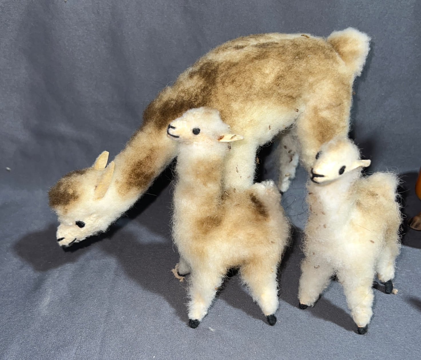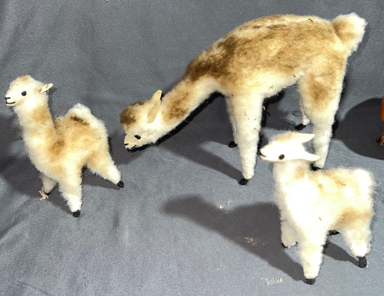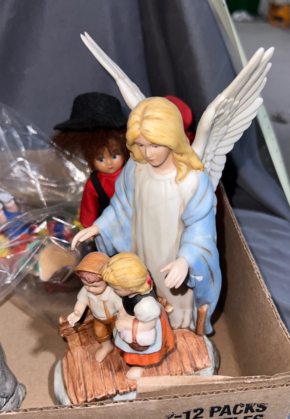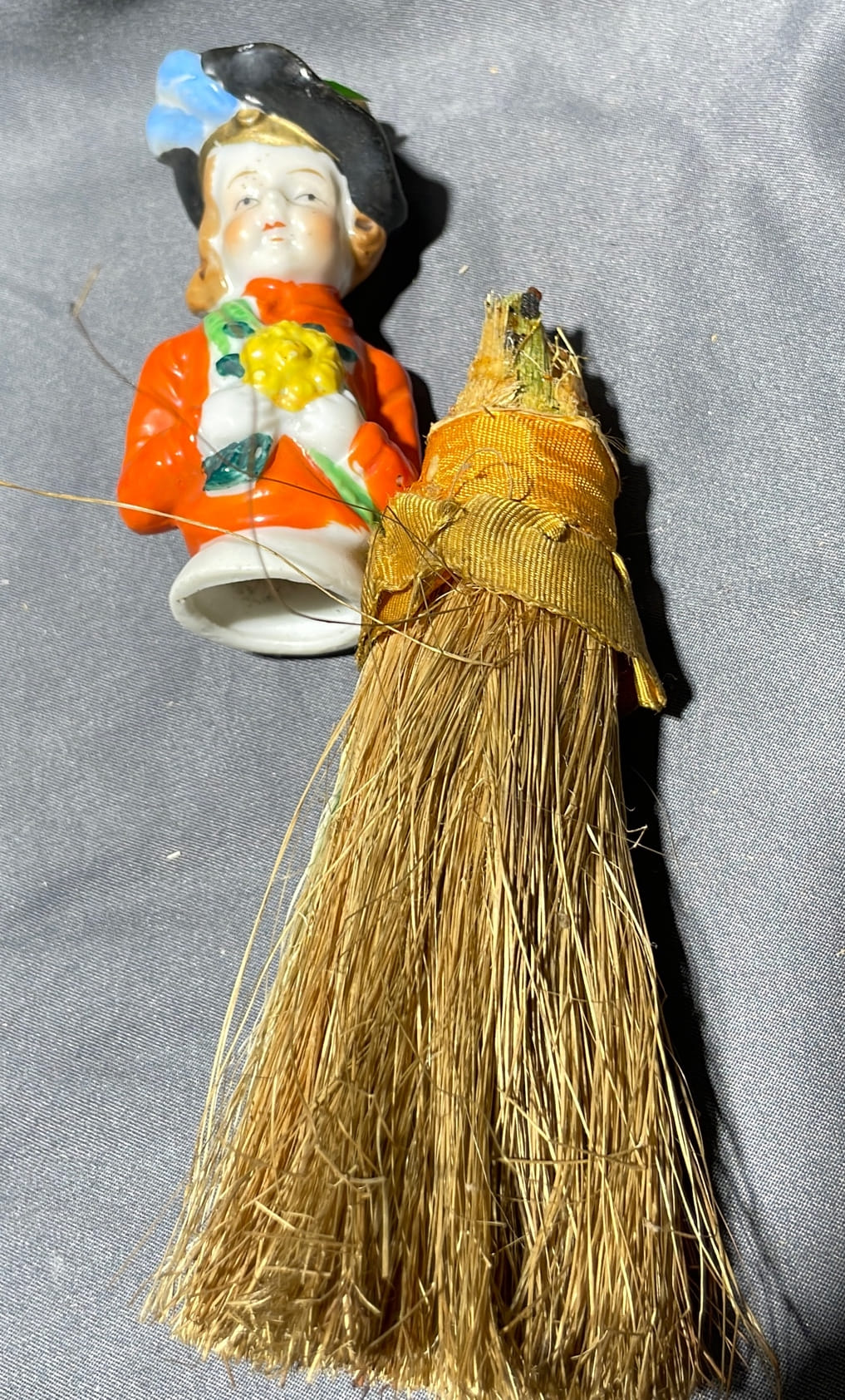 2019 Sking Santa, 17”, Indian doll on stand, 17”, bull decanter, novelty door
