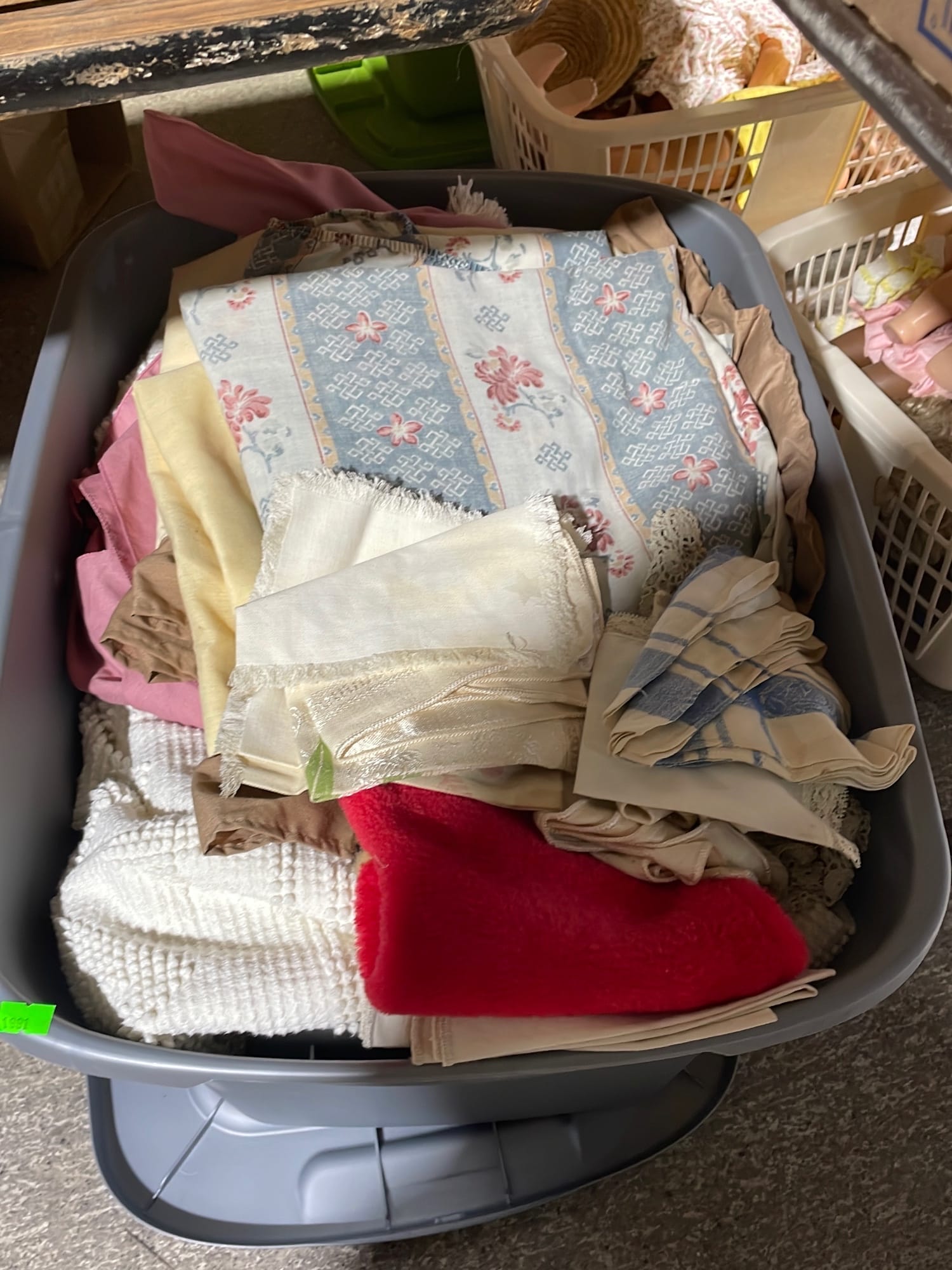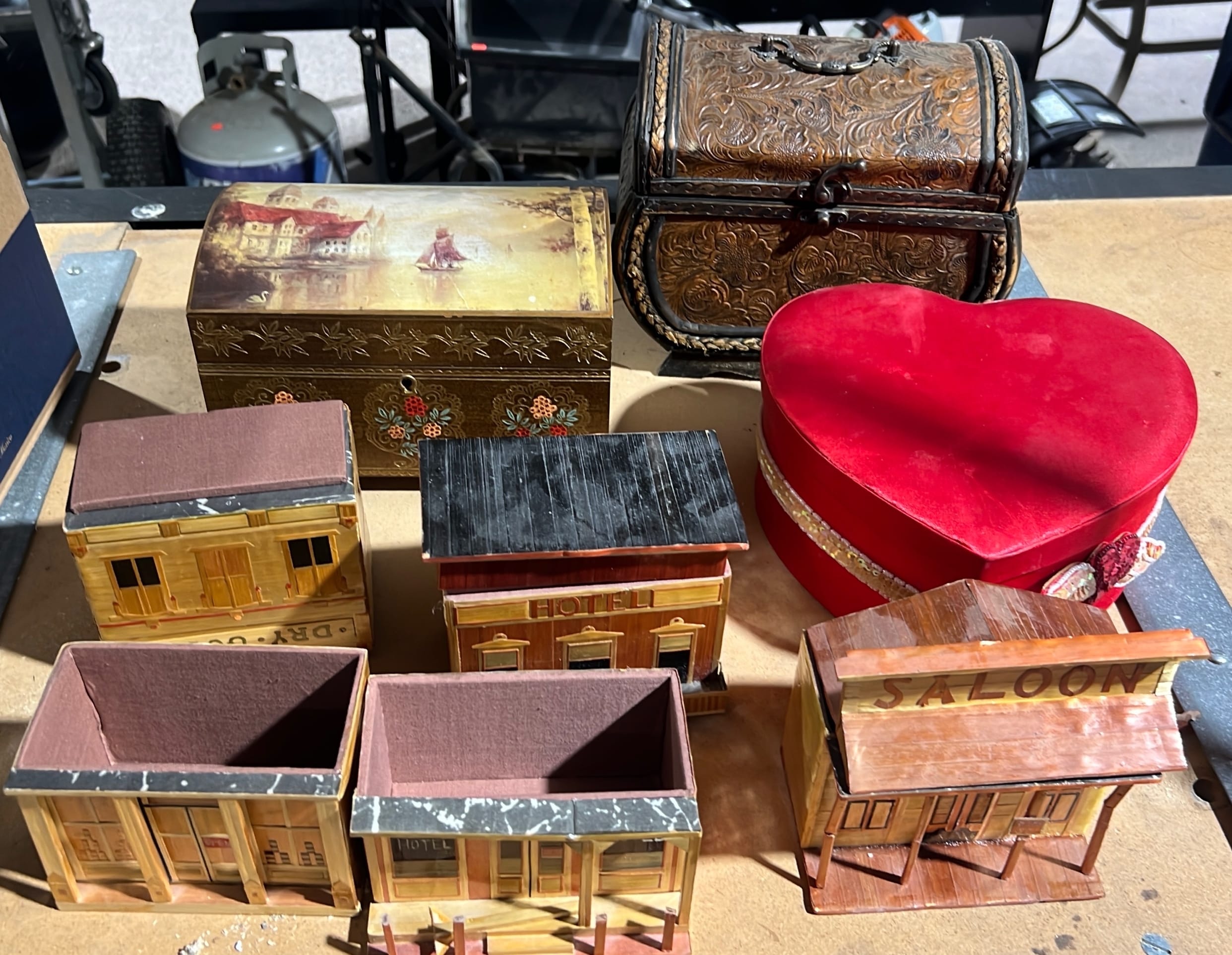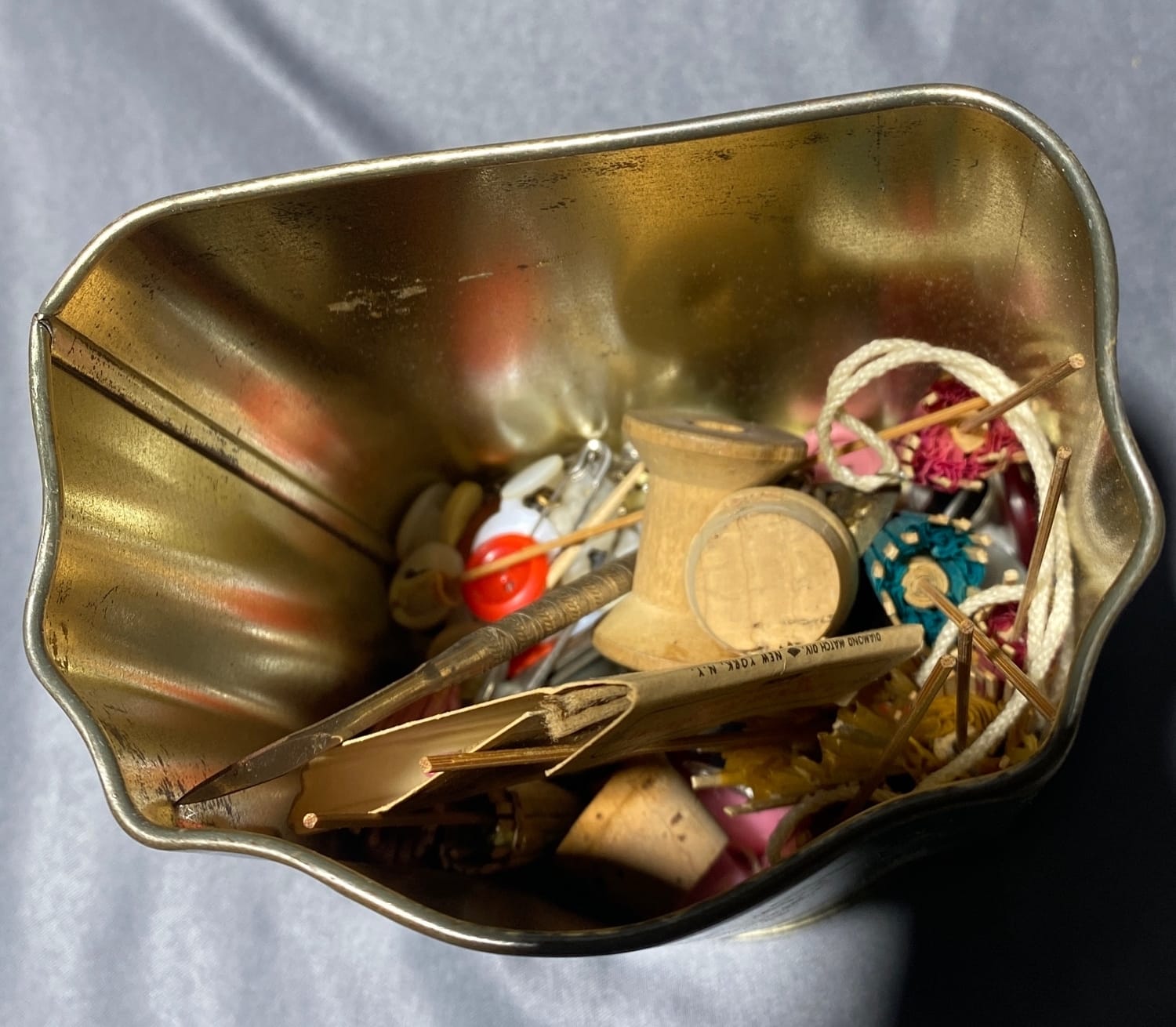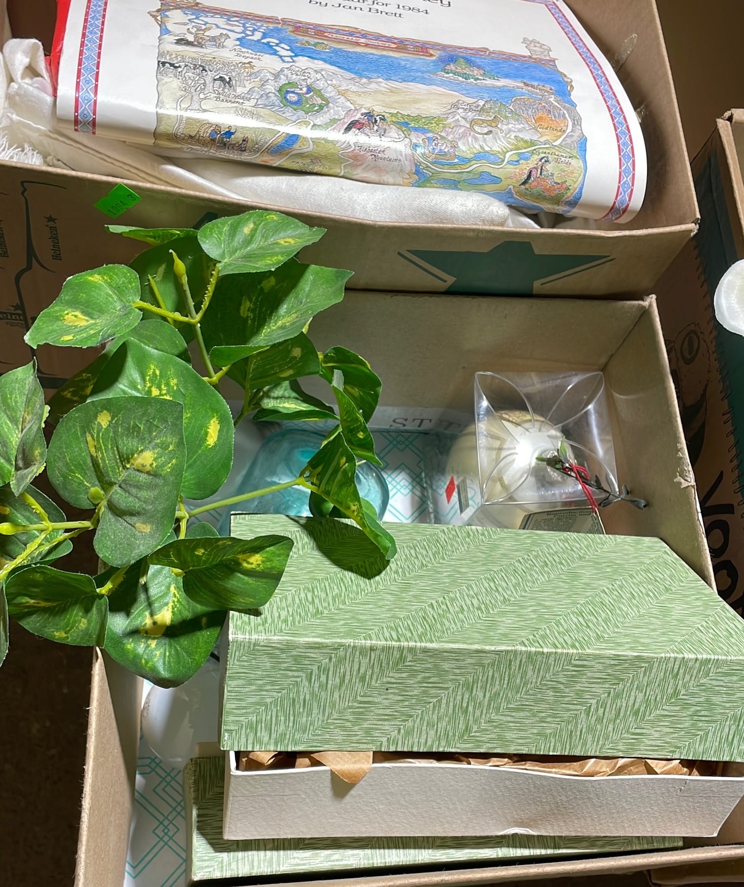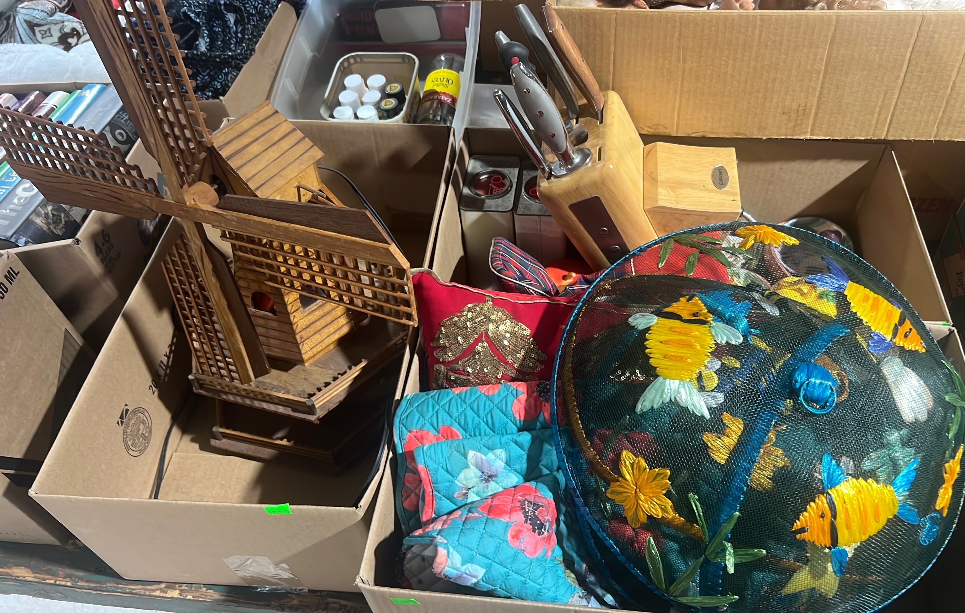 2015 Basket, ornate storage boxes various sizes, skirt marker ruler, miscellaneous
