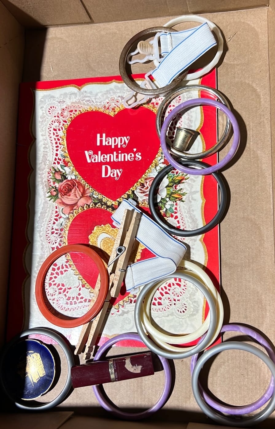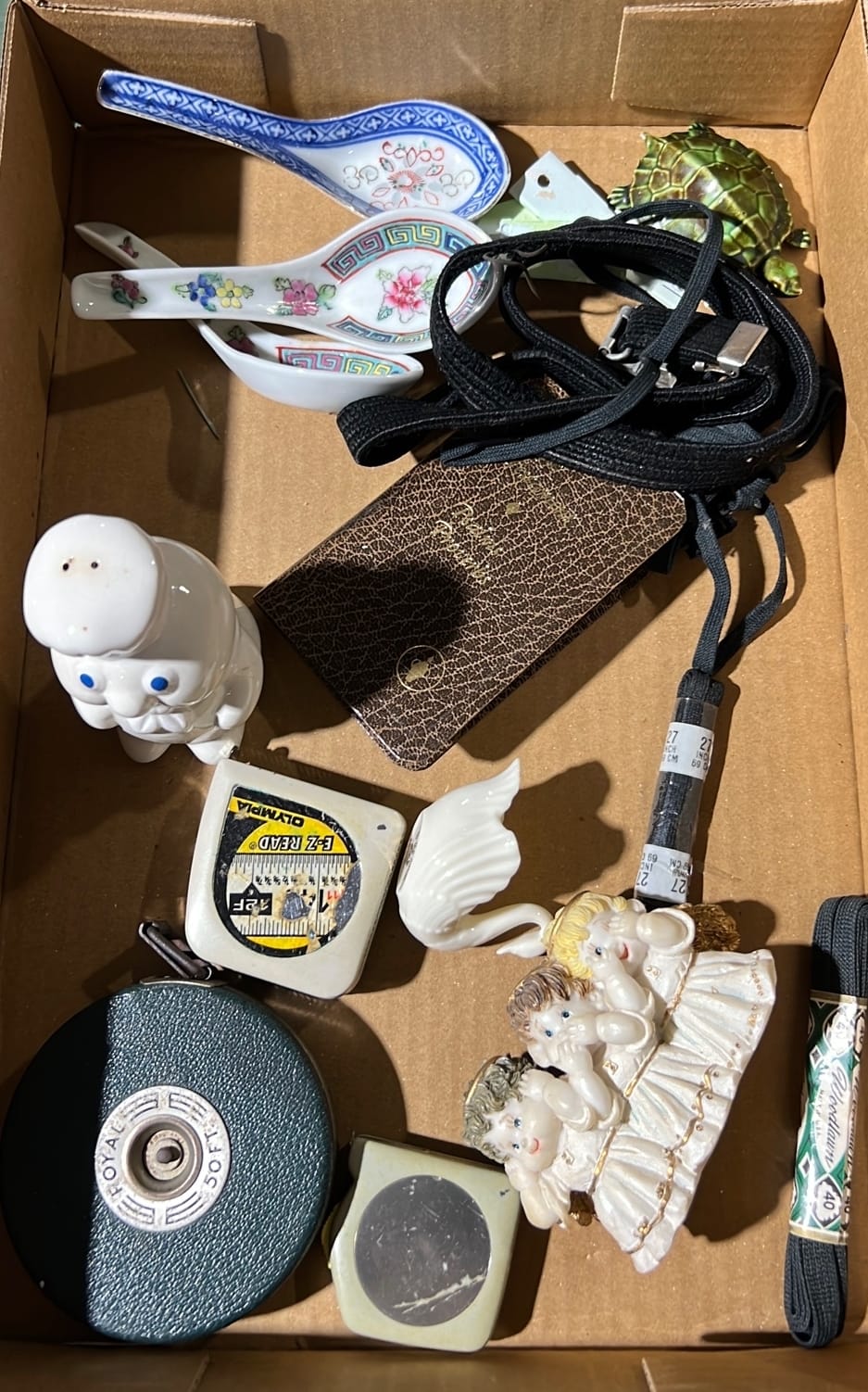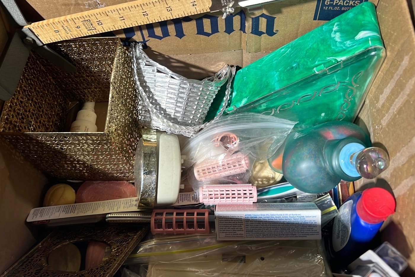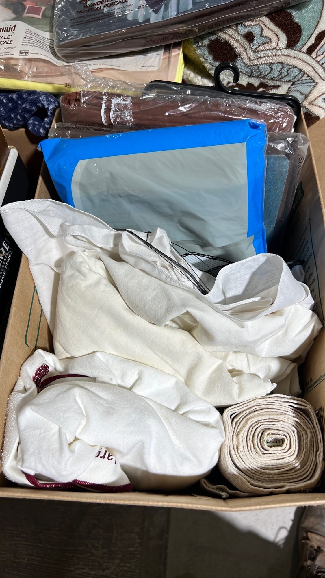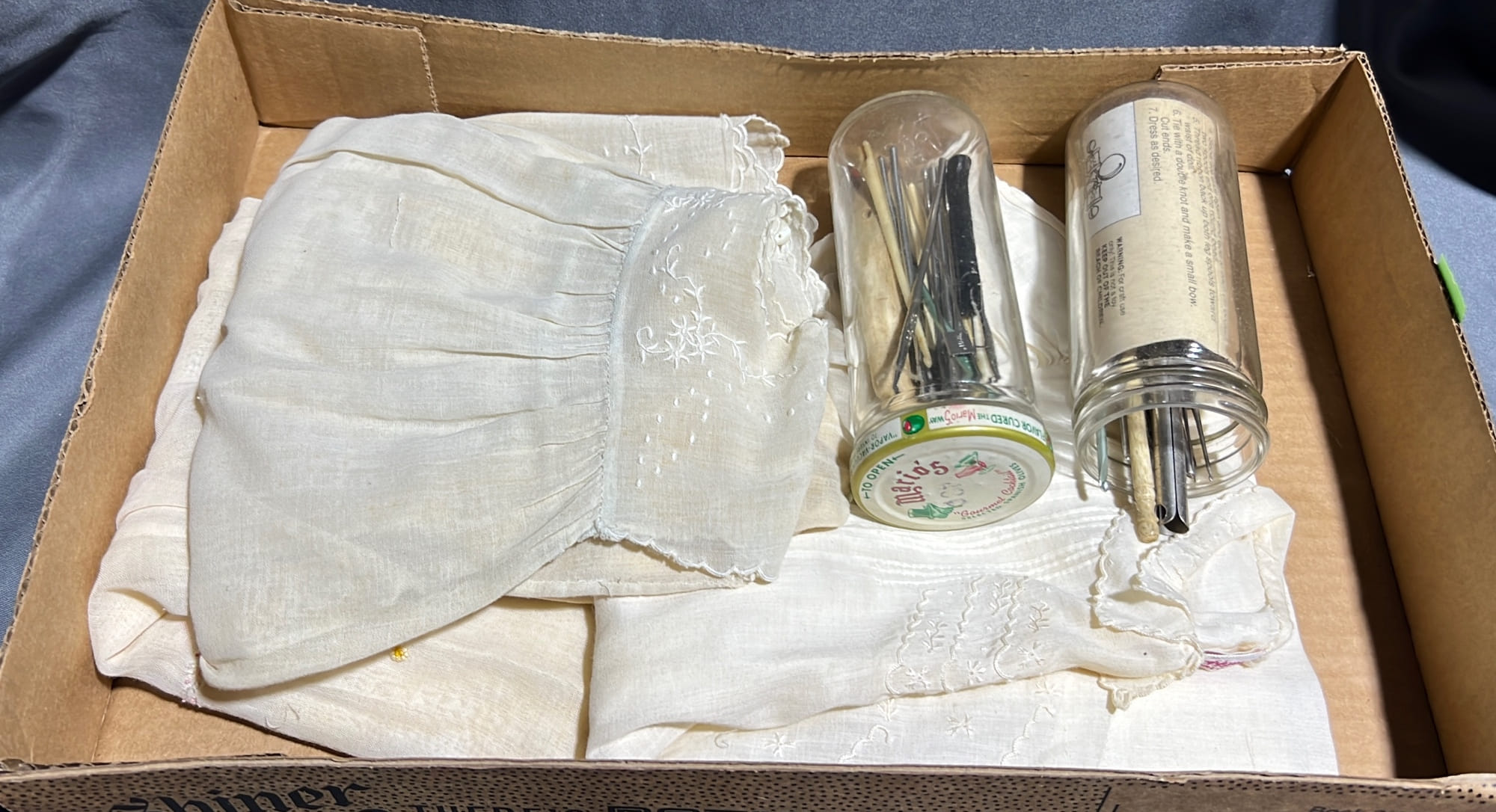 2015 Basket, ornate storage boxes various sizes, skirt marker ruler, miscellaneous