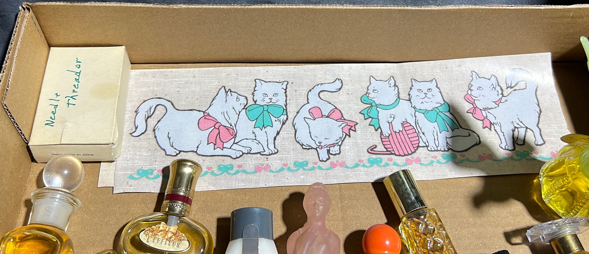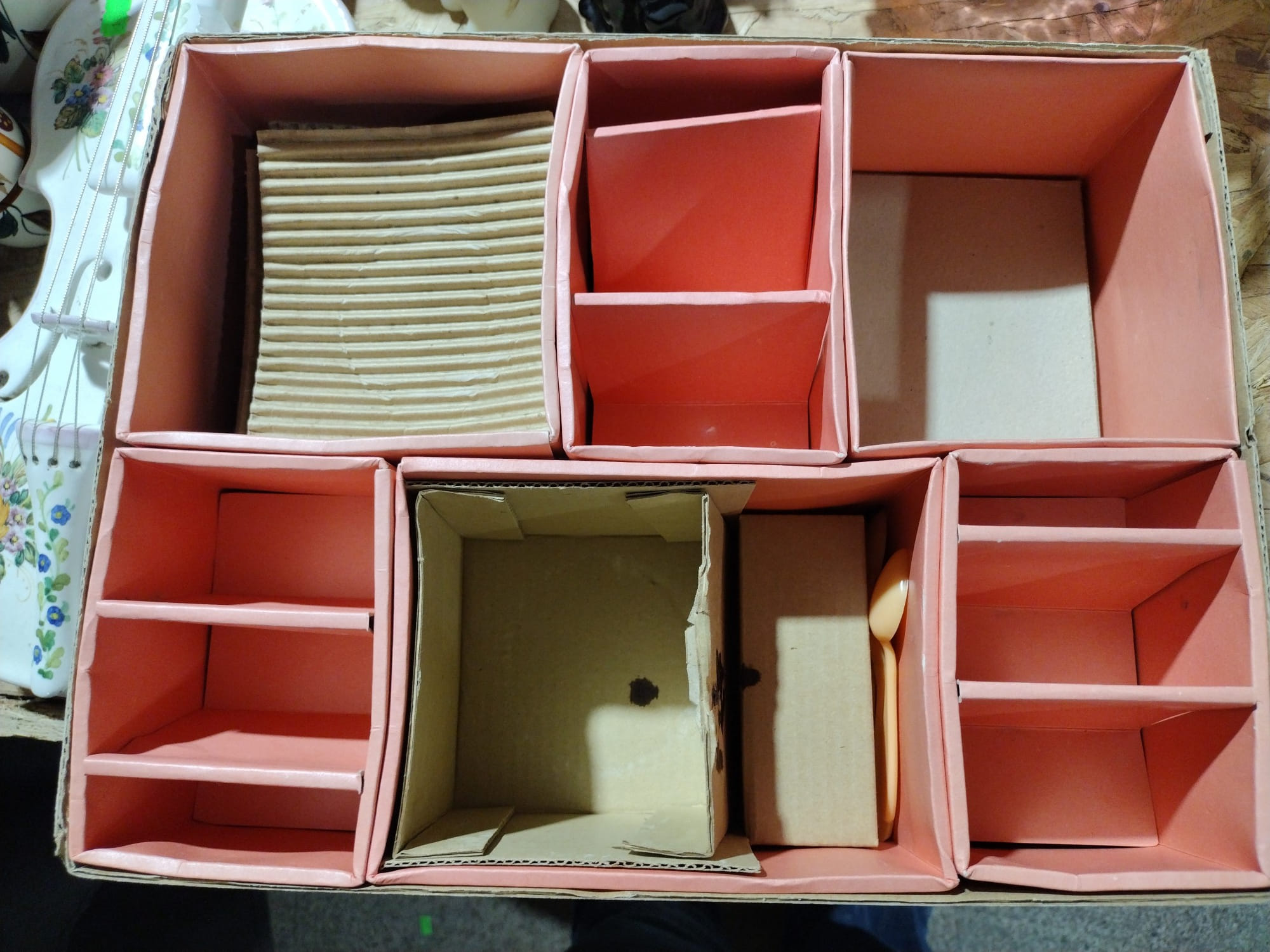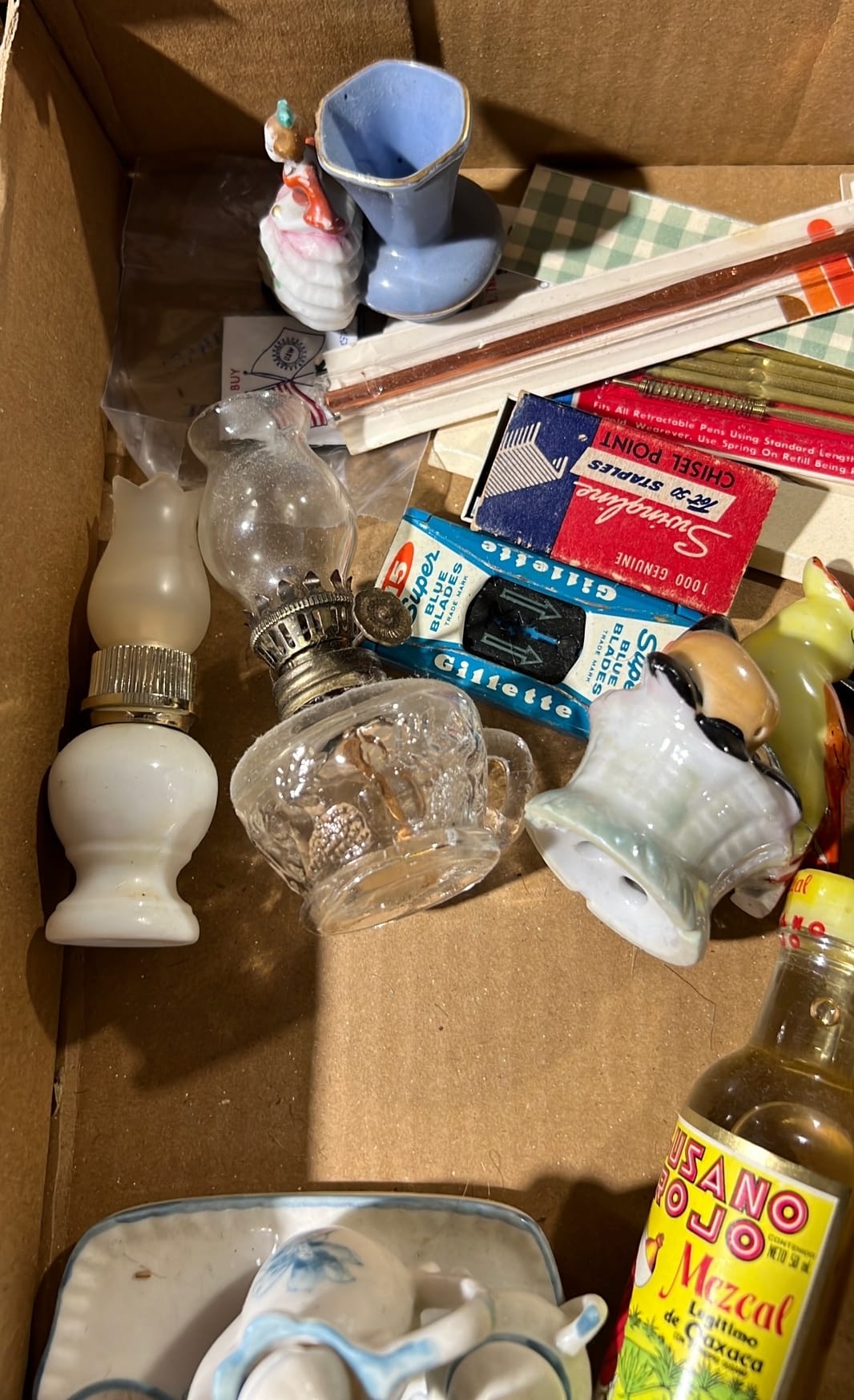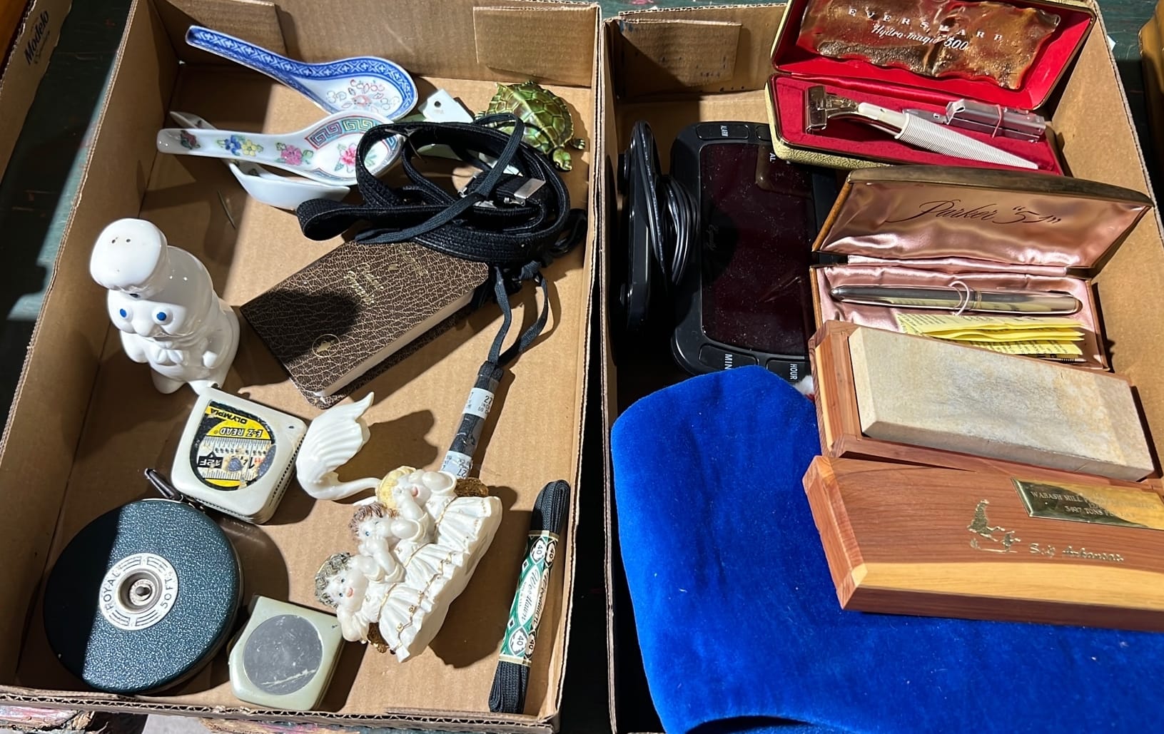 2015 Basket, ornate storage boxes various sizes, skirt marker ruler, miscellaneous