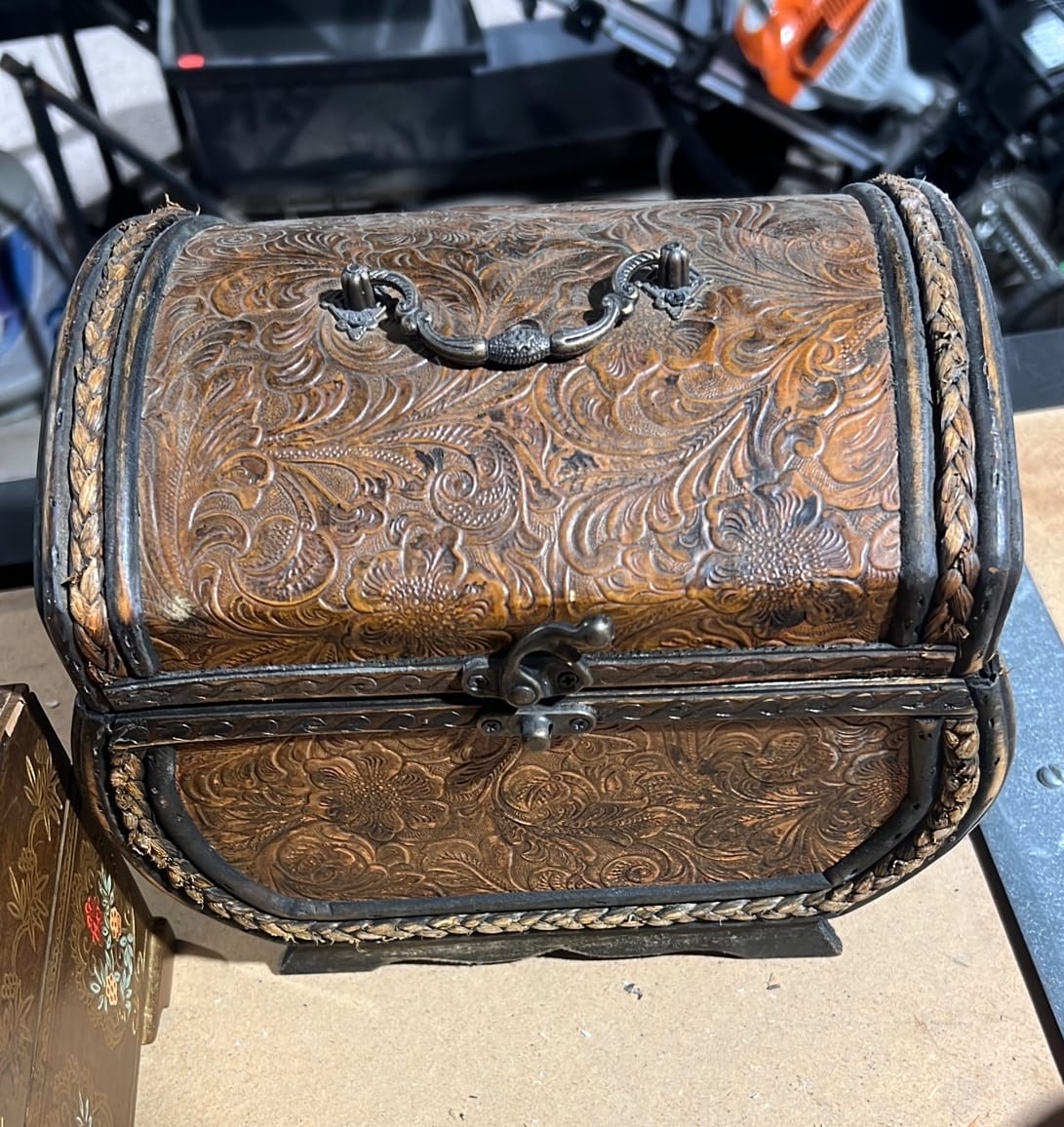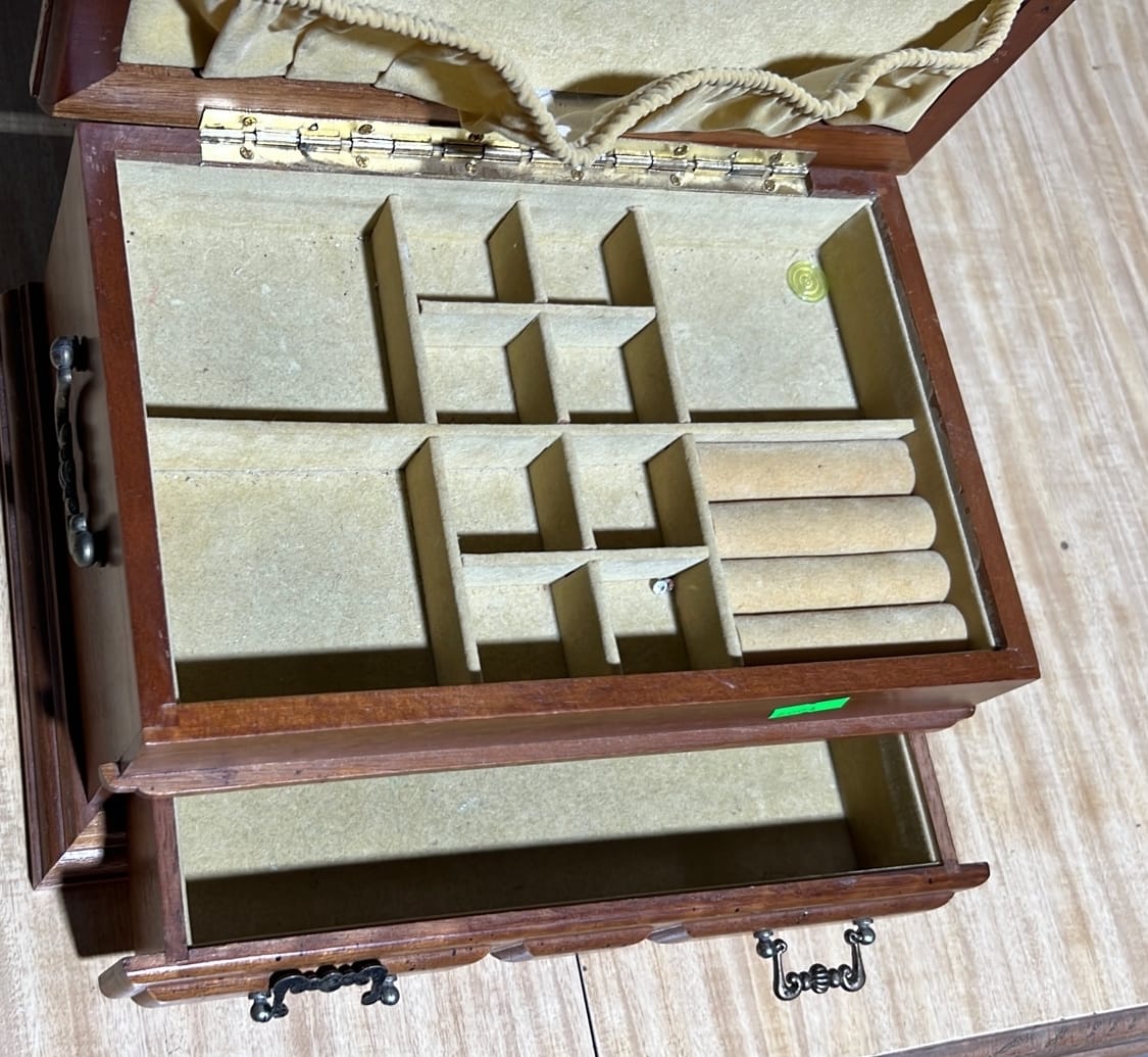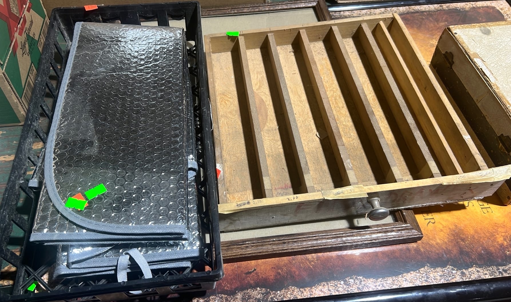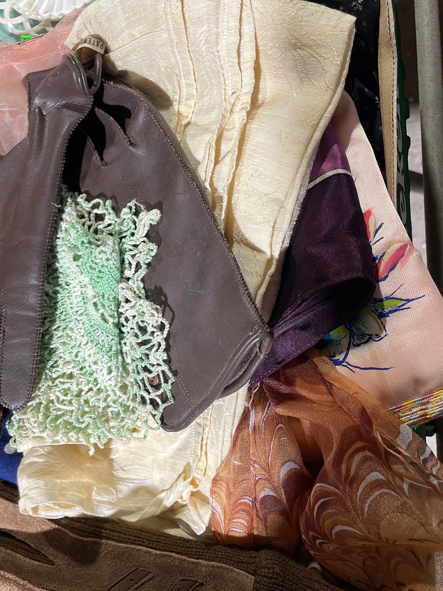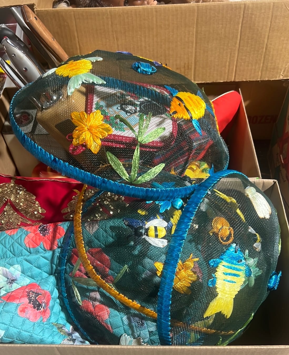 2015 Basket, ornate storage boxes various sizes, skirt marker ruler, miscellaneous