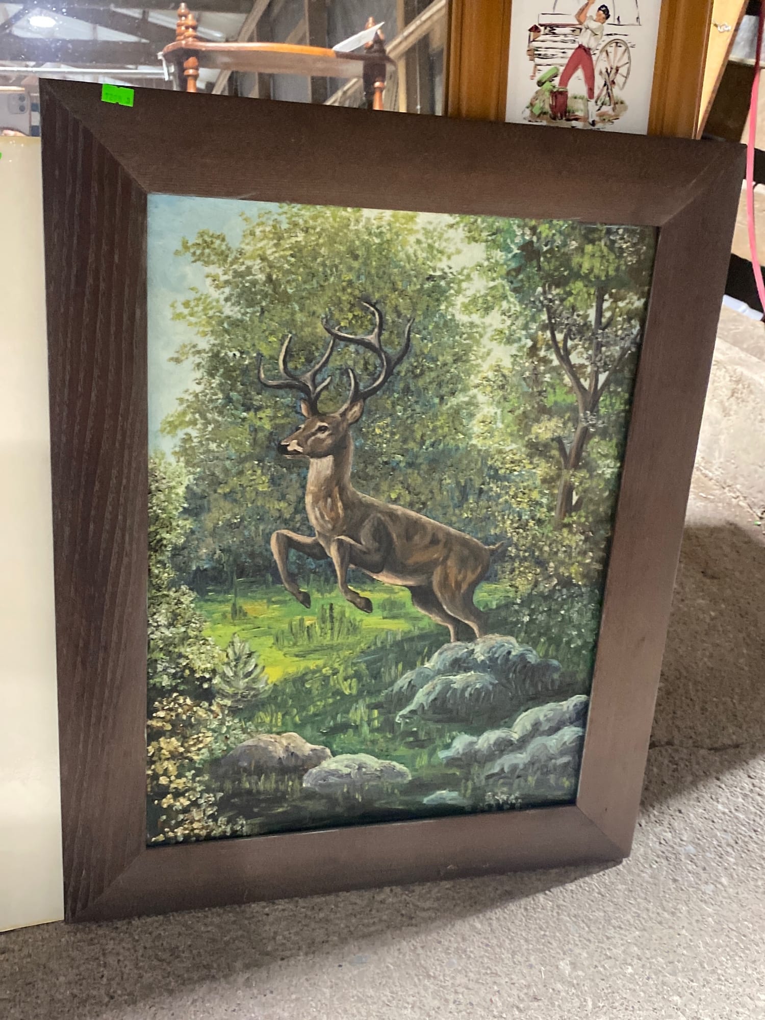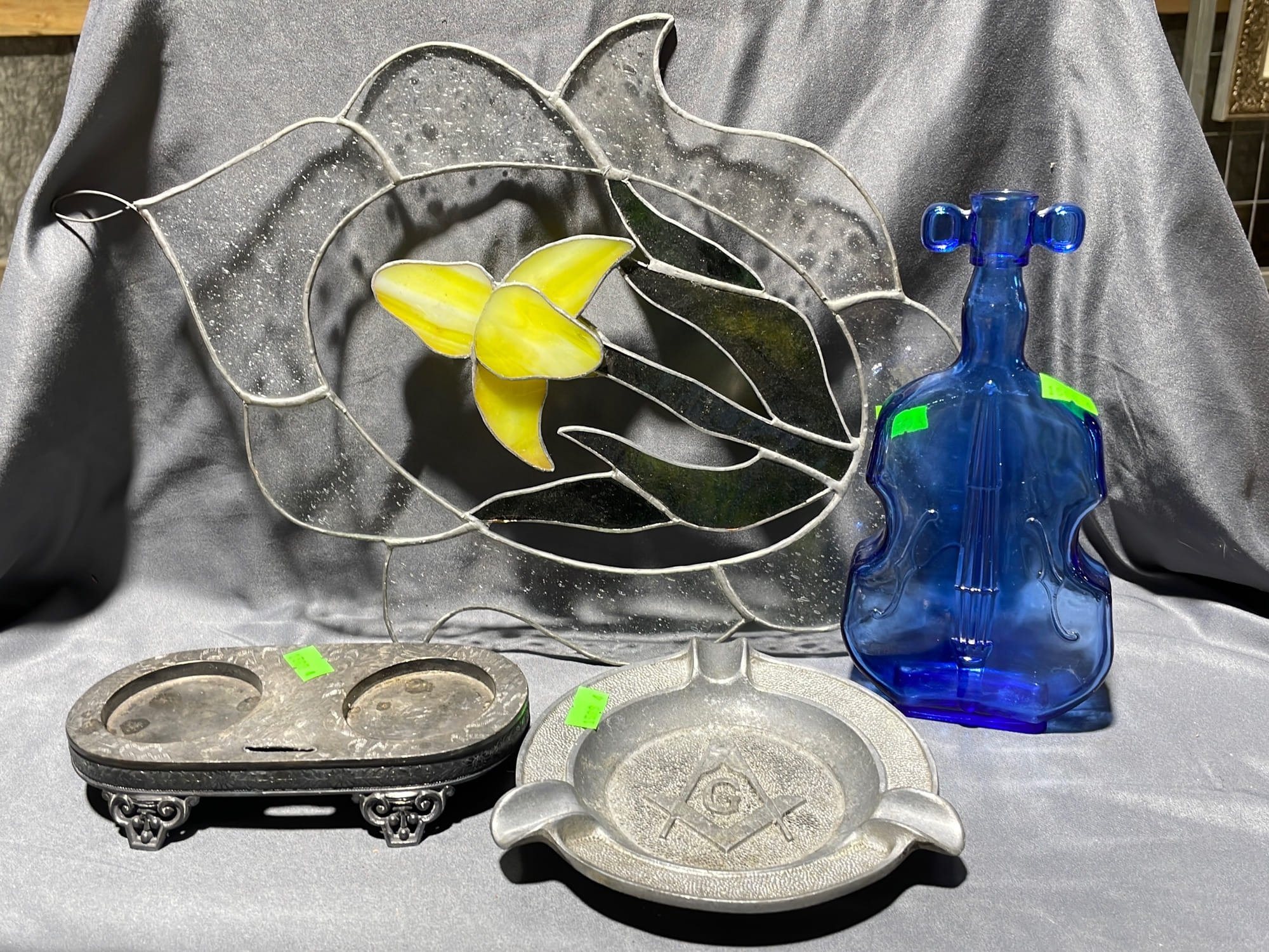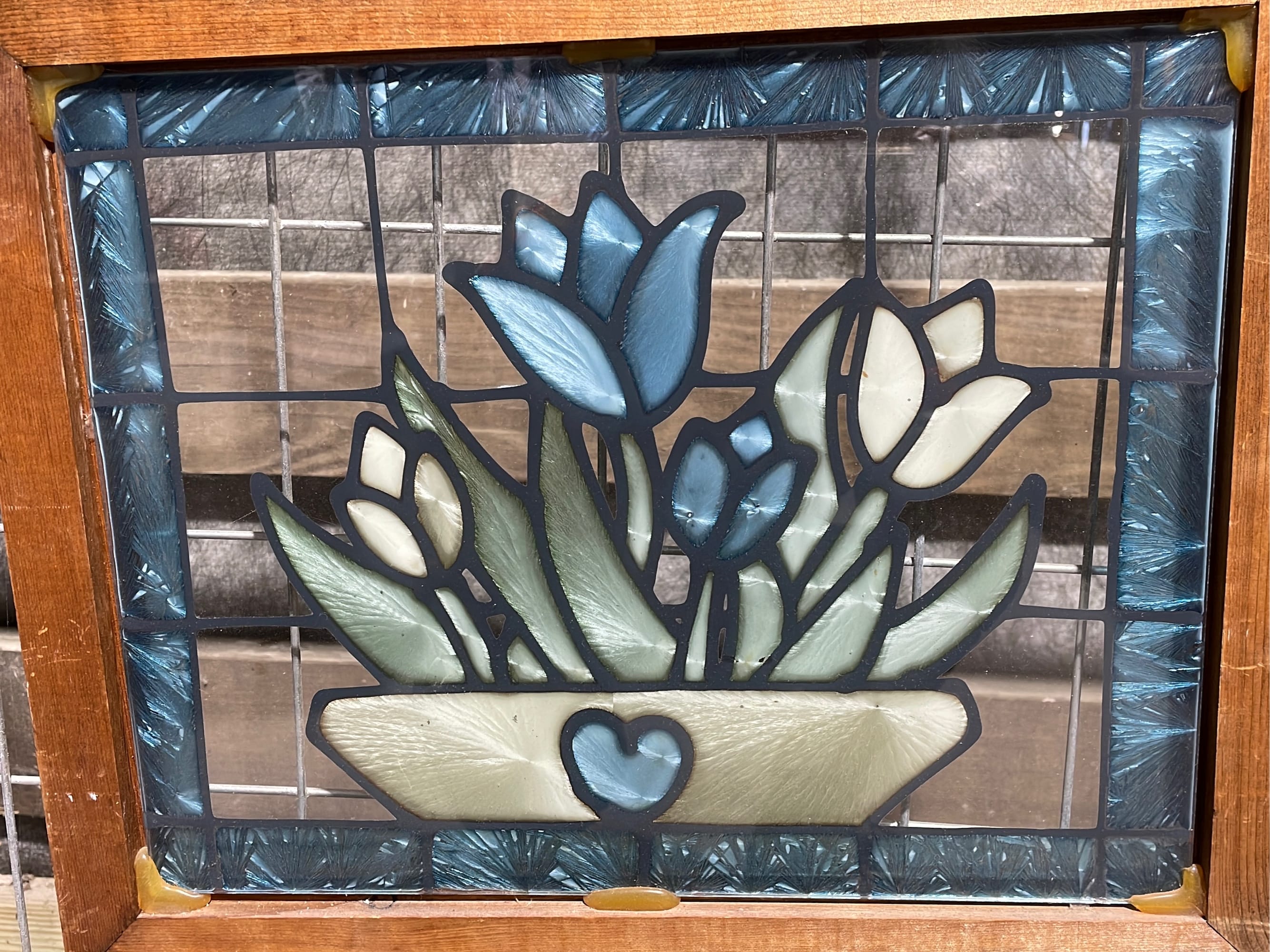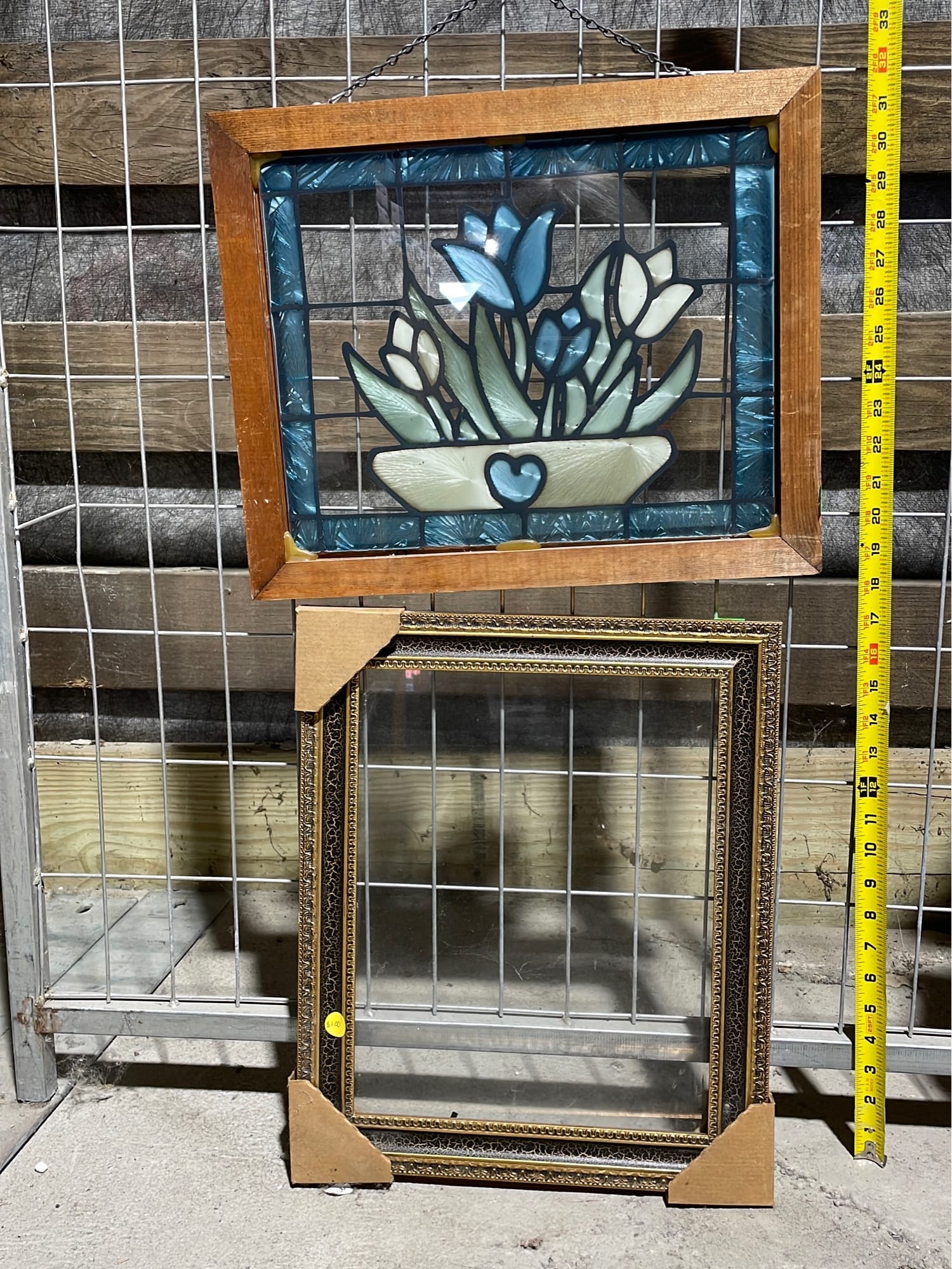 2055 (1) Frame with Glass and (1) Framed Faux Stained Glass Piece