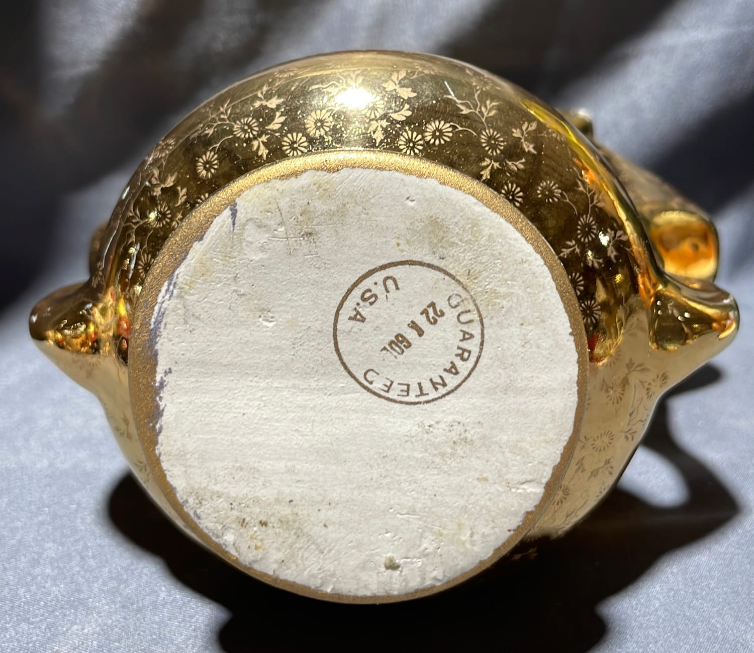 1223 Ceramic vase 6", 22 KT. gold painted vase 6'