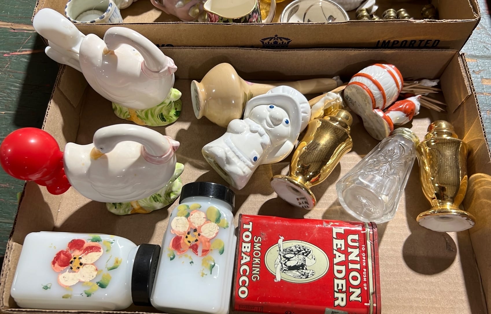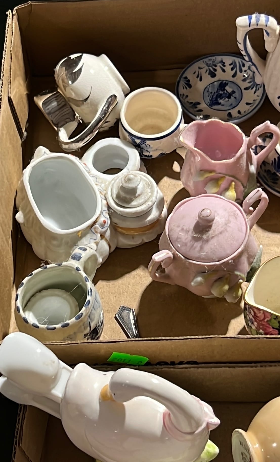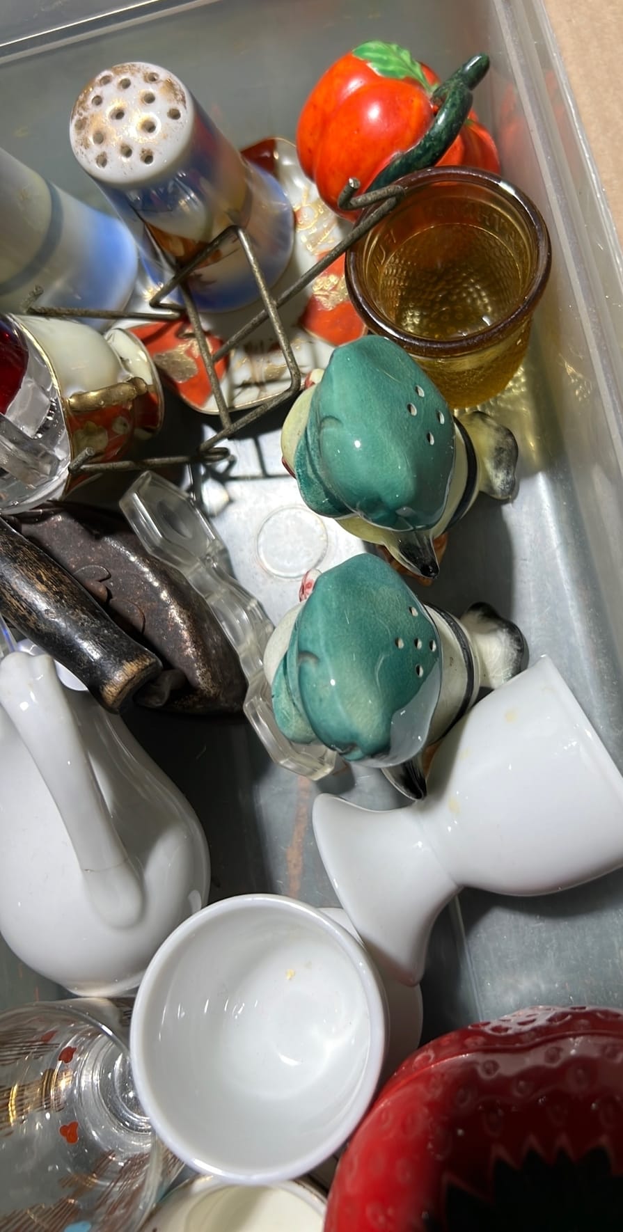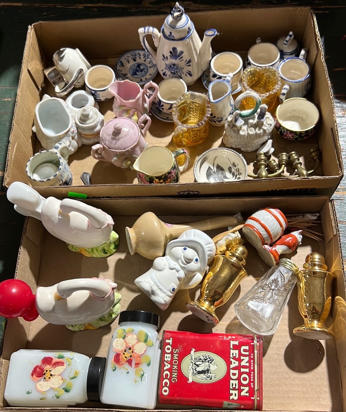2011 Salt and pepper shakers , tobacco tin, 2- goose measuring spoon holders , tooth pick holders , cream and sugars , tea sets , miscellaneous
